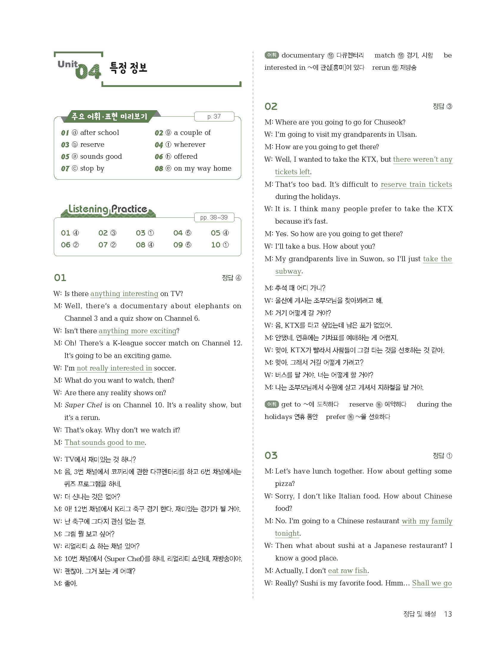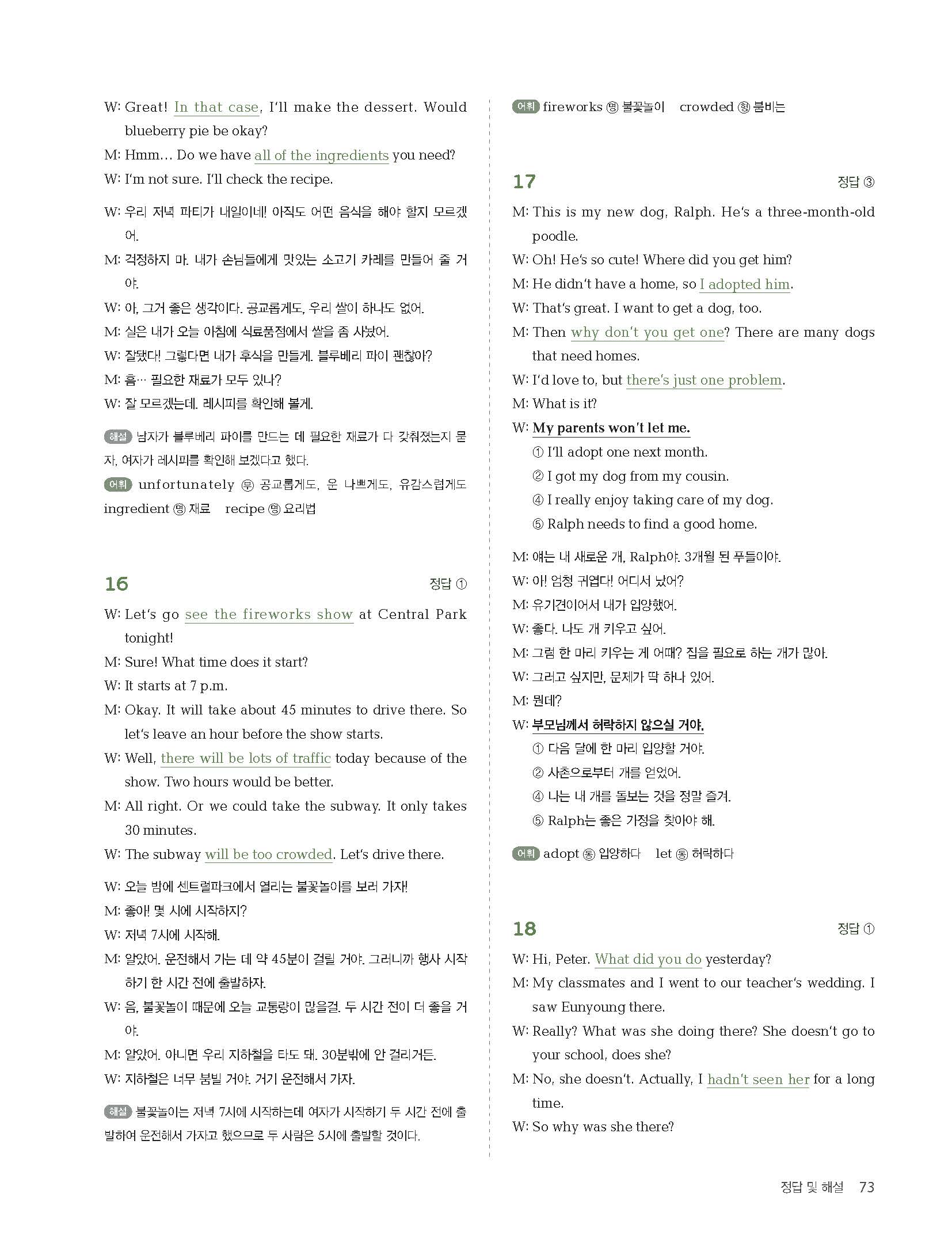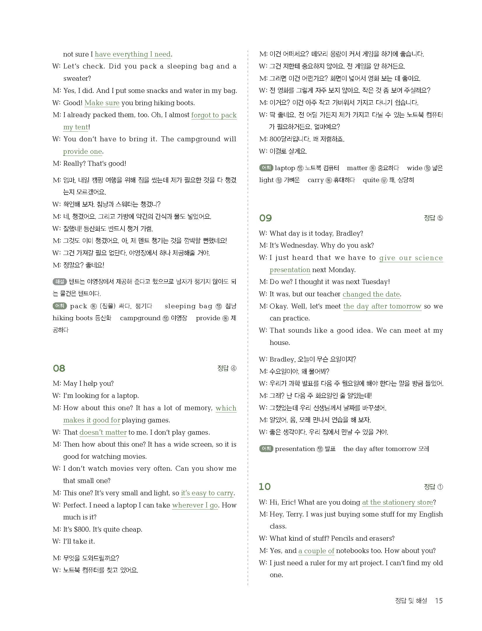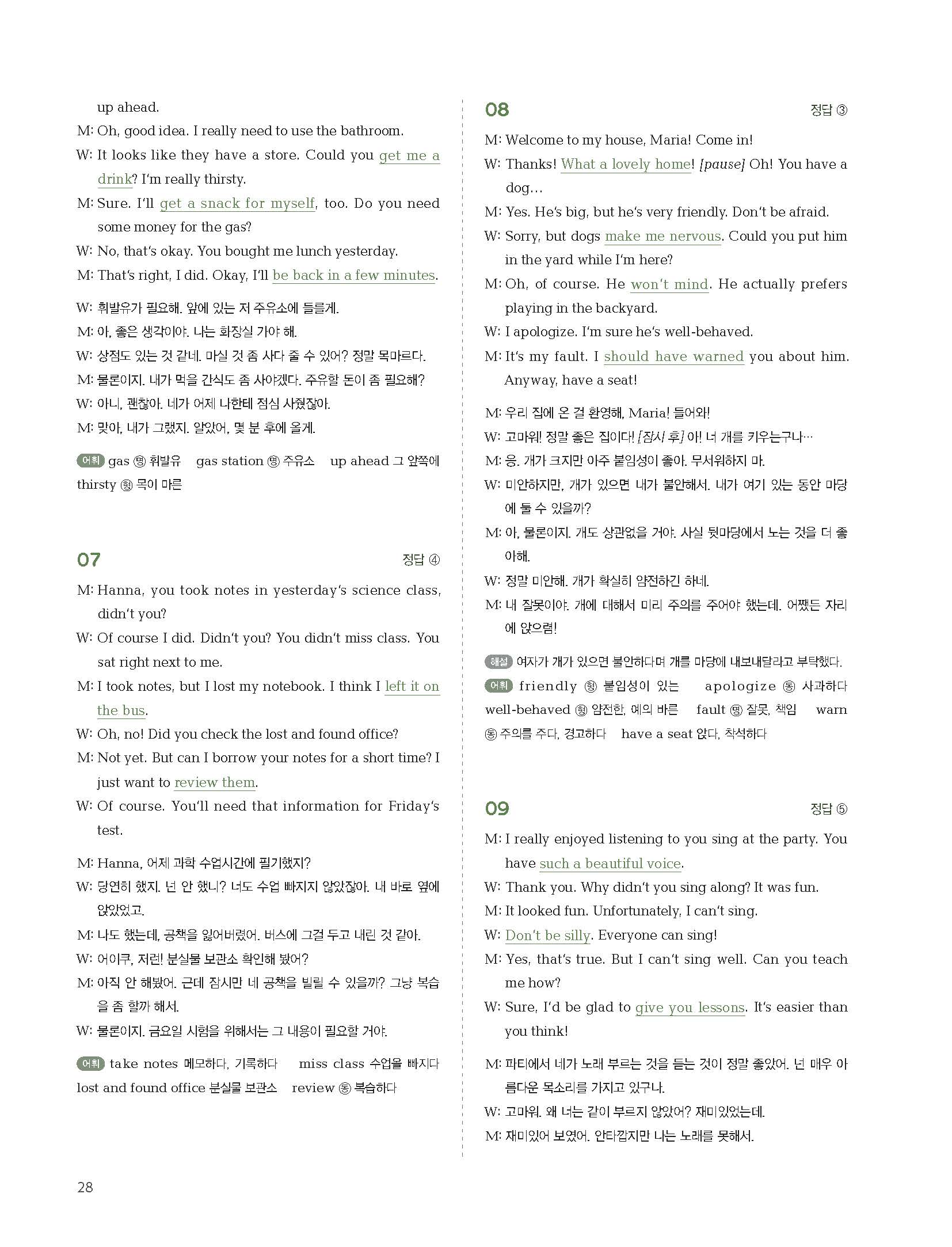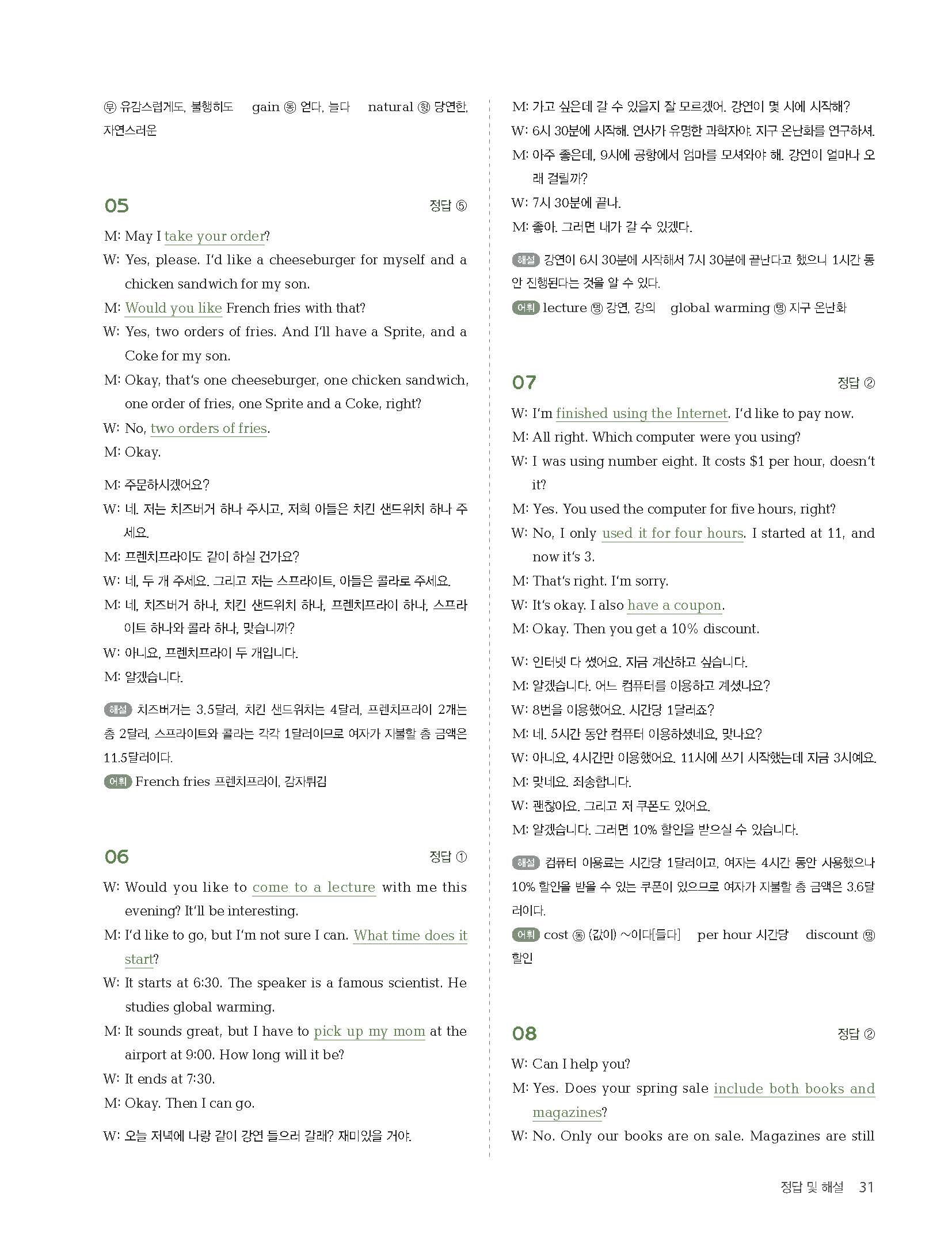 1316팬클럽 듣기 Level 3 답지 해설지 사진답지 빠른답지 모바일최적화