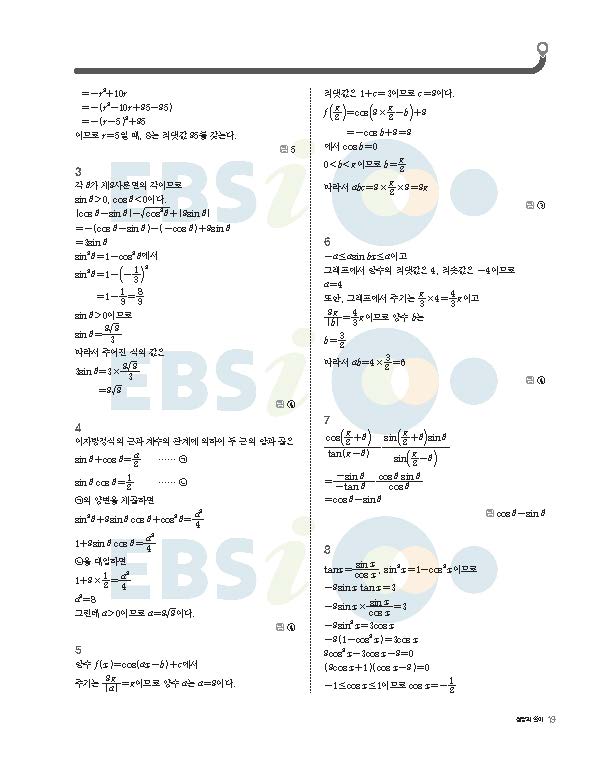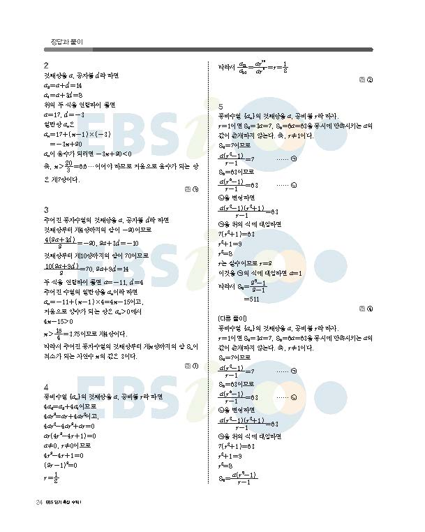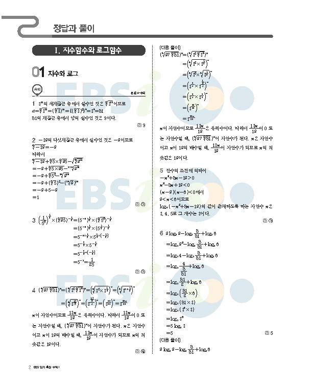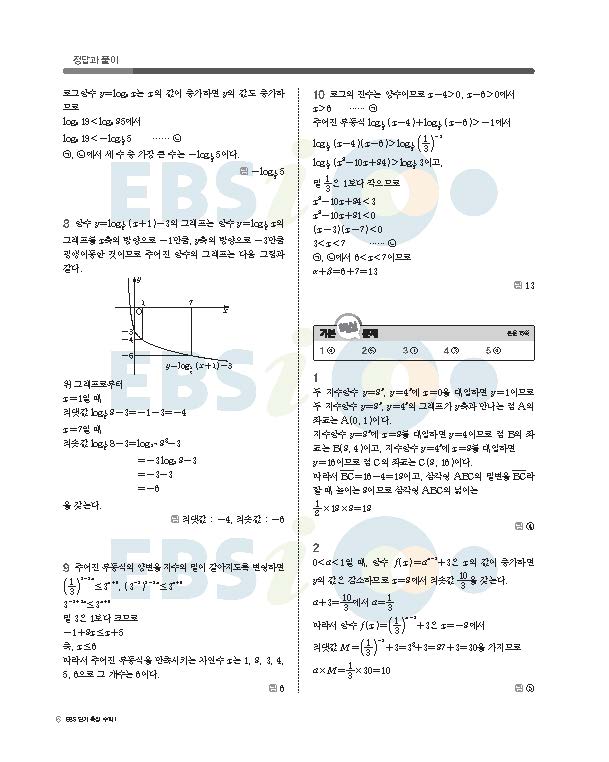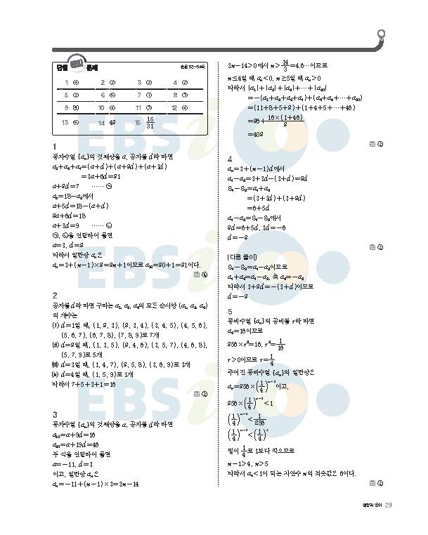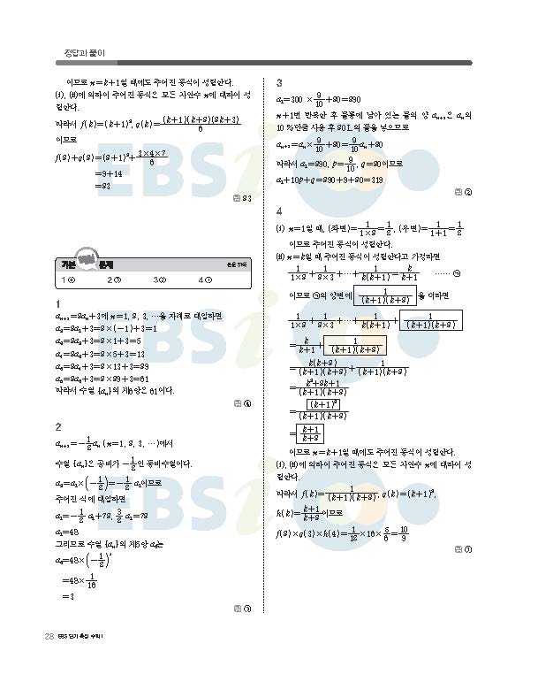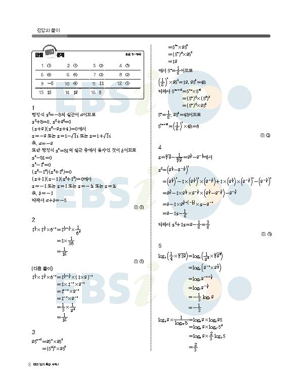 EBS 단기특강 수학1 빠른답지 사진답지 해설지 모바일최적화