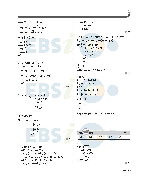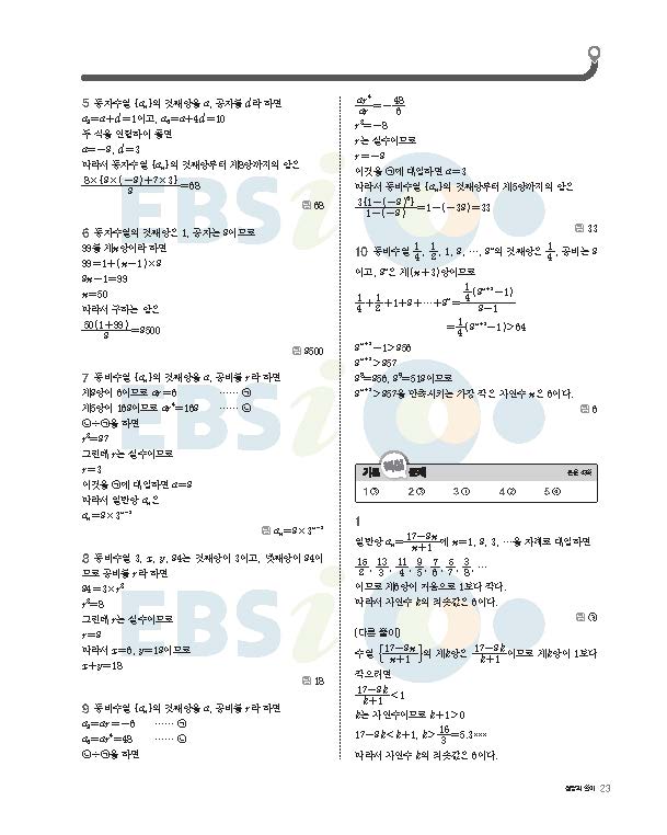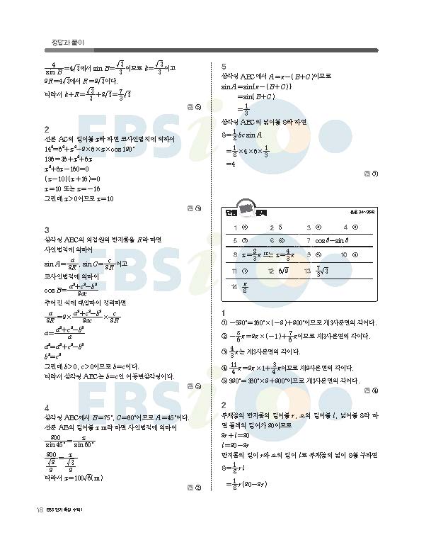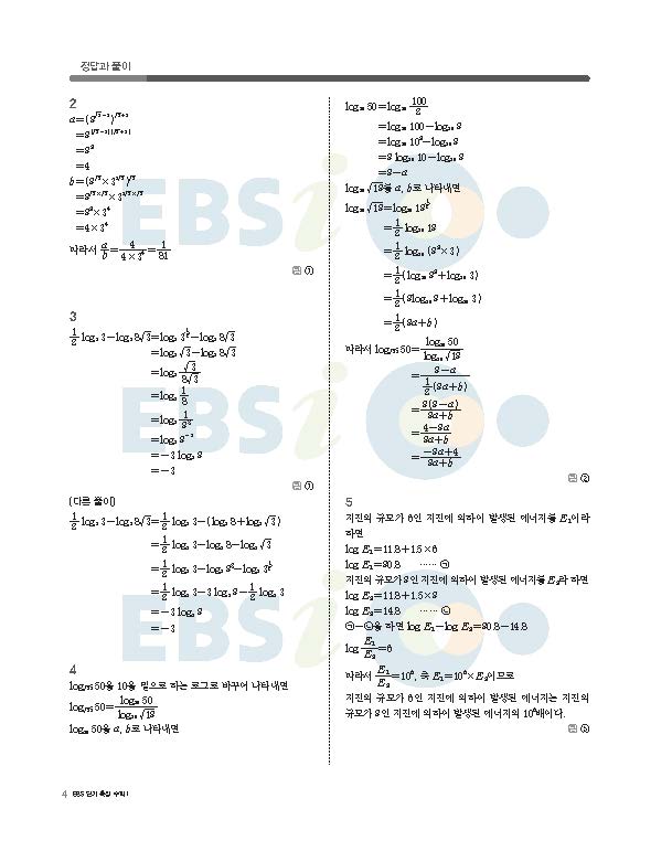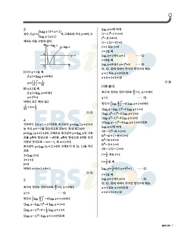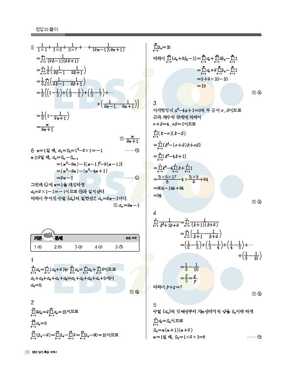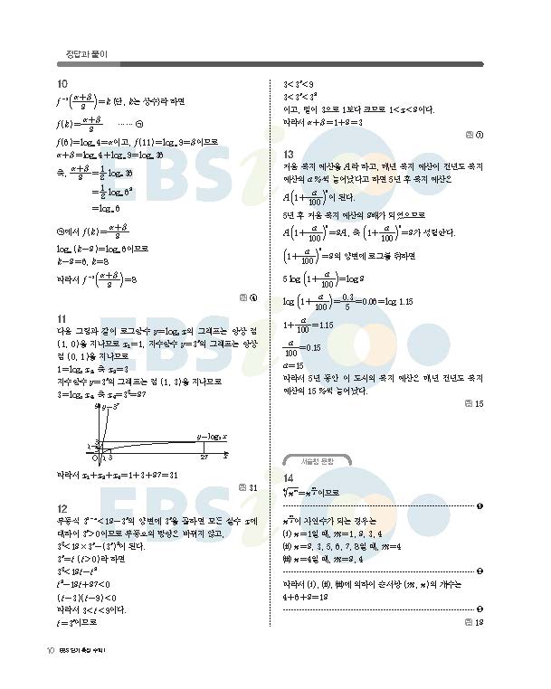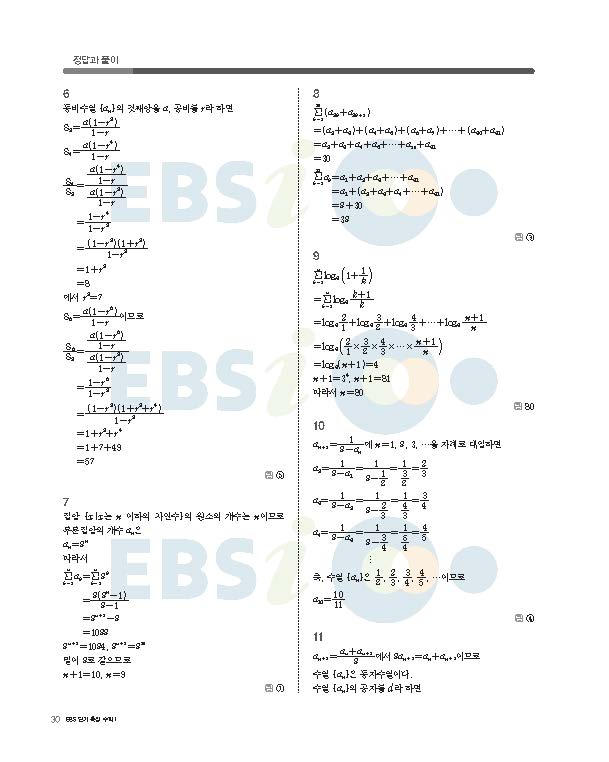 EBS 단기특강 수학1 빠른답지 사진답지 해설지 모바일최적화