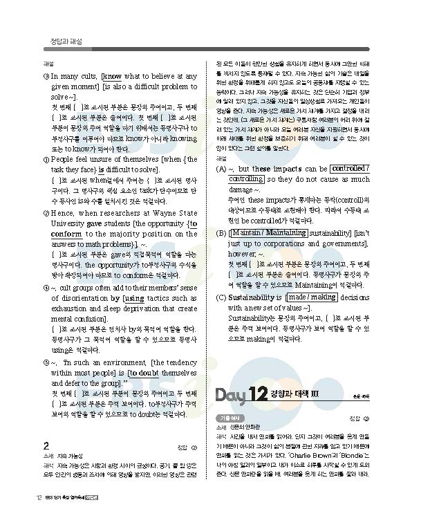 EBS 단기특강 영어어법 어법편 빠른답지 사진답지 해설지 모바일최적화