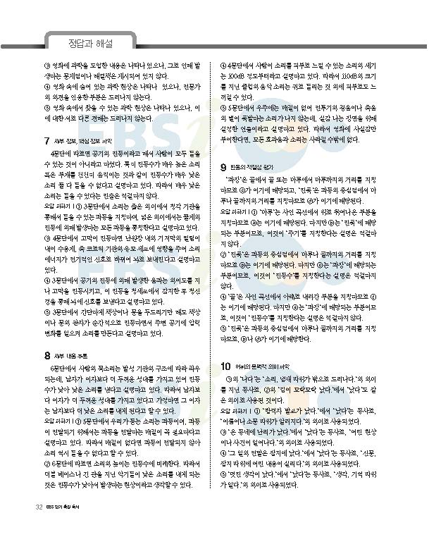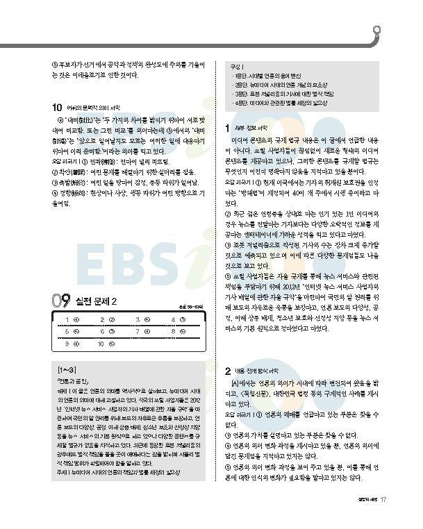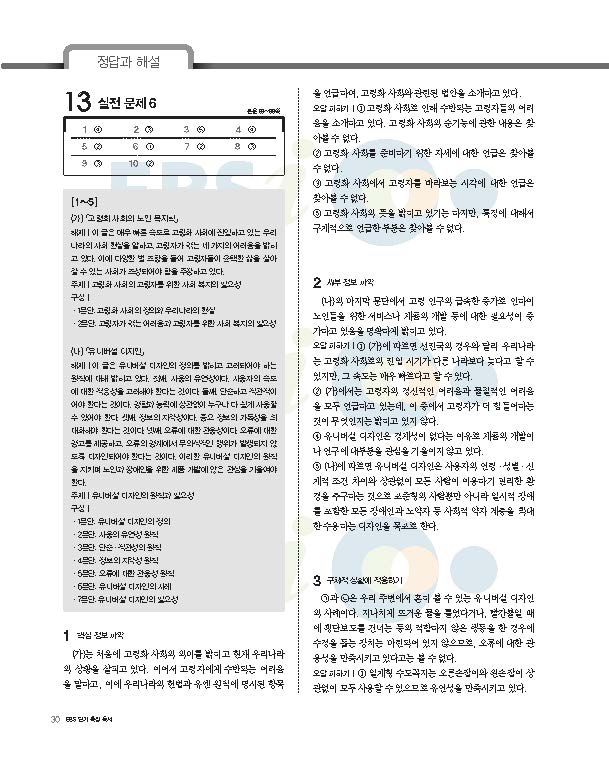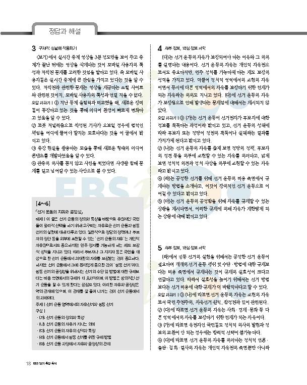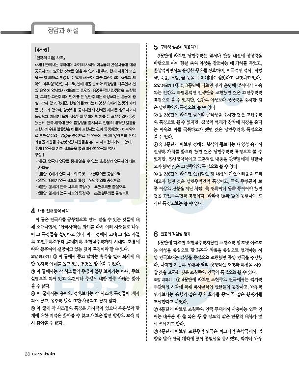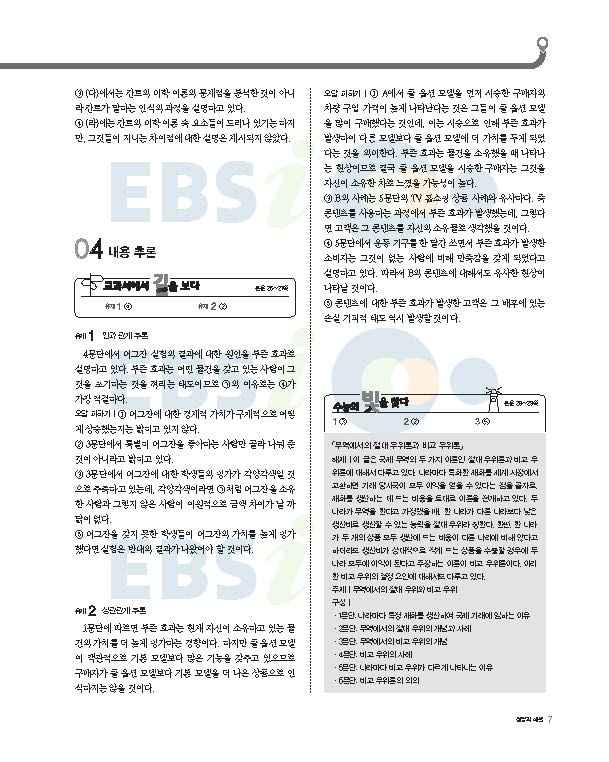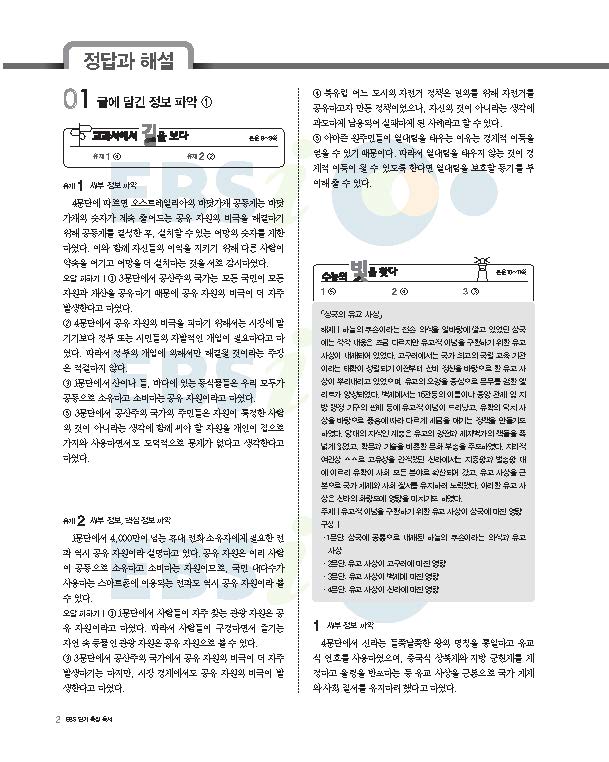 EBS 단기특강 독서 빠른답지 사진답지 해설지 모바일최적화
