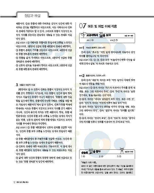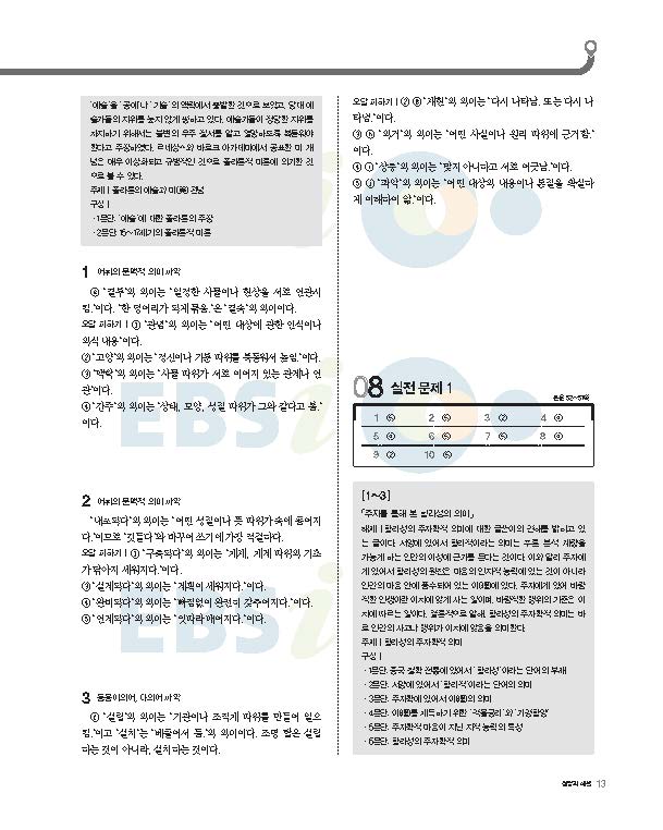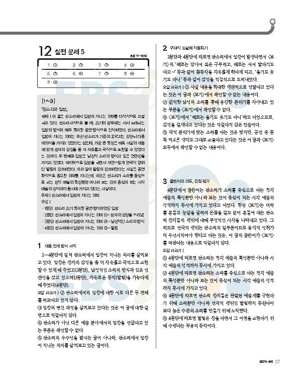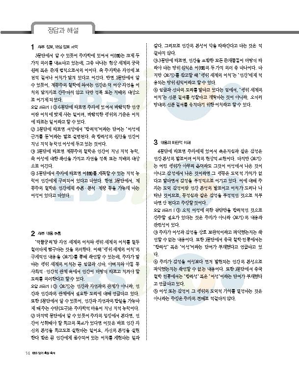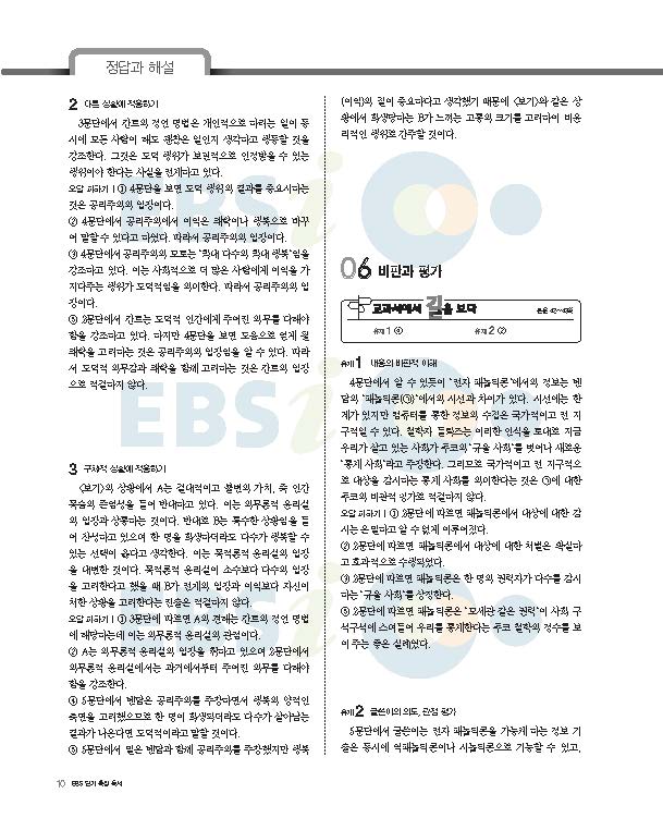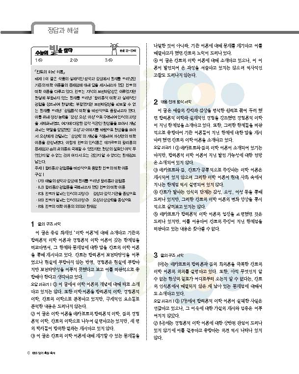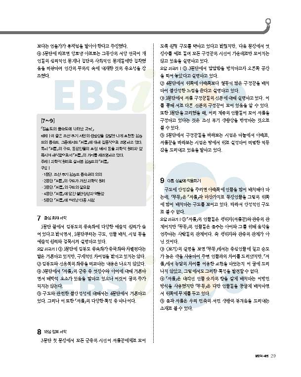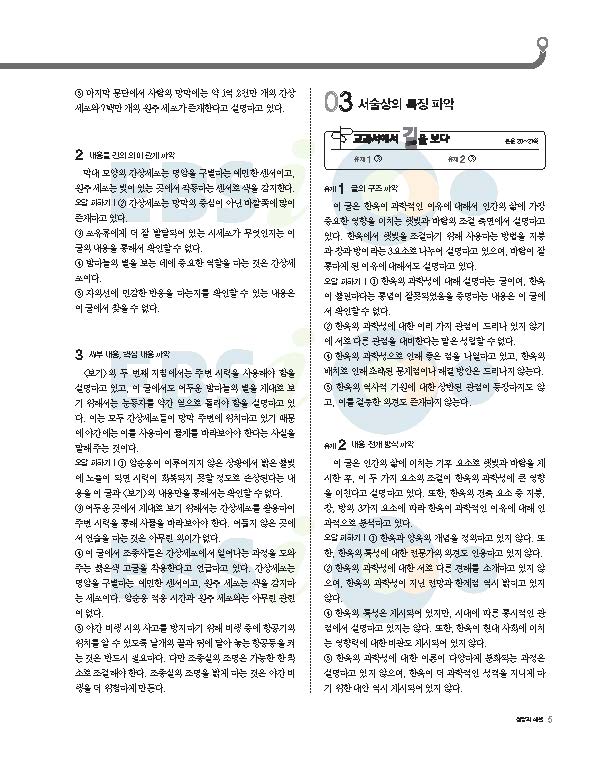 EBS 단기특강 독서 빠른답지 사진답지 해설지 모바일최적화