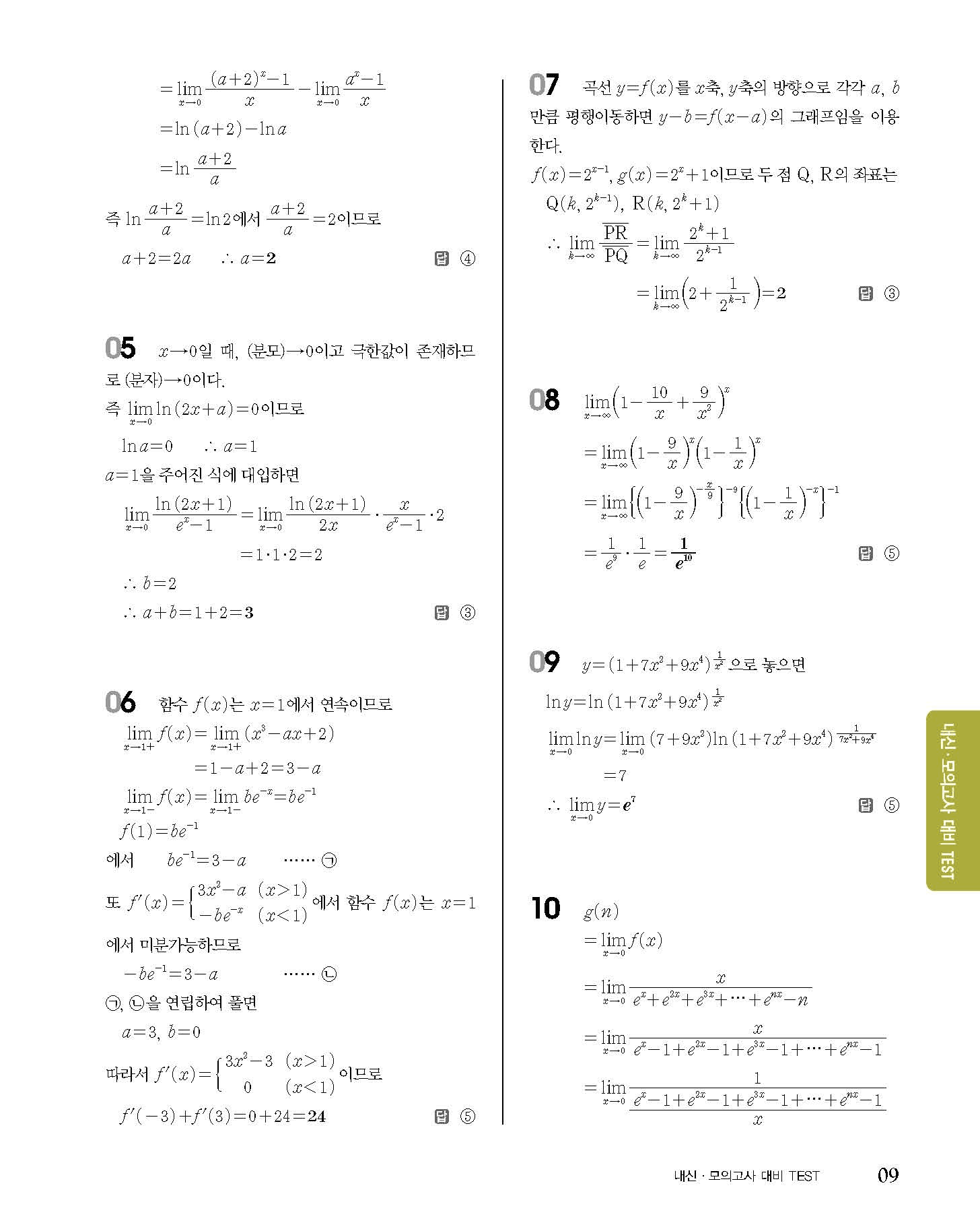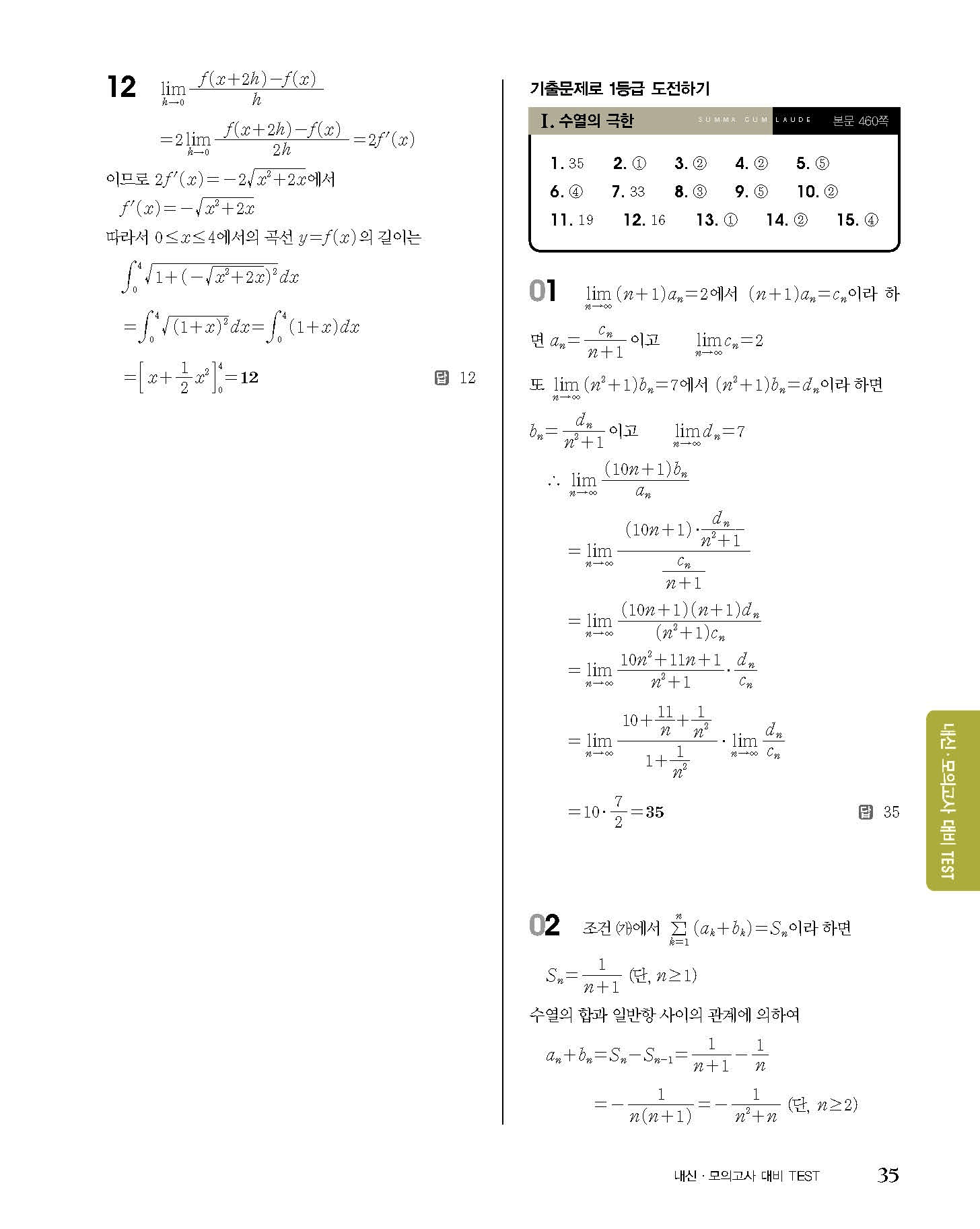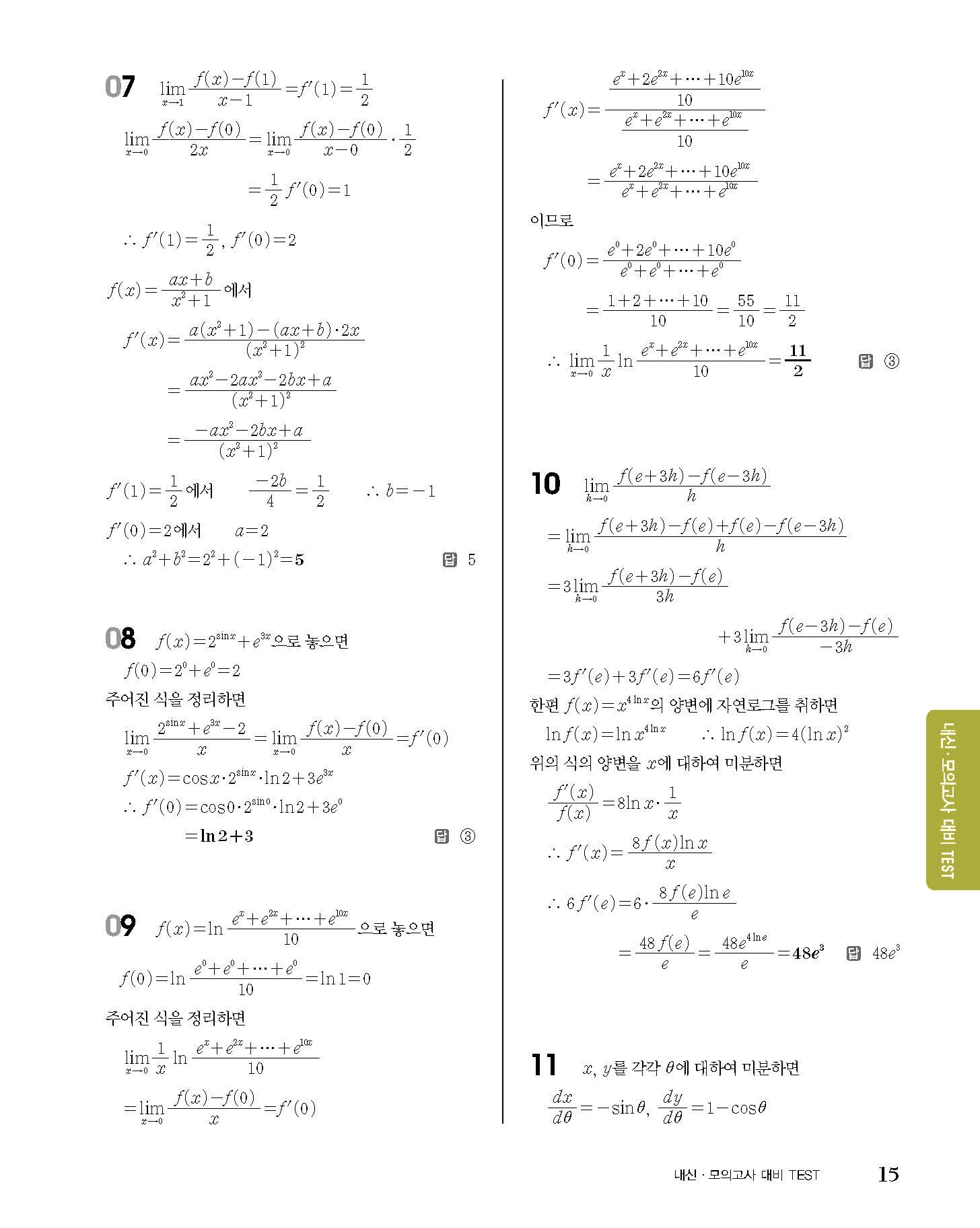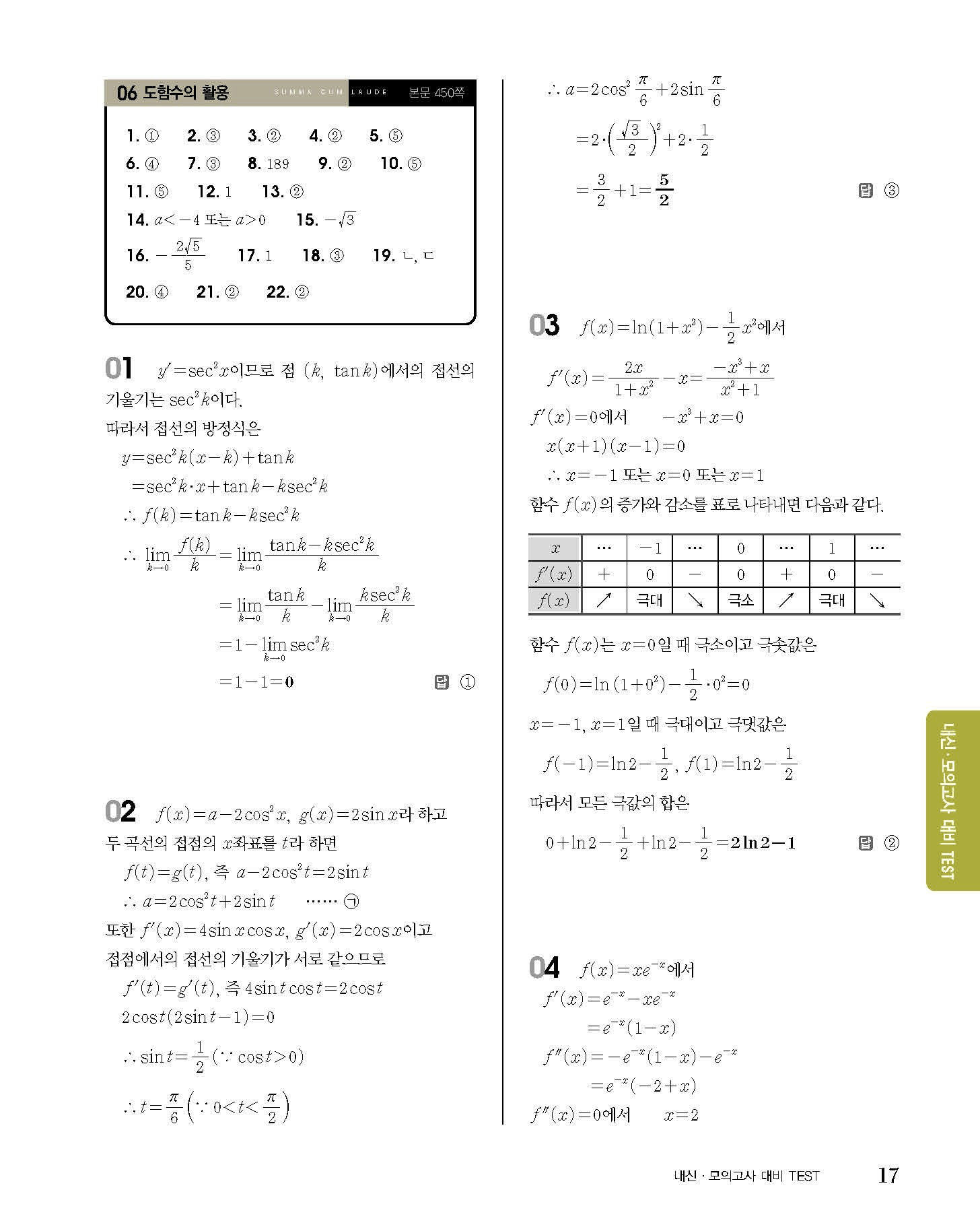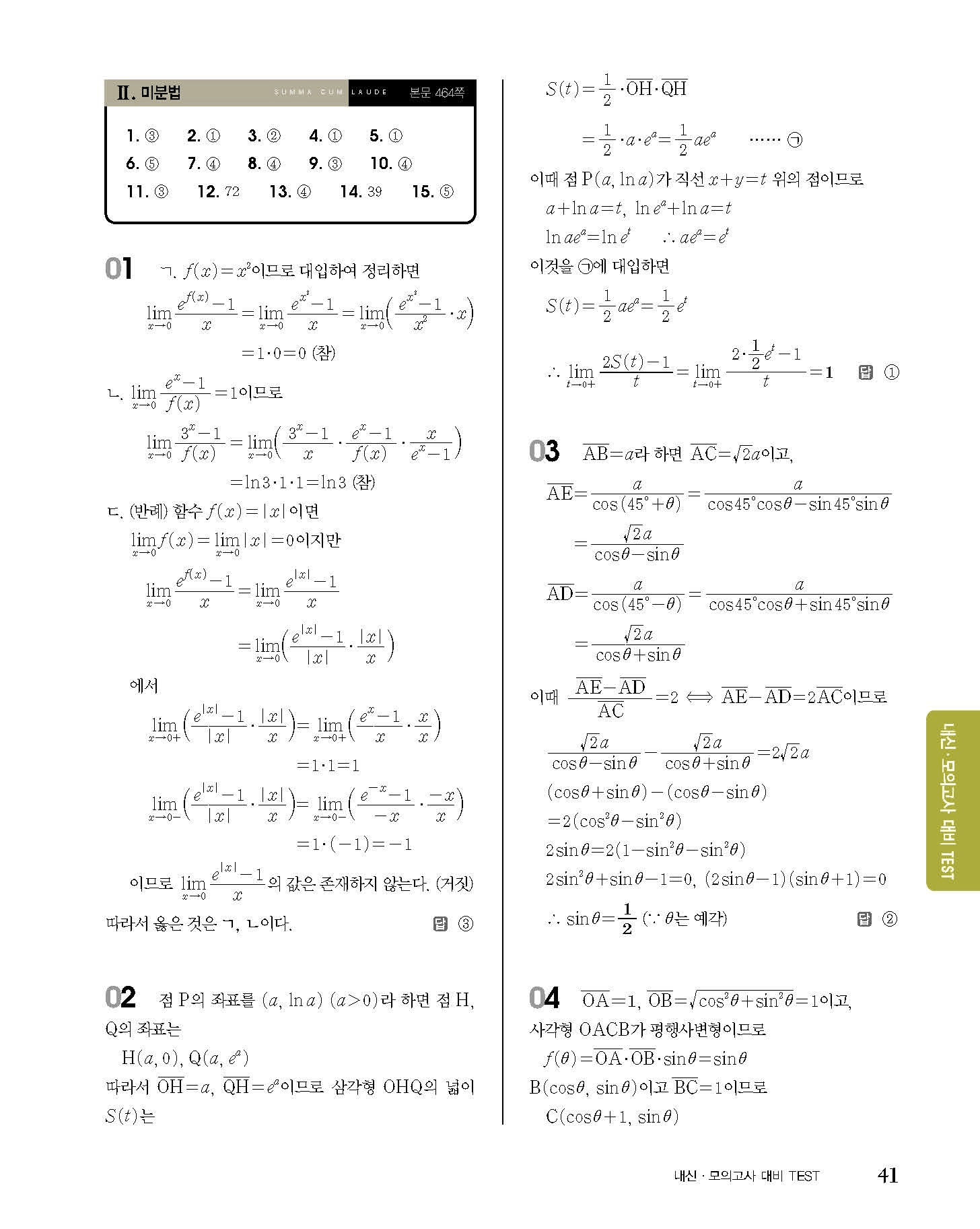 숨마쿰라우데 고등수학 미적분 내신 모의고사 대비 TEST 사진답지 빠른답지 모바일최적화