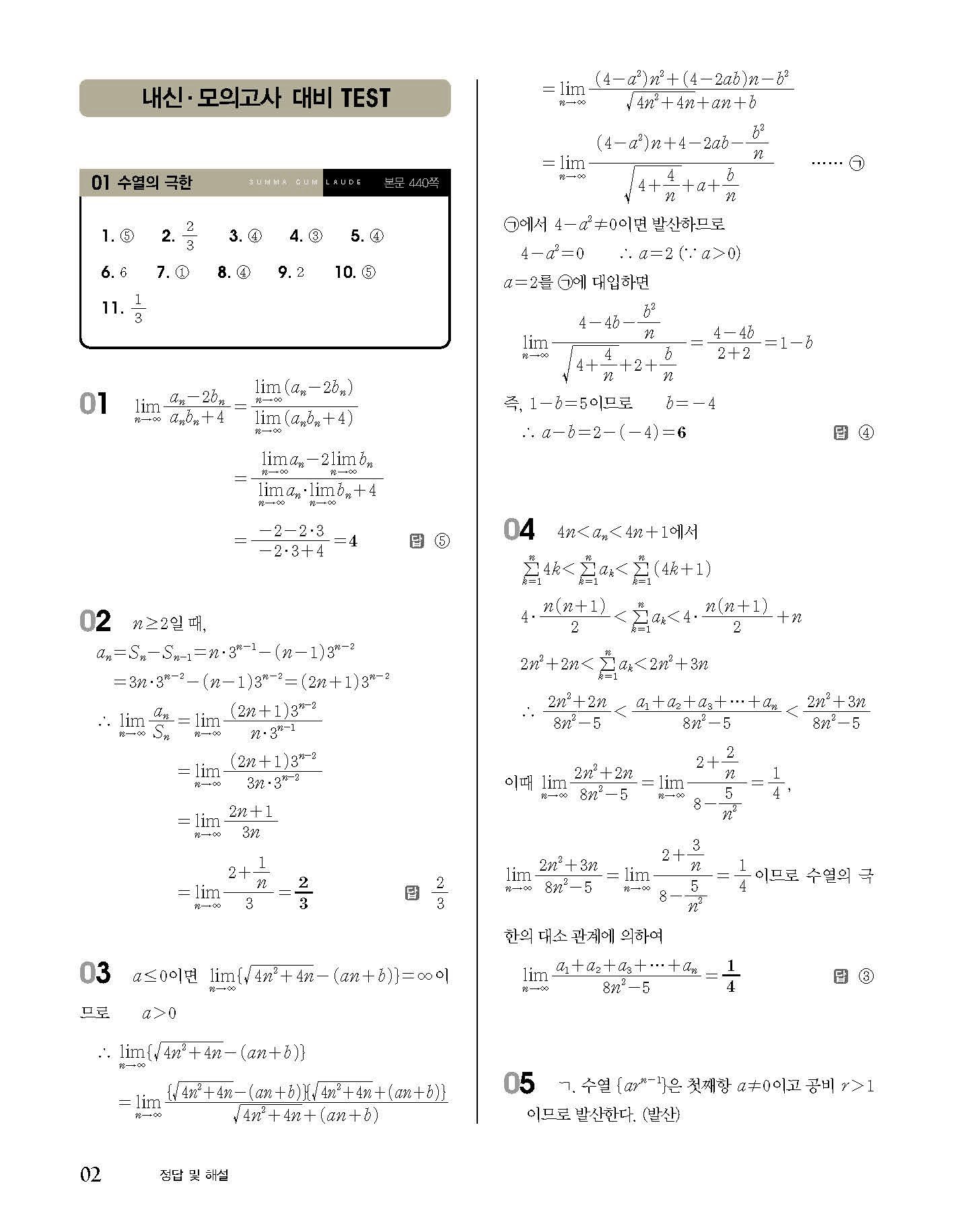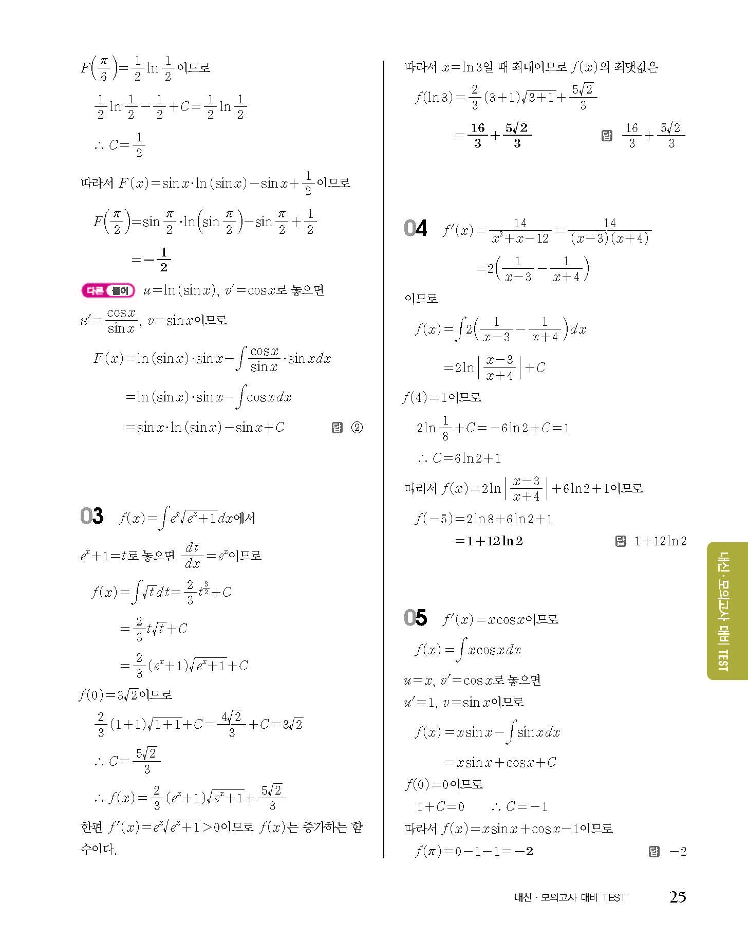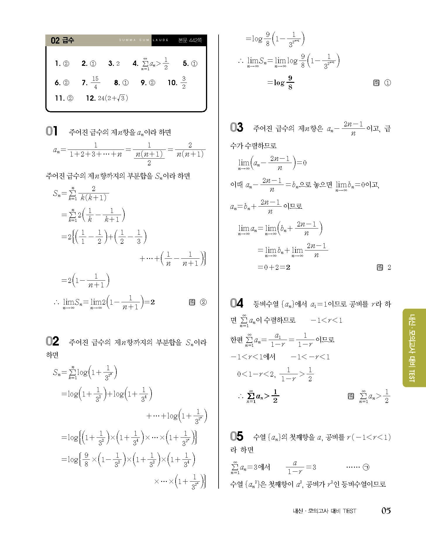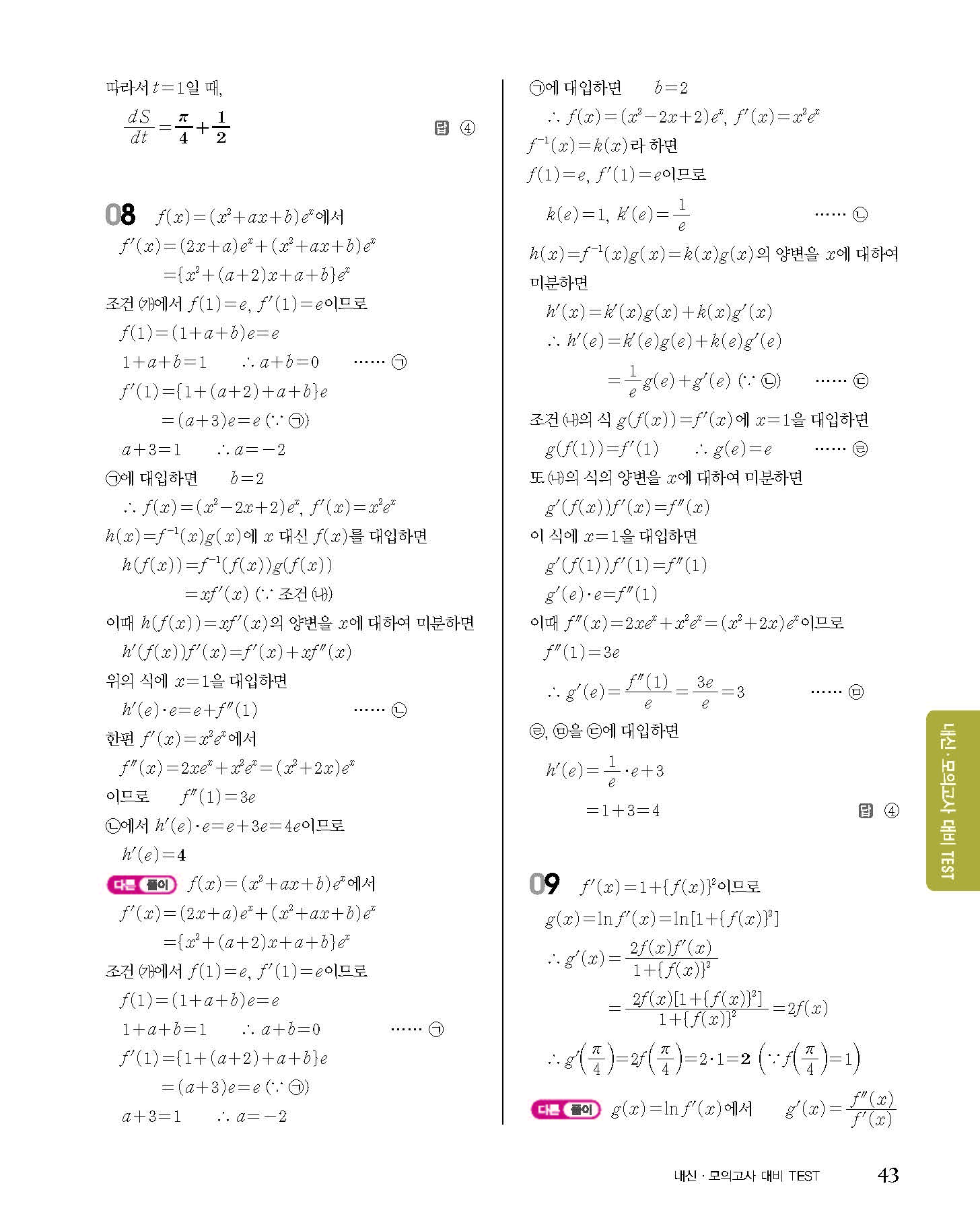 숨마쿰라우데 고등수학 미적분 내신 모의고사 대비 TEST 사진답지 빠른답지 모바일최적화