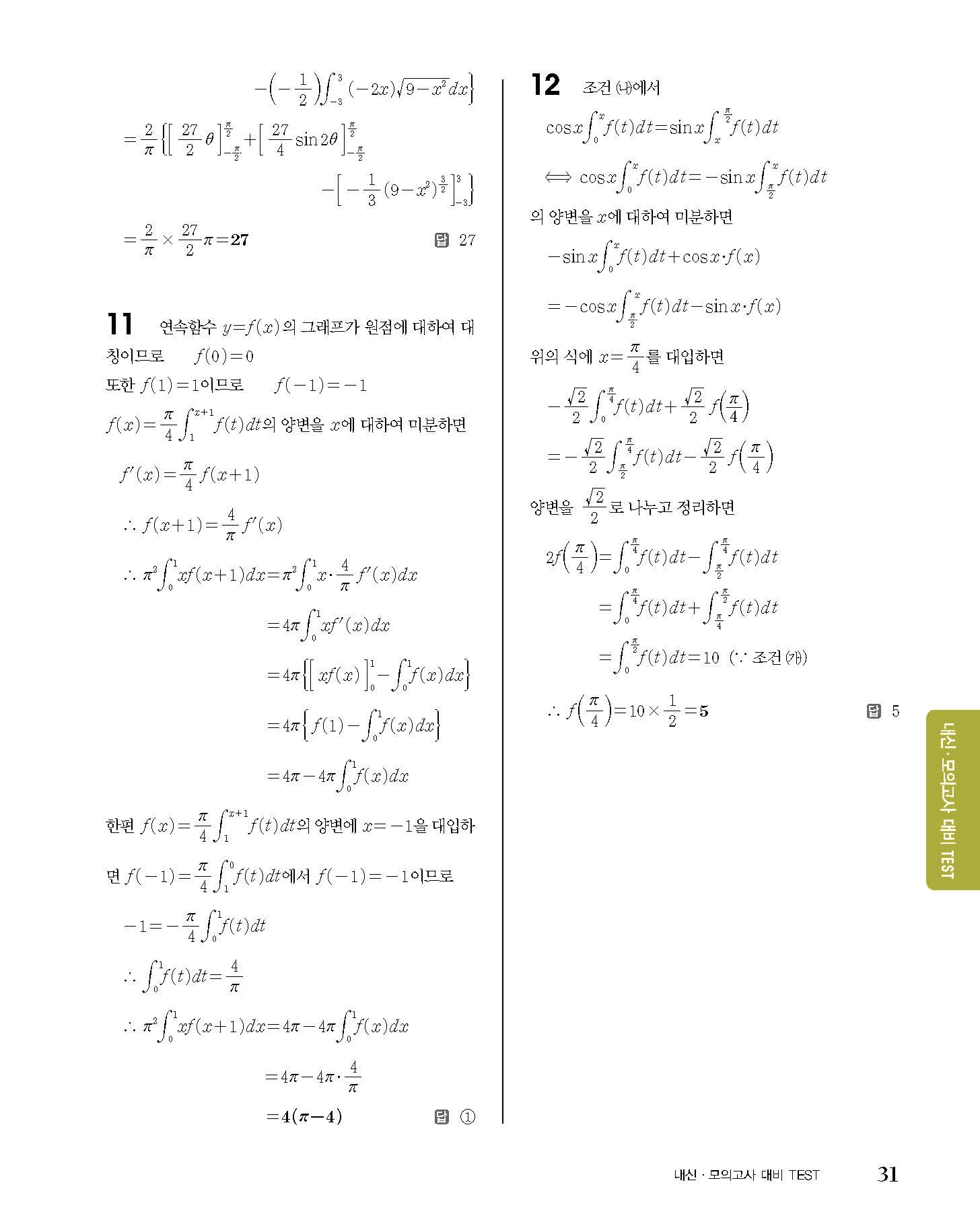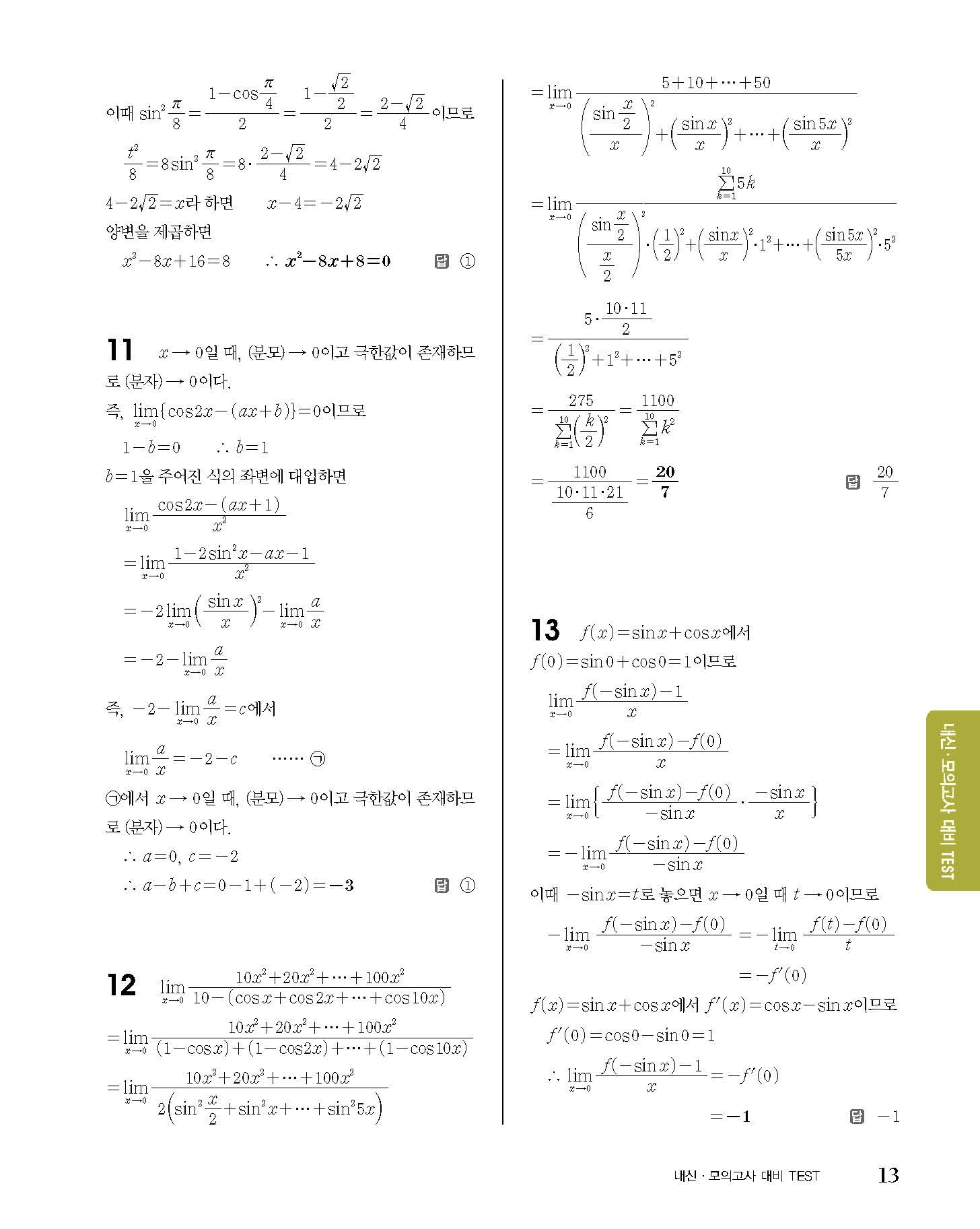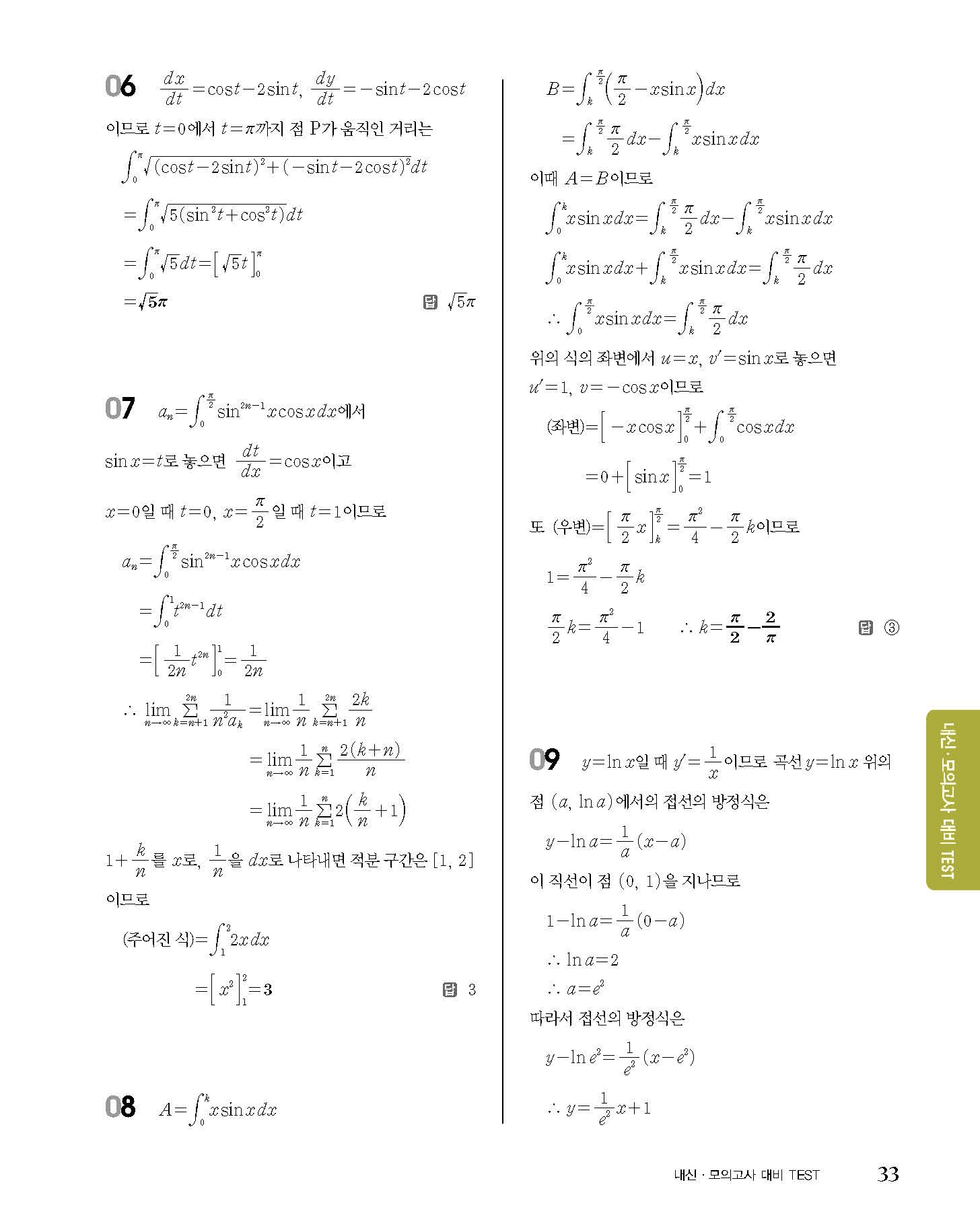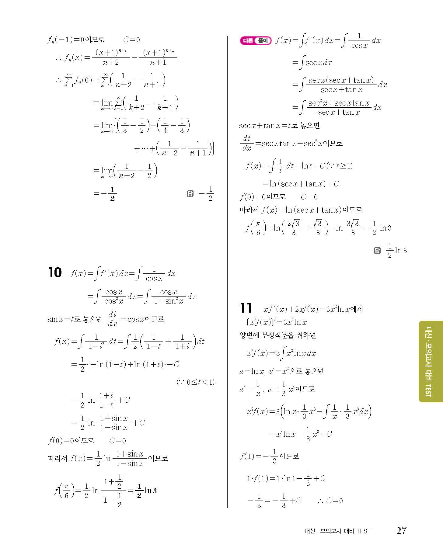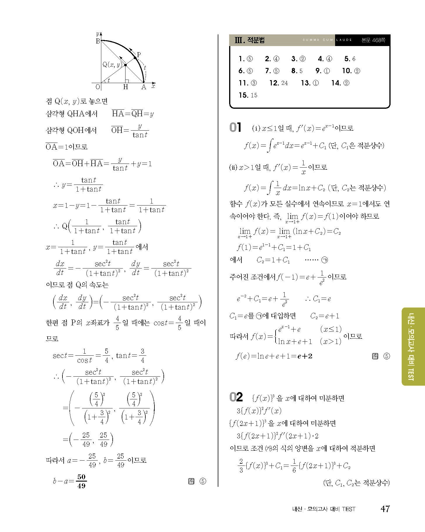 숨마쿰라우데 고등수학 미적분 내신 모의고사 대비 TEST 사진답지 빠른답지 모바일최적화