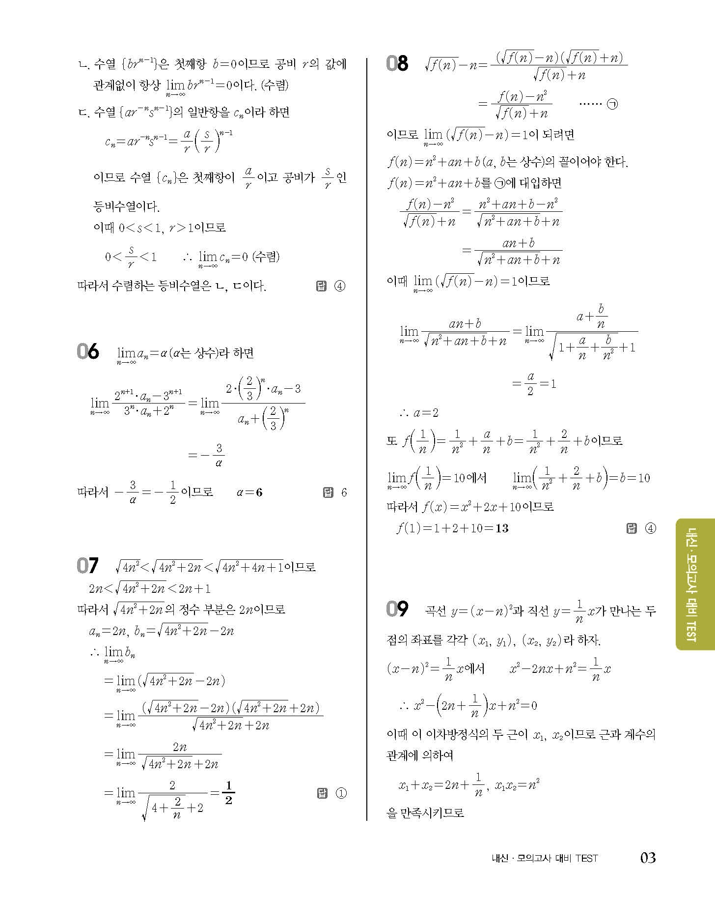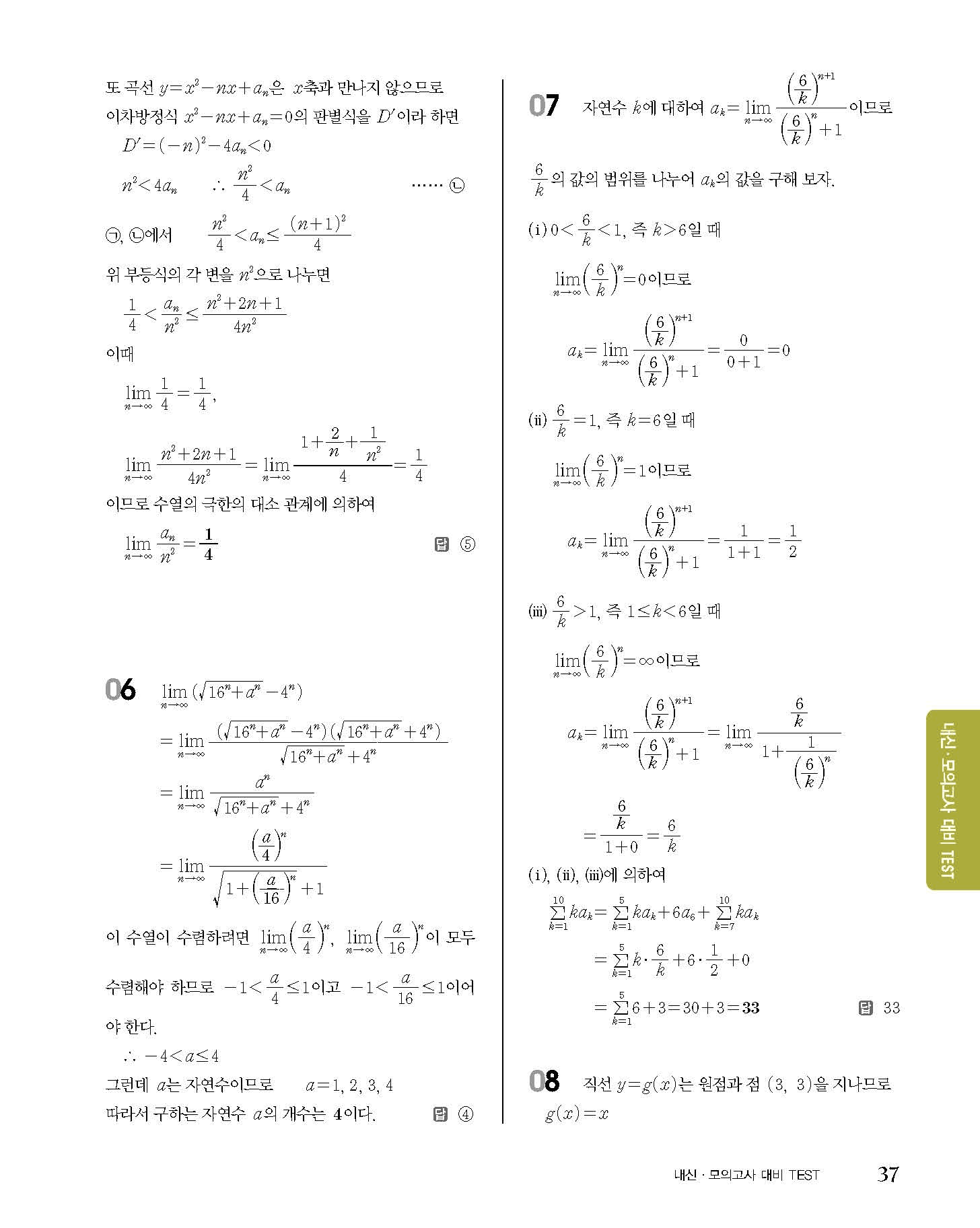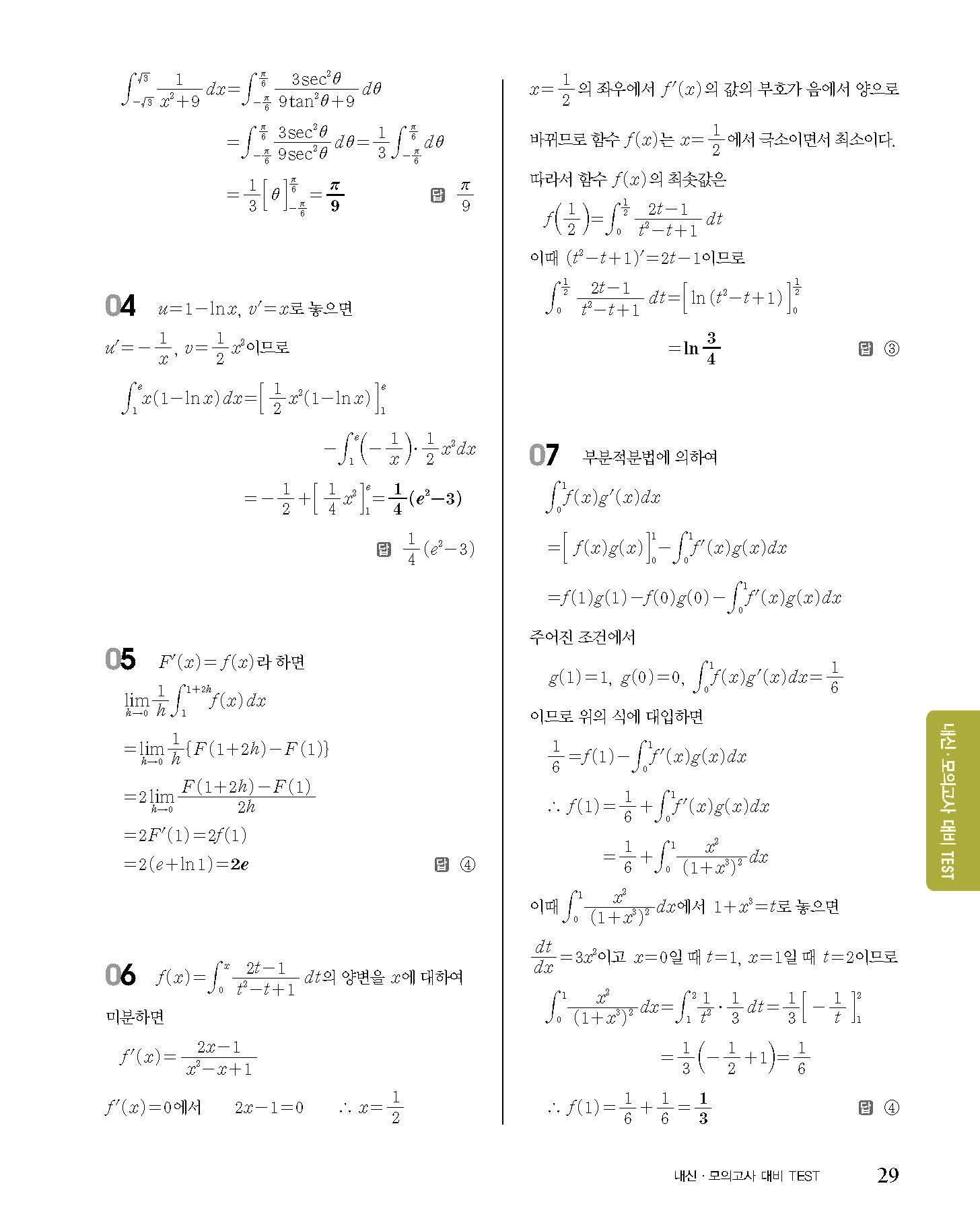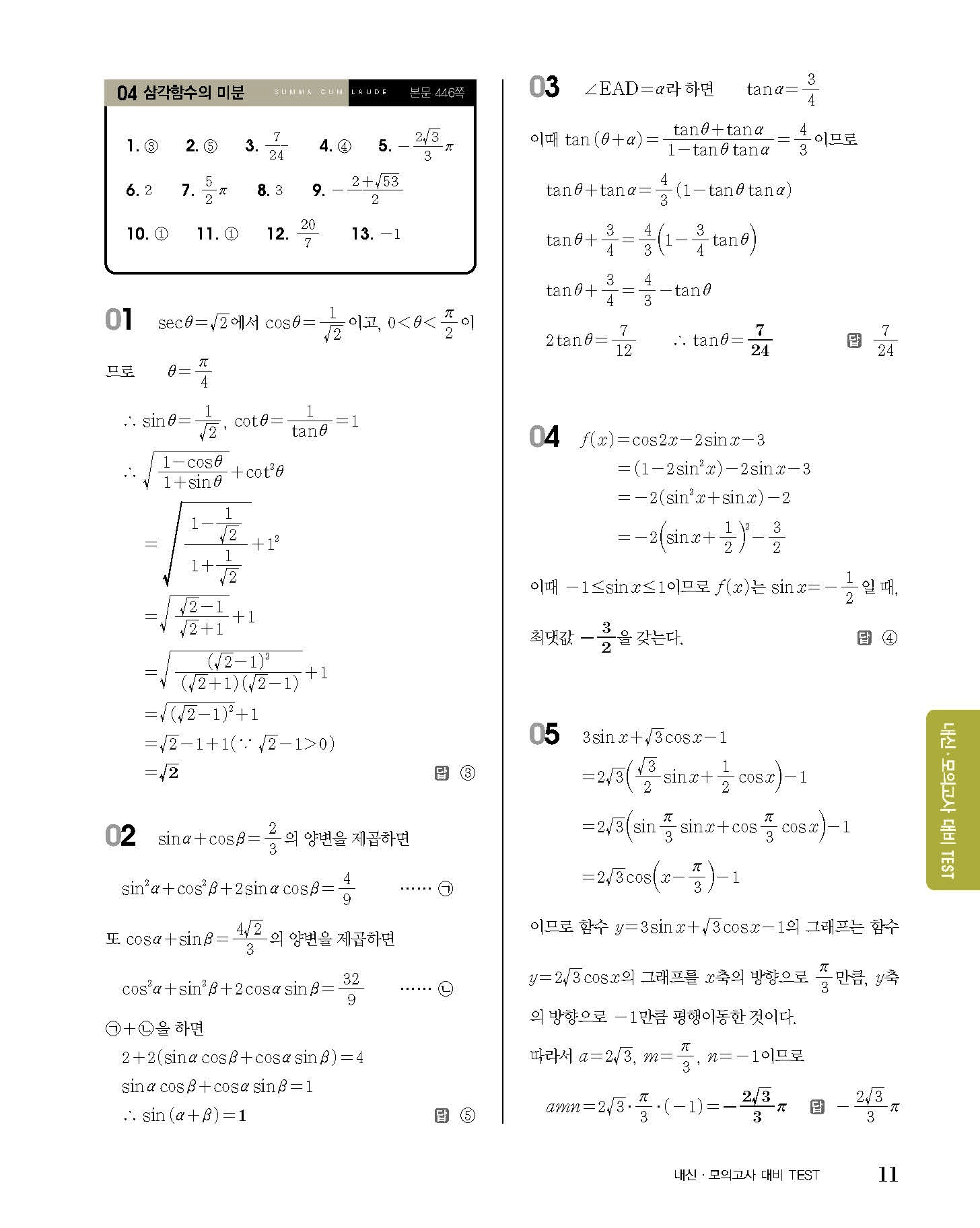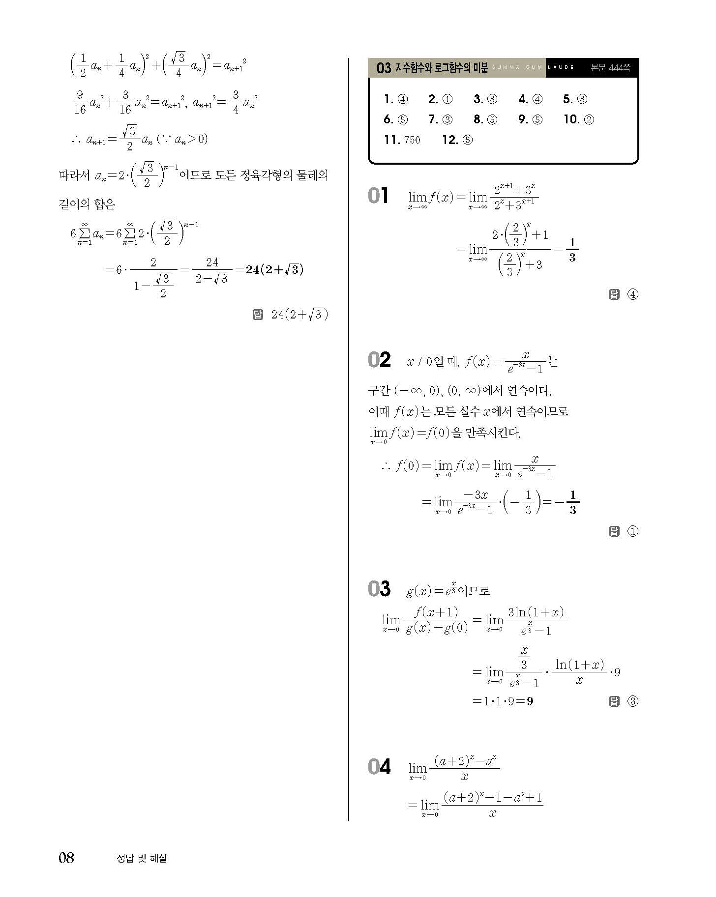 숨마쿰라우데 고등수학 미적분 내신 모의고사 대비 TEST 사진답지 빠른답지 모바일최적화