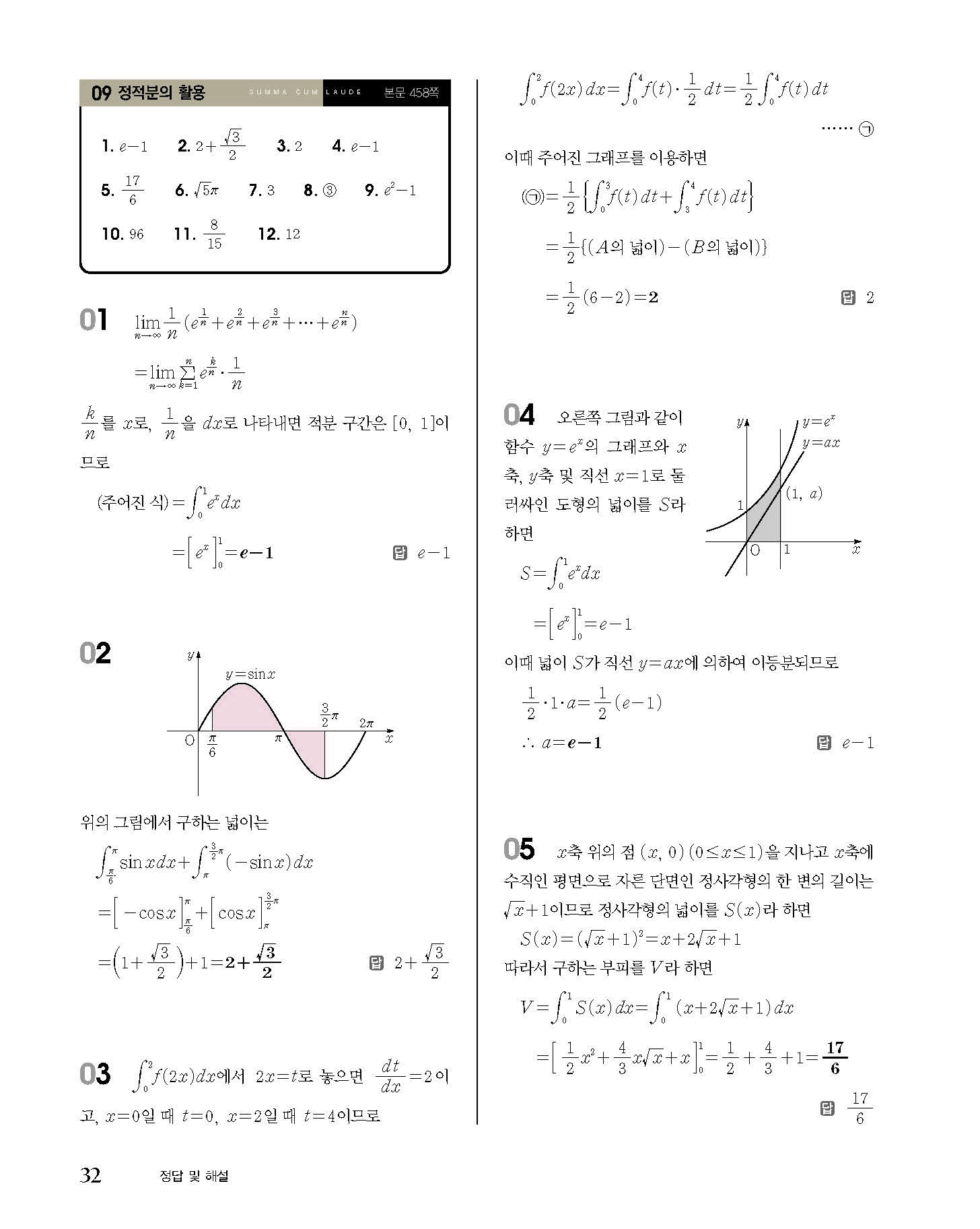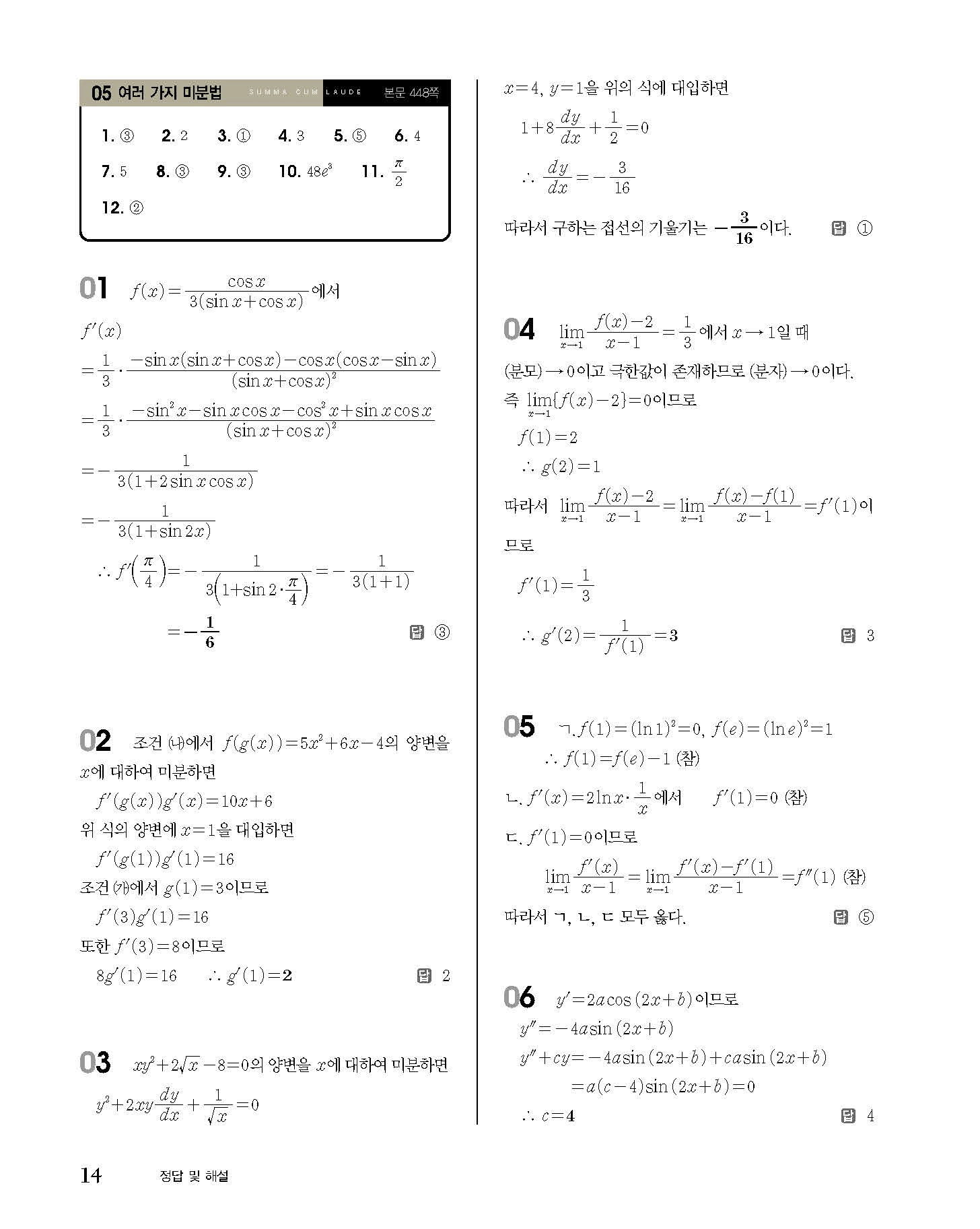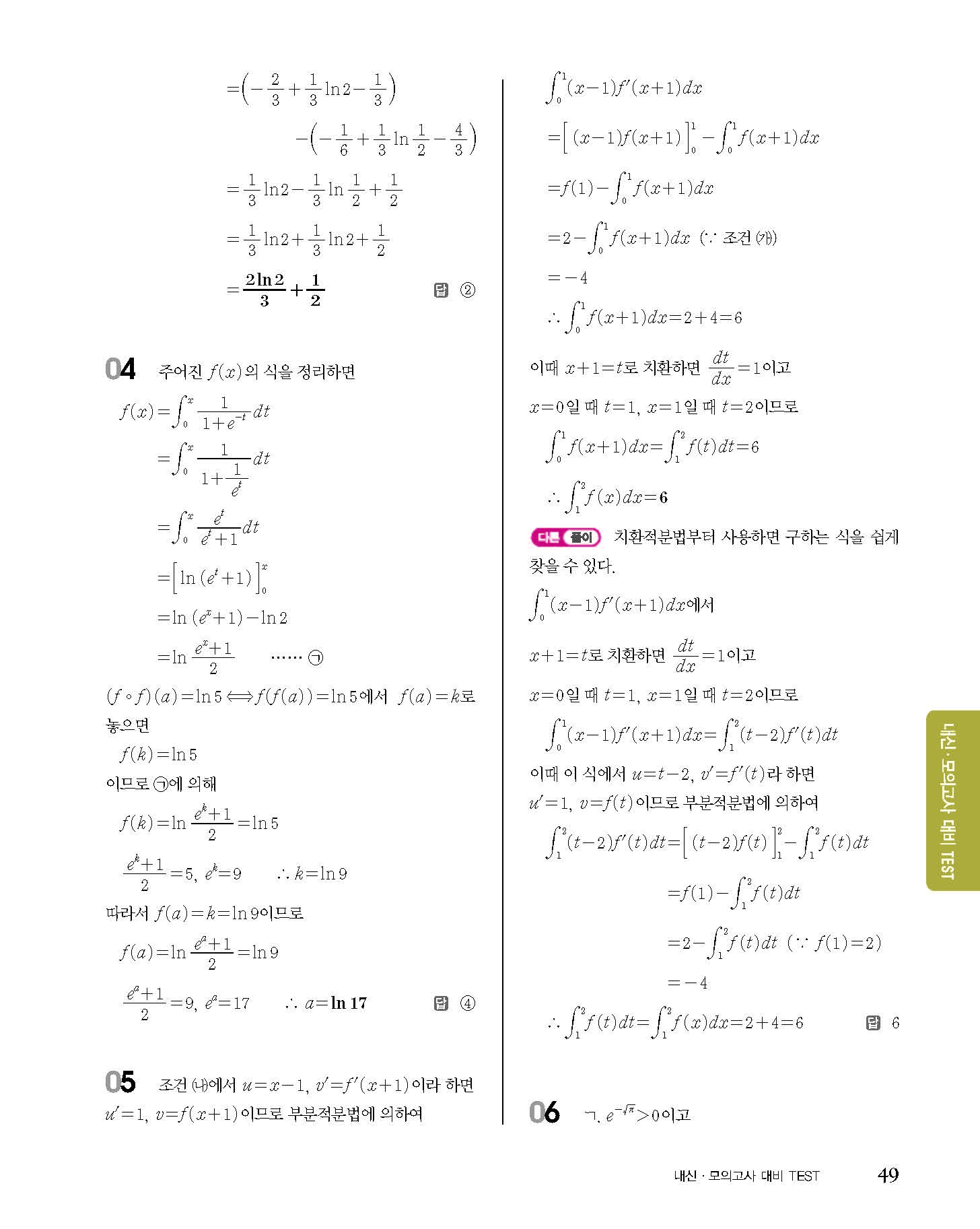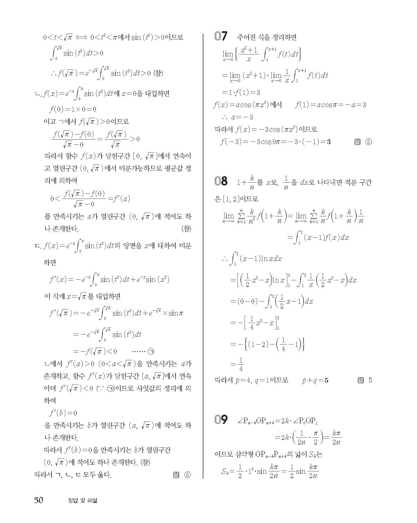 숨마쿰라우데 고등수학 미적분 내신 모의고사 대비 TEST 사진답지 빠른답지 모바일최적화