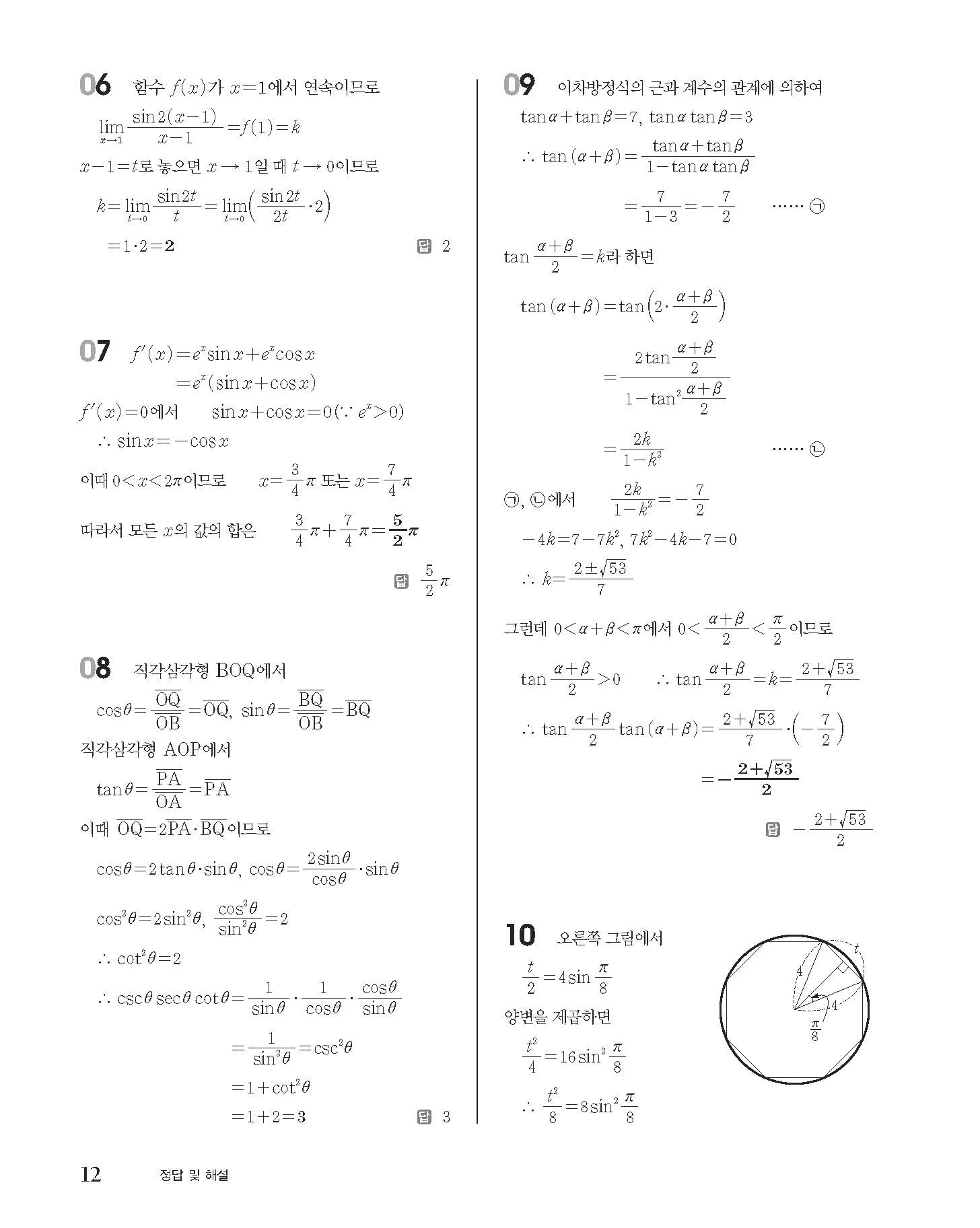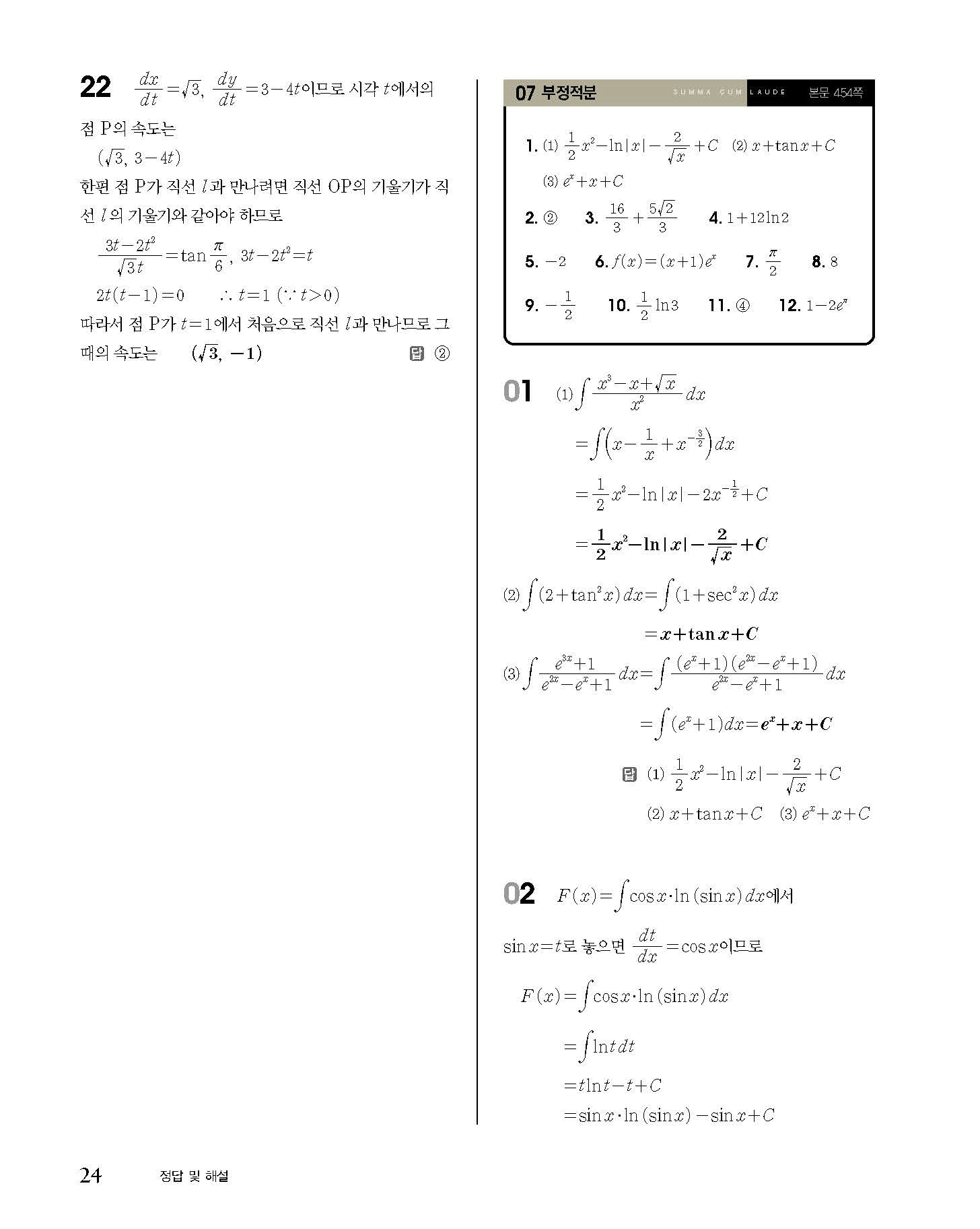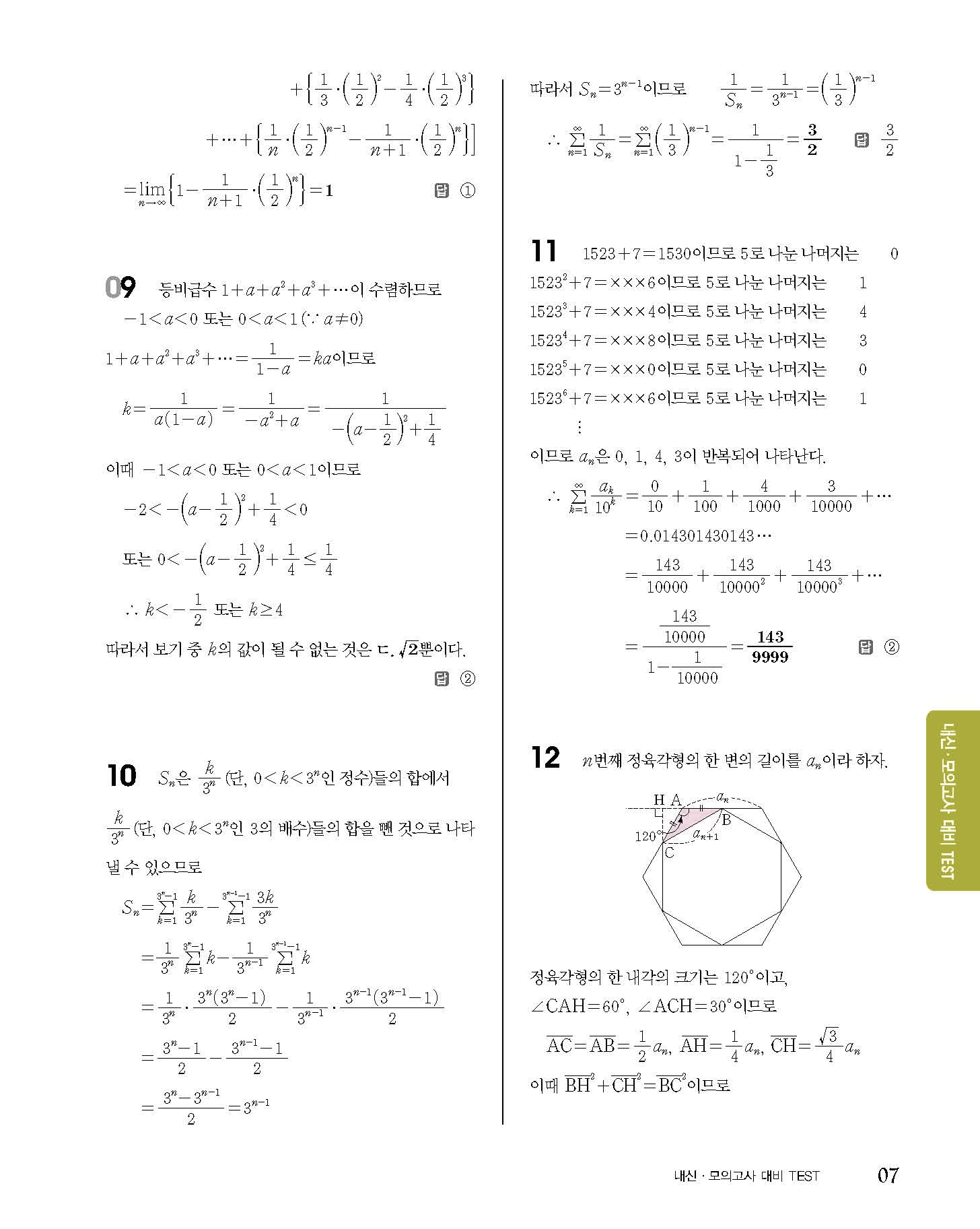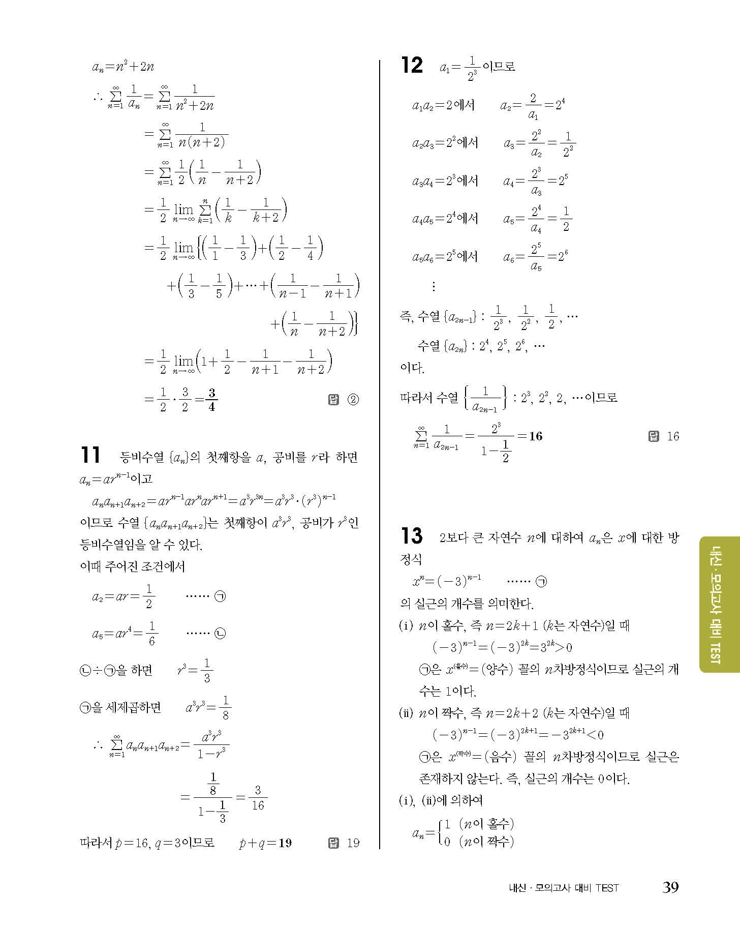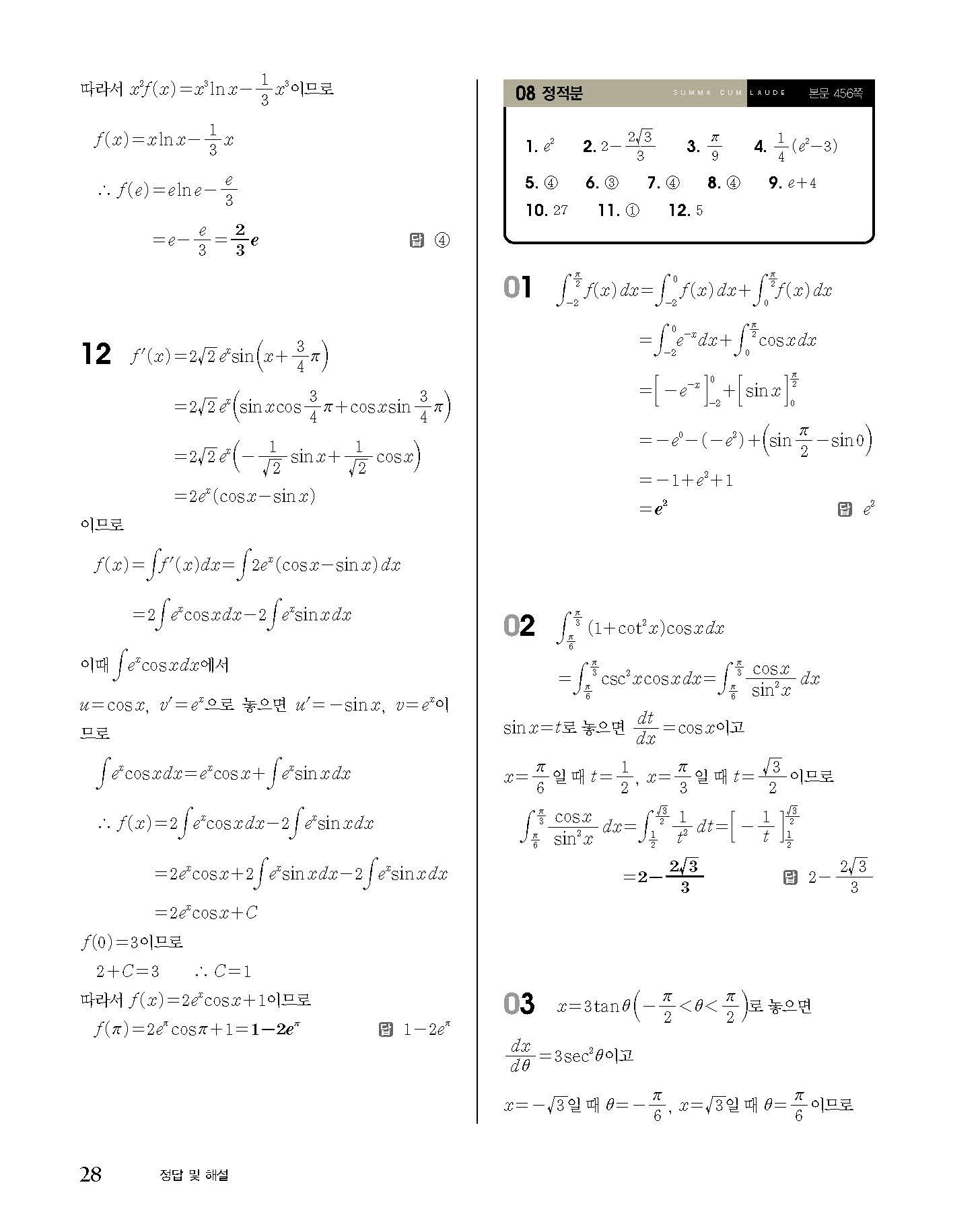 숨마쿰라우데 고등수학 미적분 내신 모의고사 대비 TEST 사진답지 빠른답지 모바일최적화