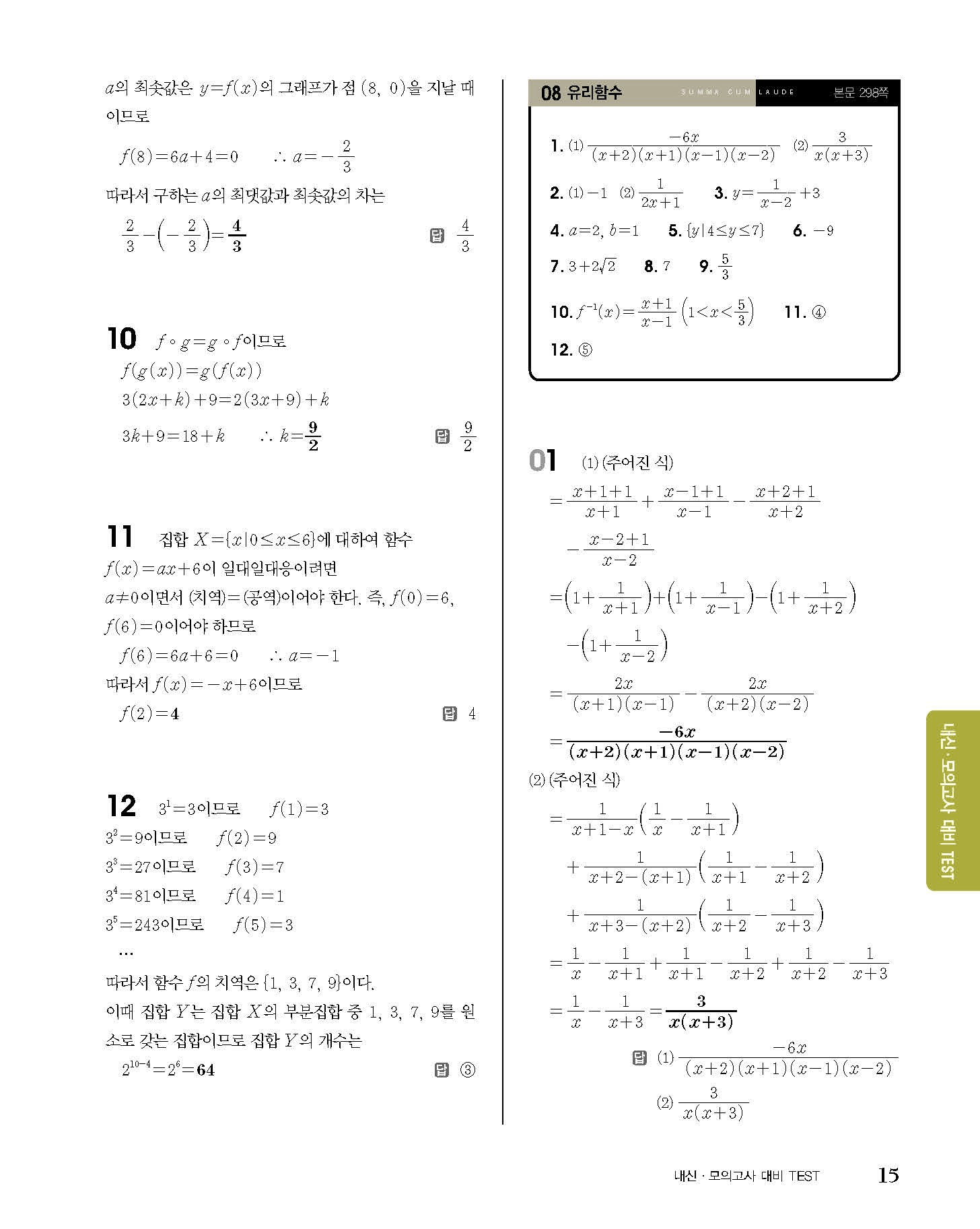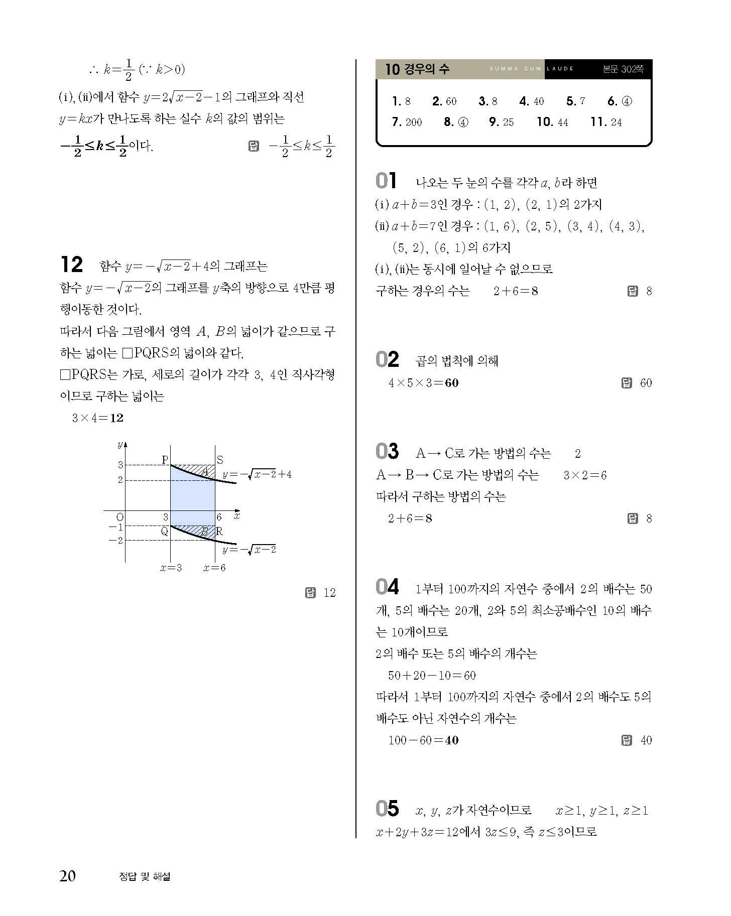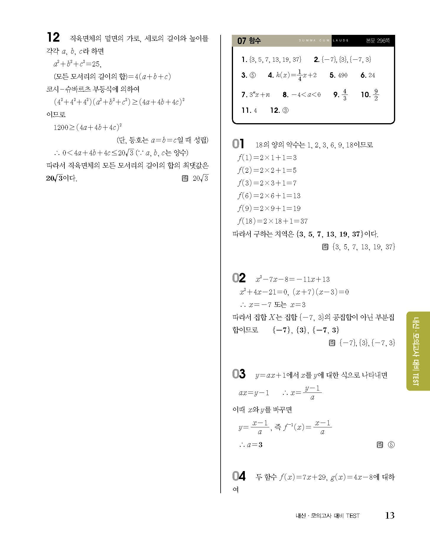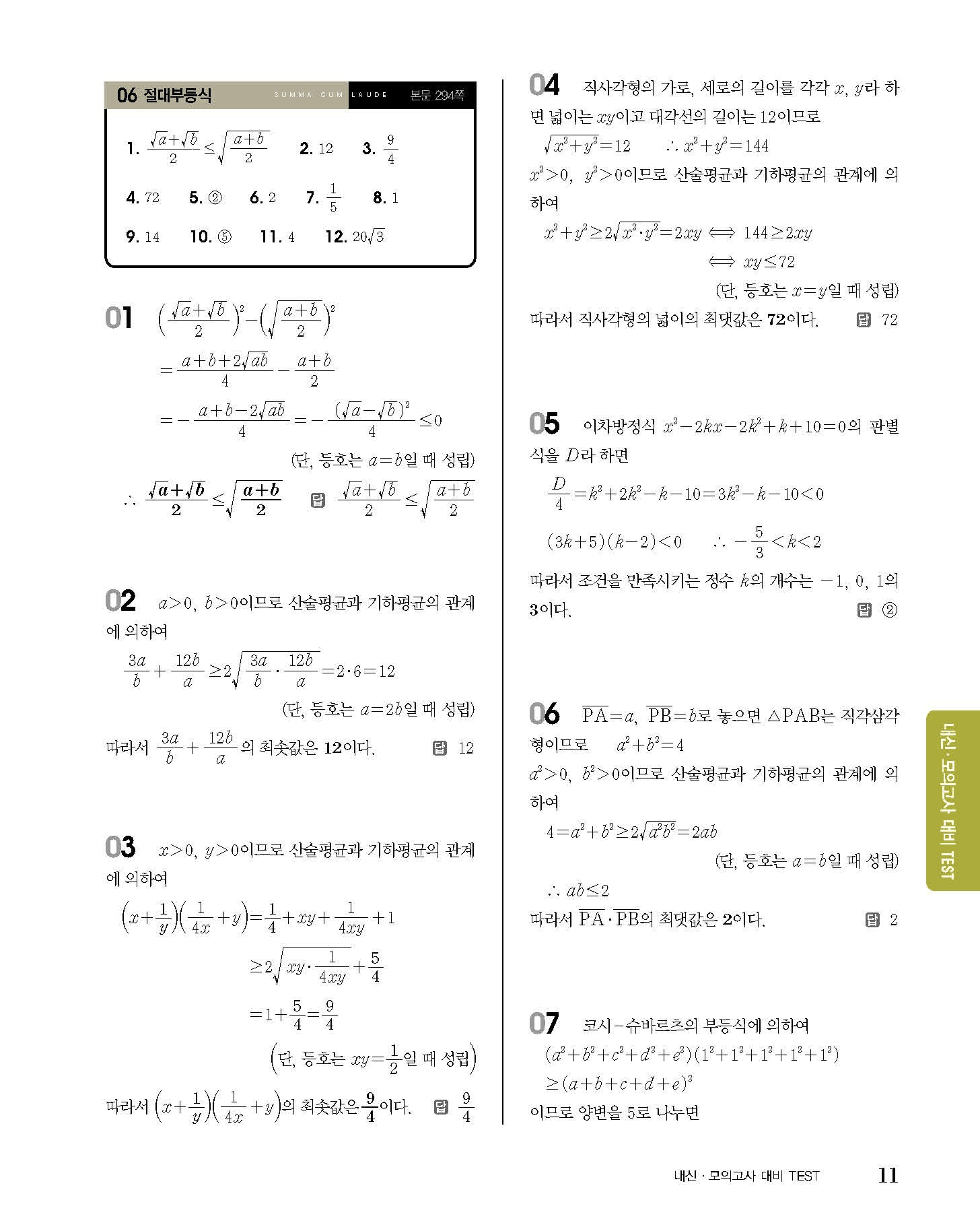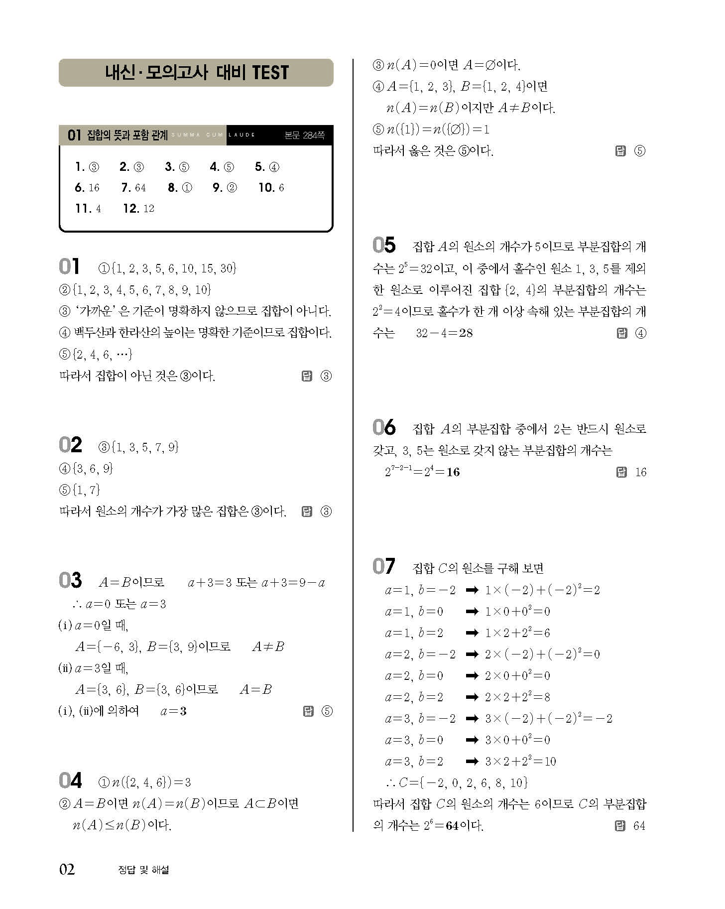 숨마쿰라우데 고등수학(하) 내신 모의고사 대비 TEST 사진답지 빠른답지 모바일최적화
