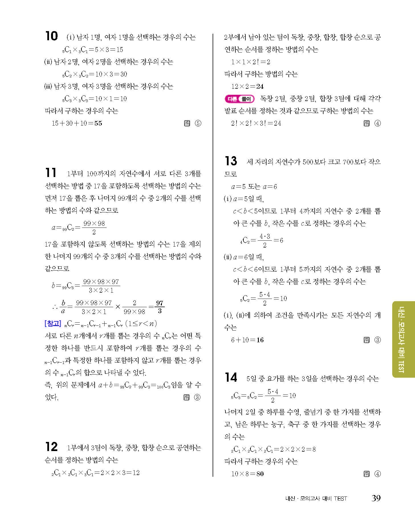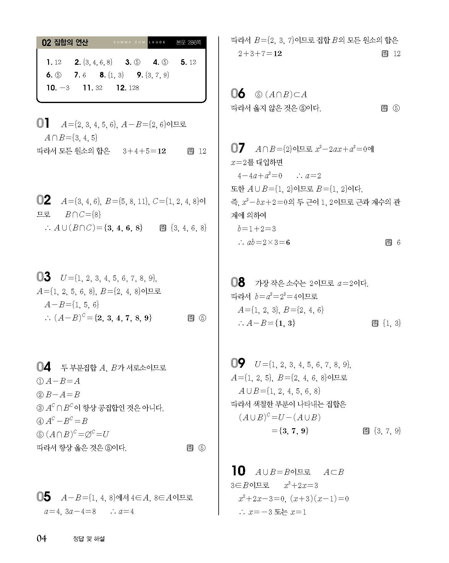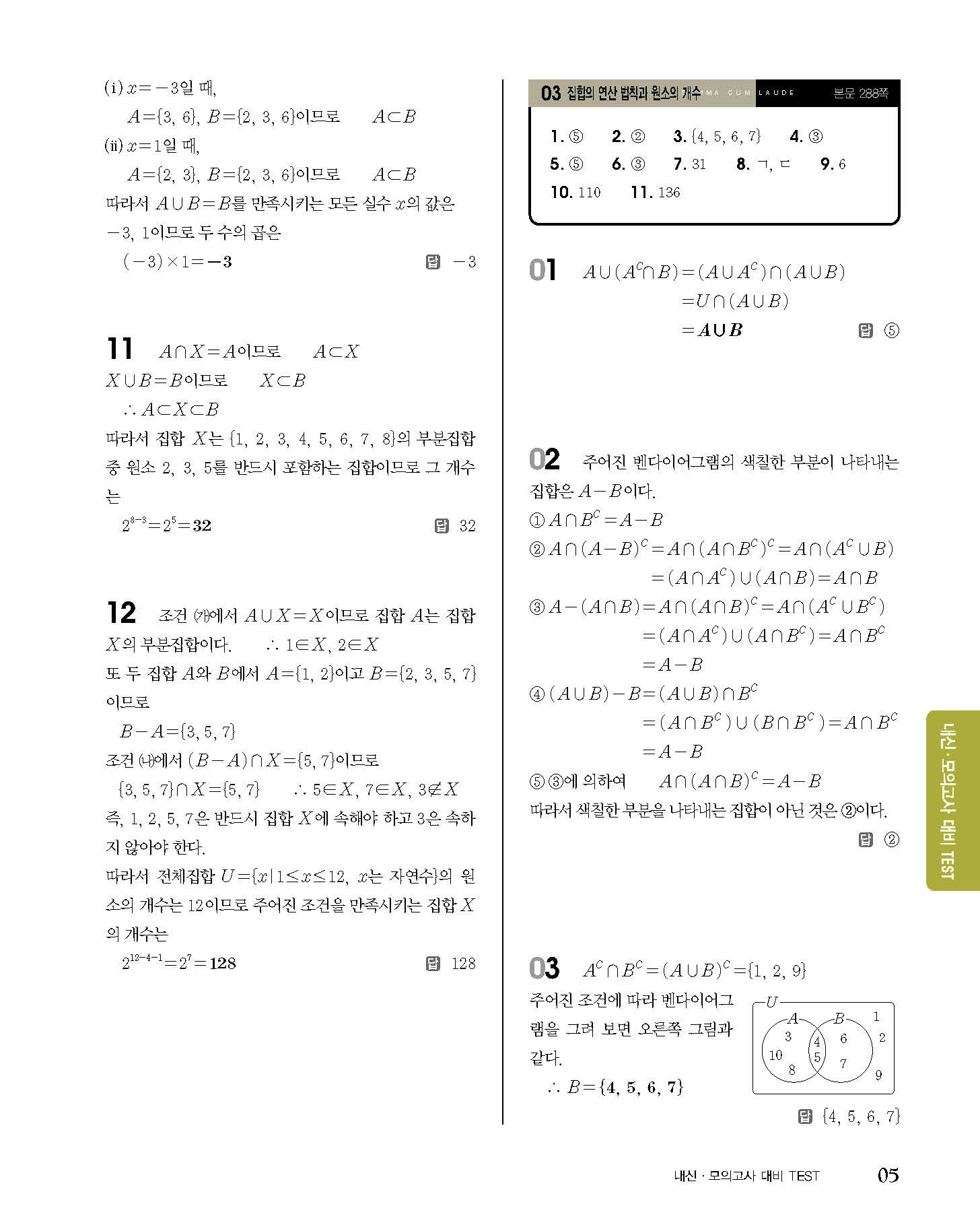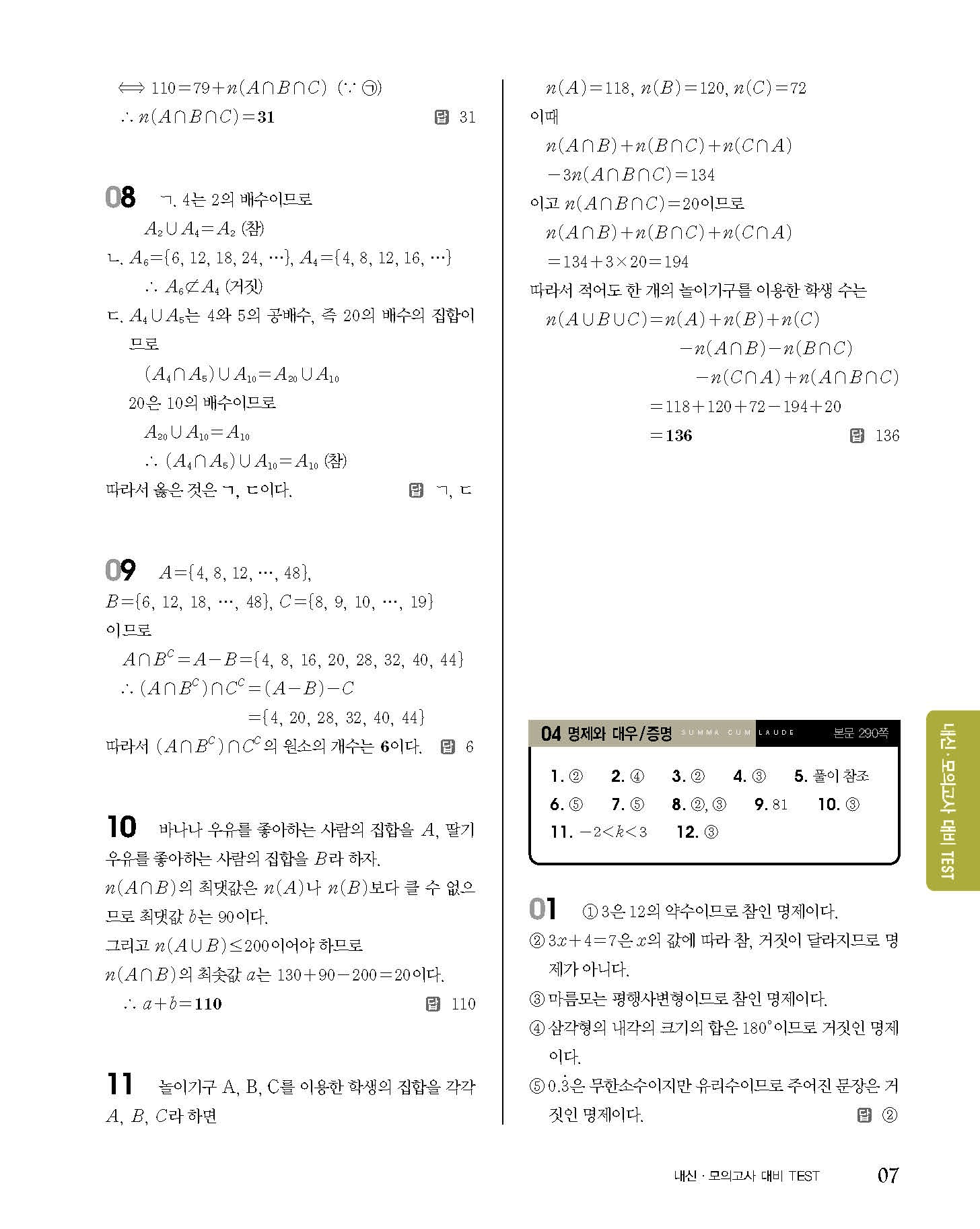숨마쿰라우데 고등수학(하) 내신 모의고사 대비 TEST 사진답지 빠른답지 모바일최적화