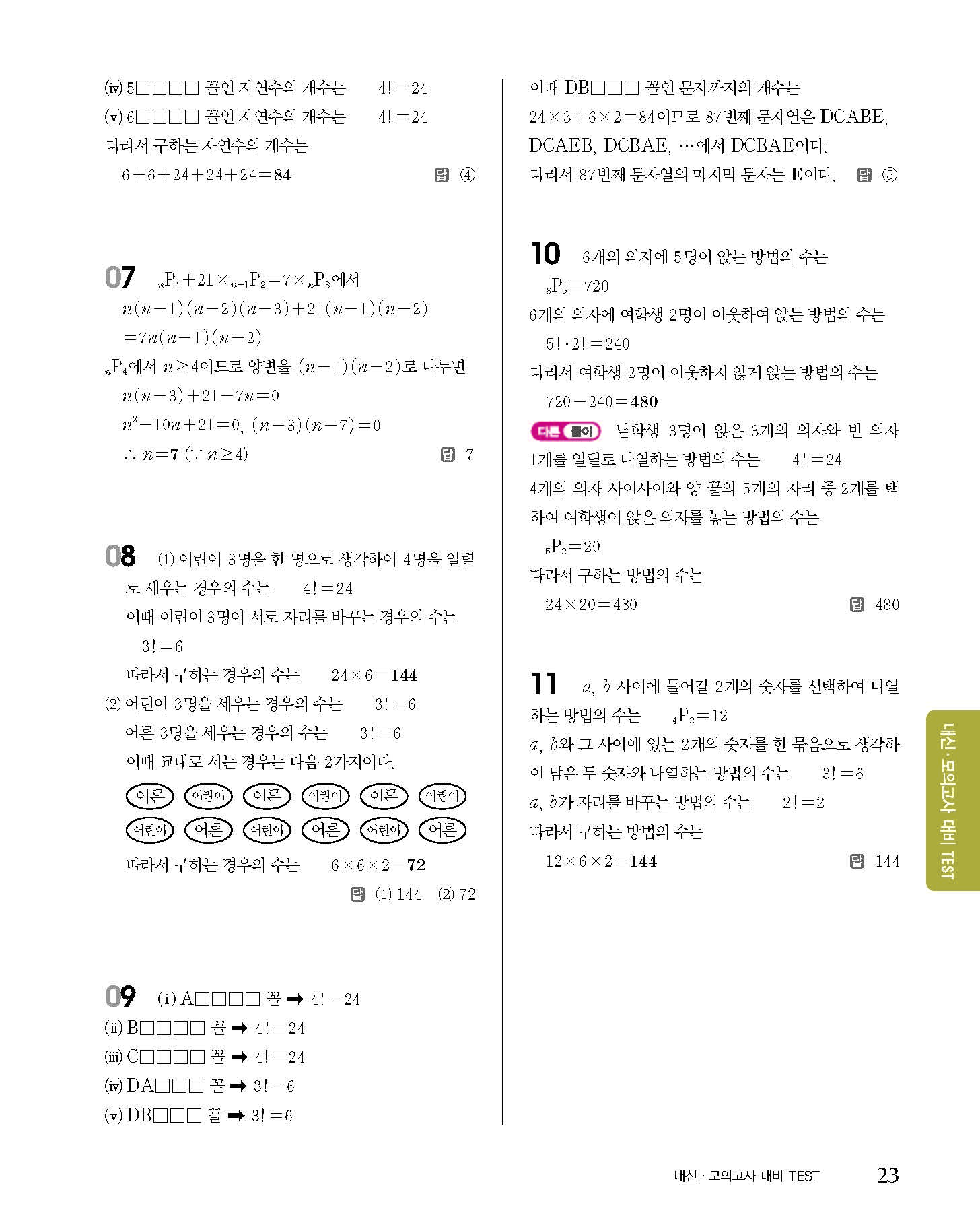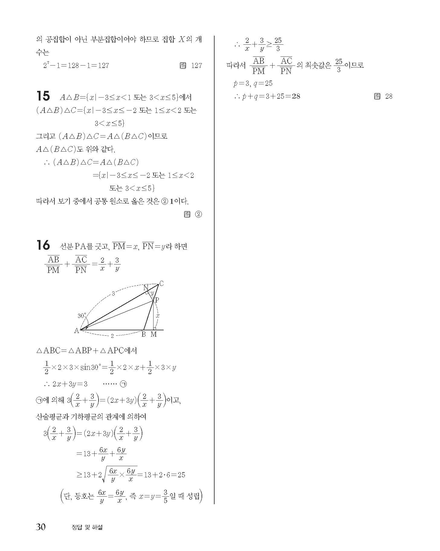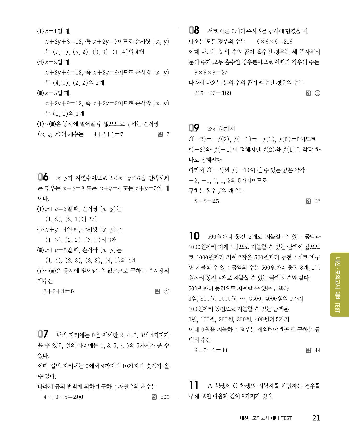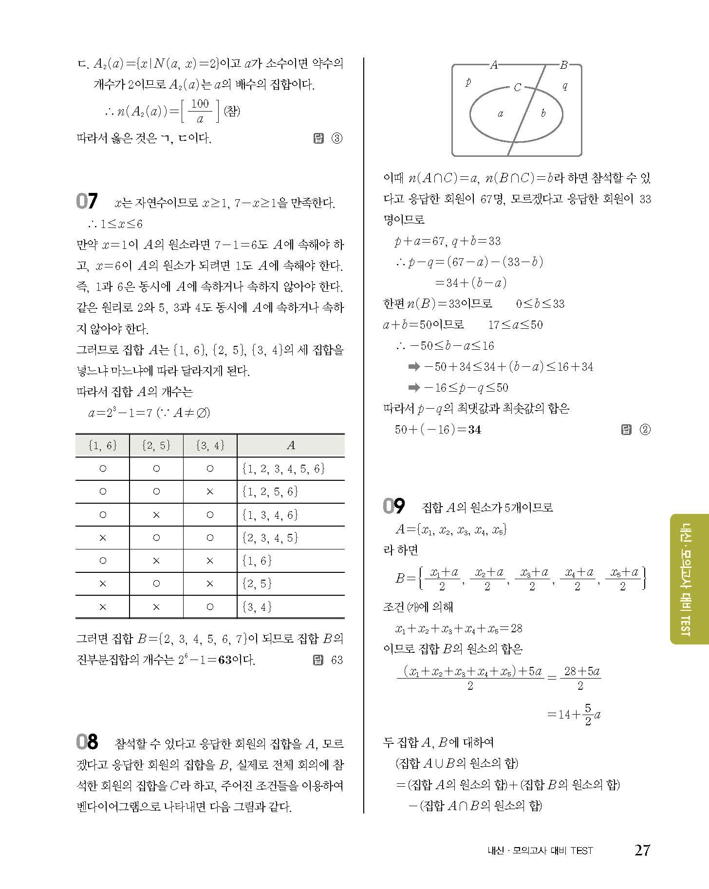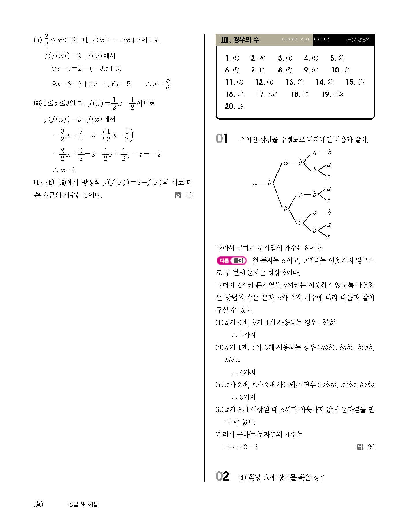숨마쿰라우데 고등수학(하) 내신 모의고사 대비 TEST 사진답지 빠른답지 모바일최적화