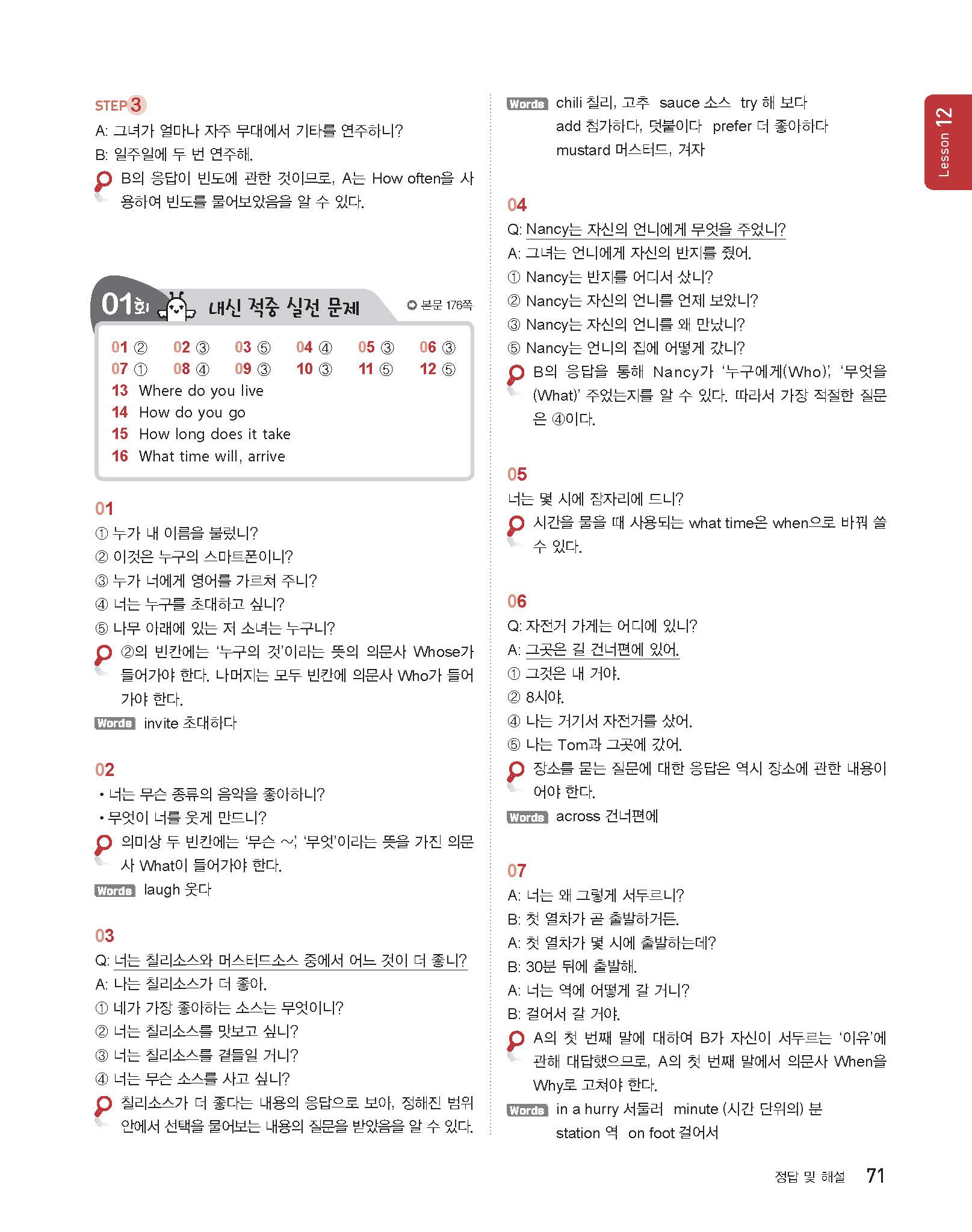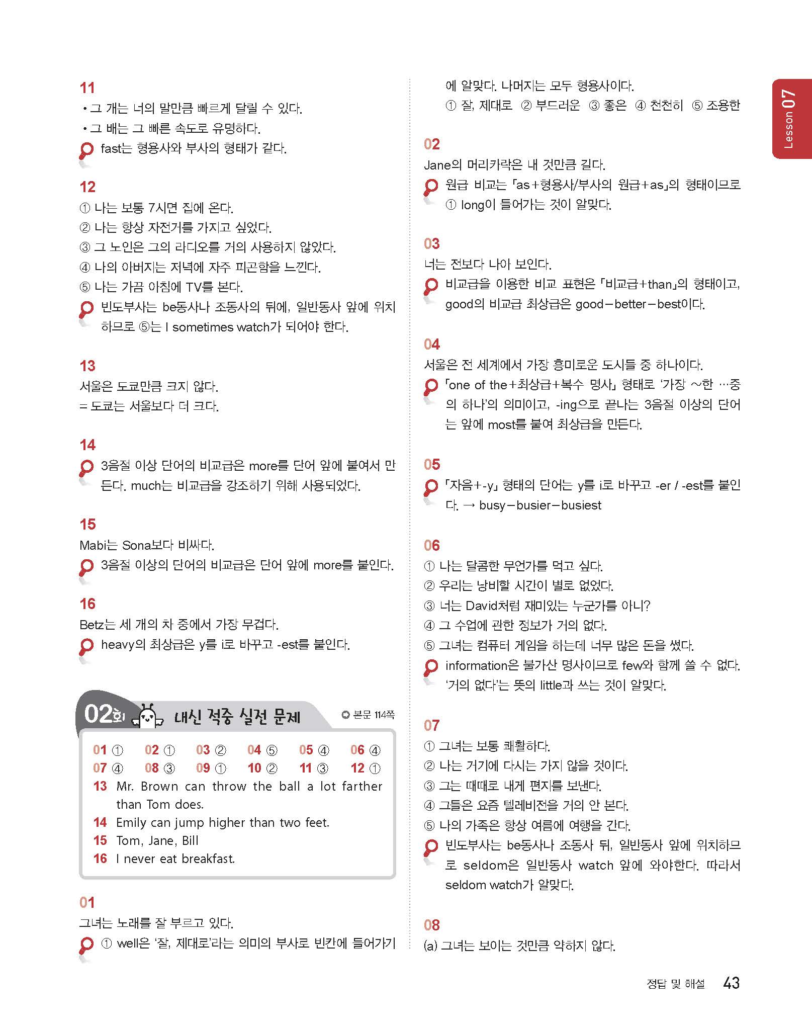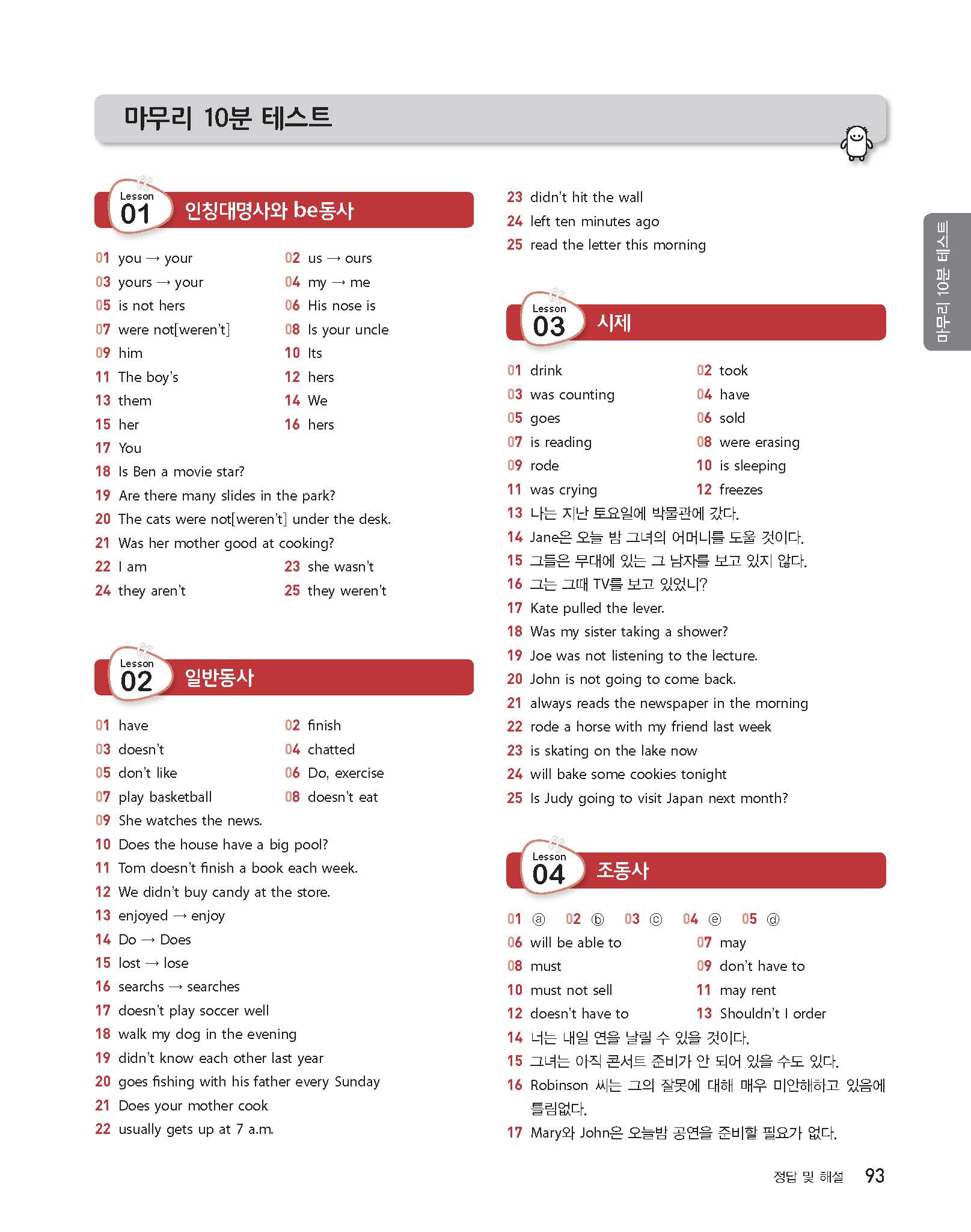 숨마쿰라우데 주니어 영문법메뉴얼 1학년 서브노트 사진답지 빠른답지 모바일최적화