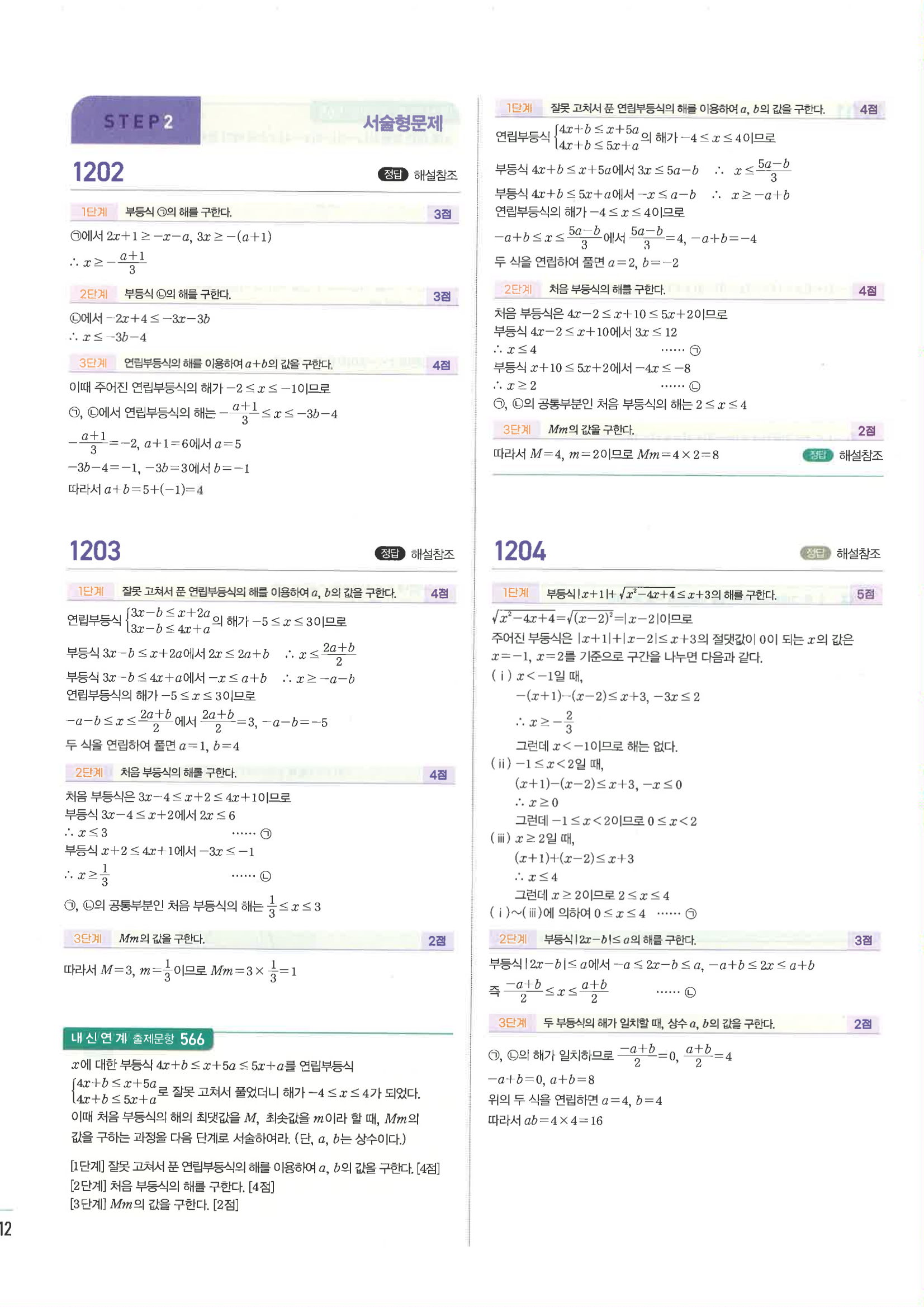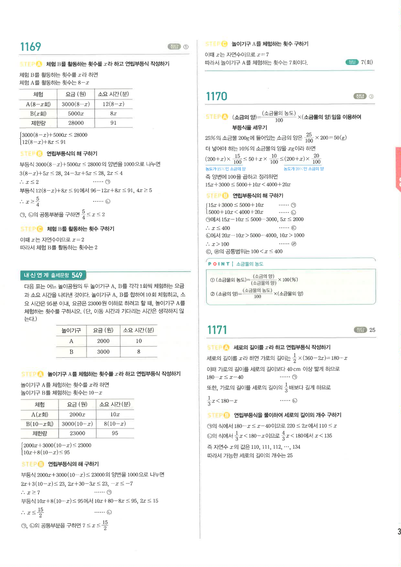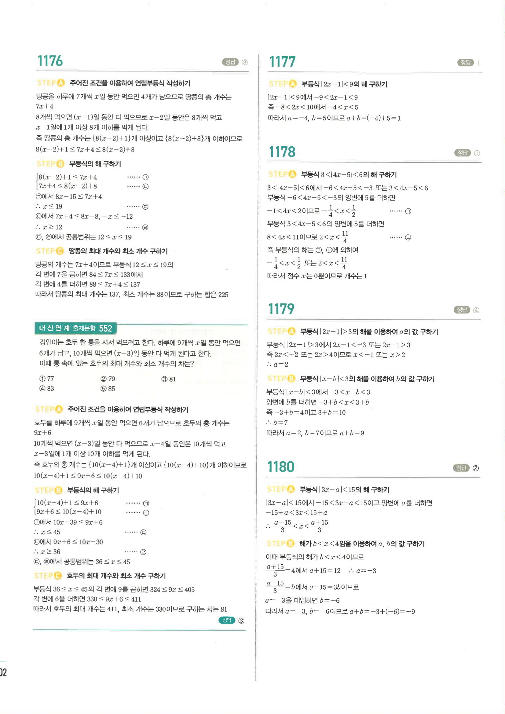 마플시너지 공통수학1 단원별답지 2-05 일차부등식