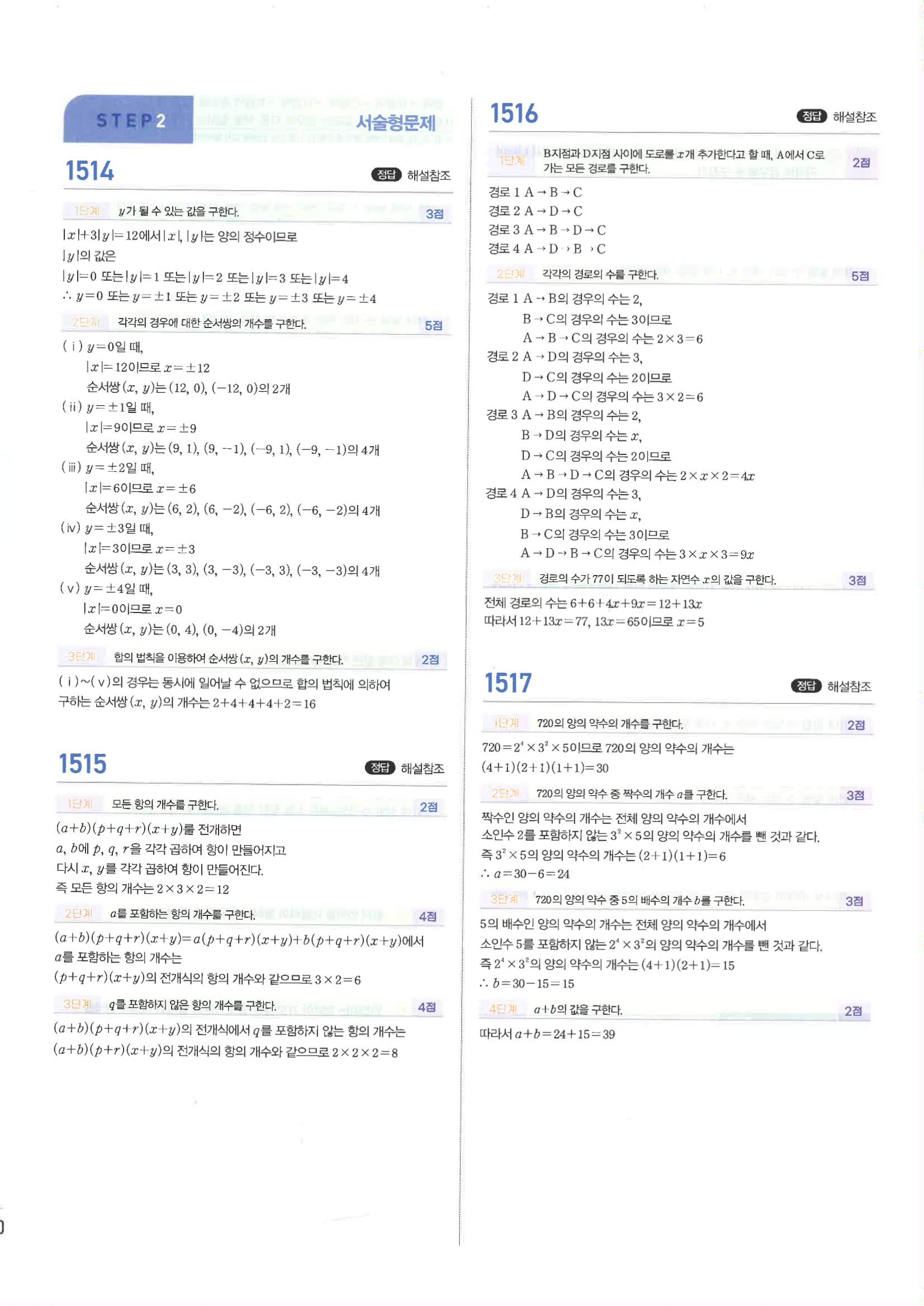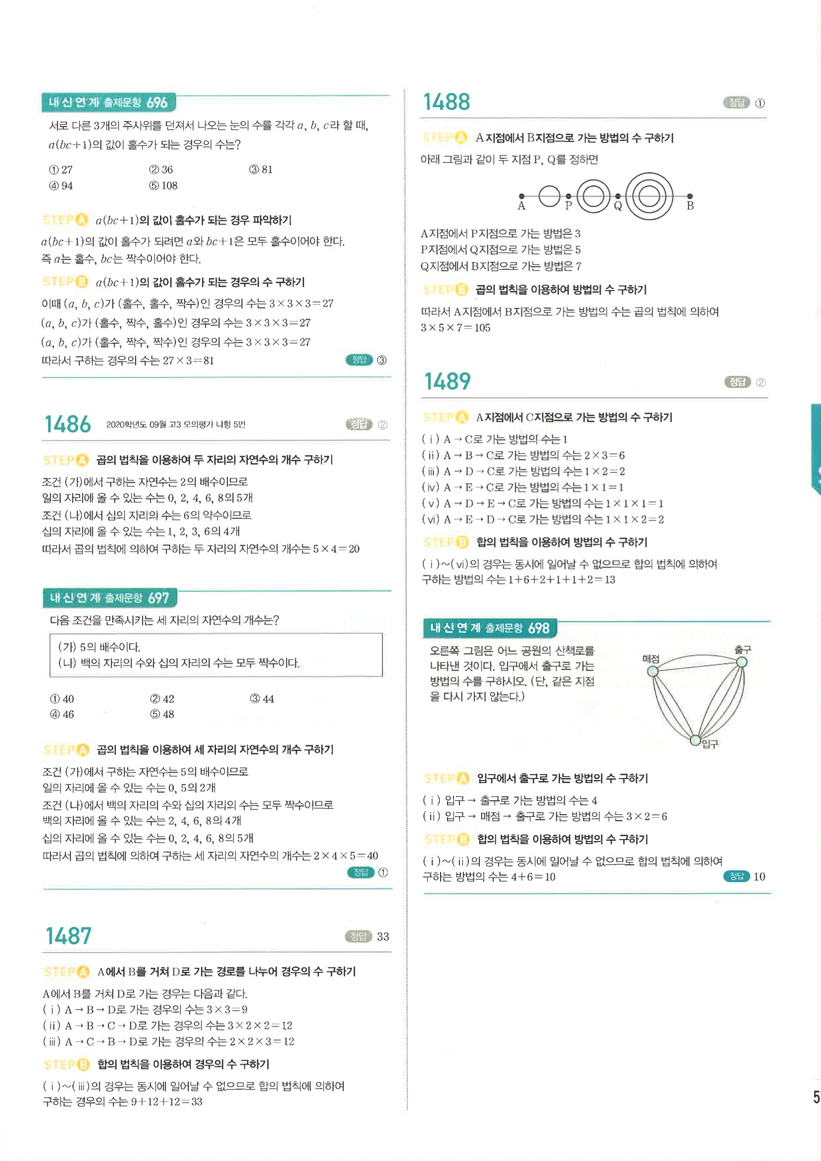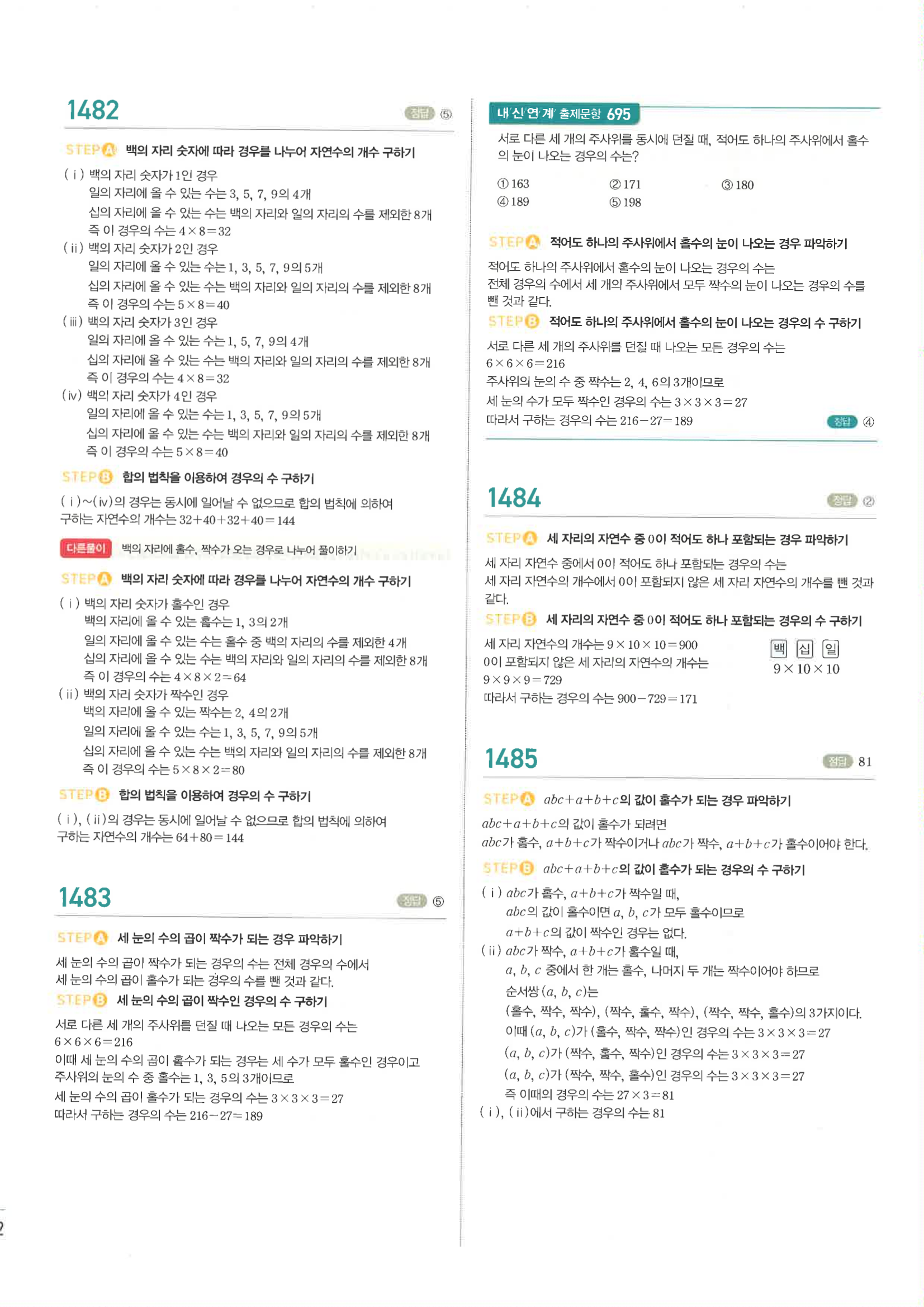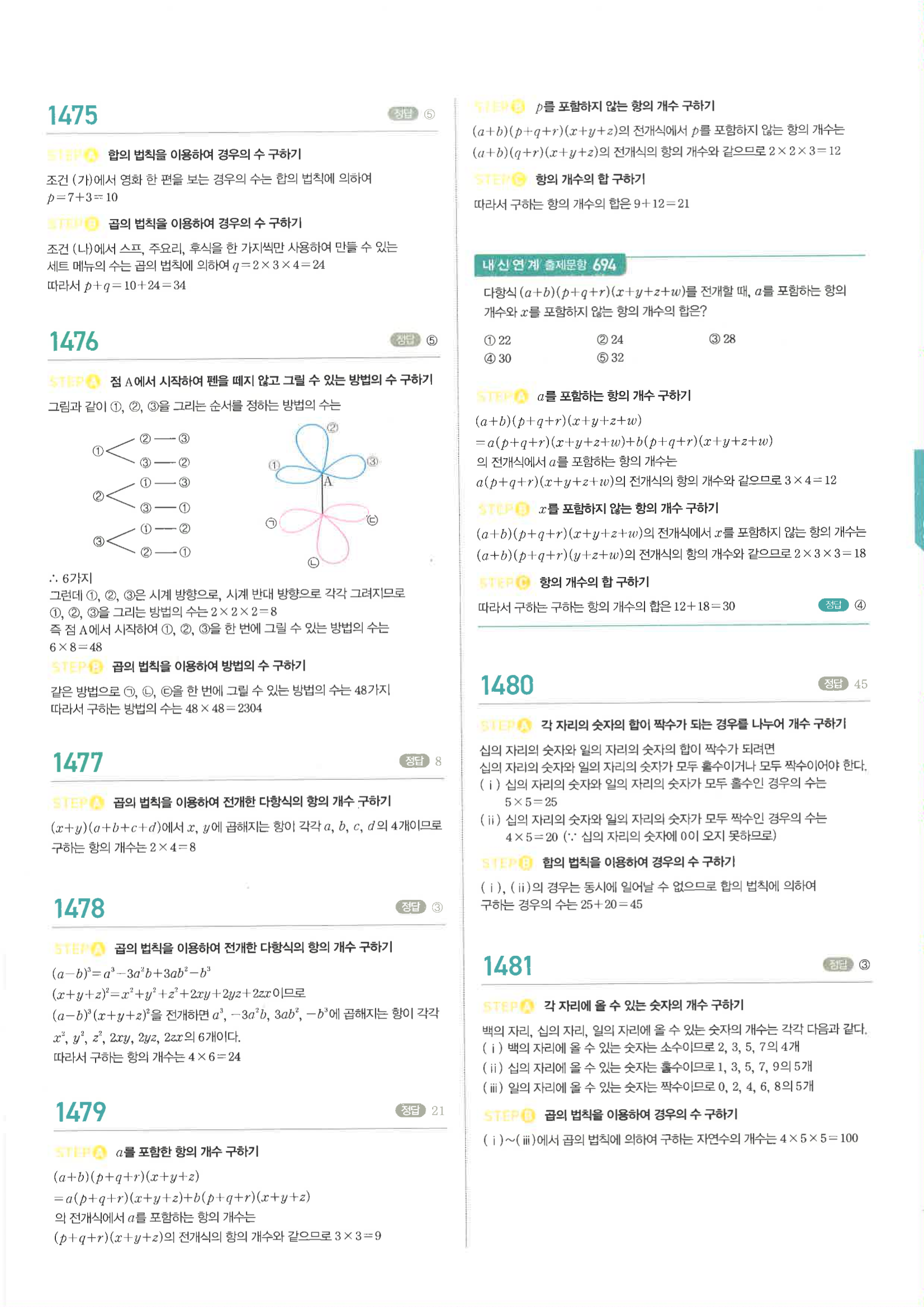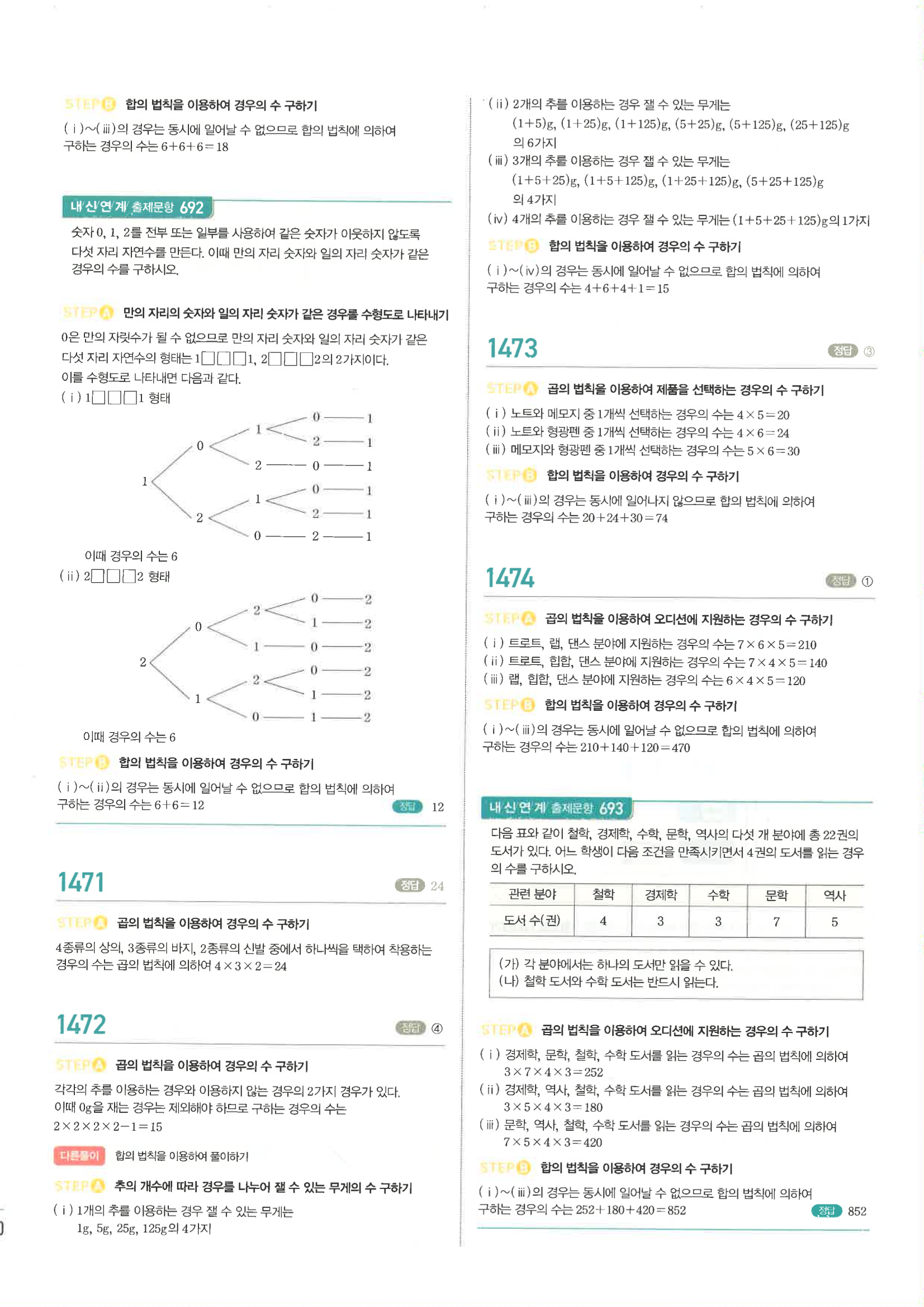 마플시너지 공통수학1 단원별답지 3-01 경우의수
