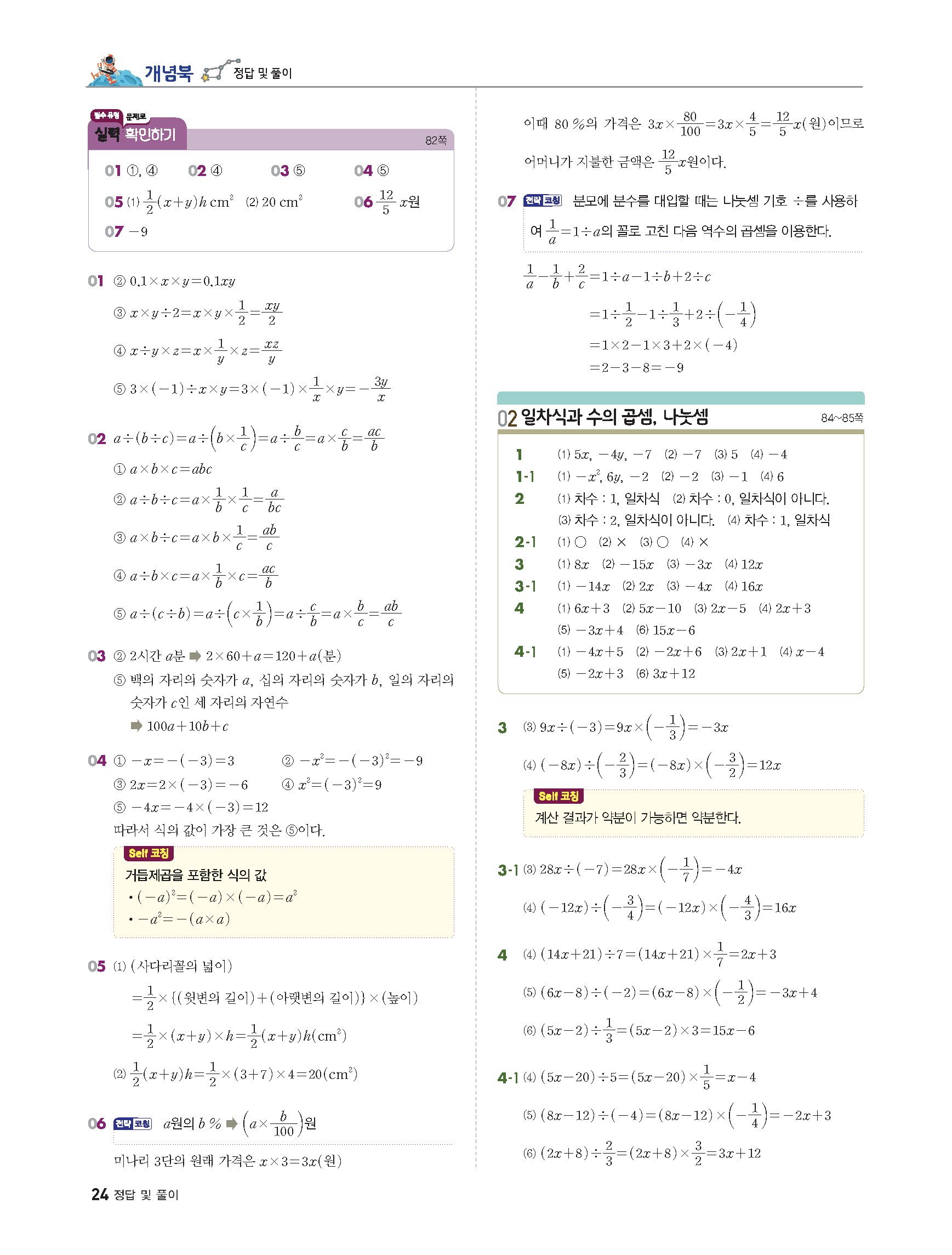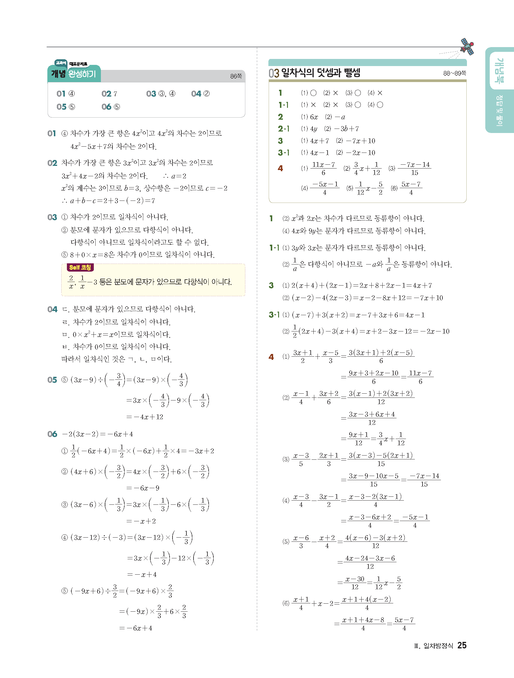 빨리이해하는수학 1-1 답지 빠른답지 사진답지 모바일최적화