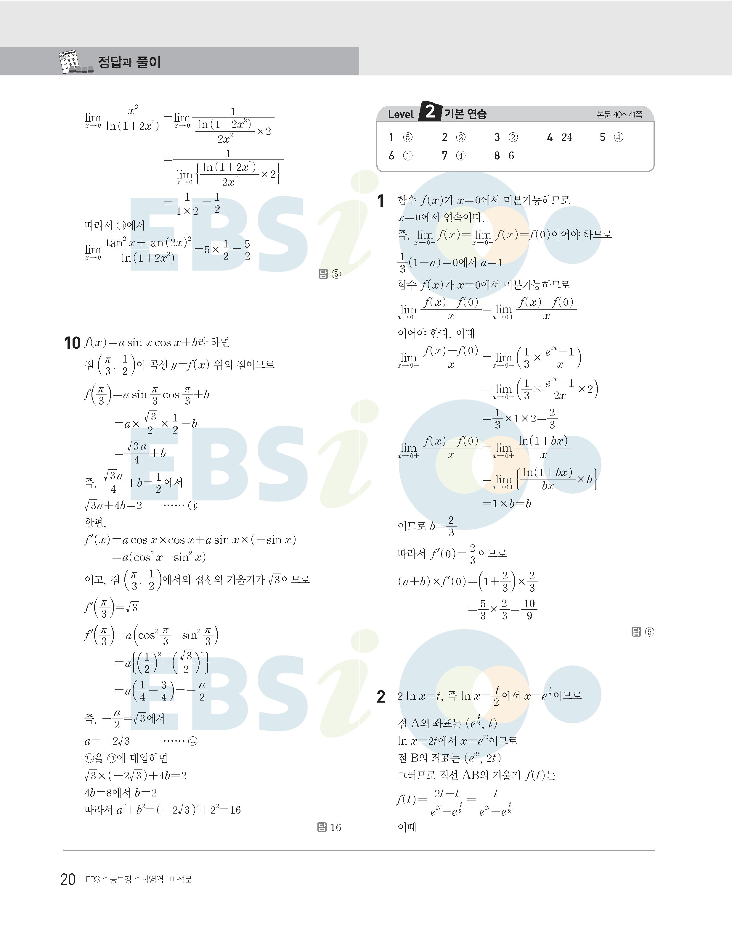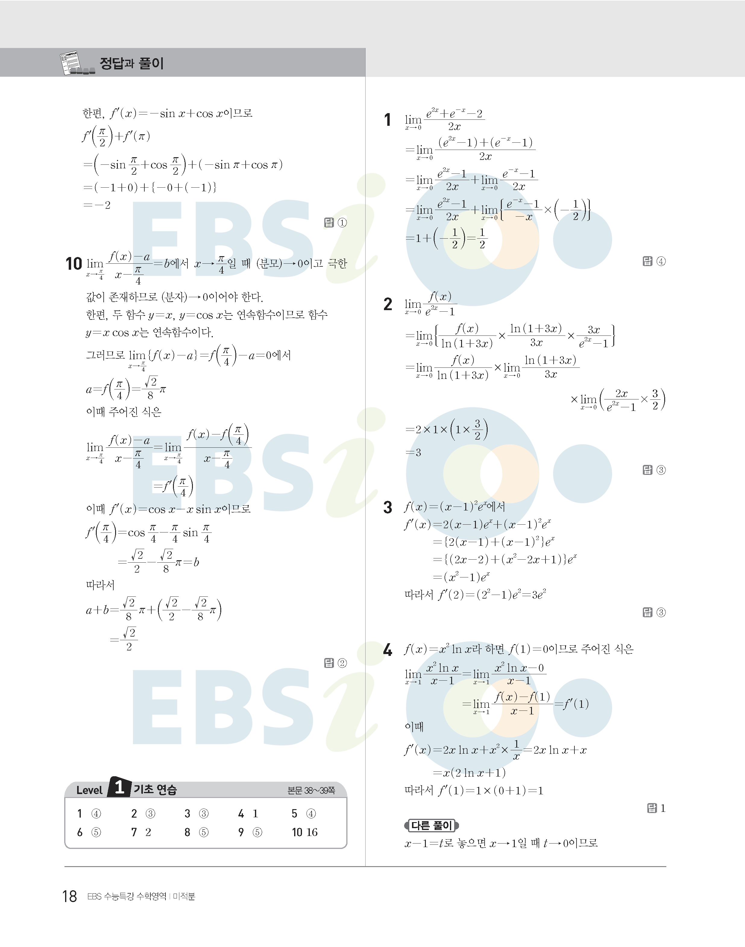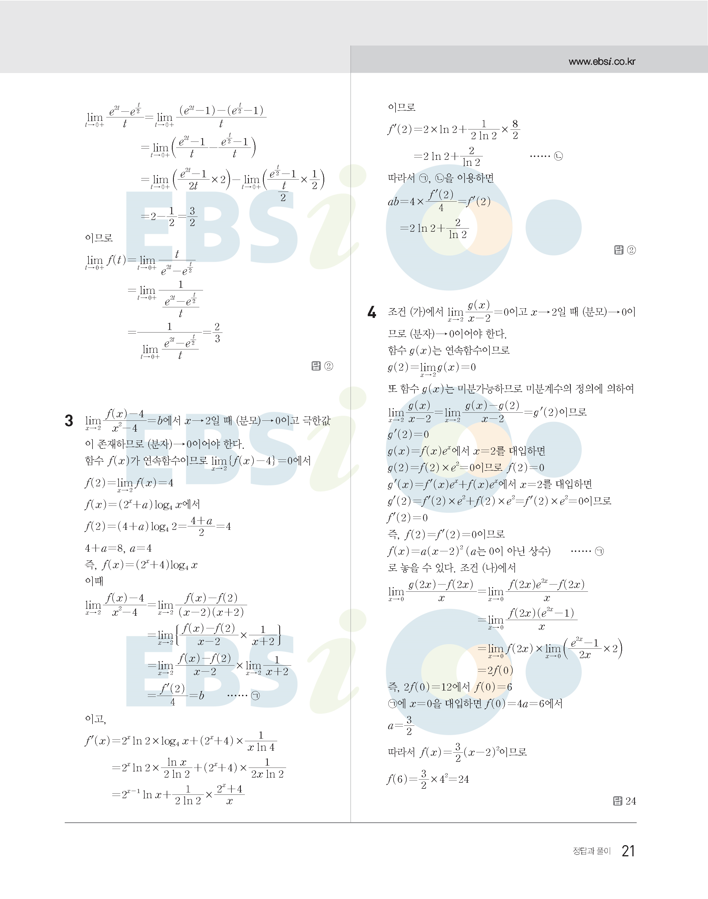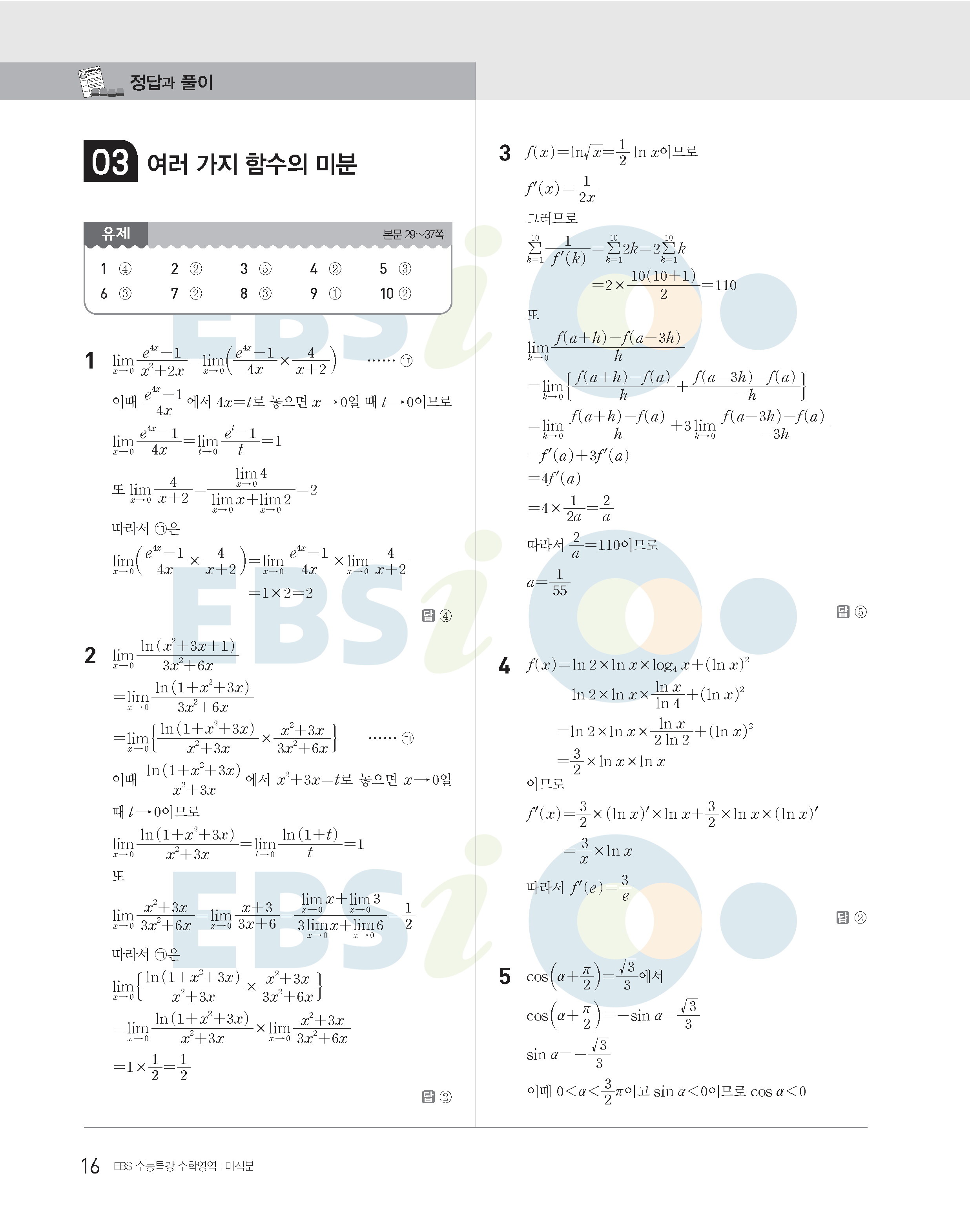 2022수능특강 미적분 답지 해설지 사진답지 빠른답지 모바일최적화