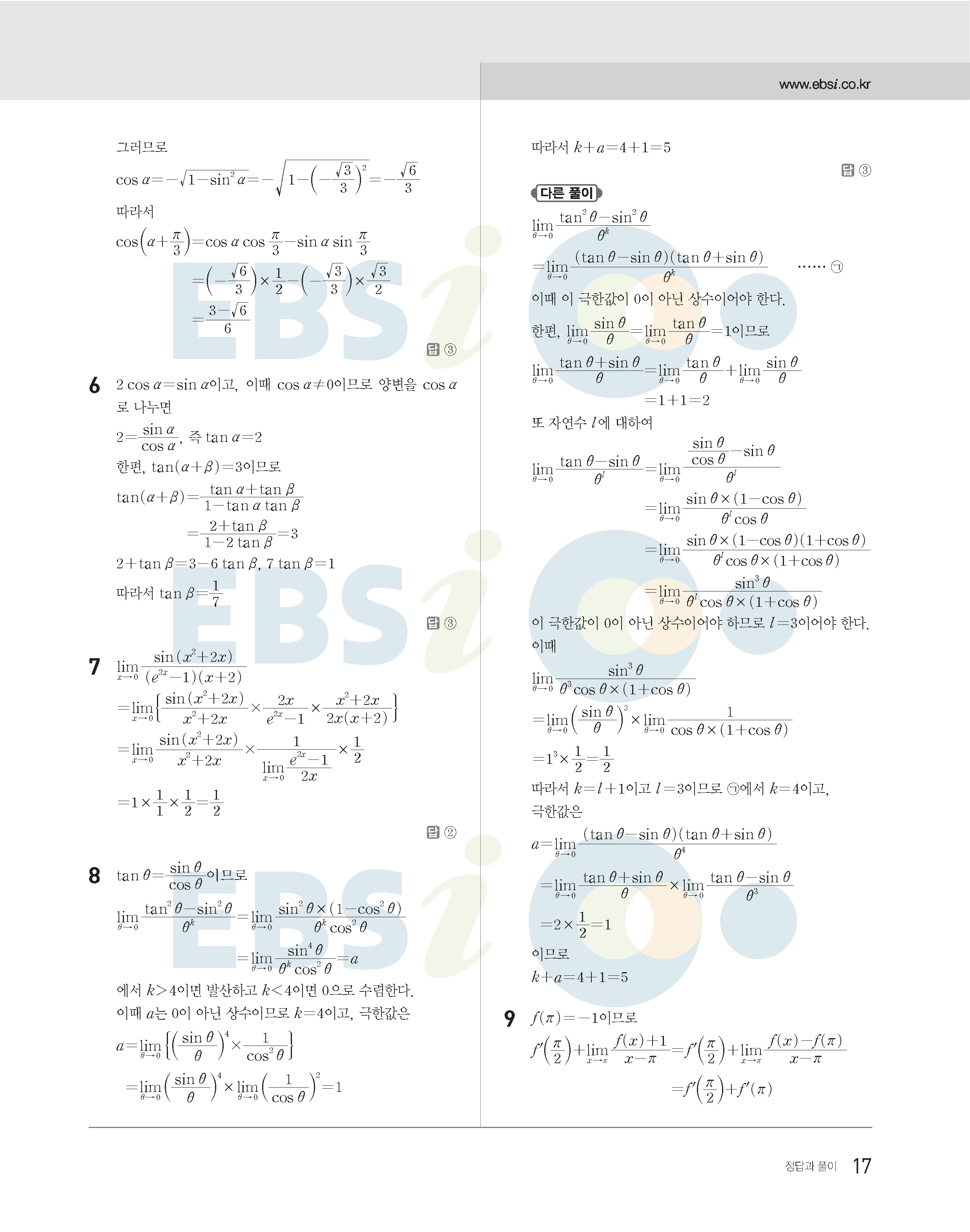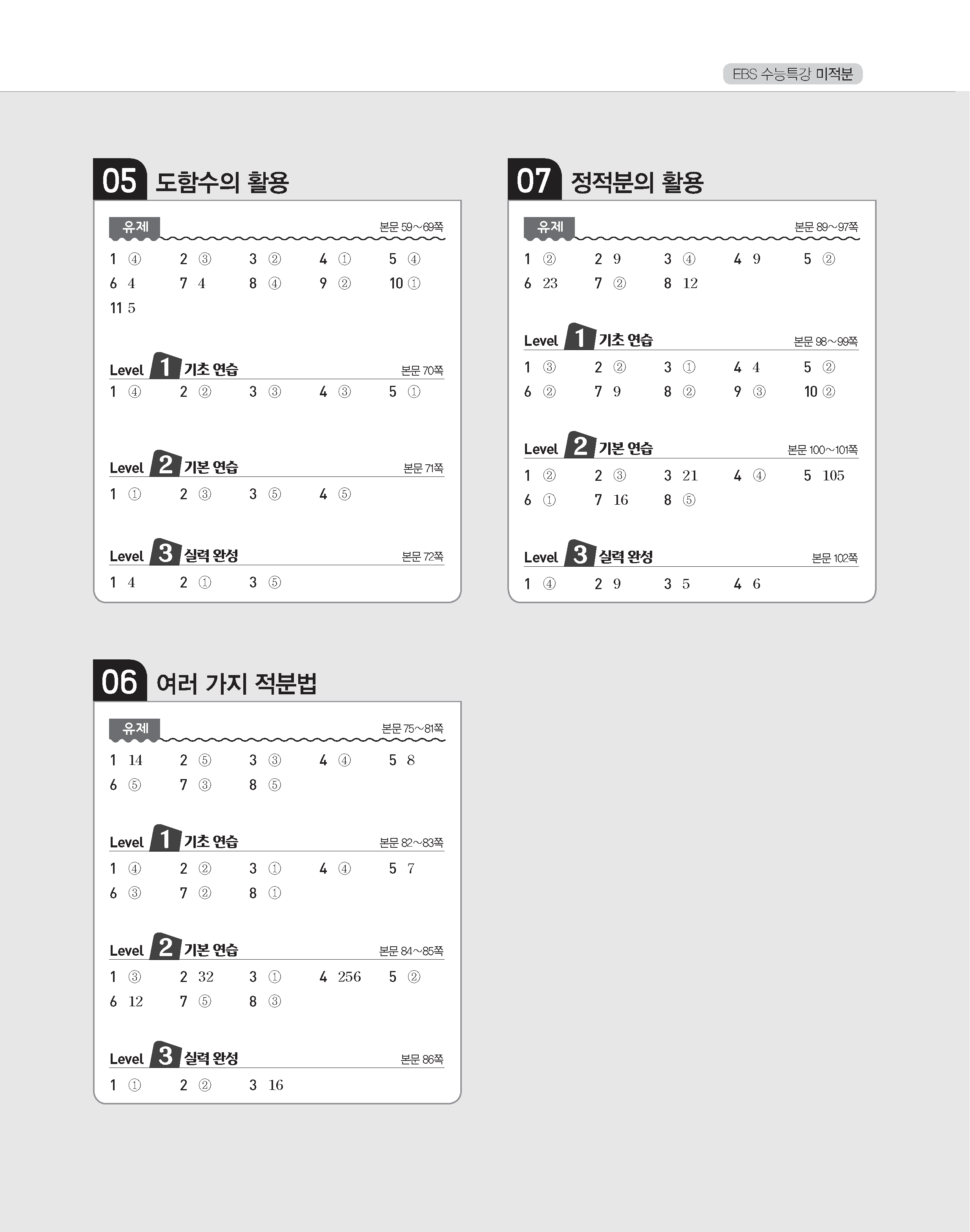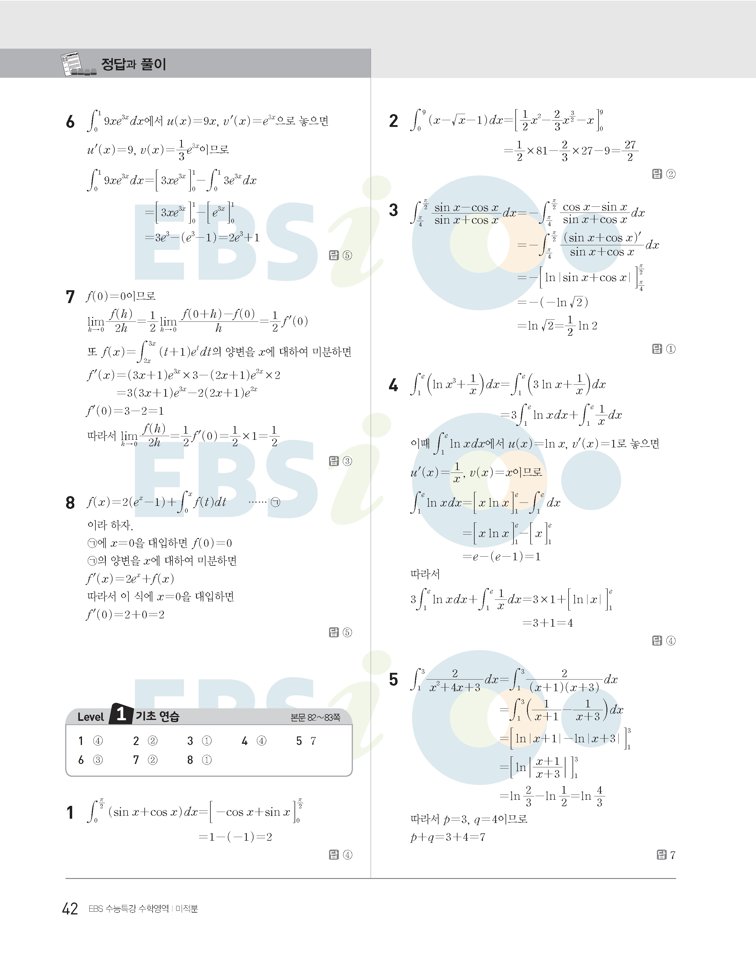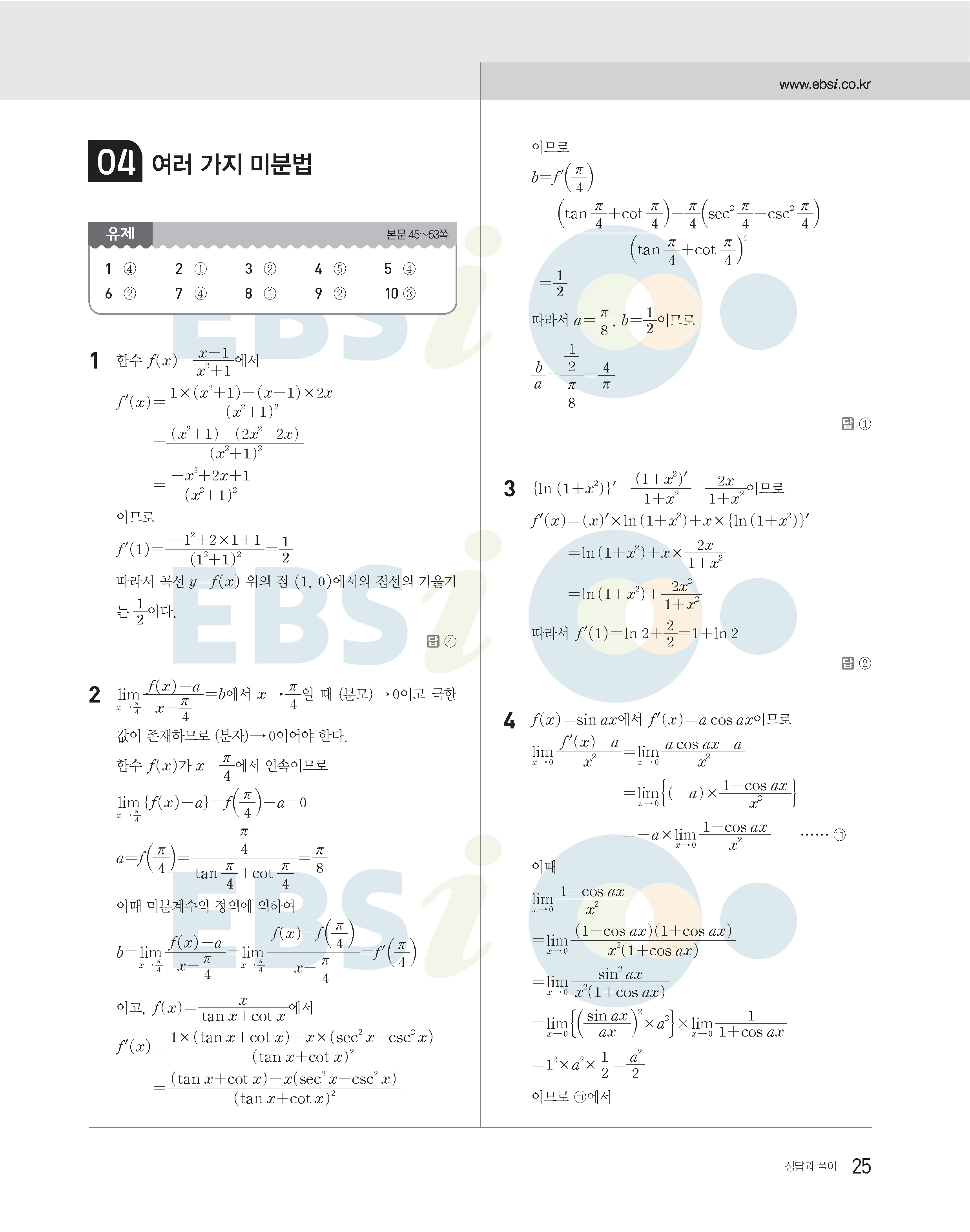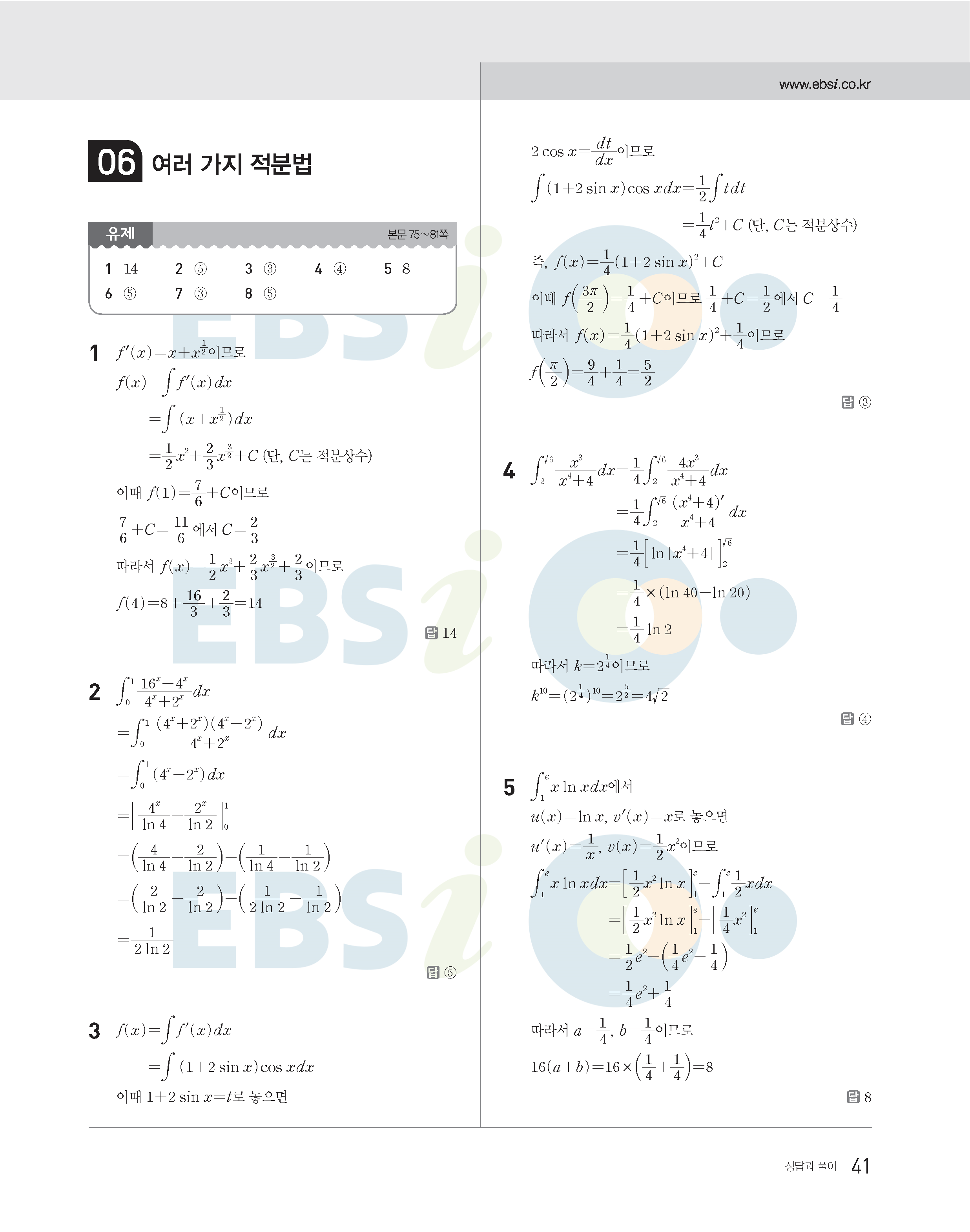 2022수능특강 미적분 답지 해설지 사진답지 빠른답지 모바일최적화