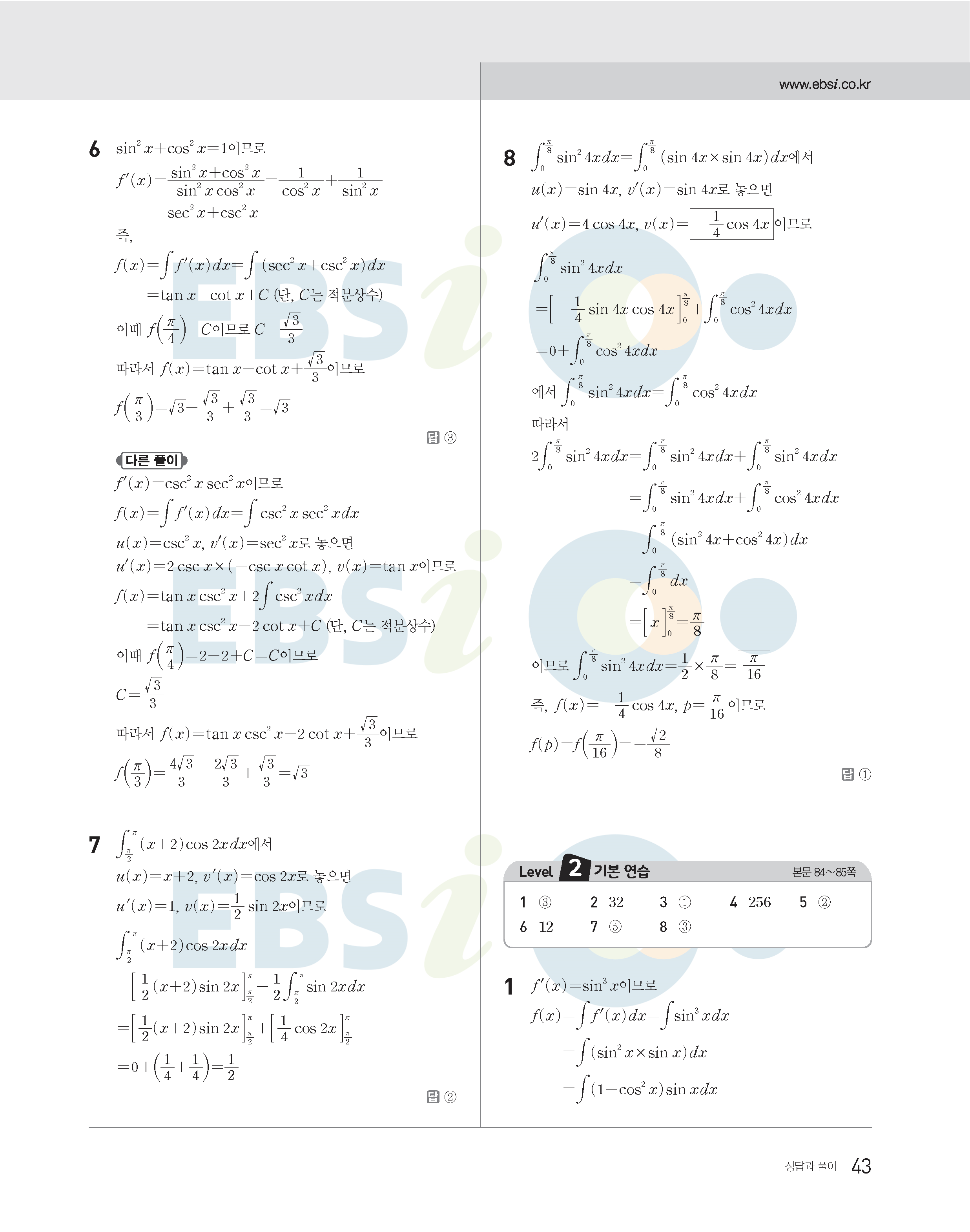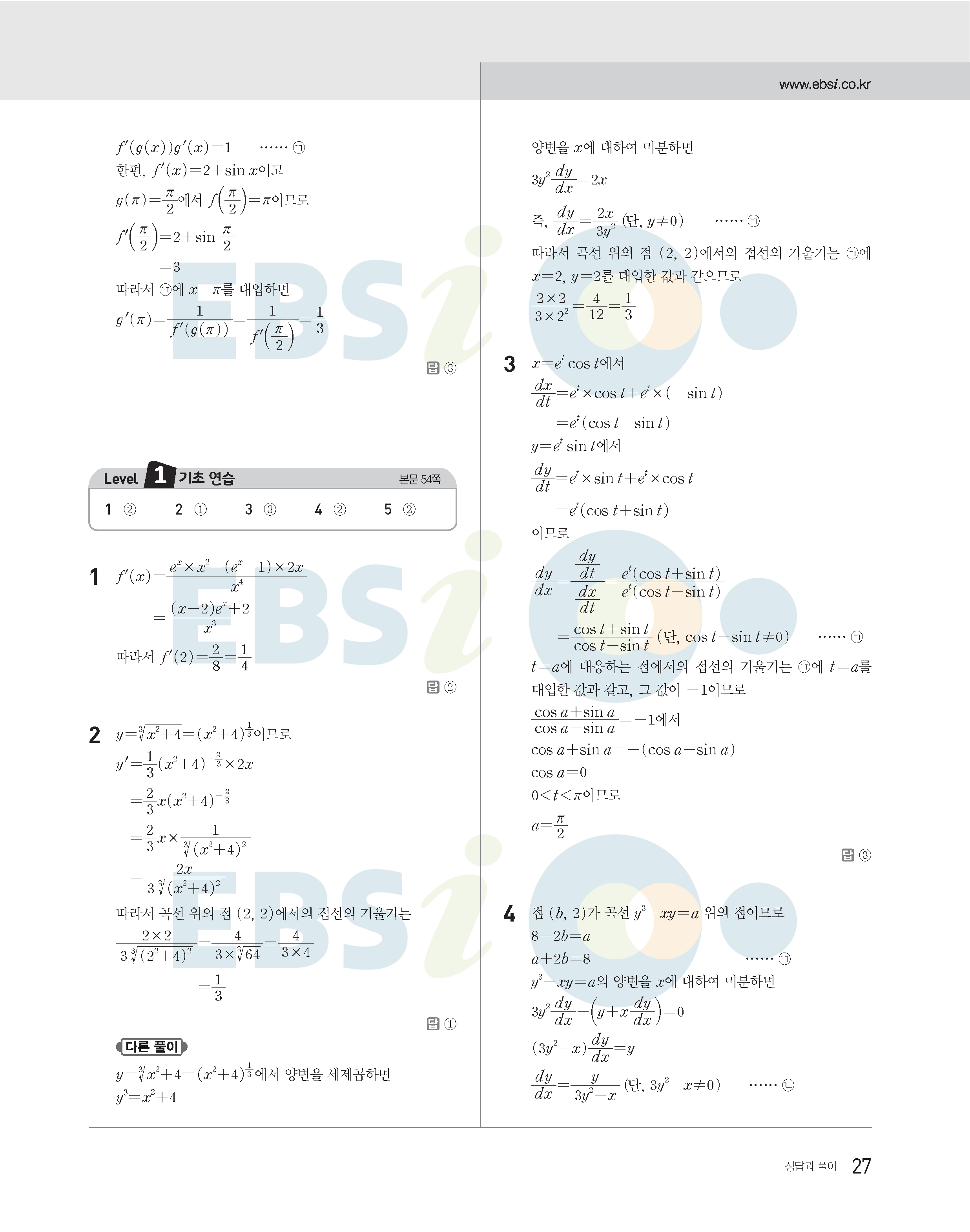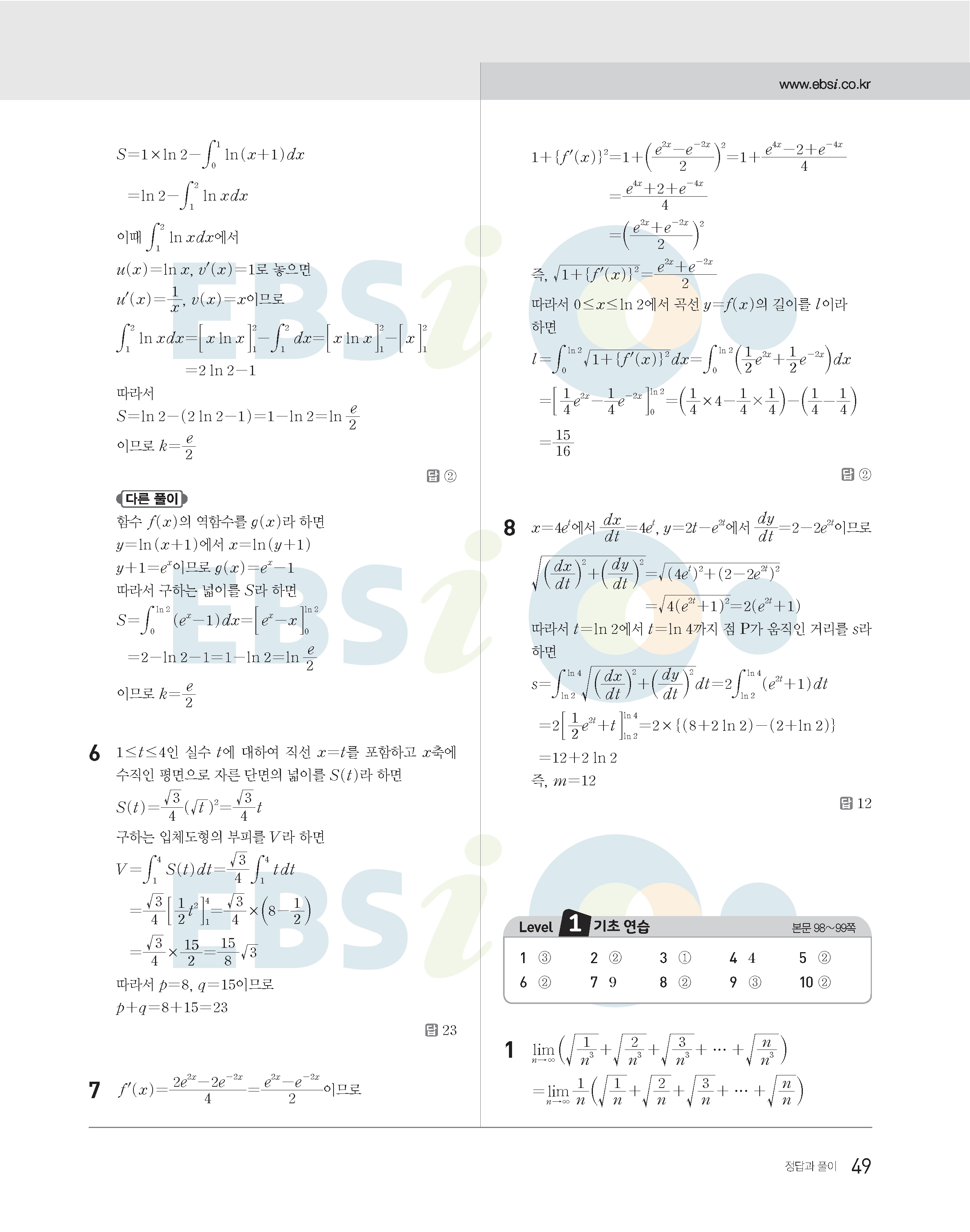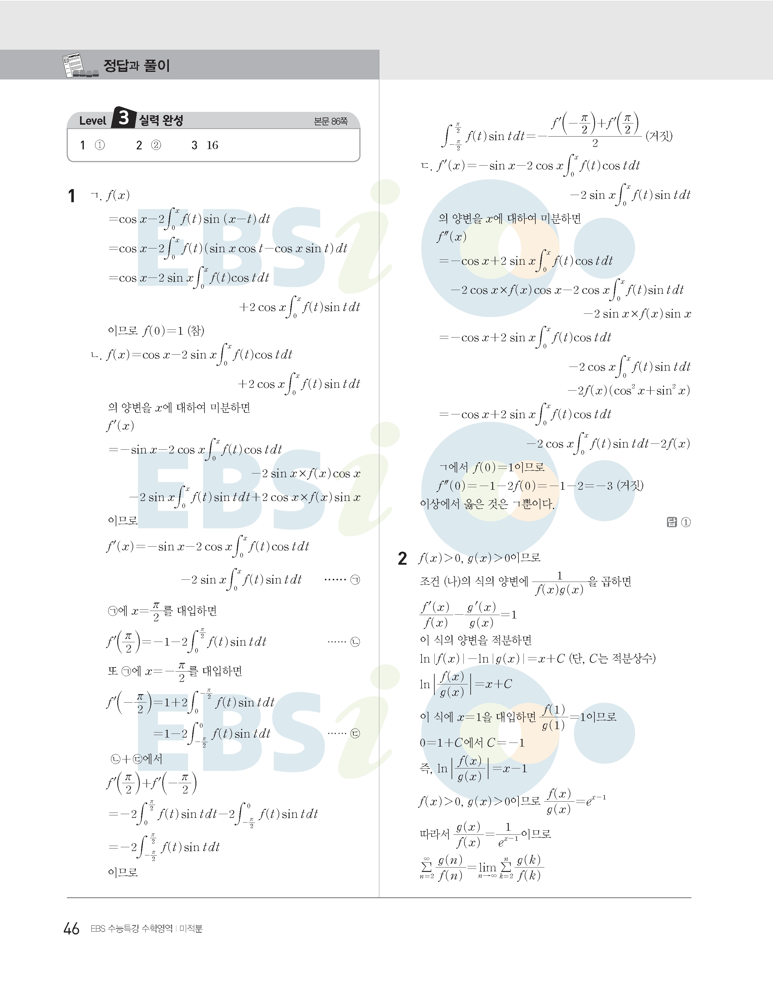 2022수능특강 미적분 답지 해설지 사진답지 빠른답지 모바일최적화