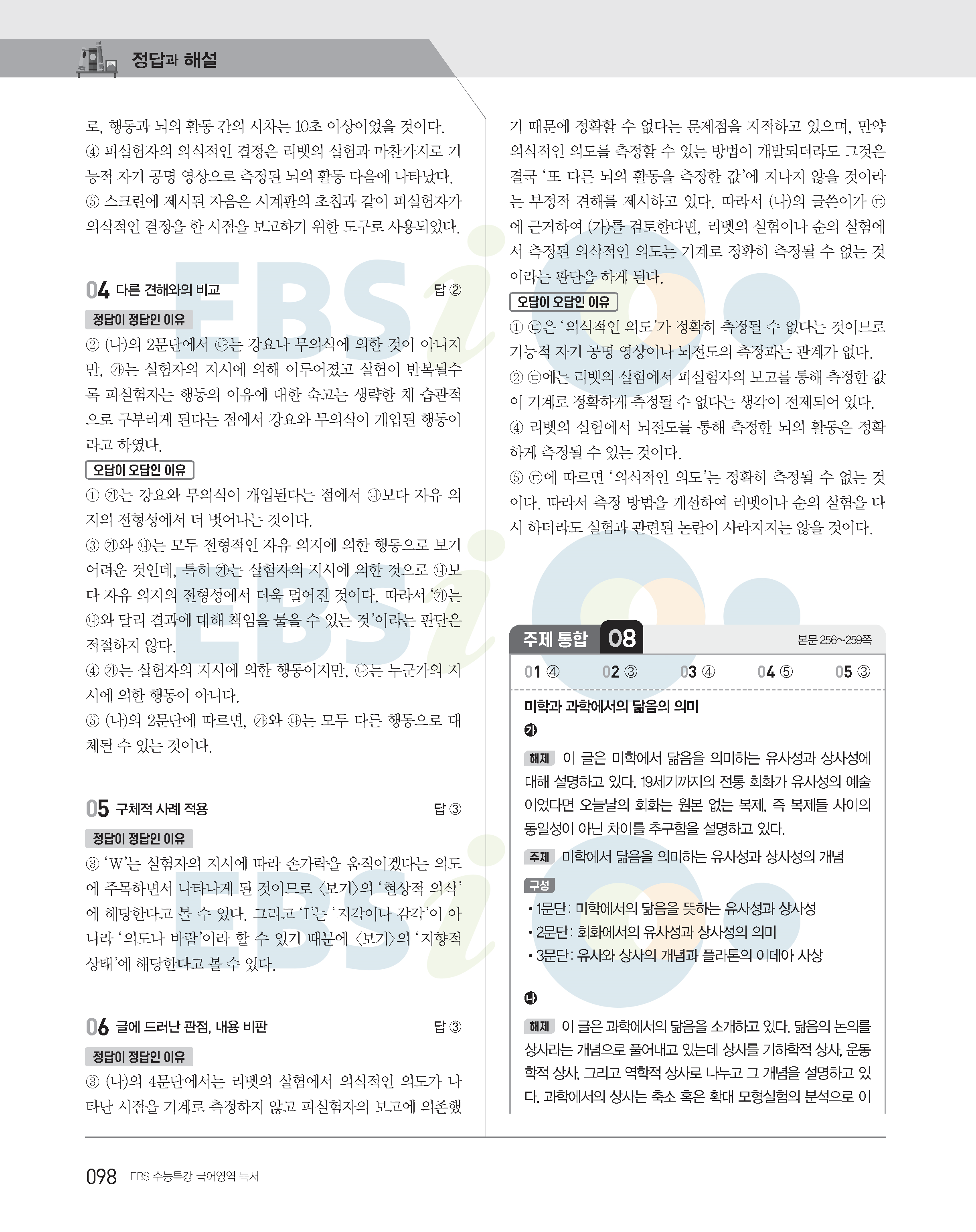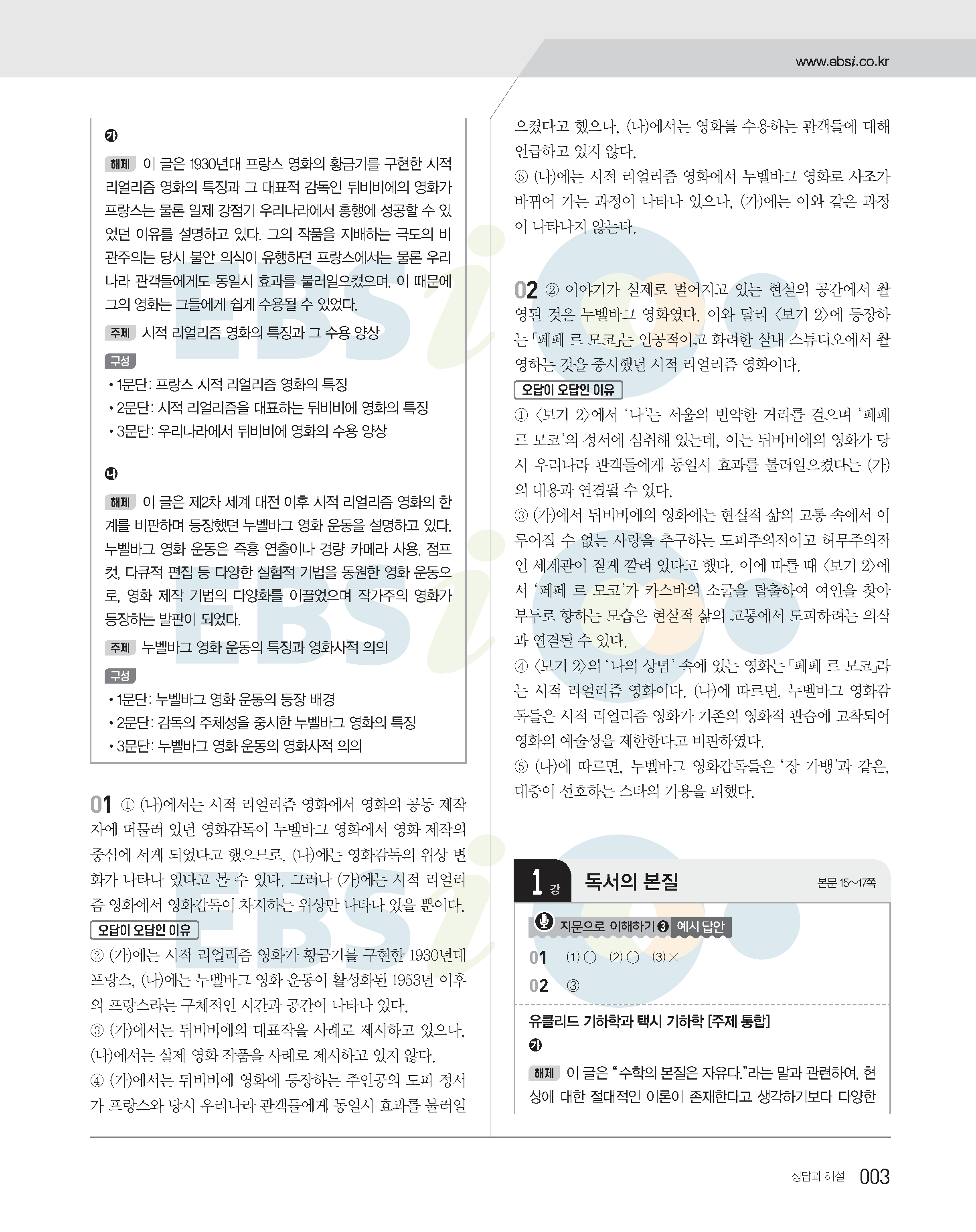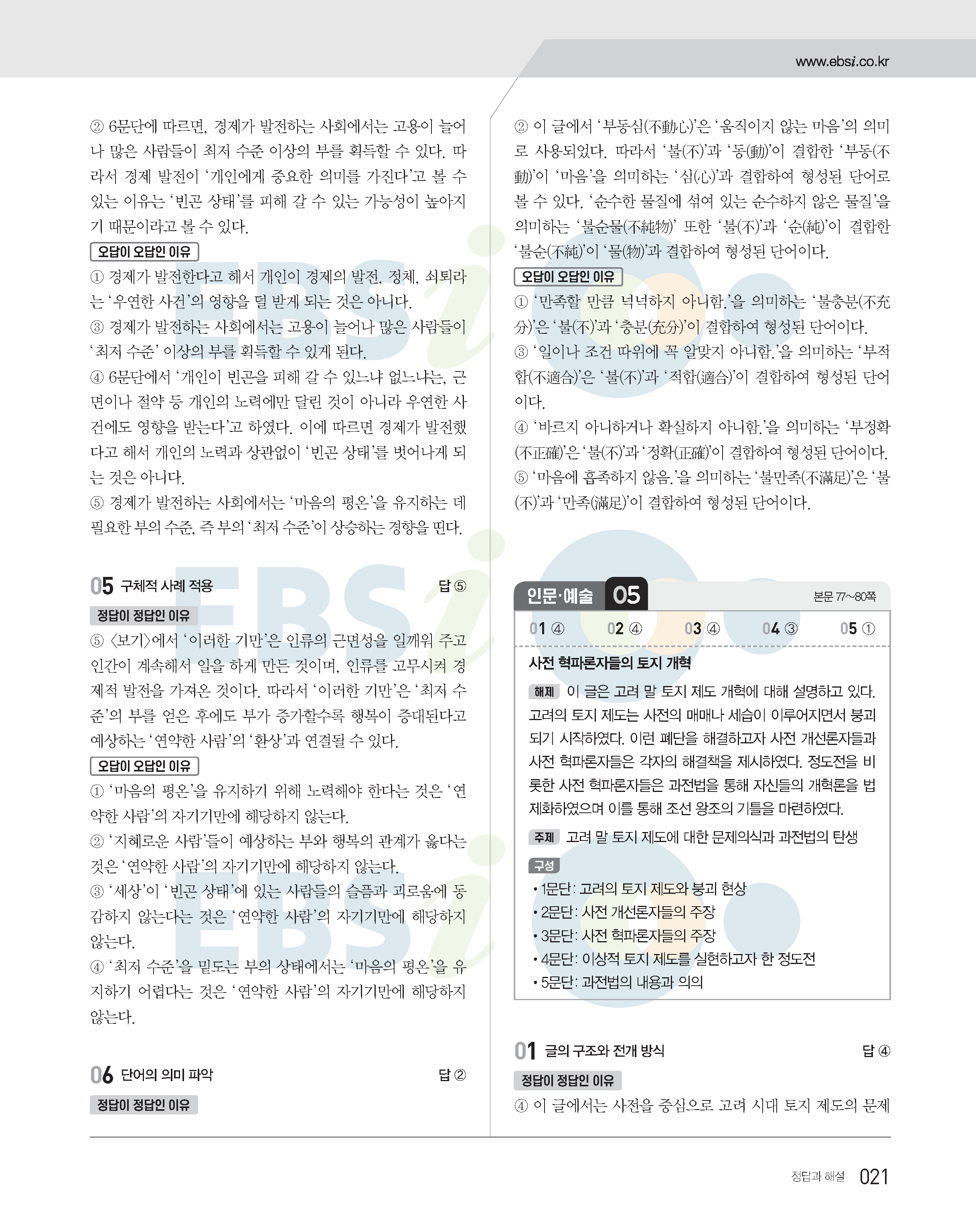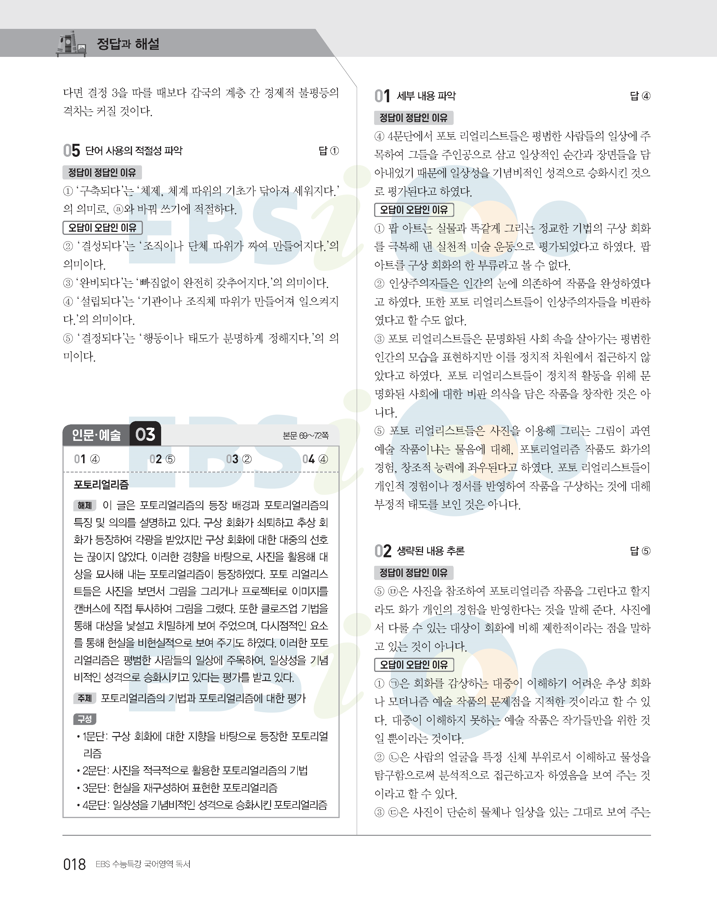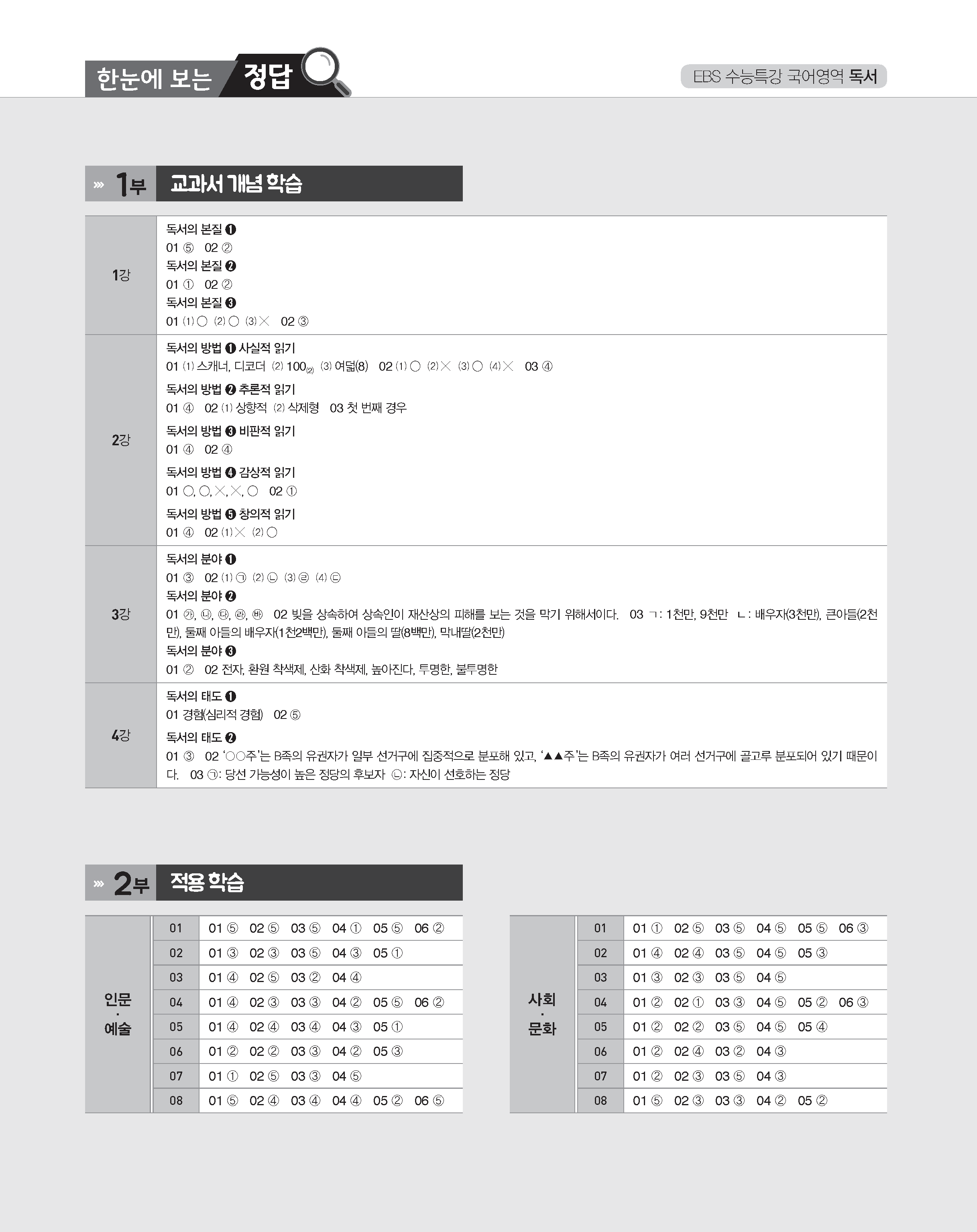 2022수능특강 독서 답지 해설지 사진답지 빠른답지 모바일최적화