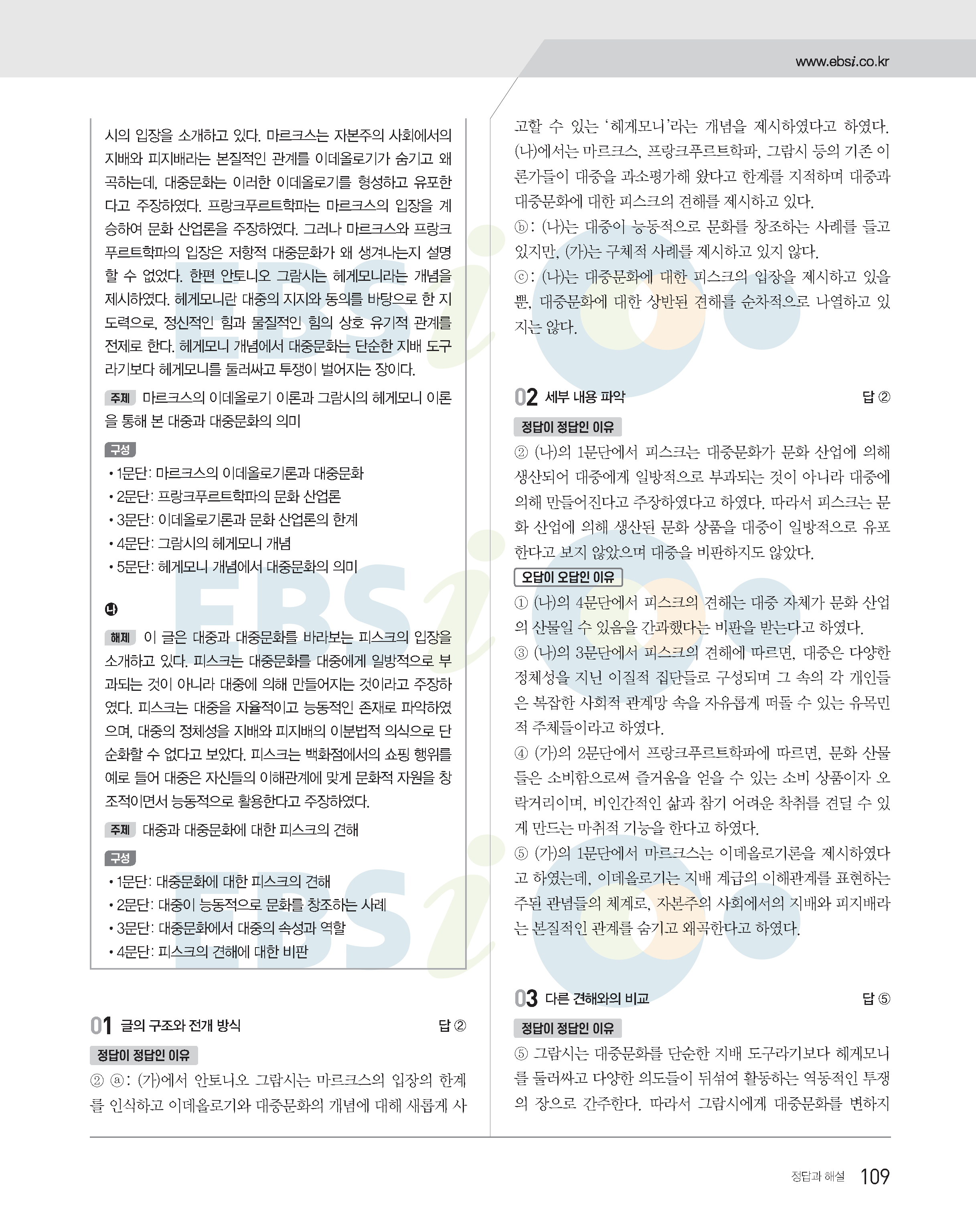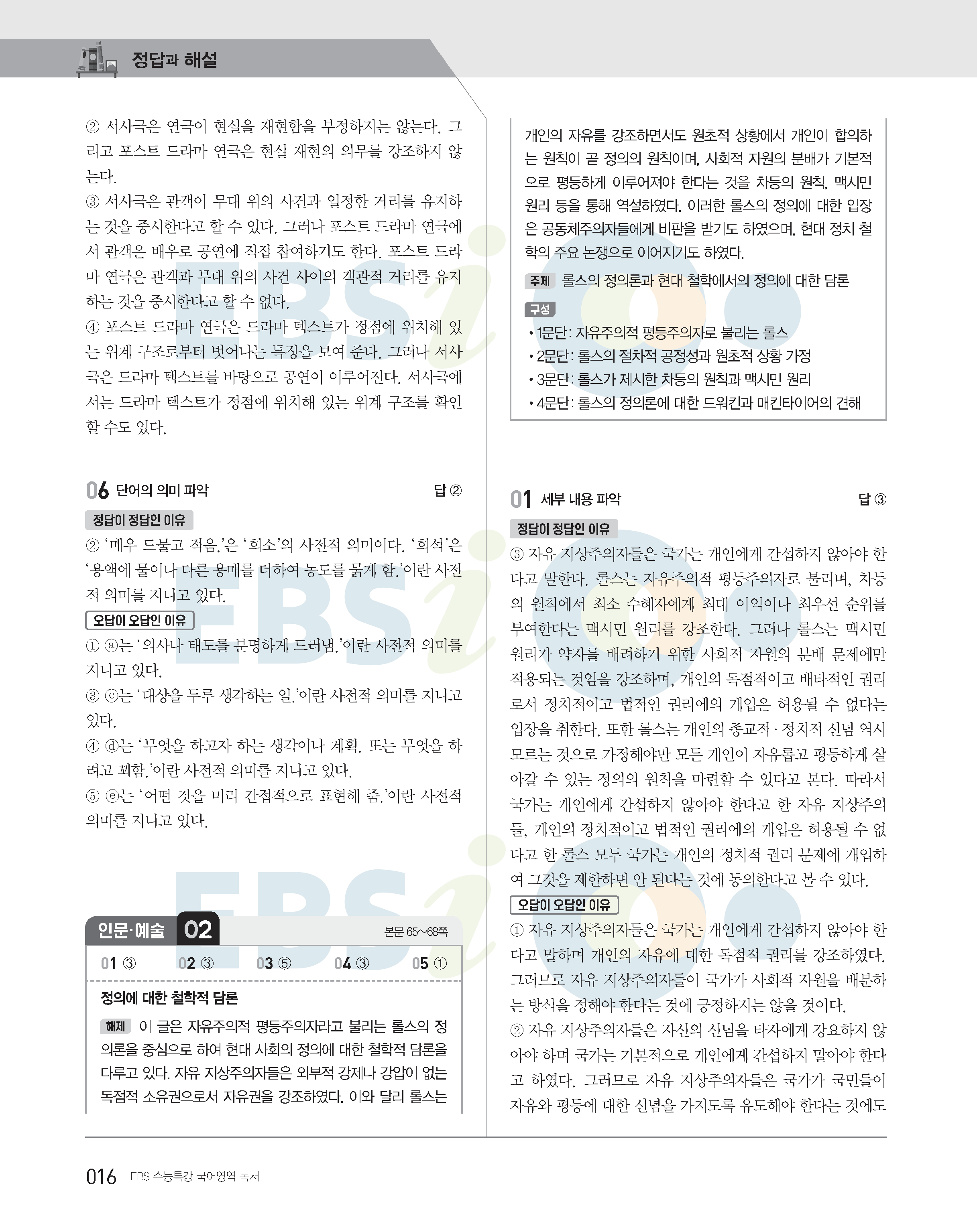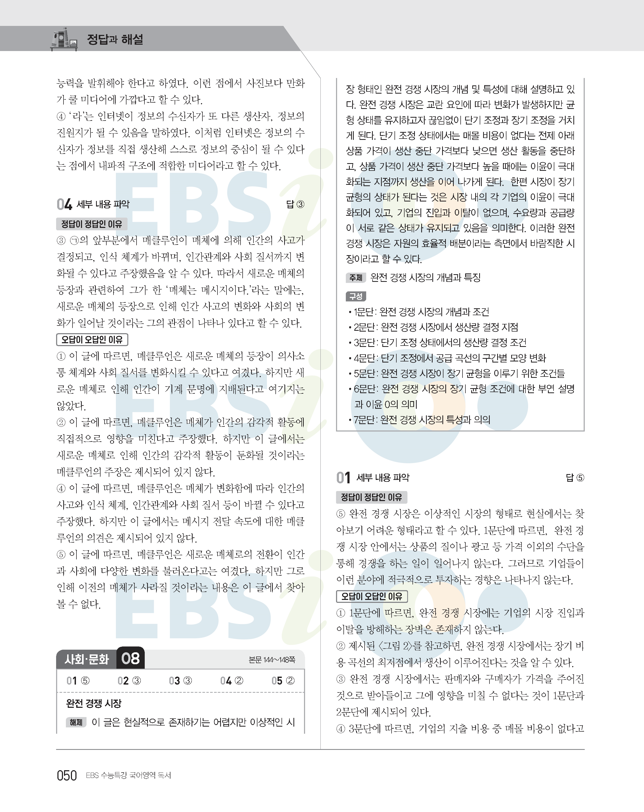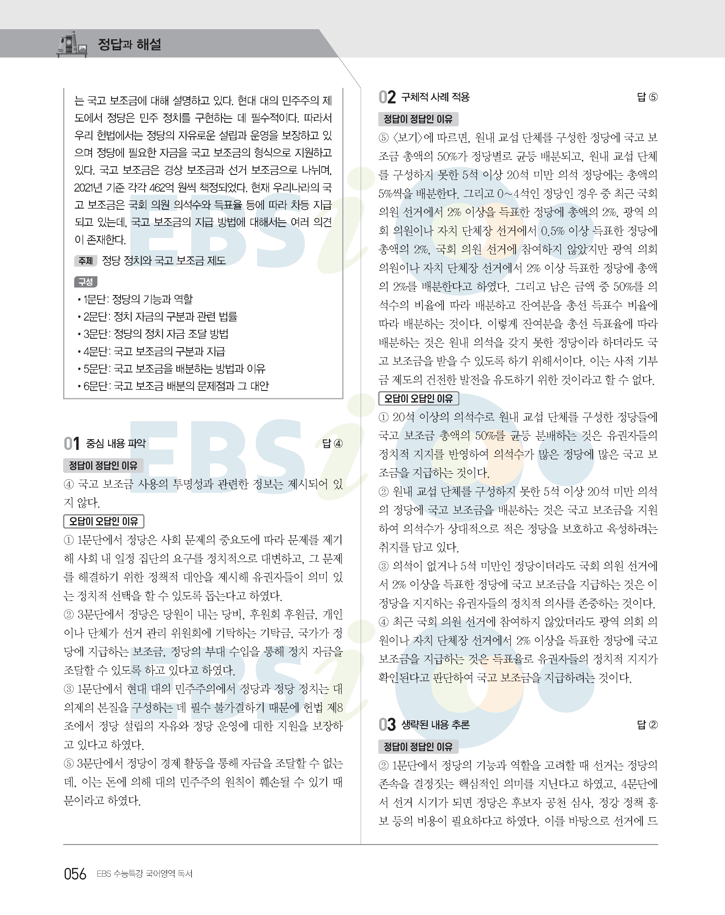 2022수능특강 독서 답지 해설지 사진답지 빠른답지 모바일최적화