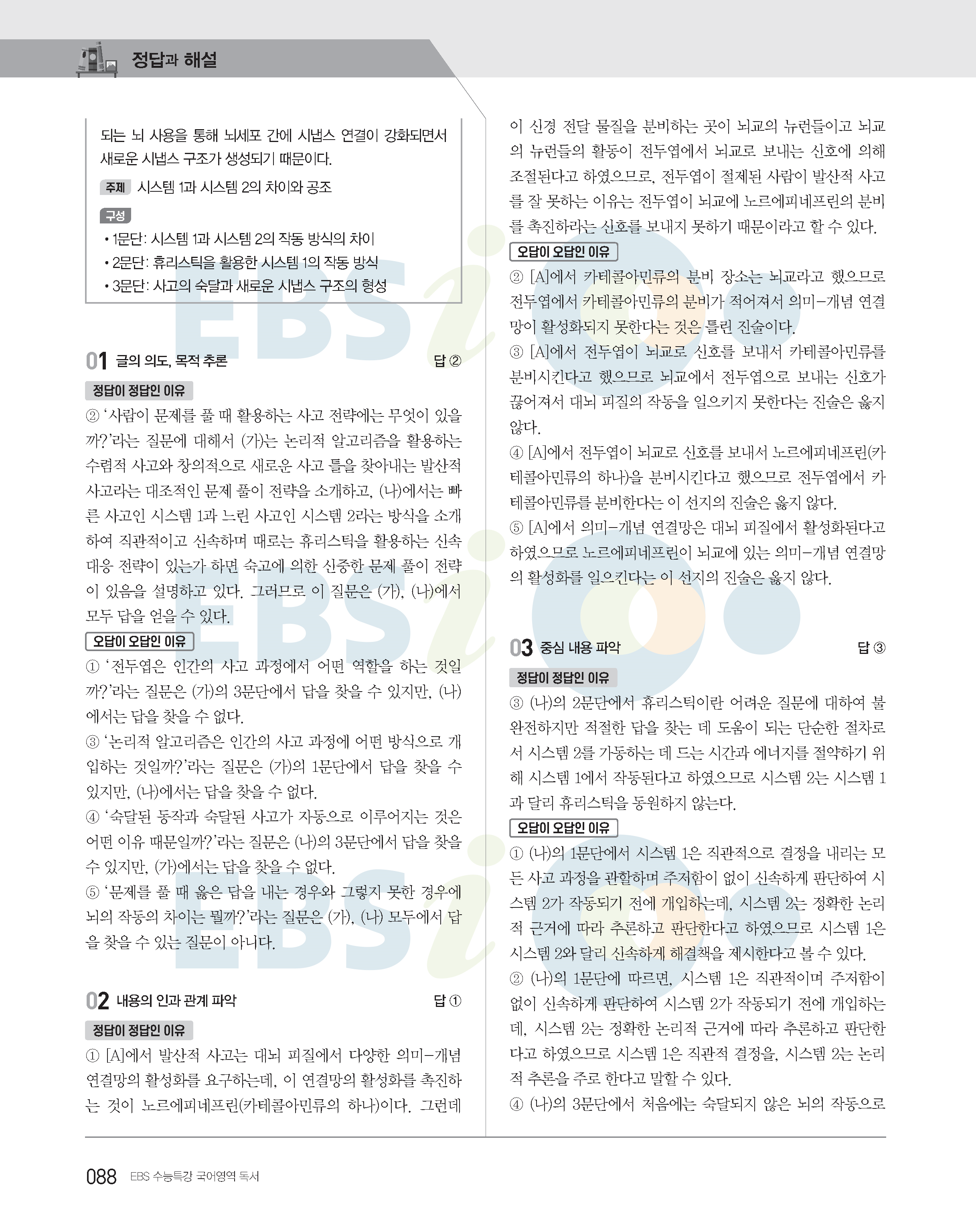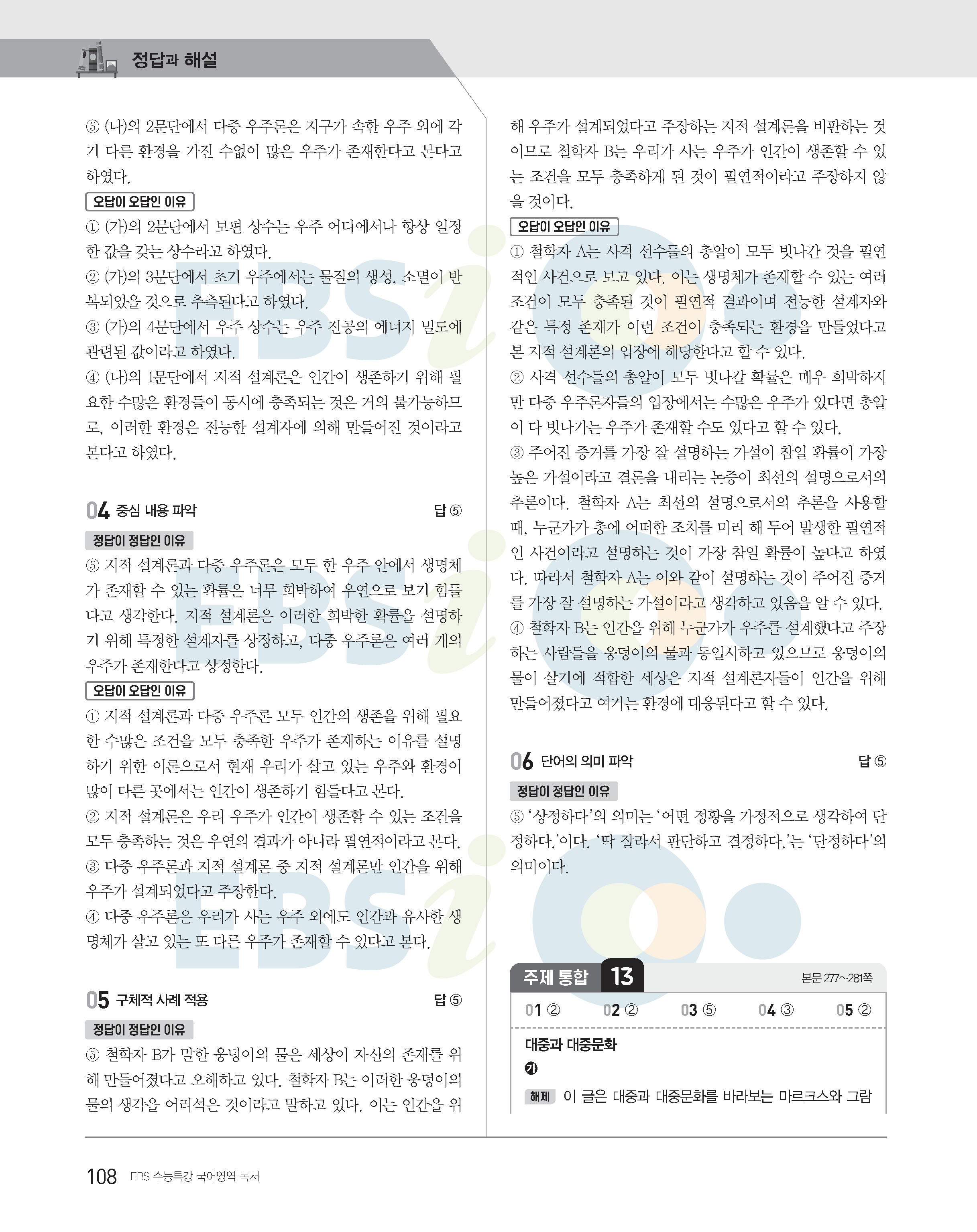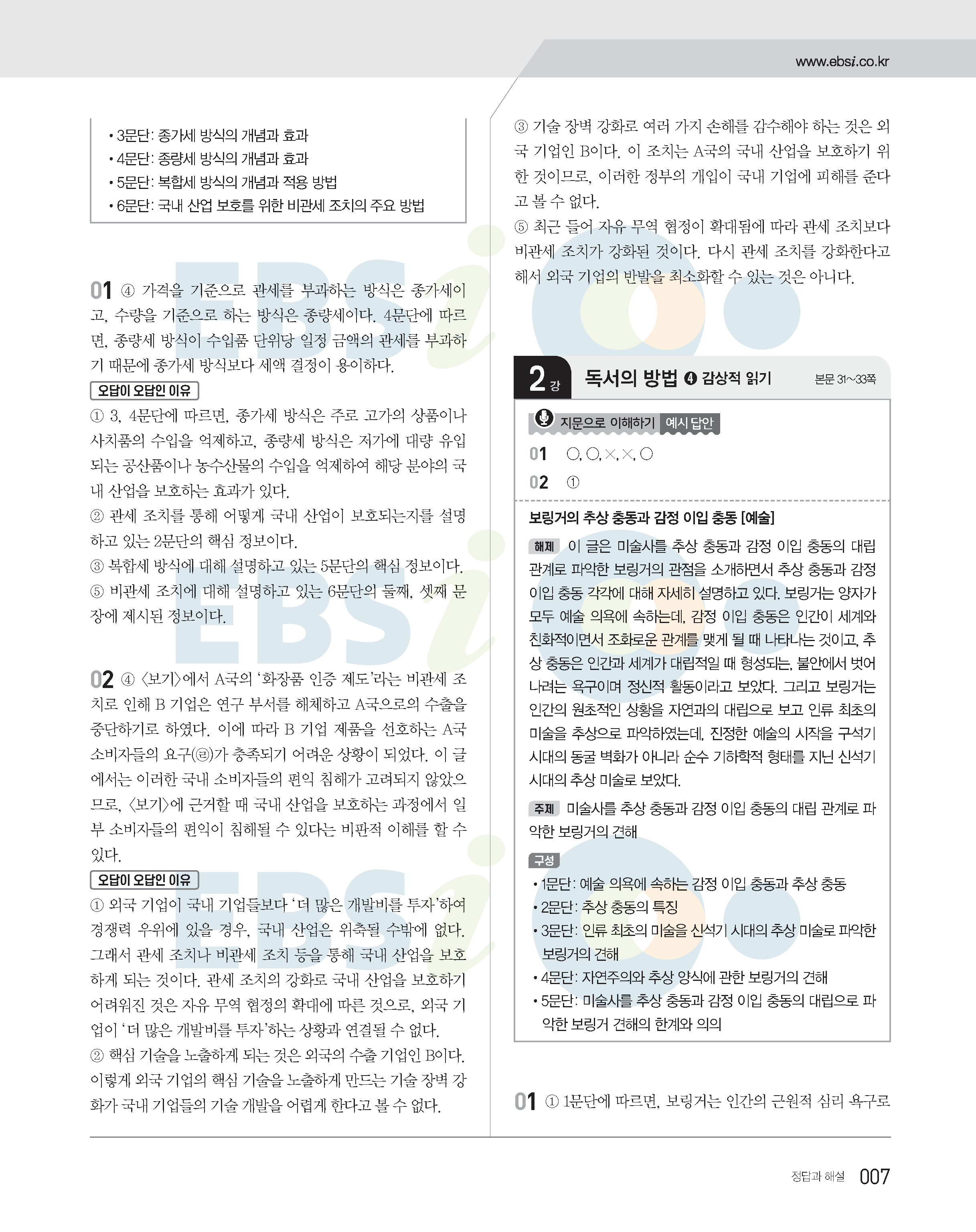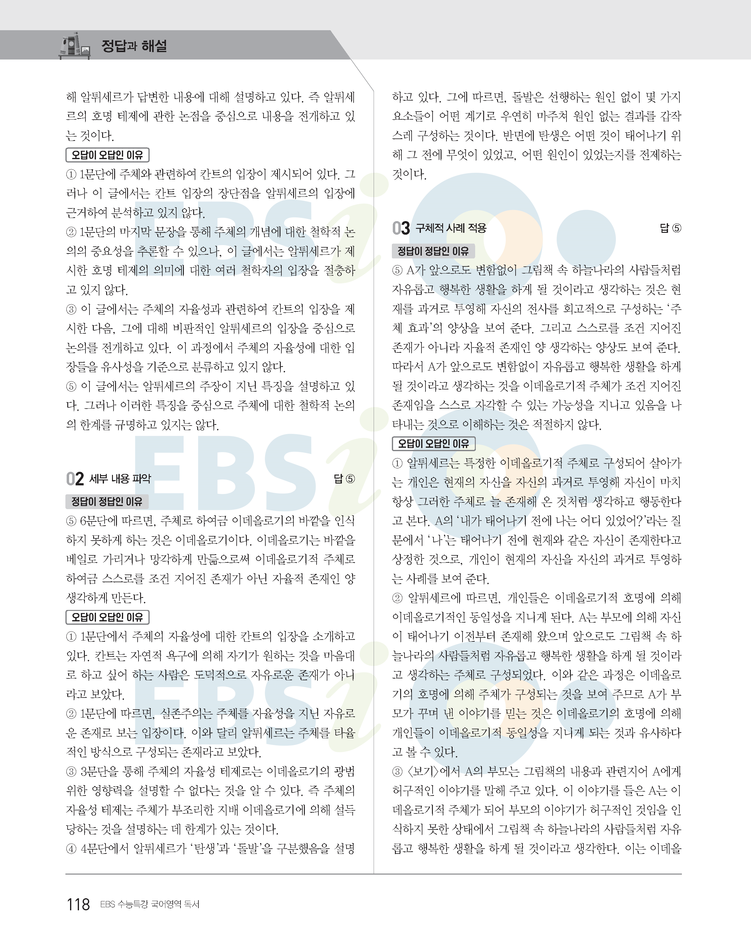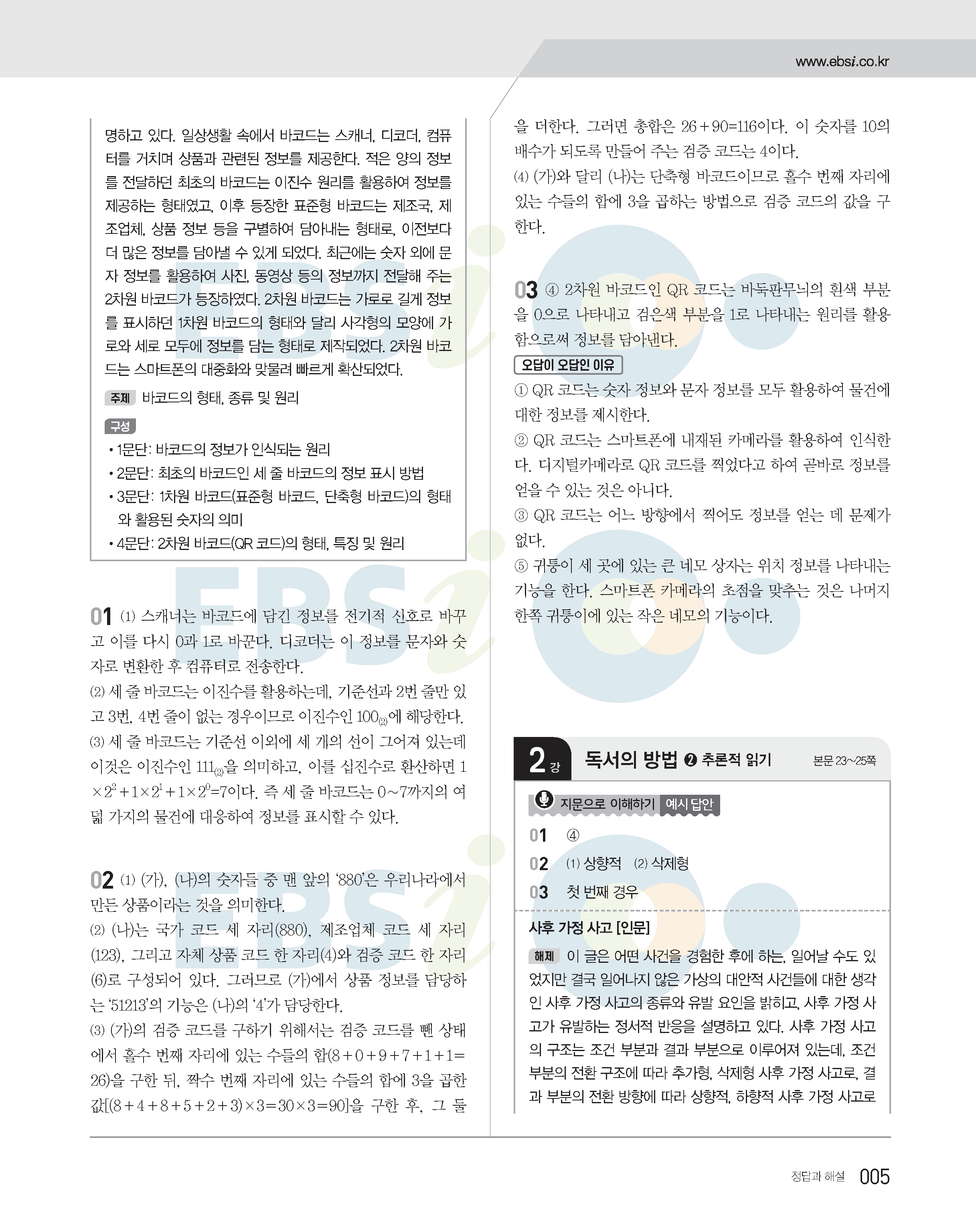 2022수능특강 독서 답지 해설지 사진답지 빠른답지 모바일최적화