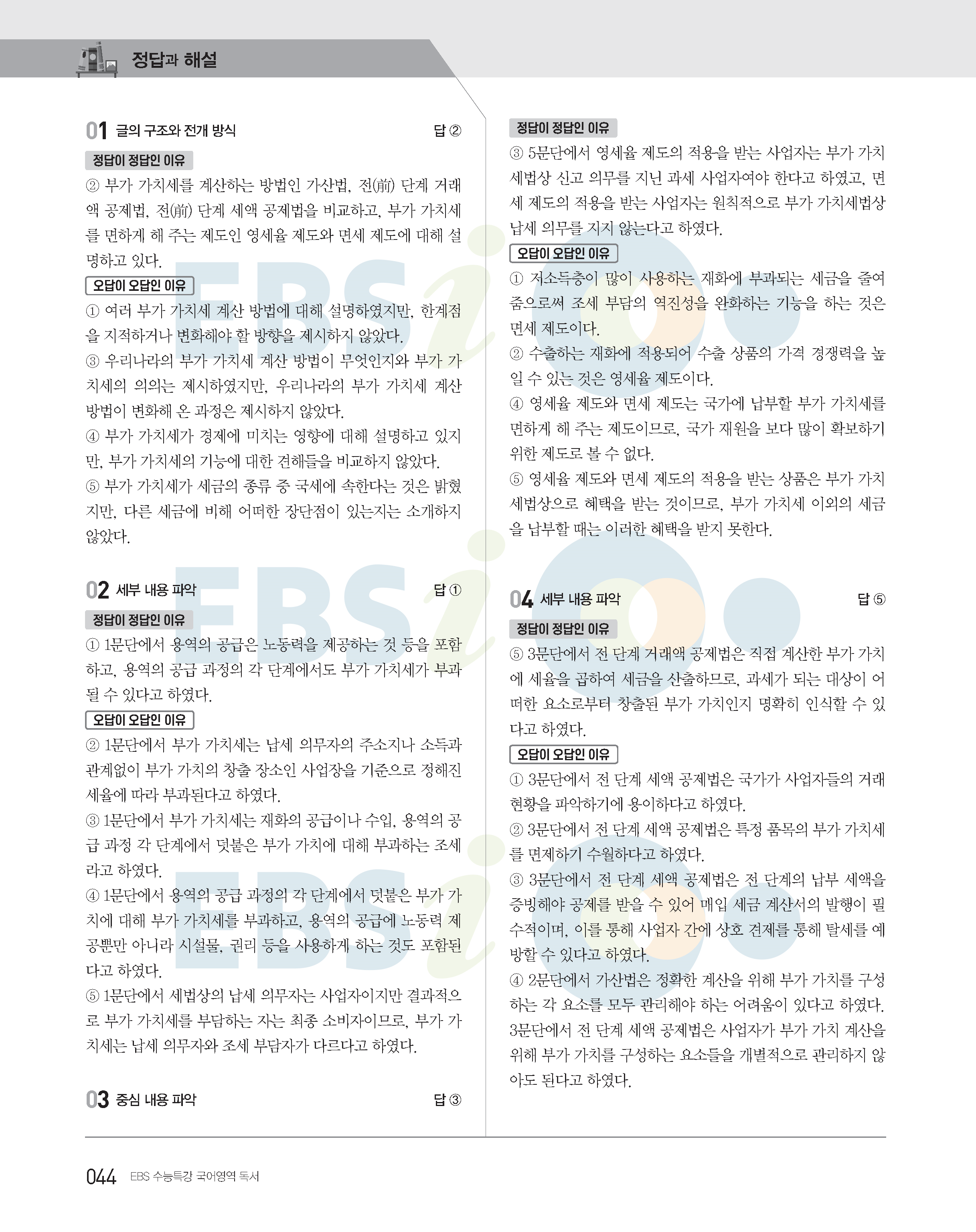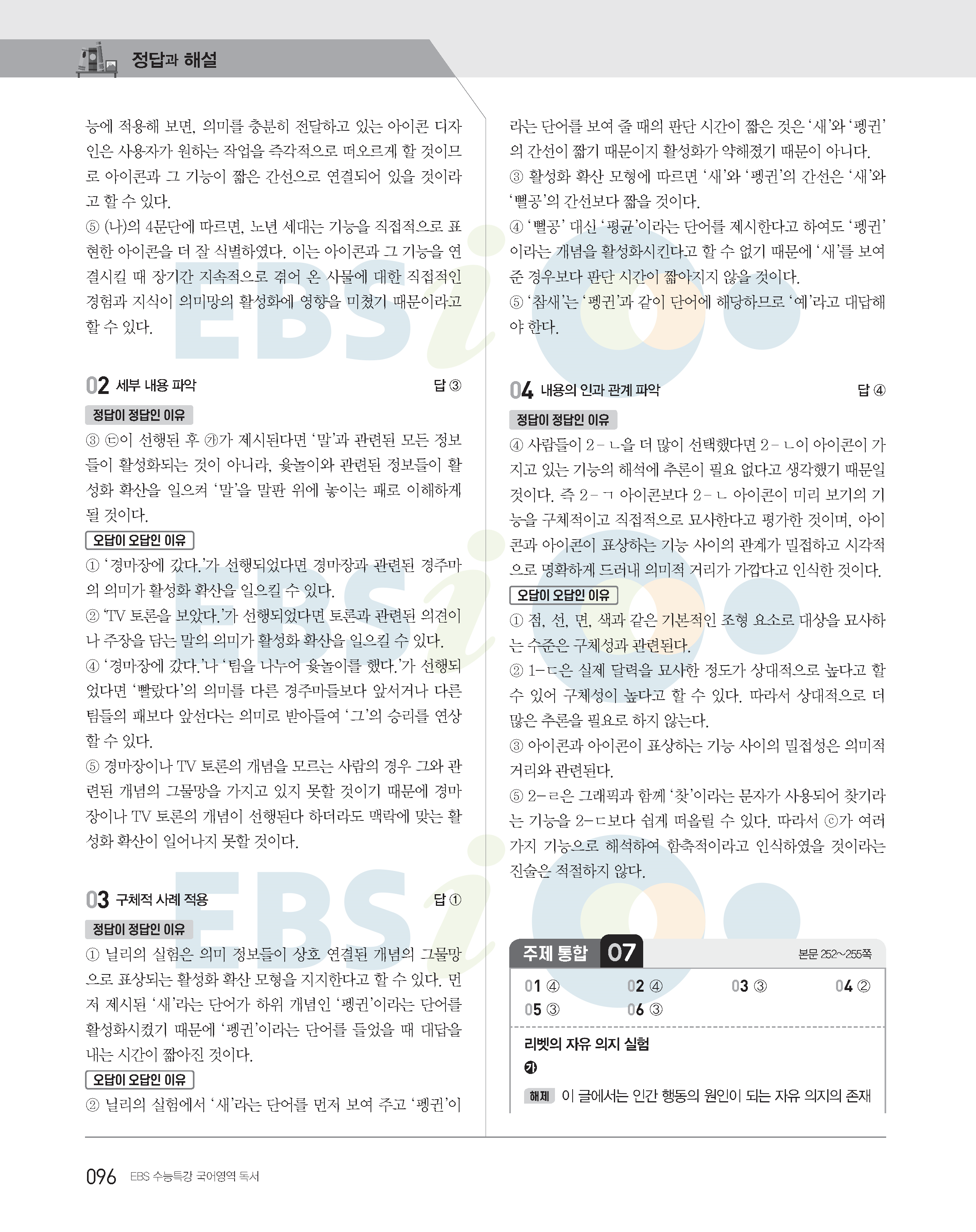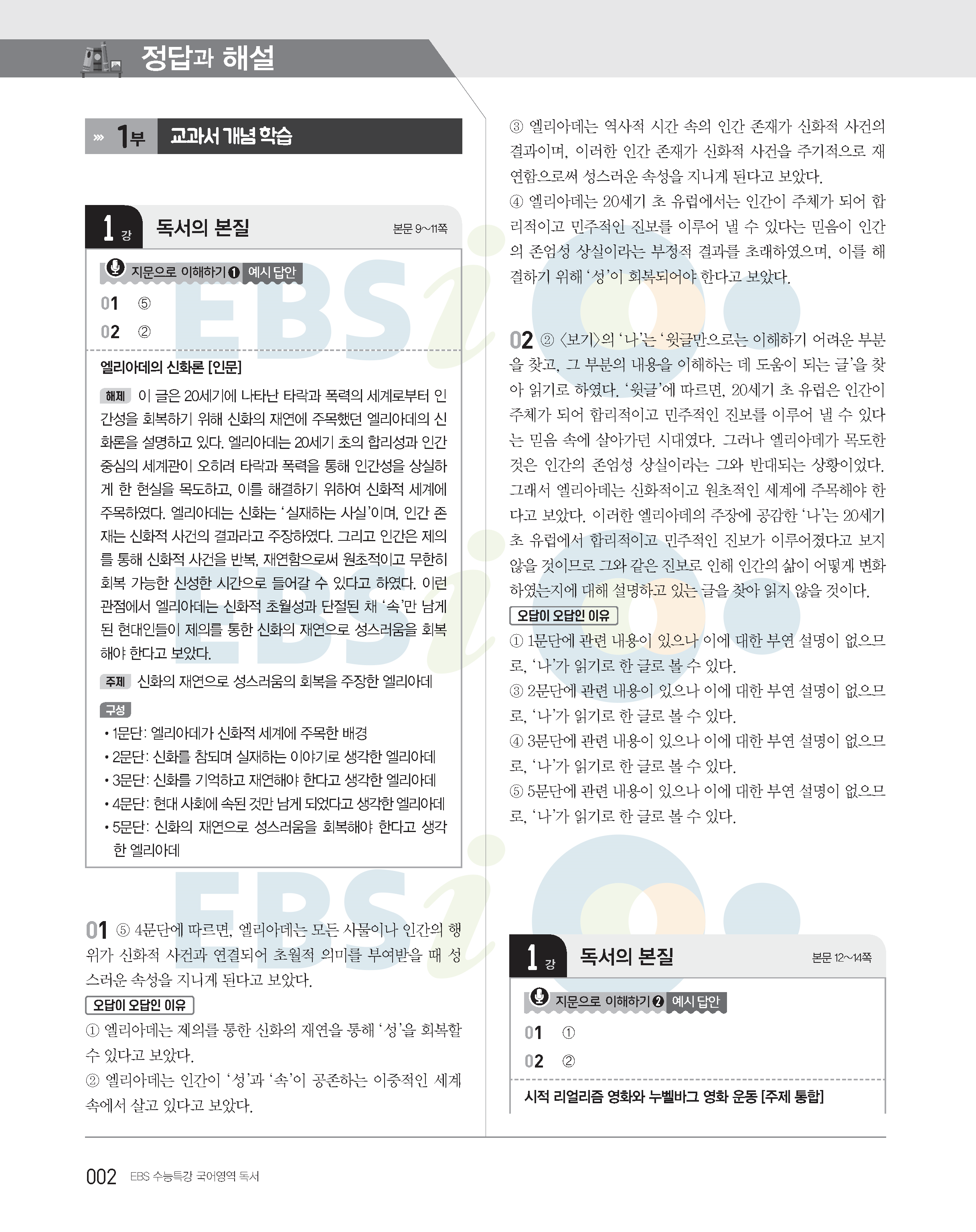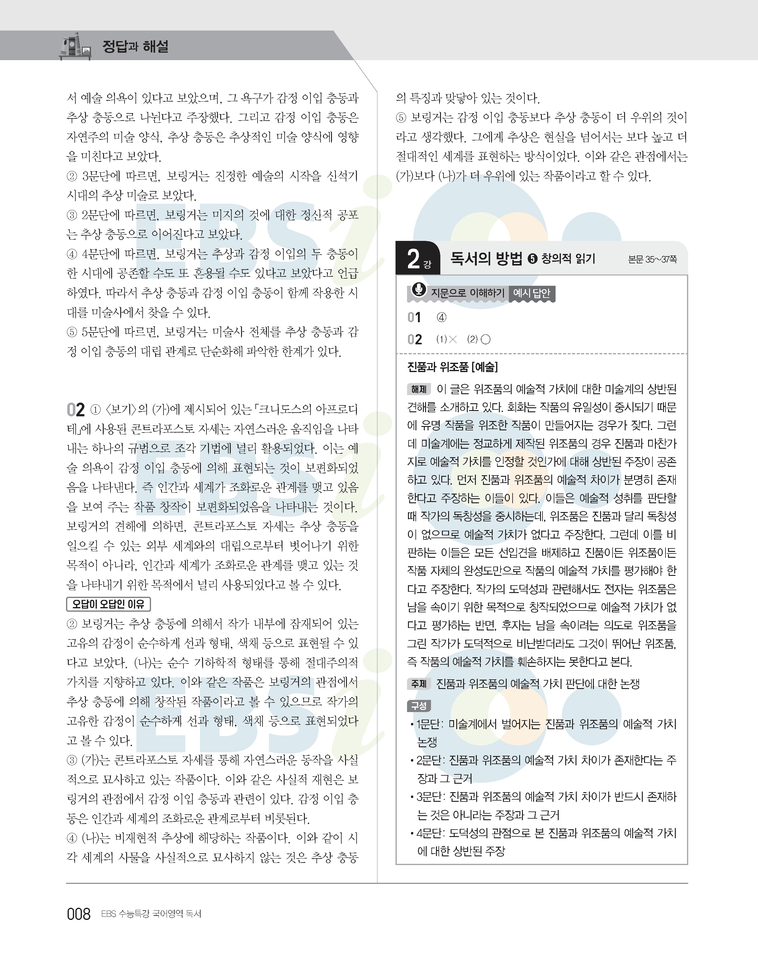 2022수능특강 독서 답지 해설지 사진답지 빠른답지 모바일최적화