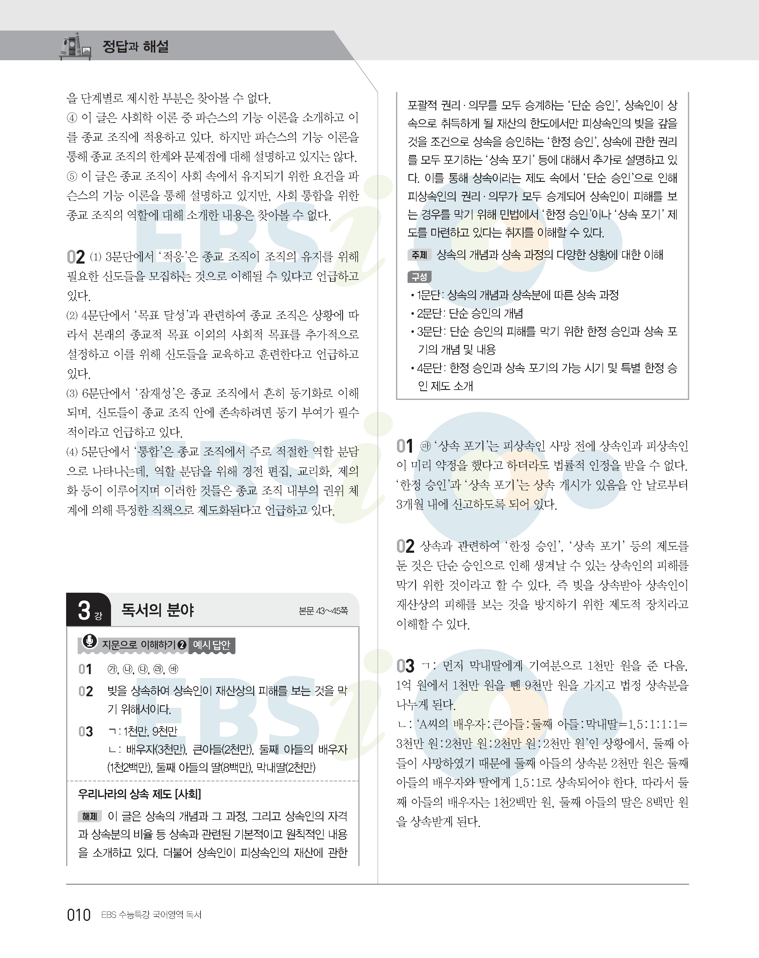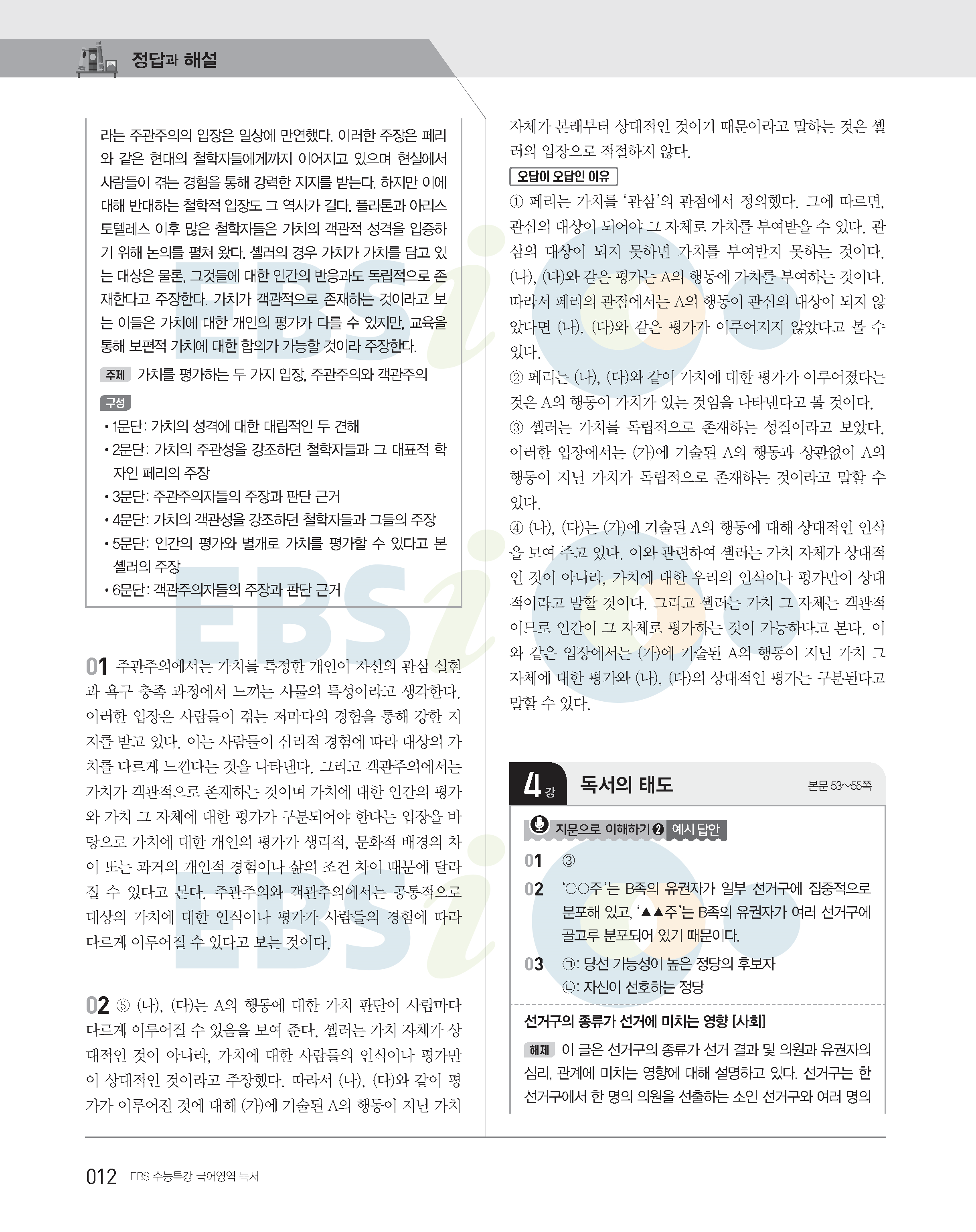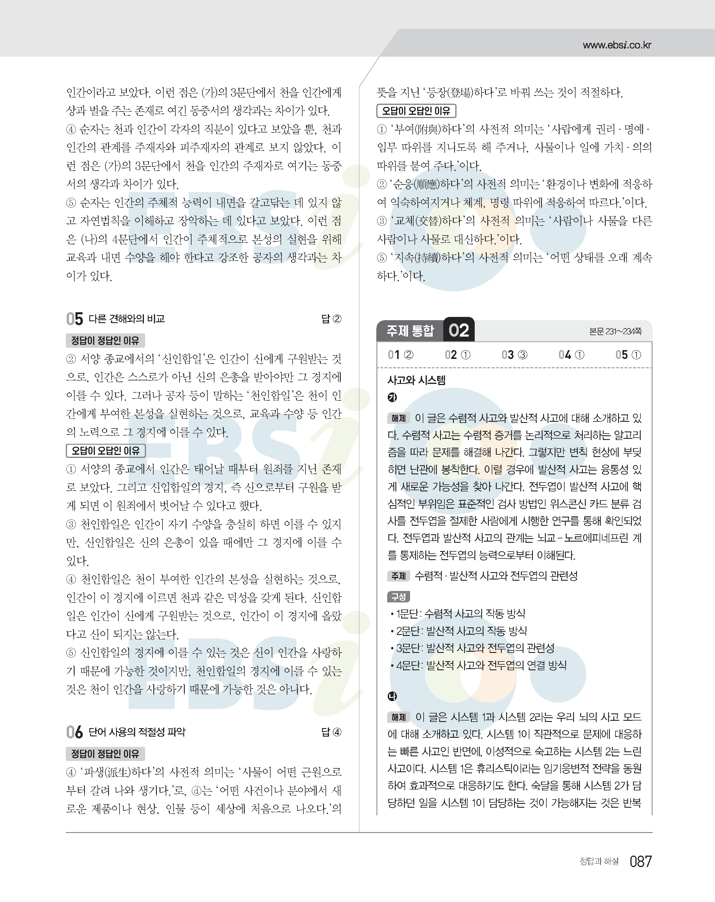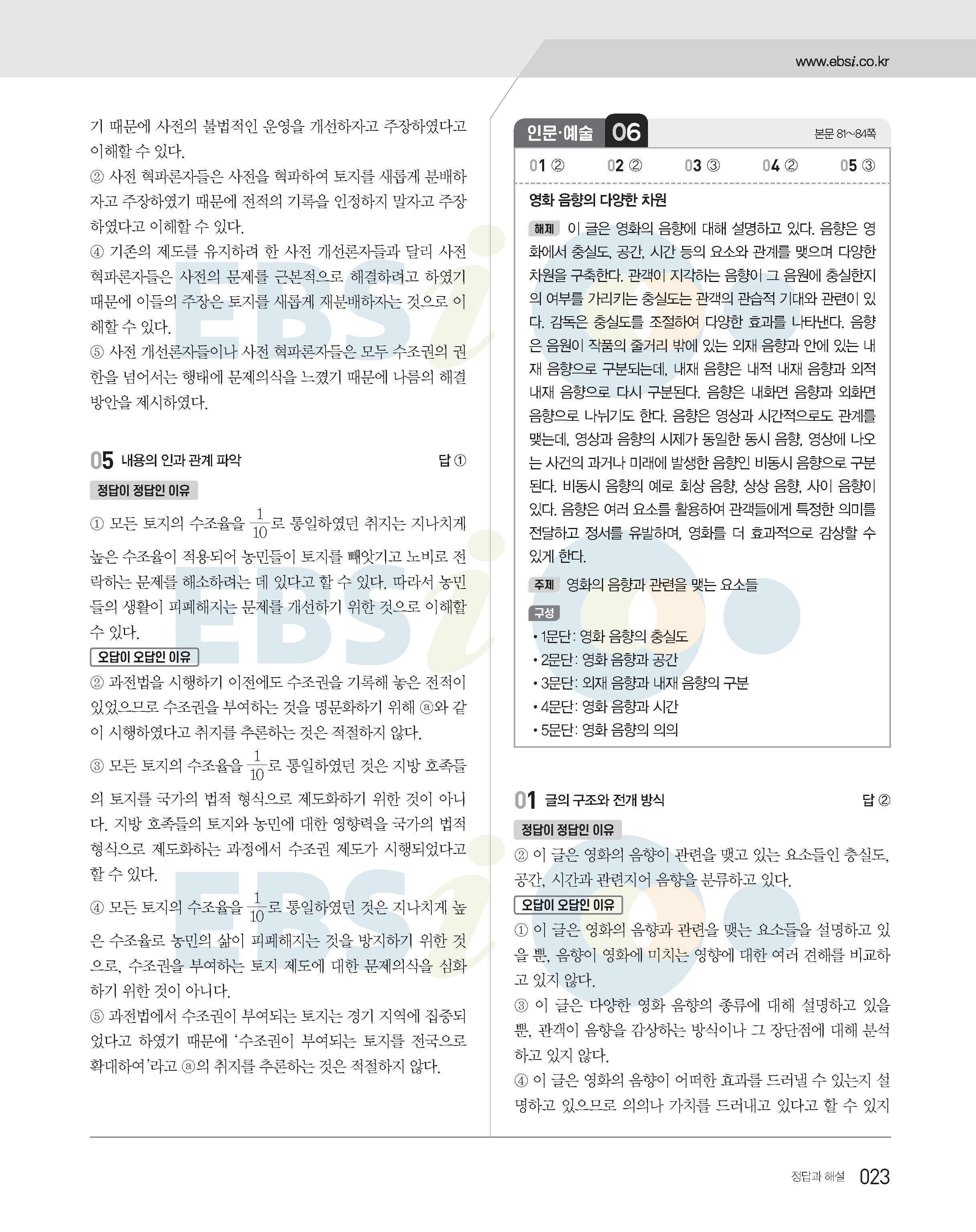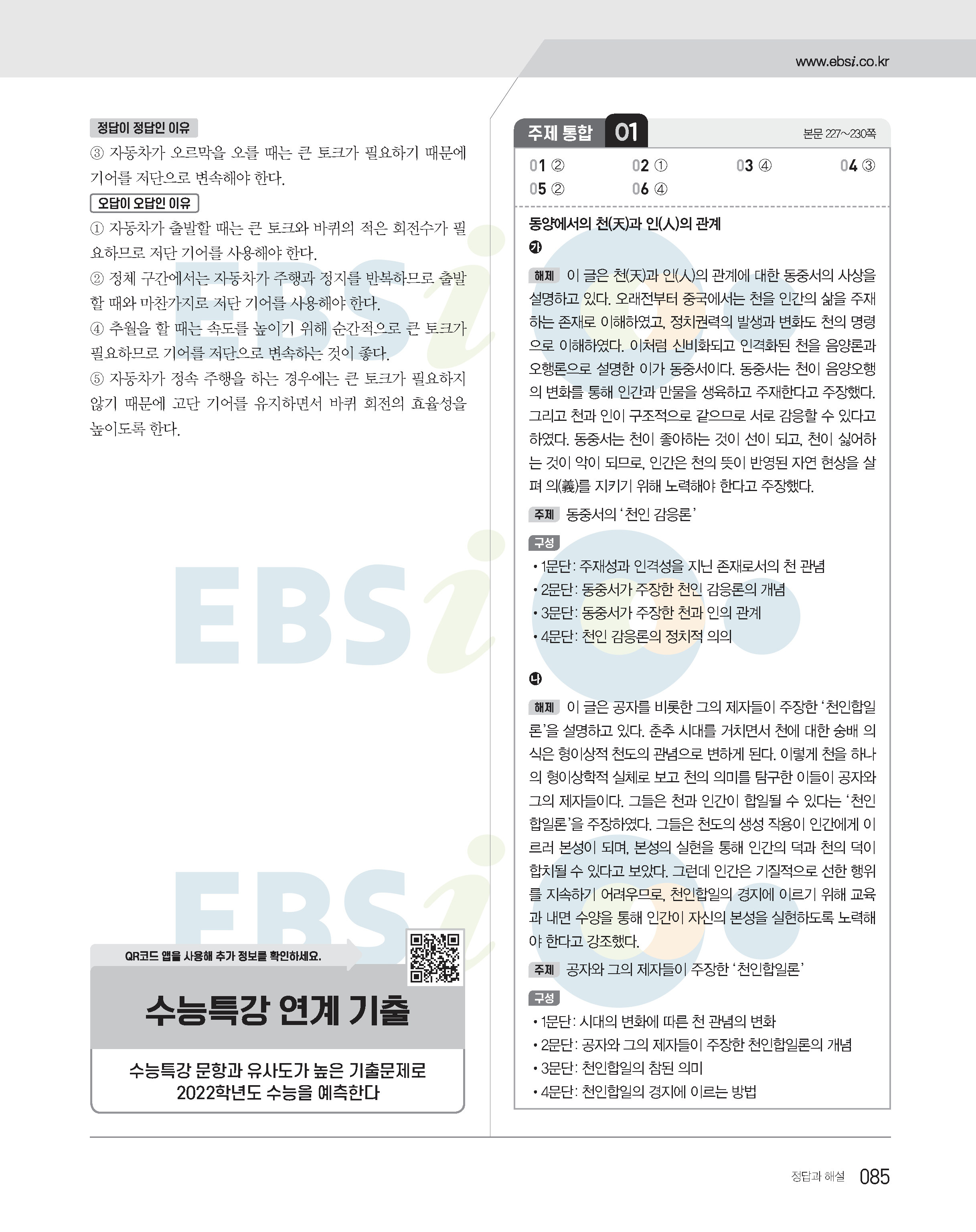 2022수능특강 독서 답지 해설지 사진답지 빠른답지 모바일최적화