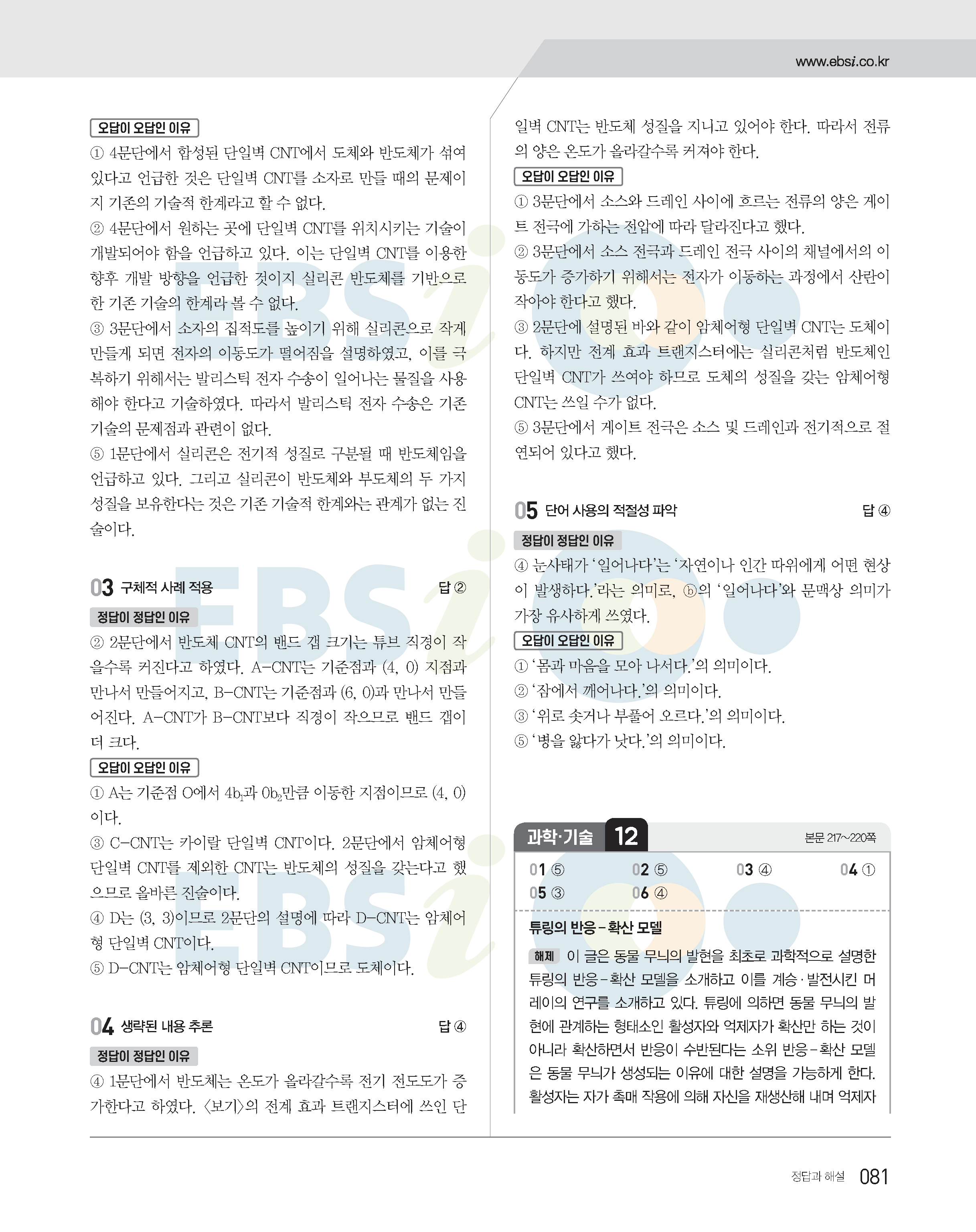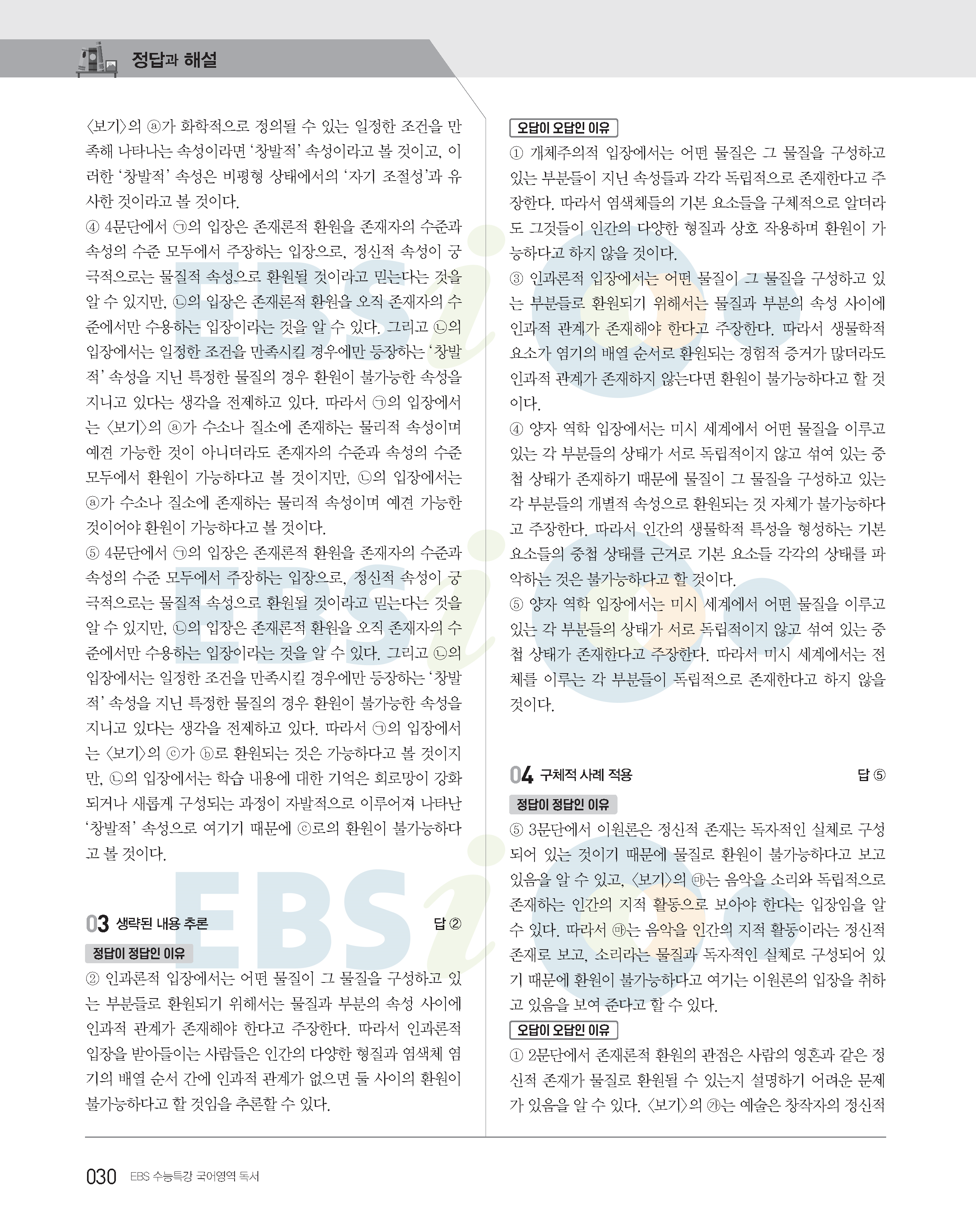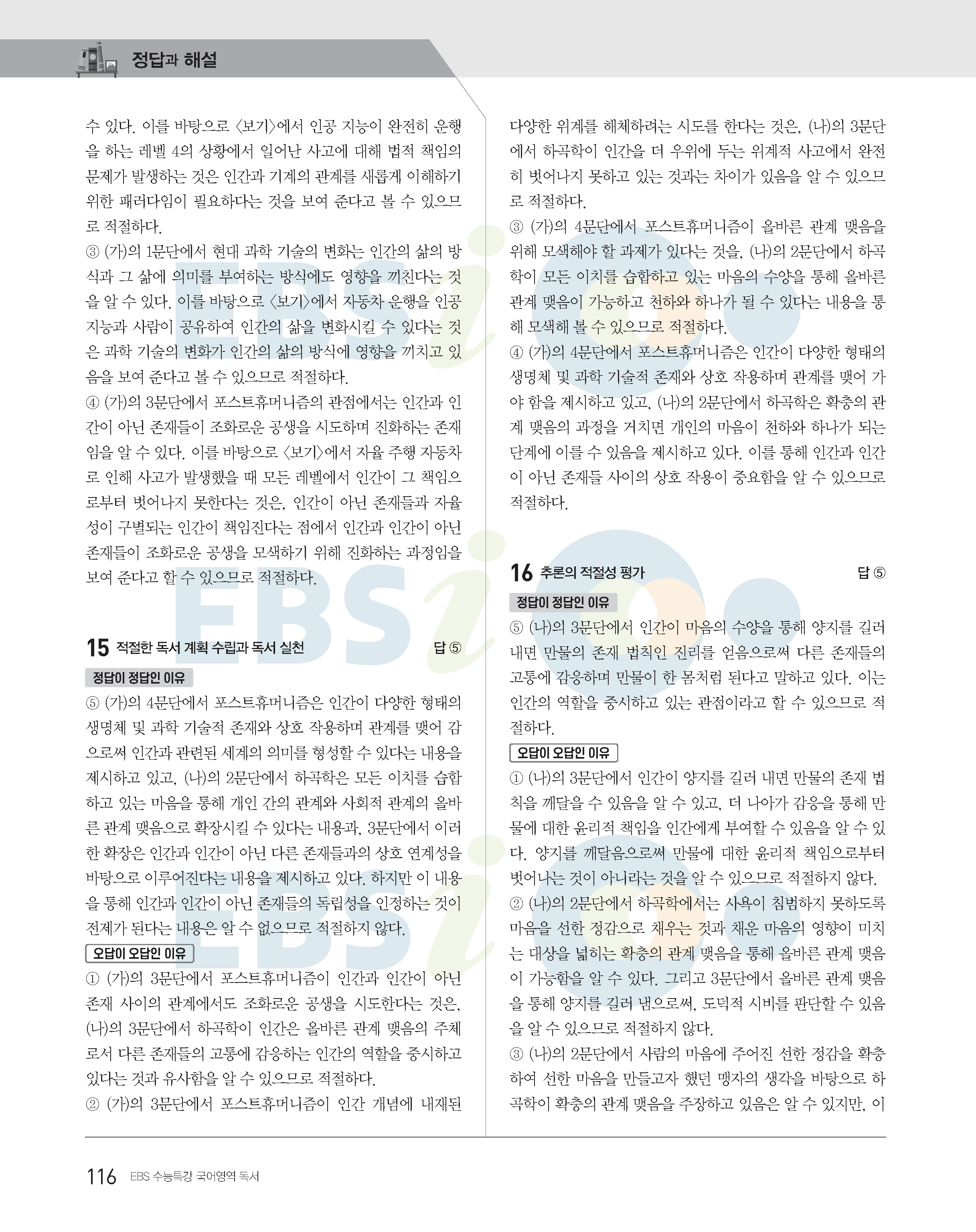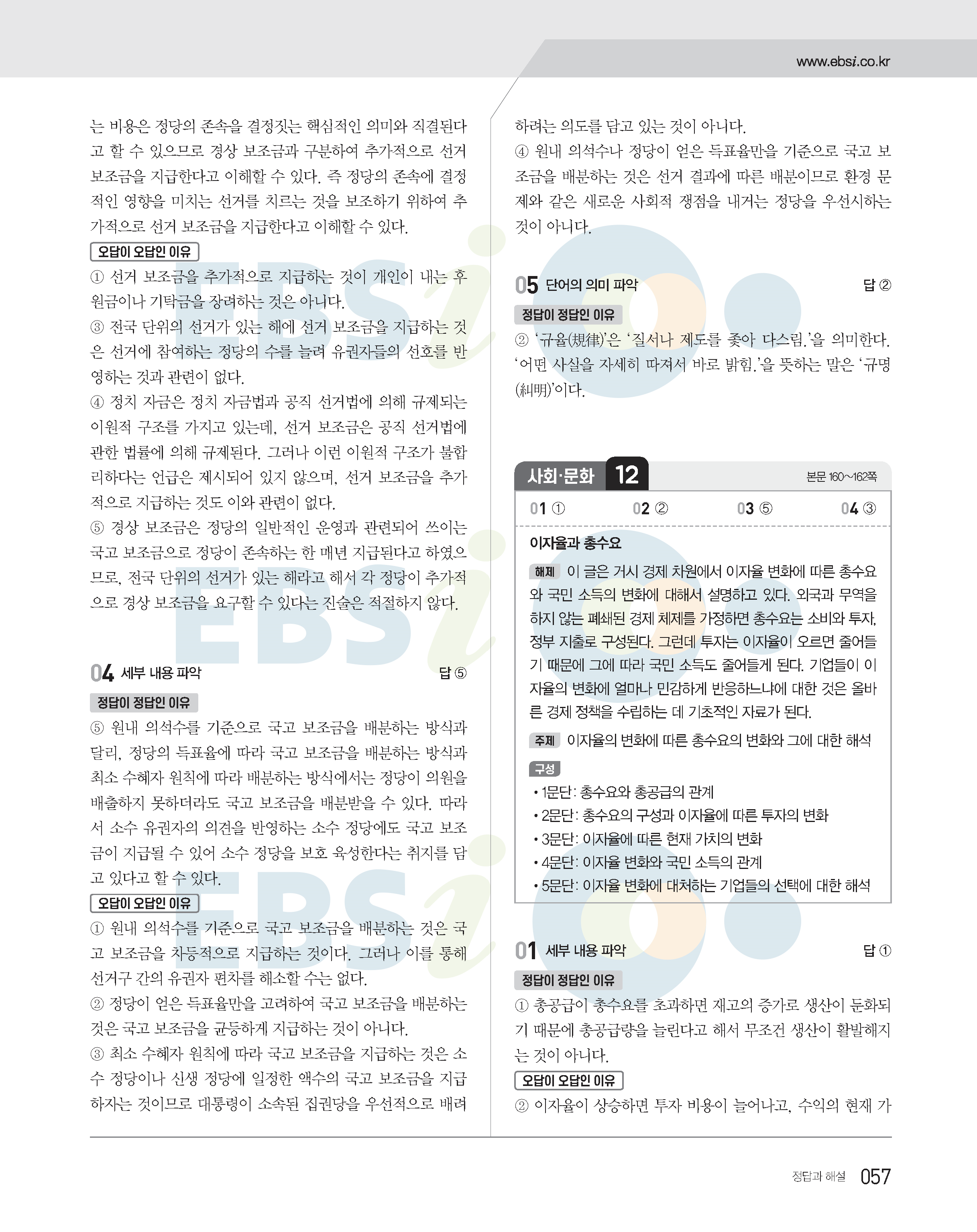 2022수능특강 독서 답지 해설지 사진답지 빠른답지 모바일최적화