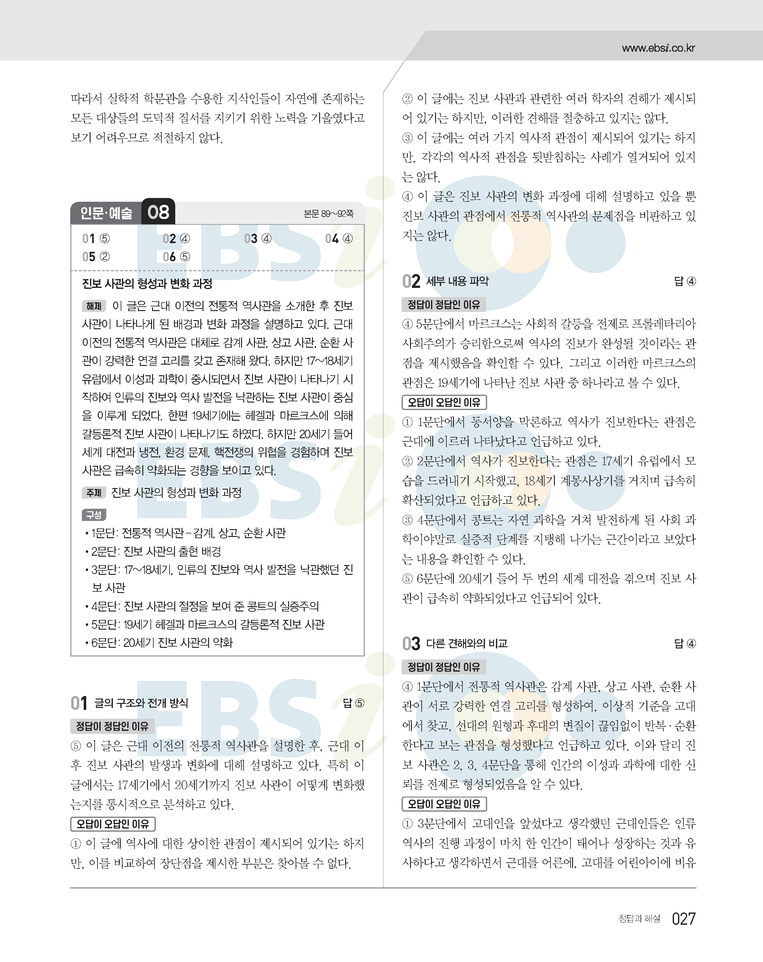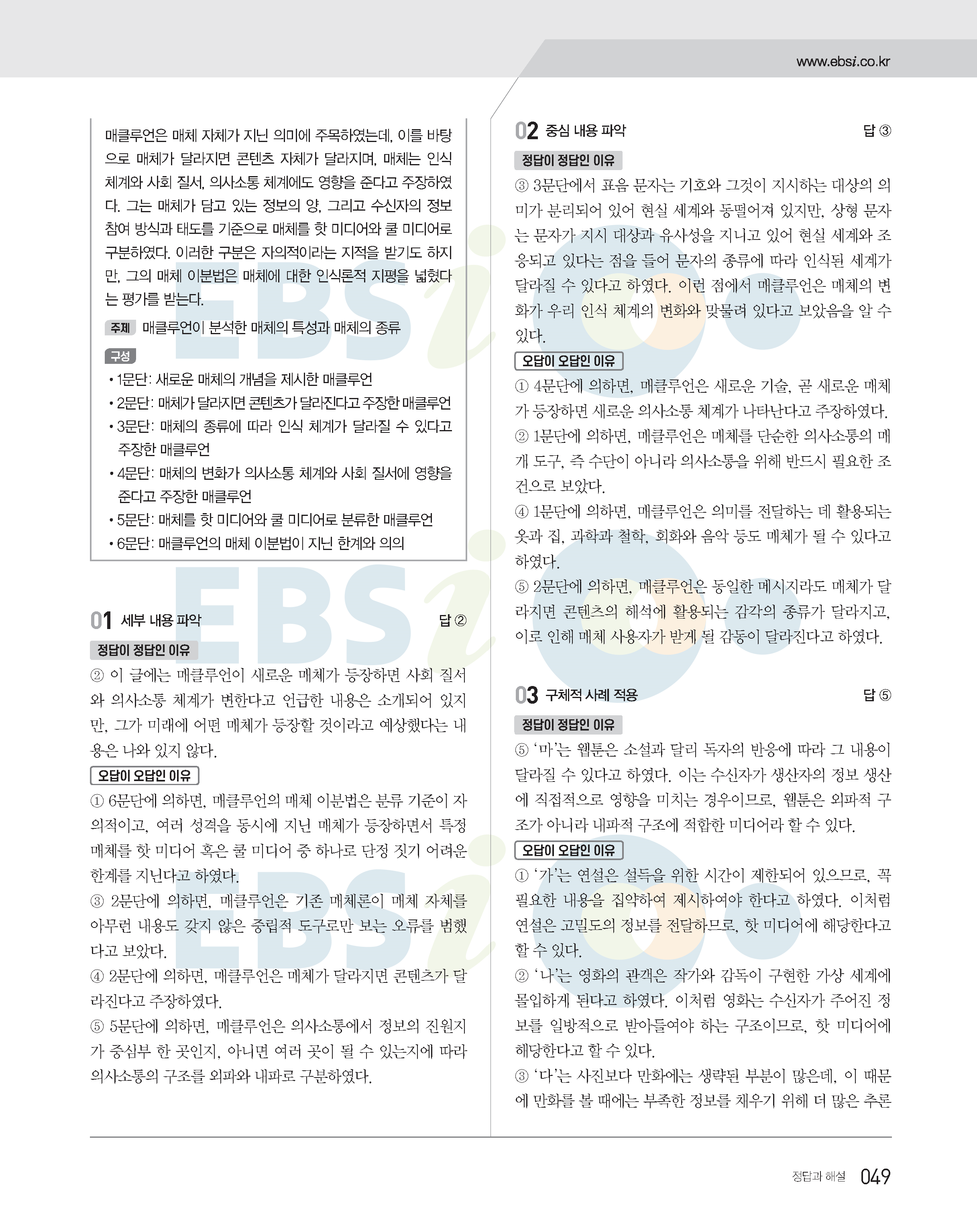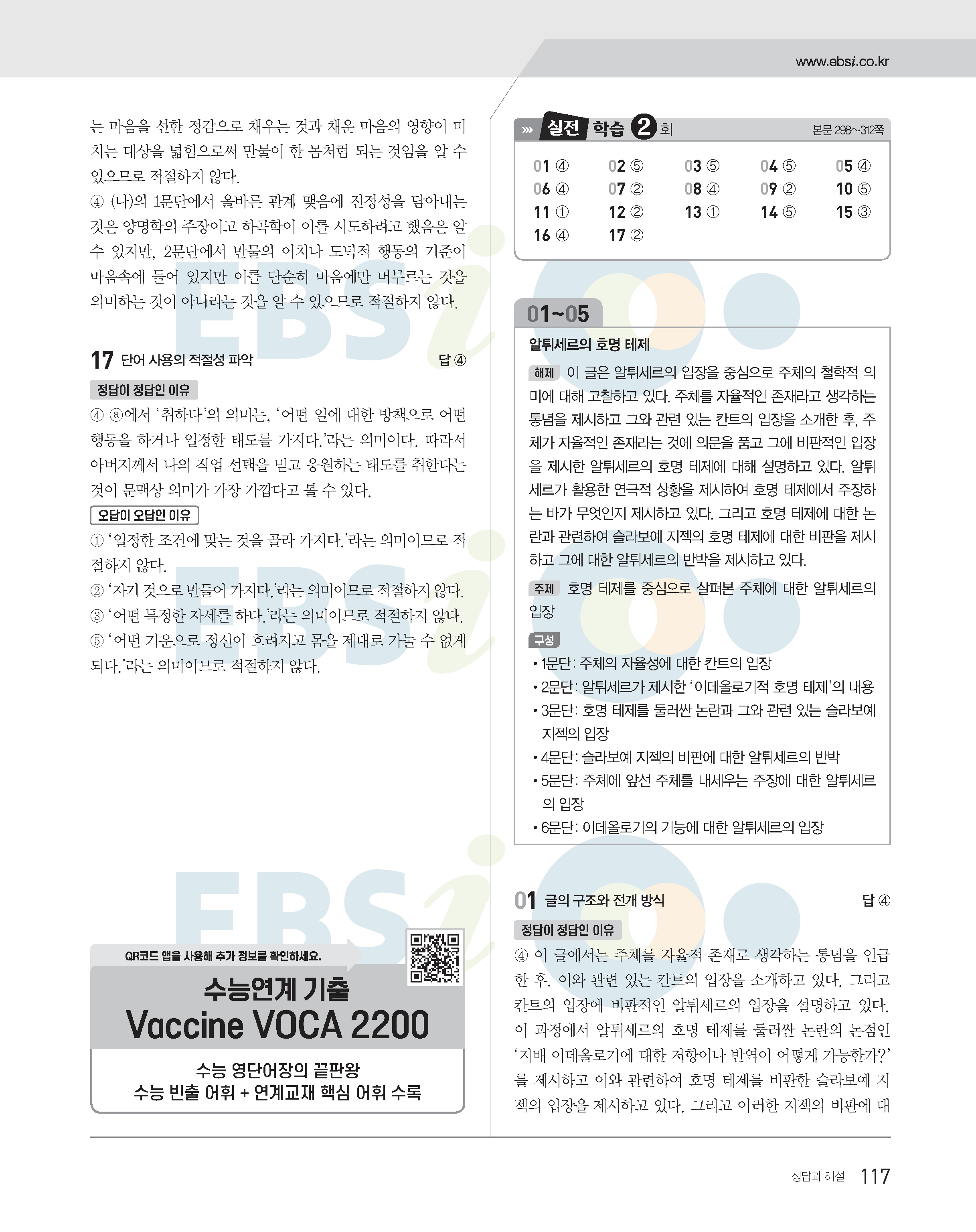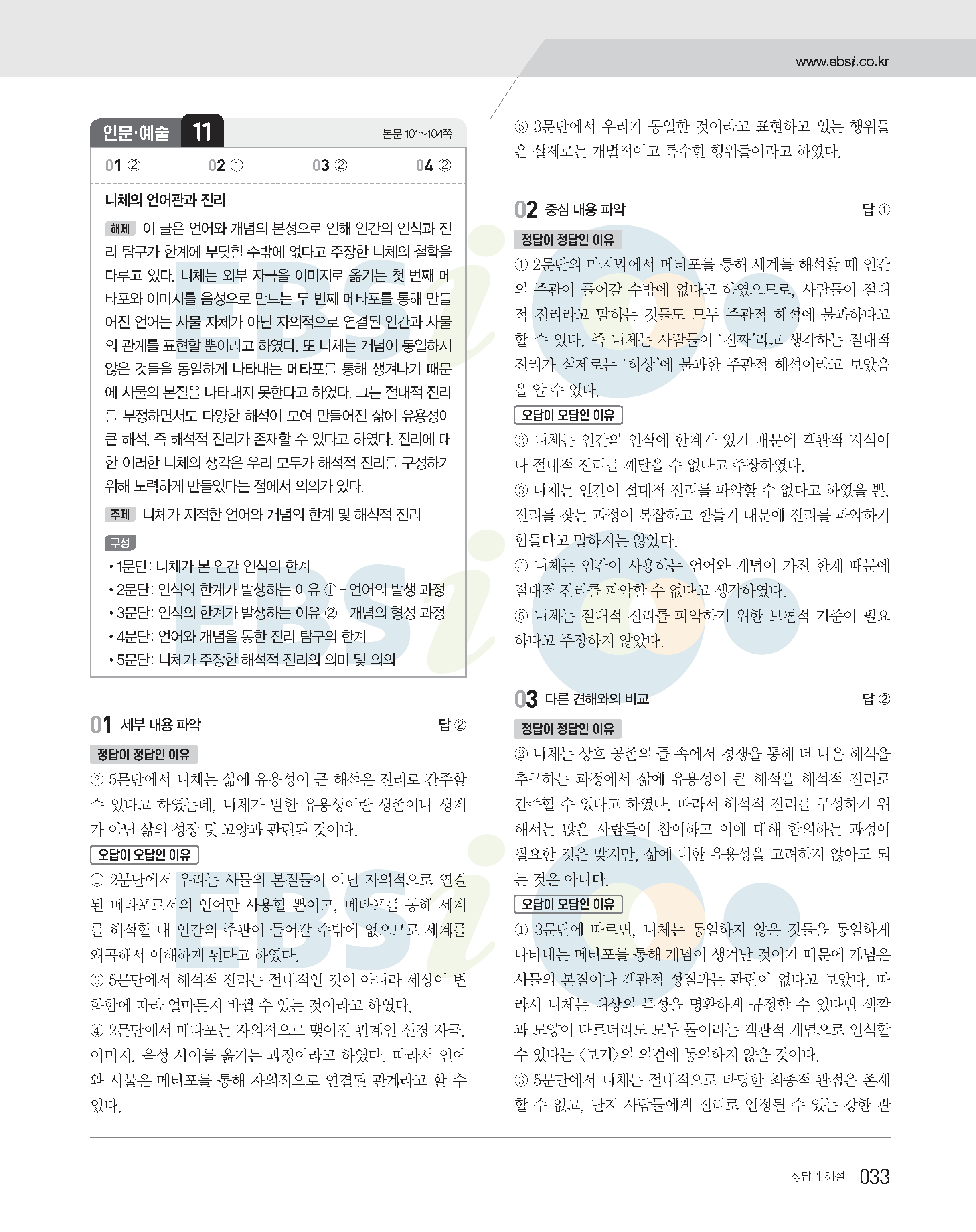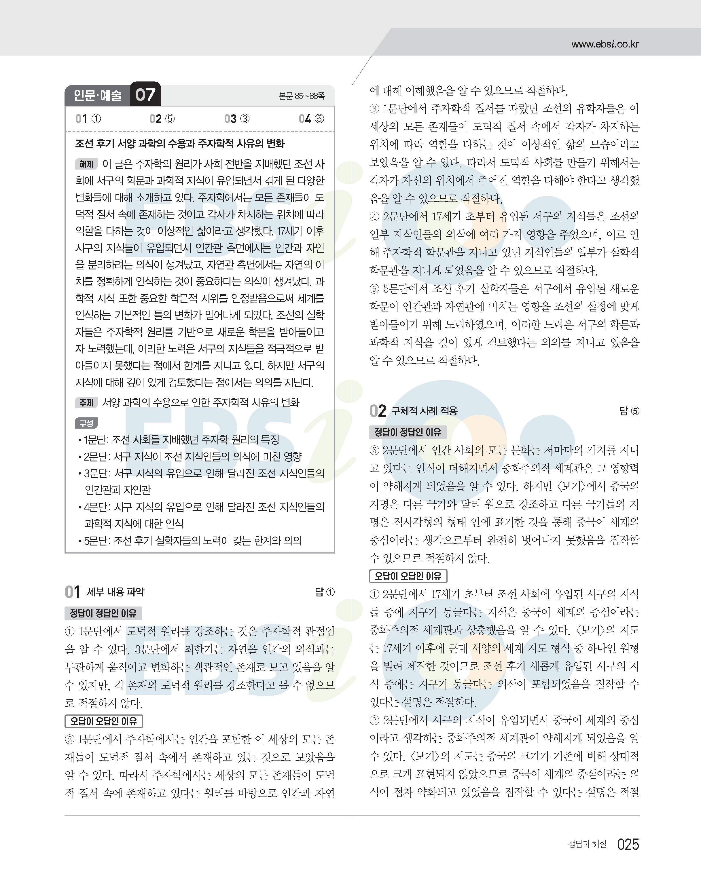 2022수능특강 독서 답지 해설지 사진답지 빠른답지 모바일최적화