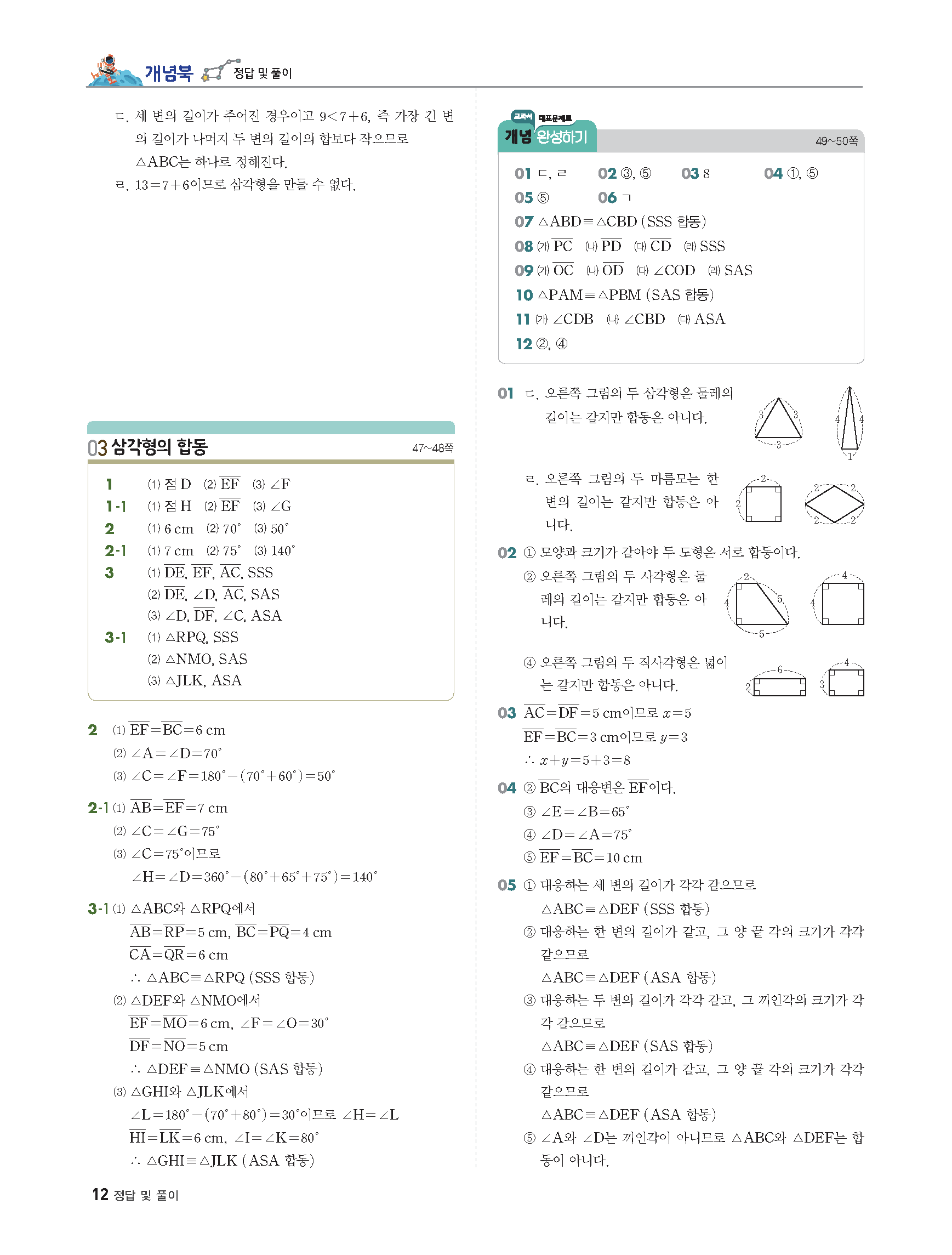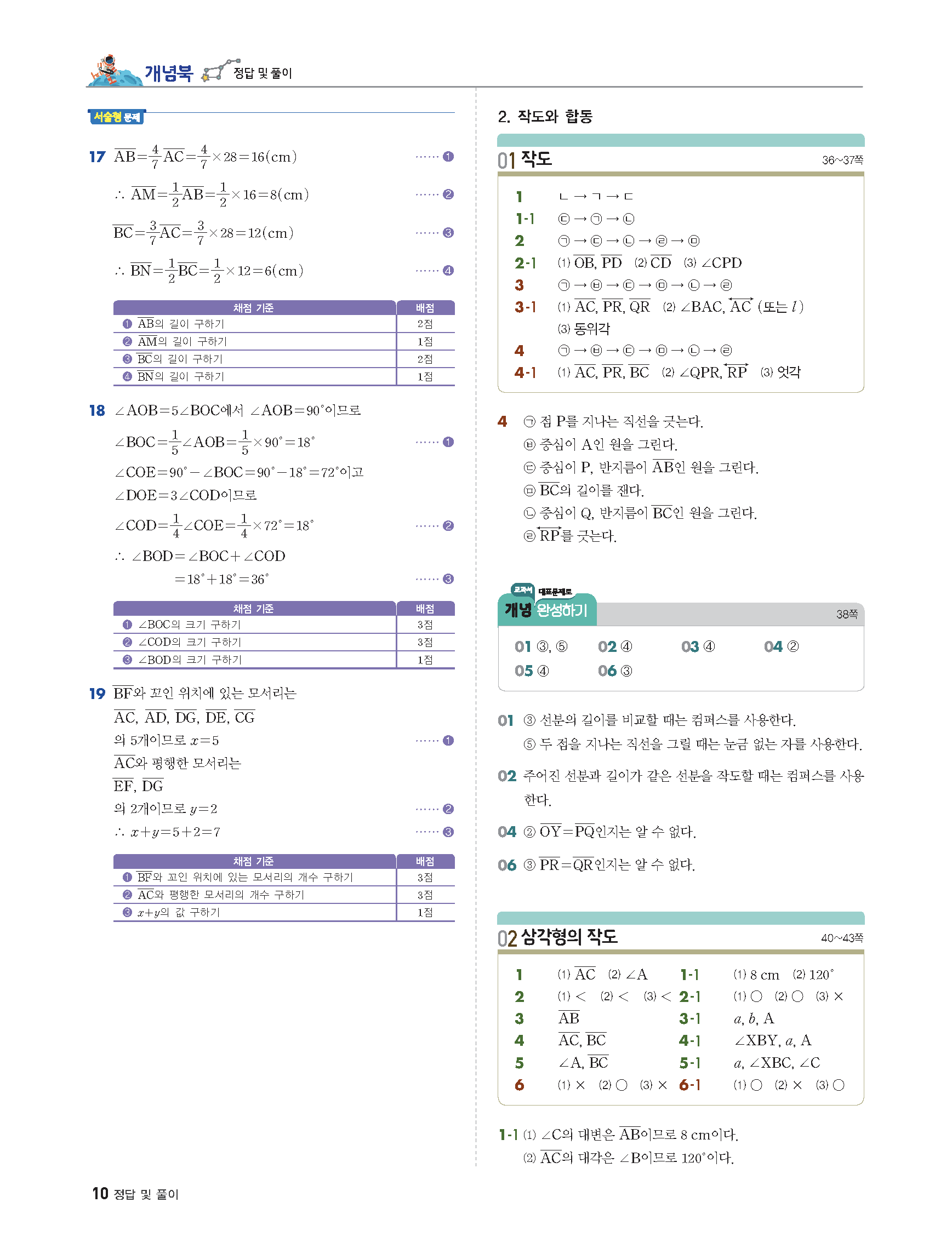 빨리이해하는수학 1-2 답지 빠른답지 사진답지 모바일최적화