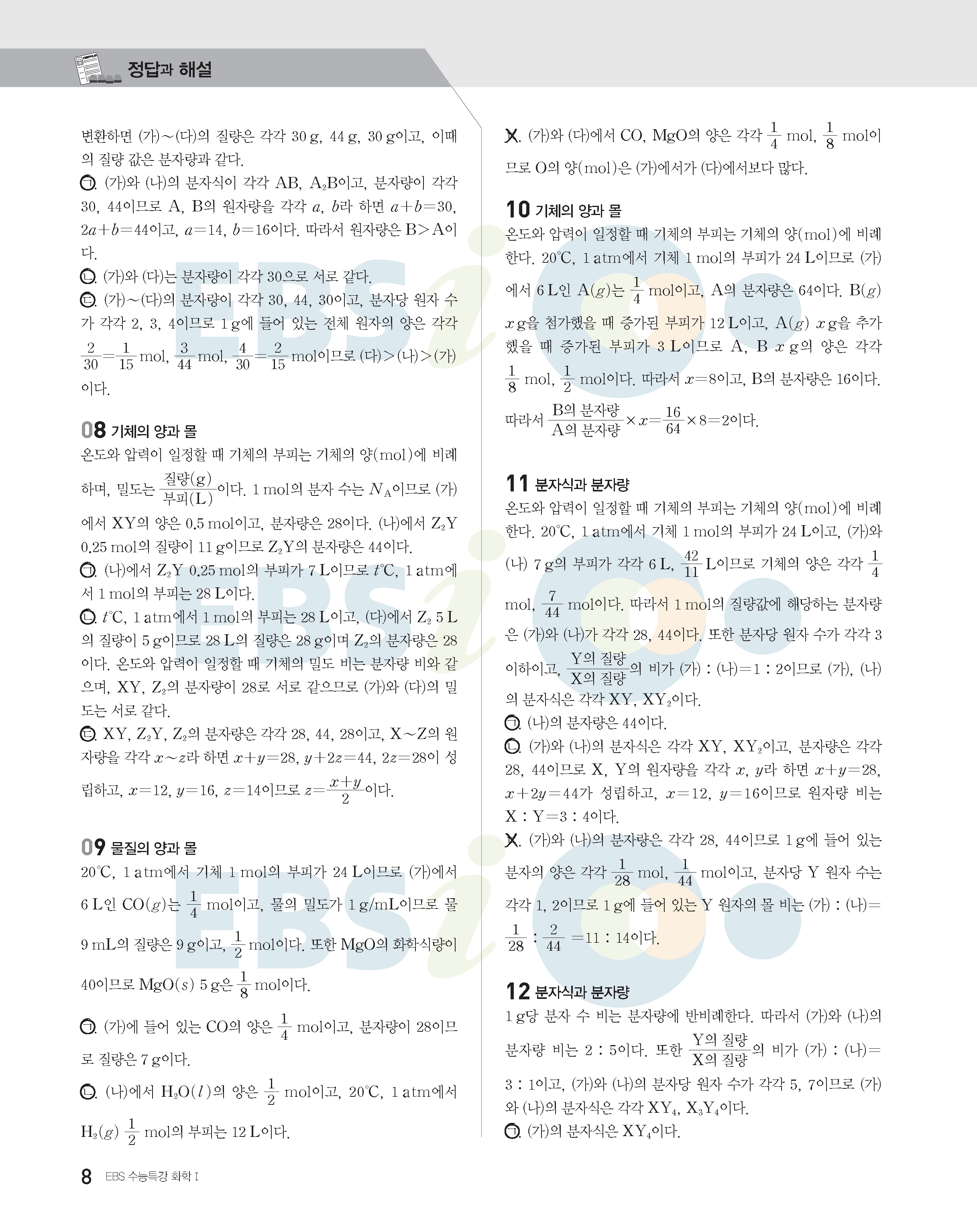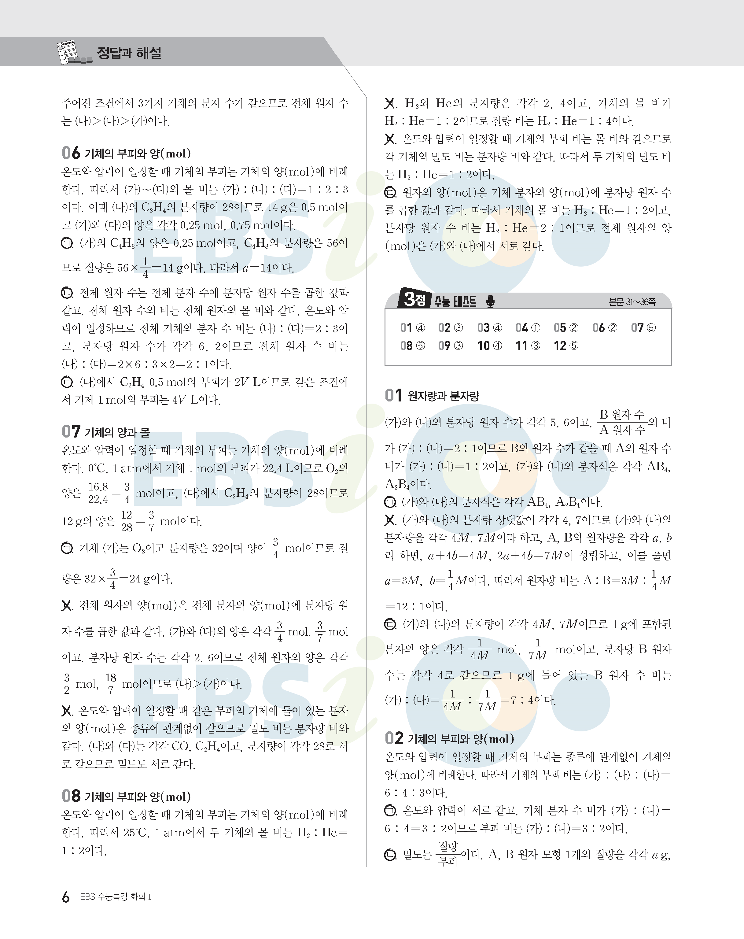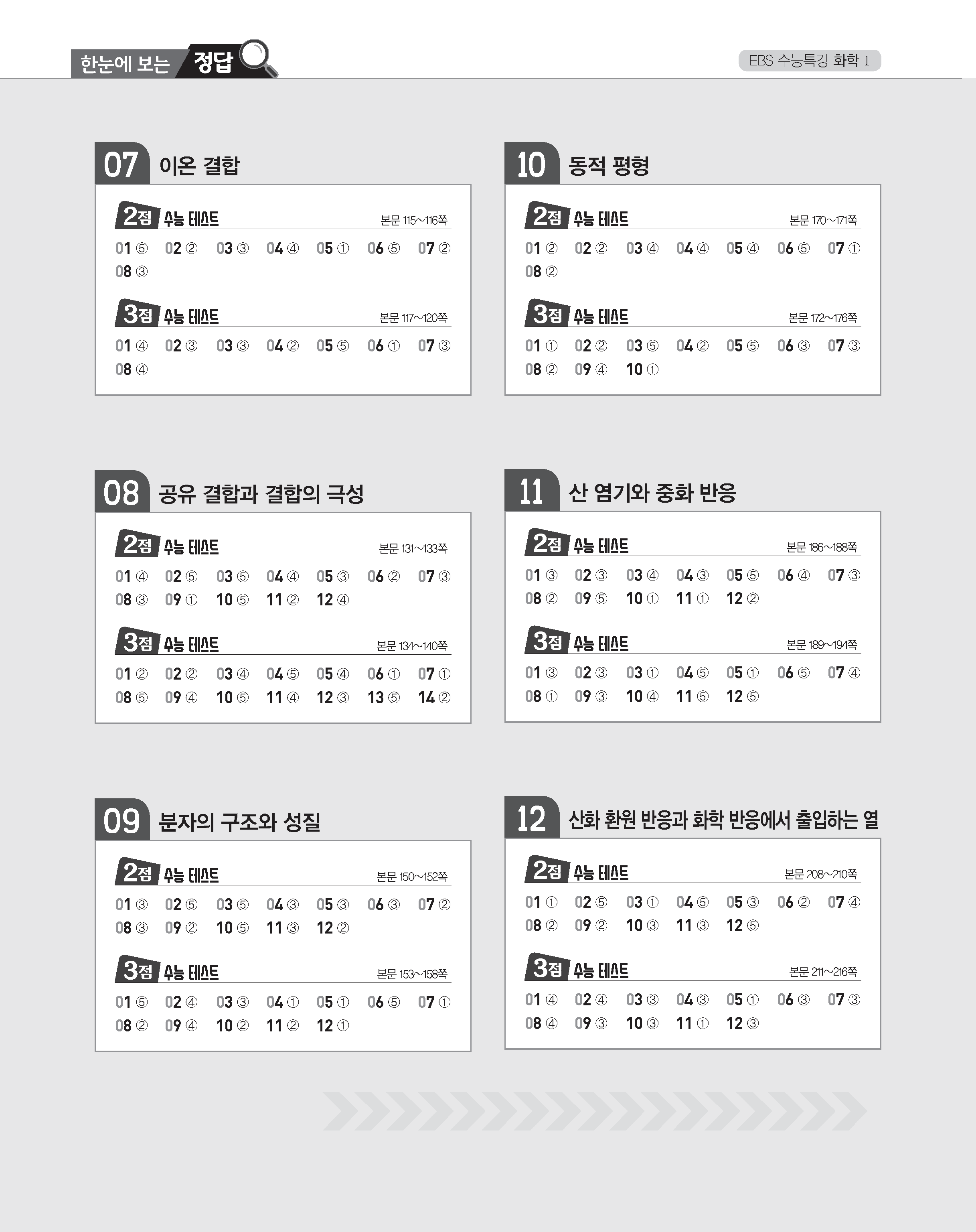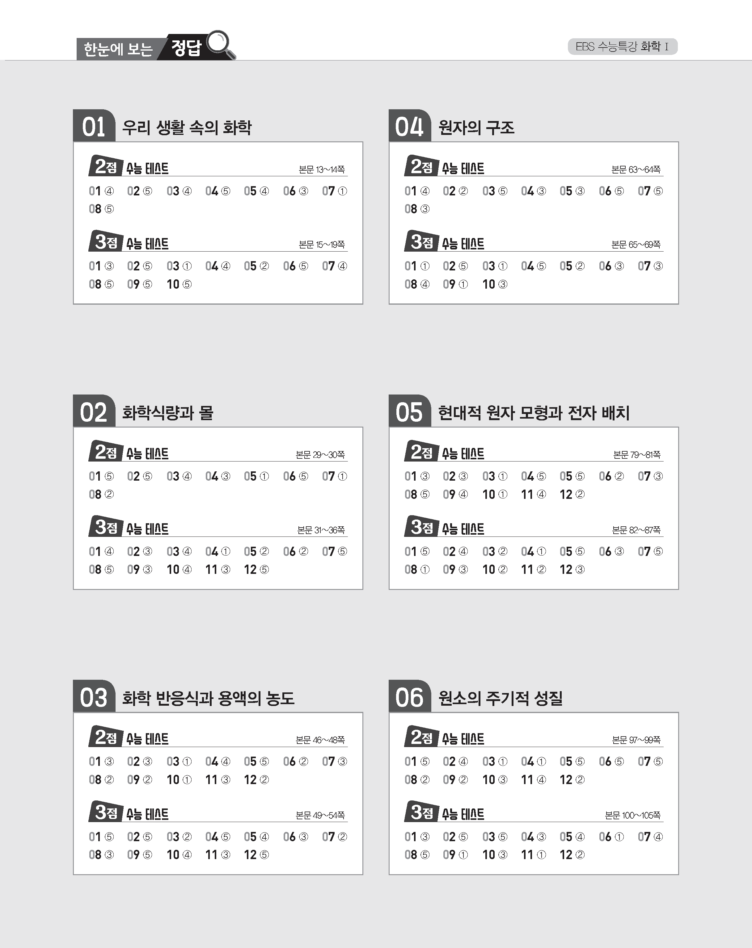 2022수능특강 화학1 답지 해설지 사진답지 빠른답지 모바일최적화