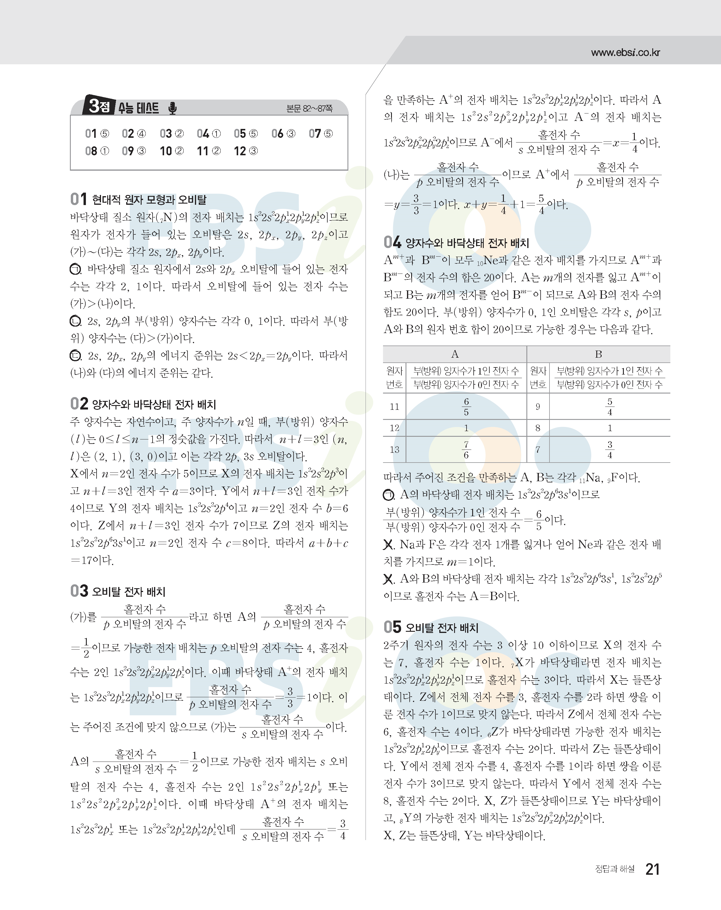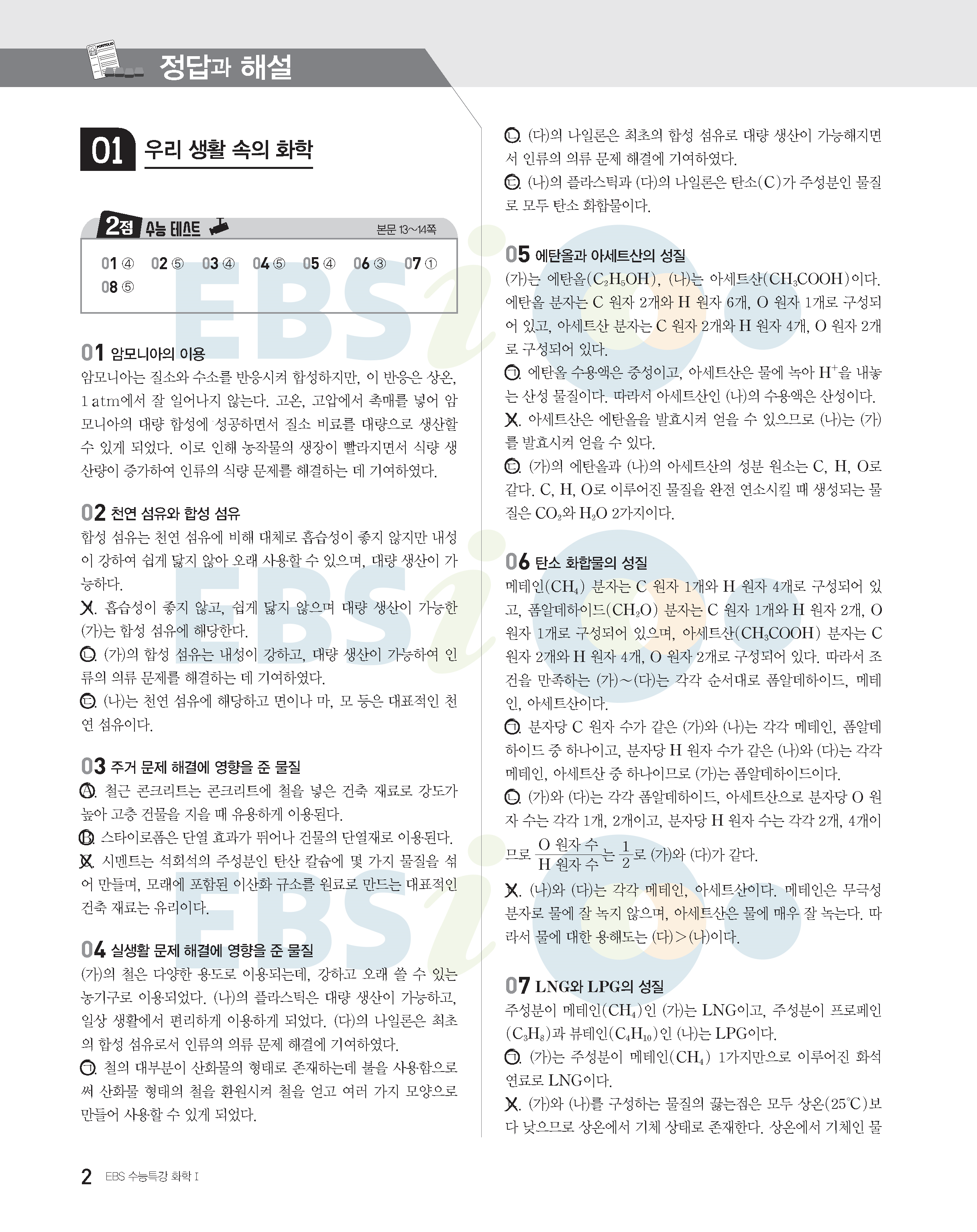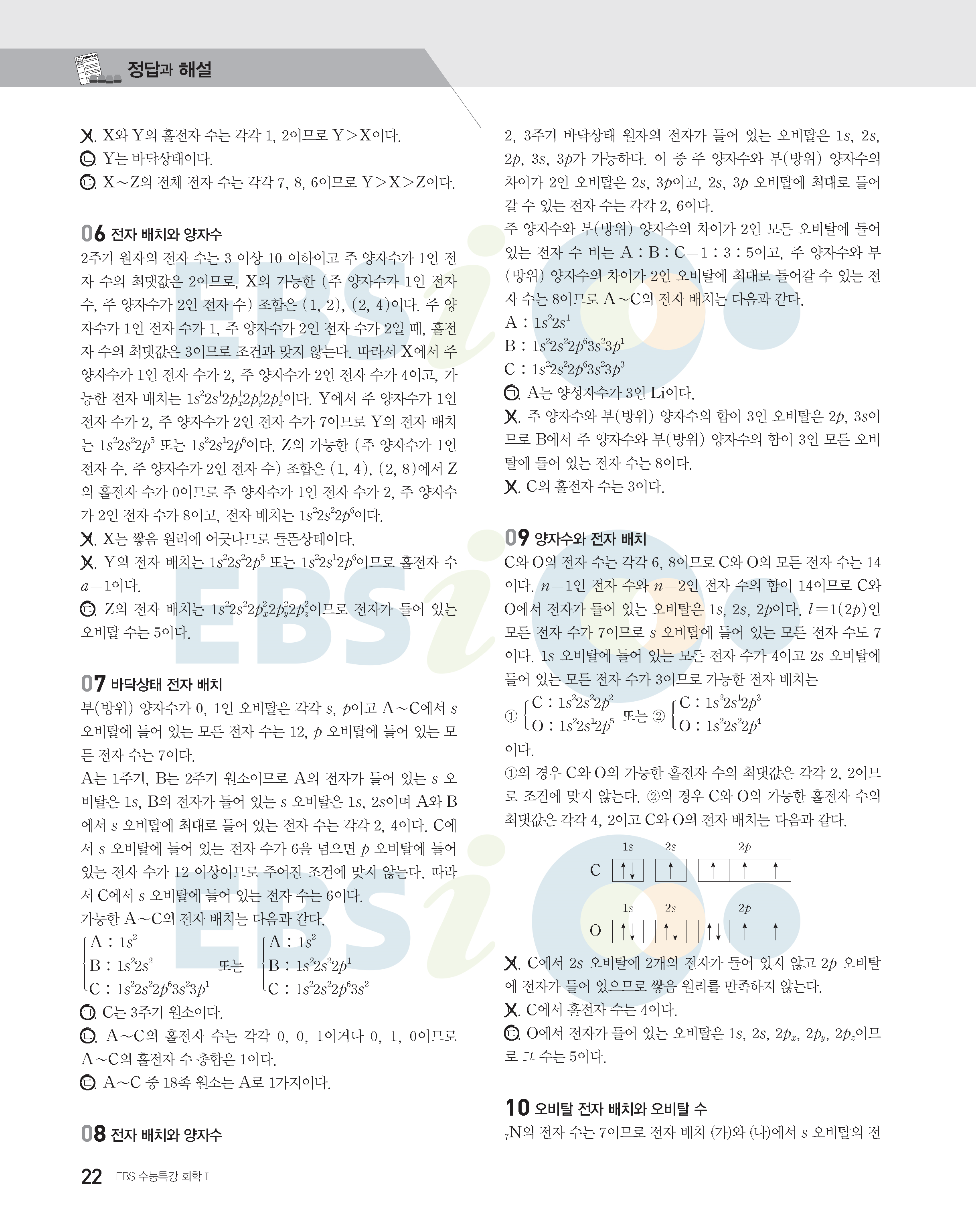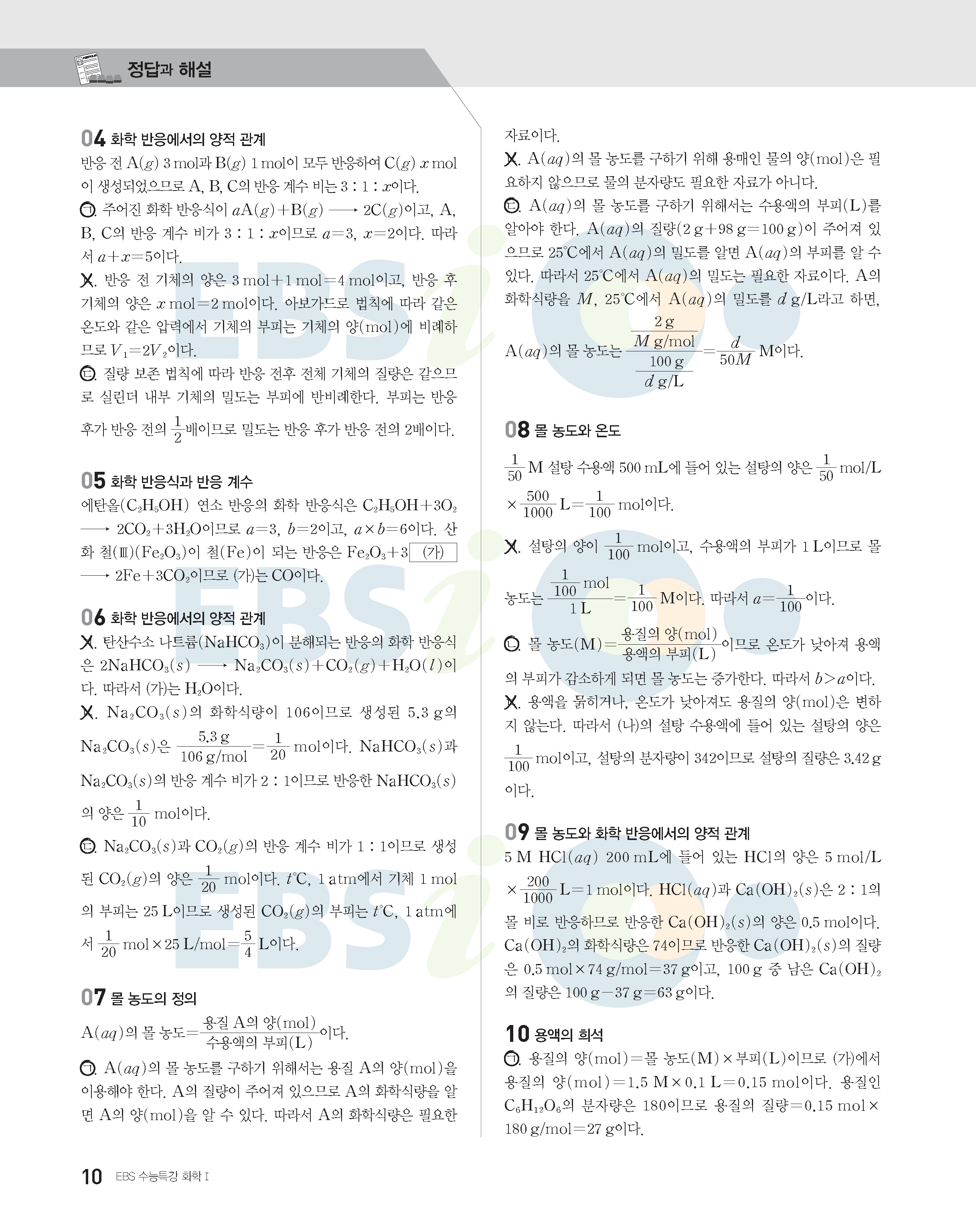 2022수능특강 화학1 답지 해설지 사진답지 빠른답지 모바일최적화