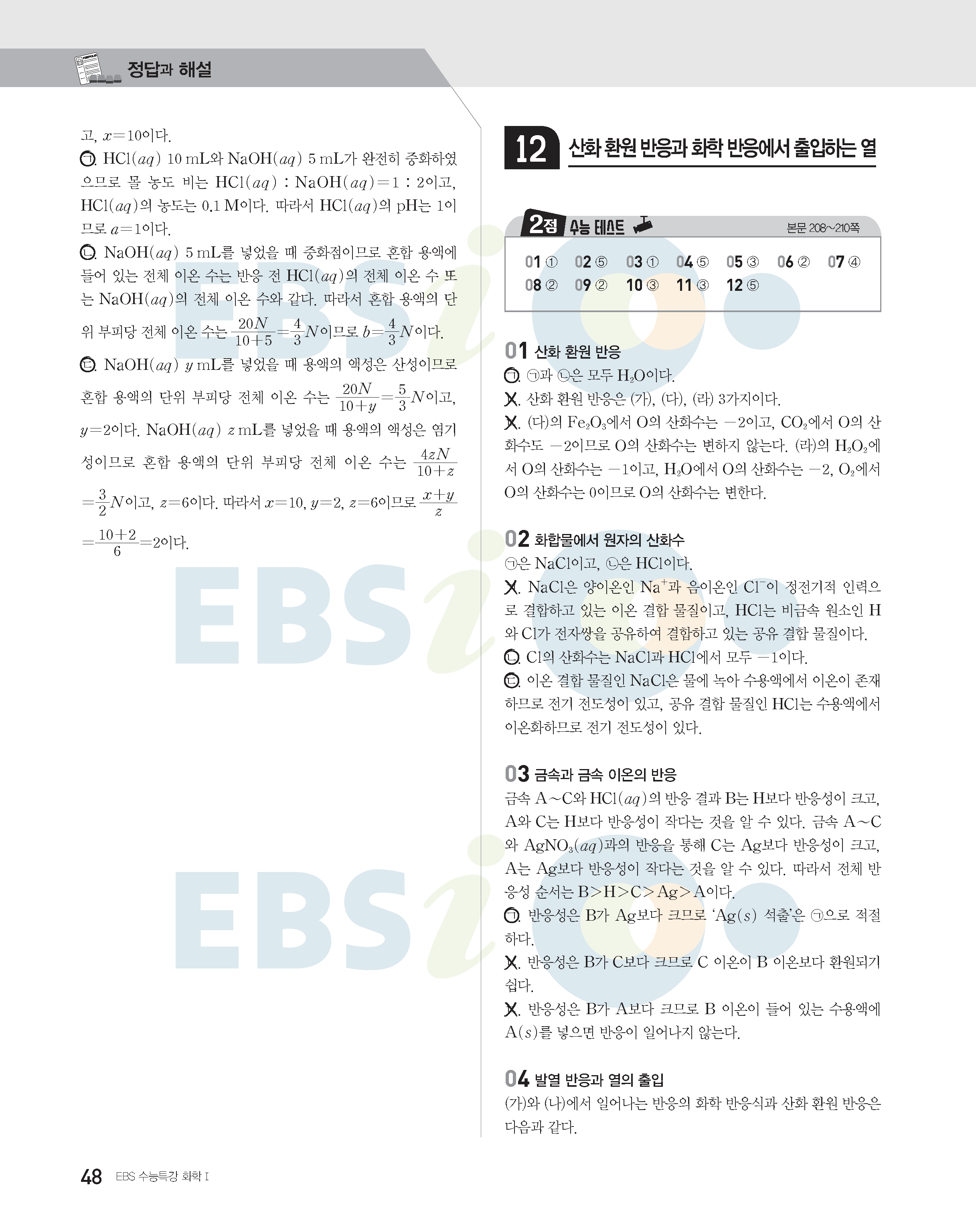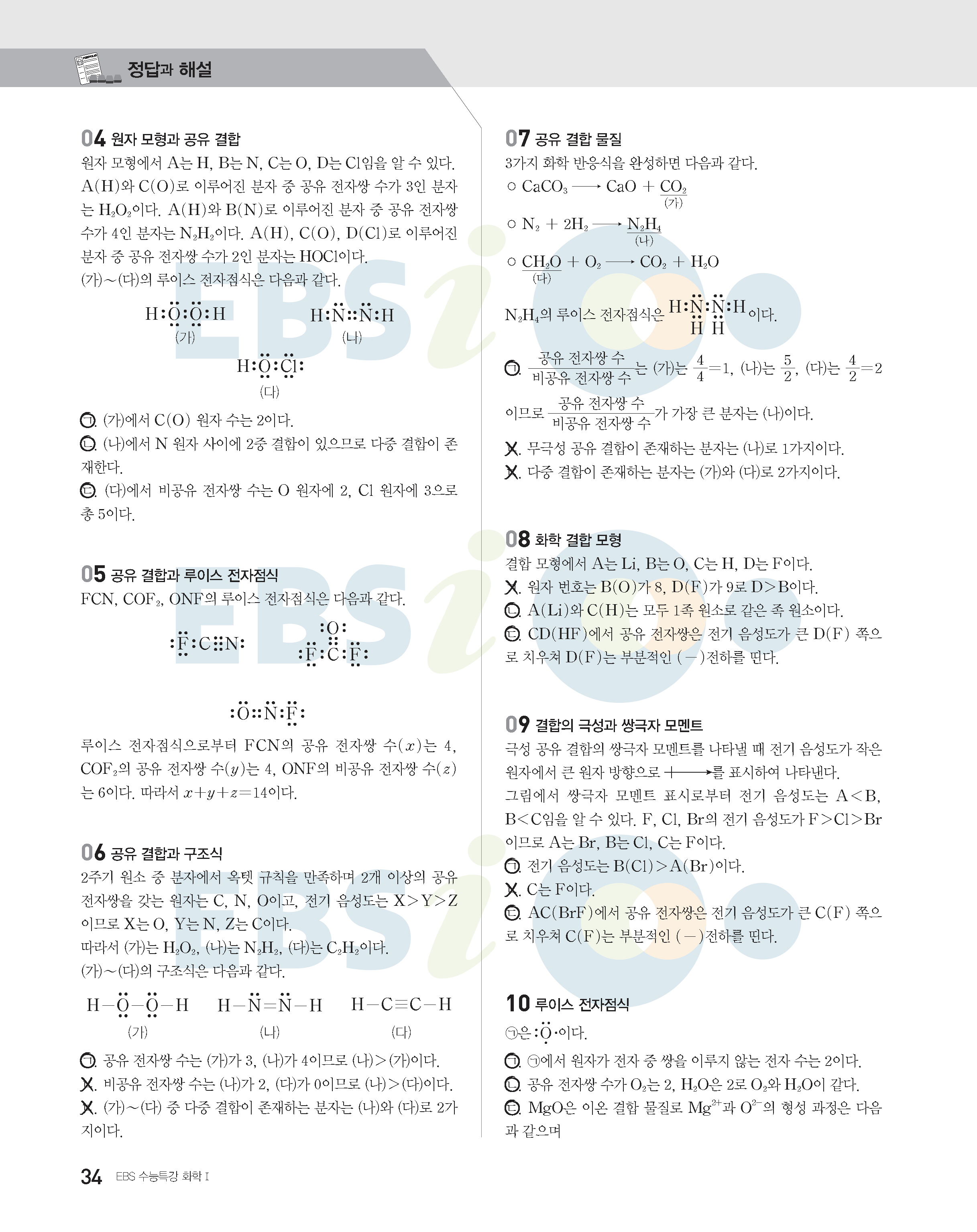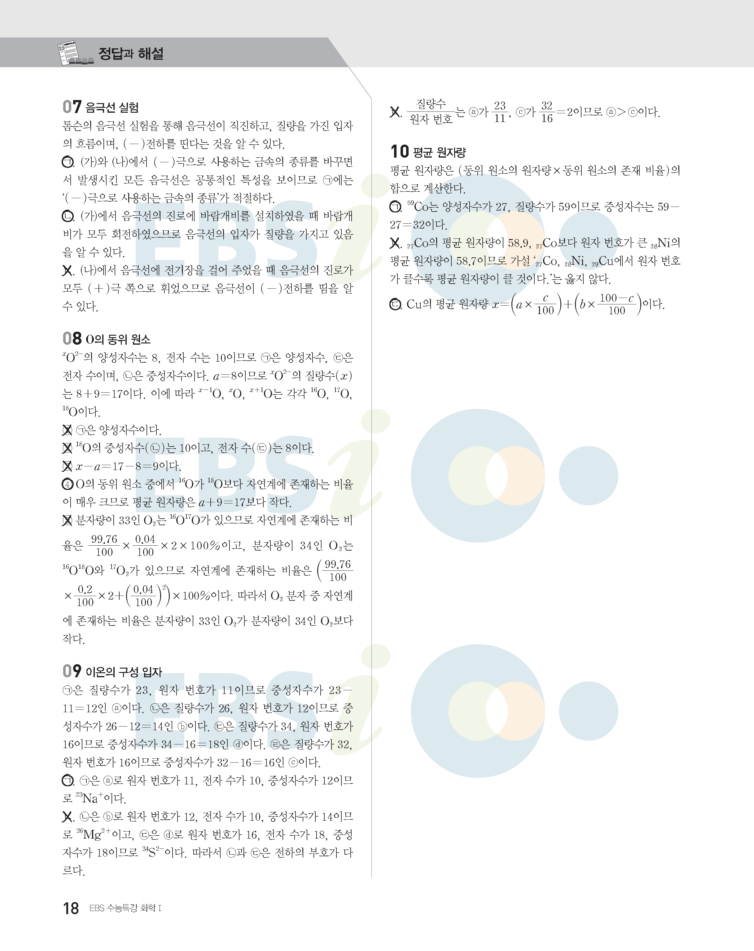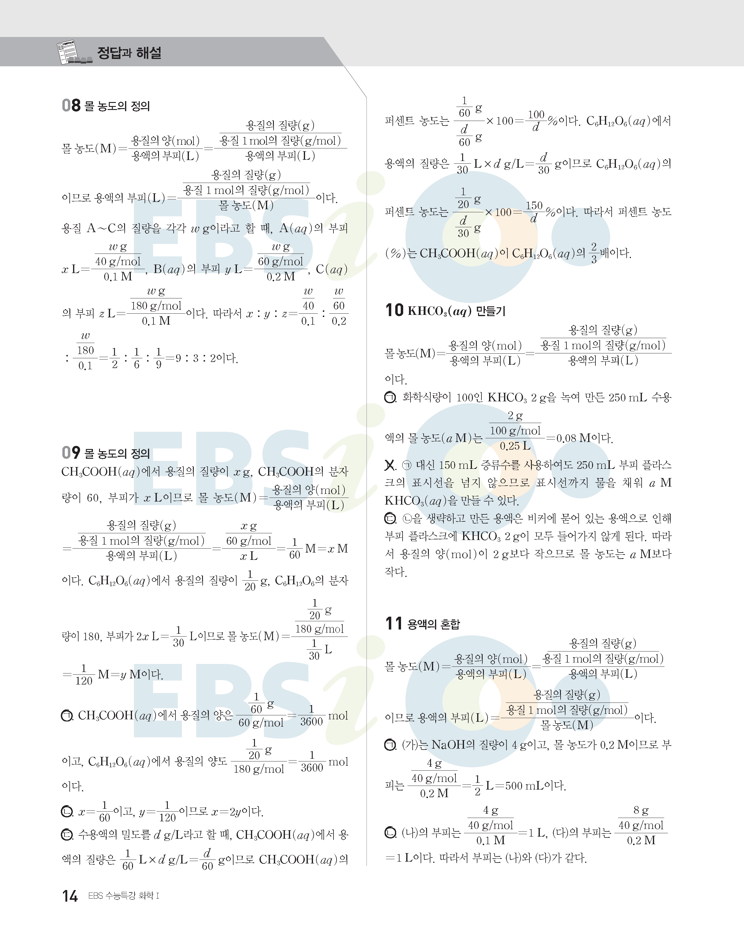 2022수능특강 화학1 답지 해설지 사진답지 빠른답지 모바일최적화