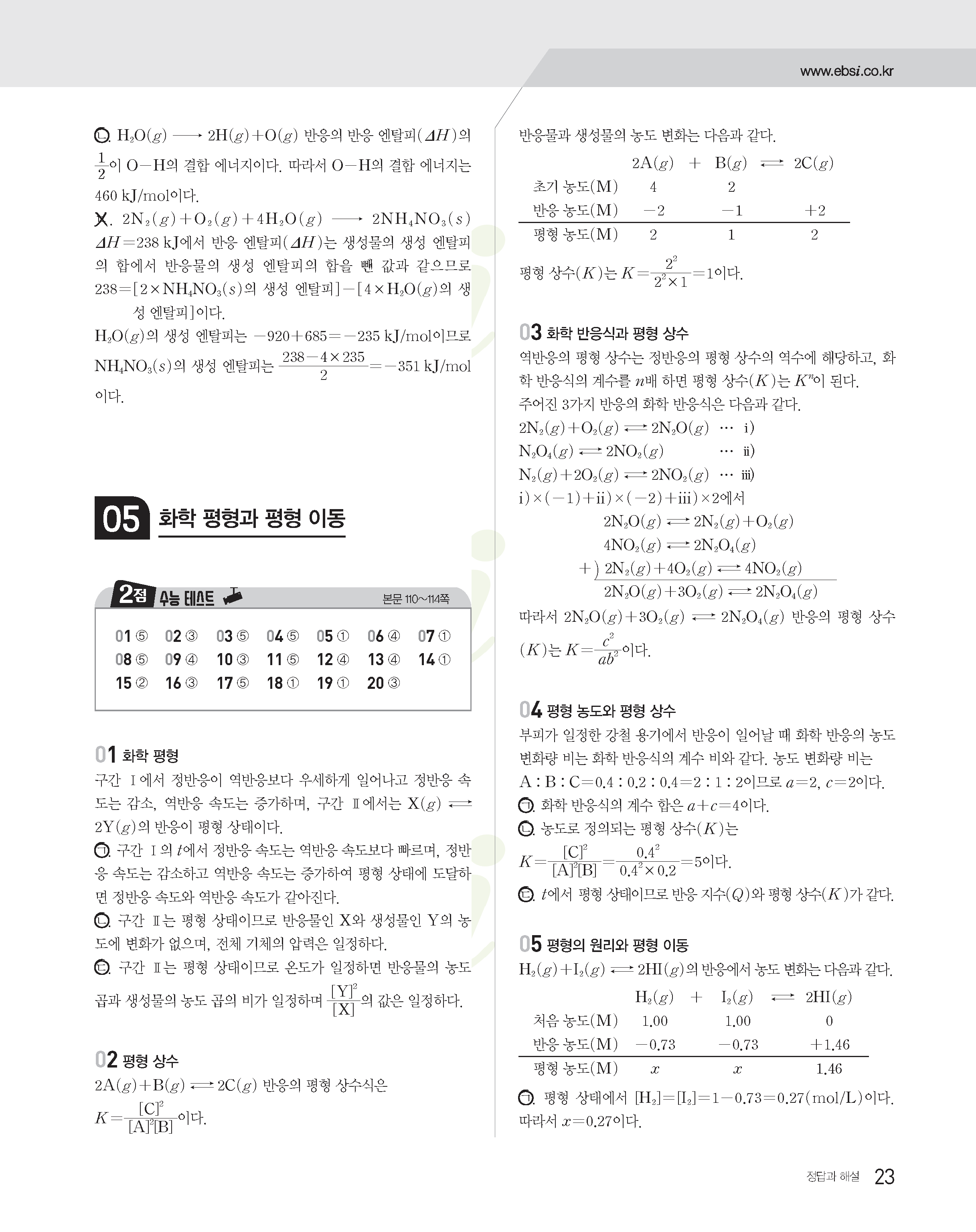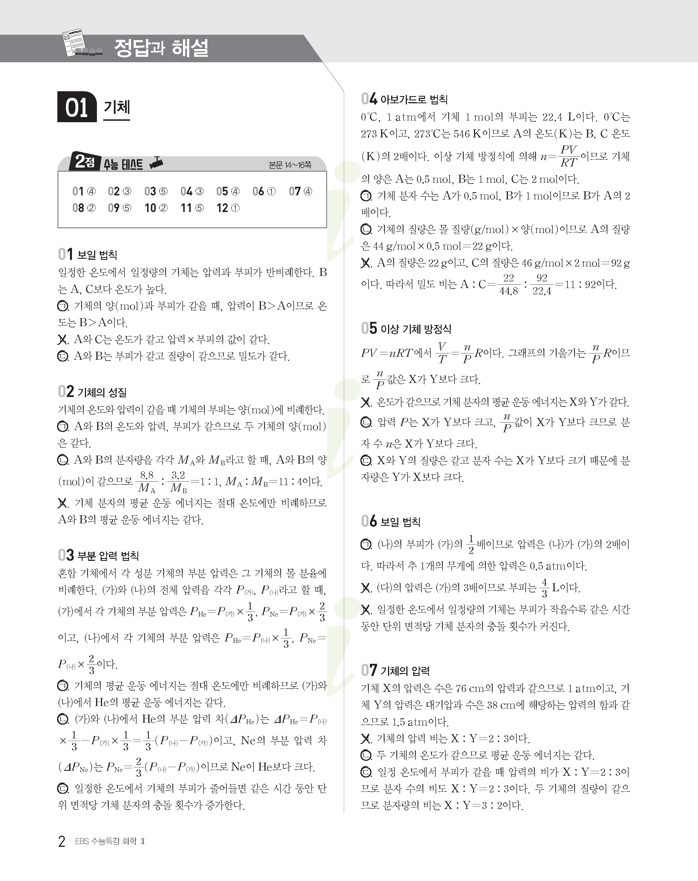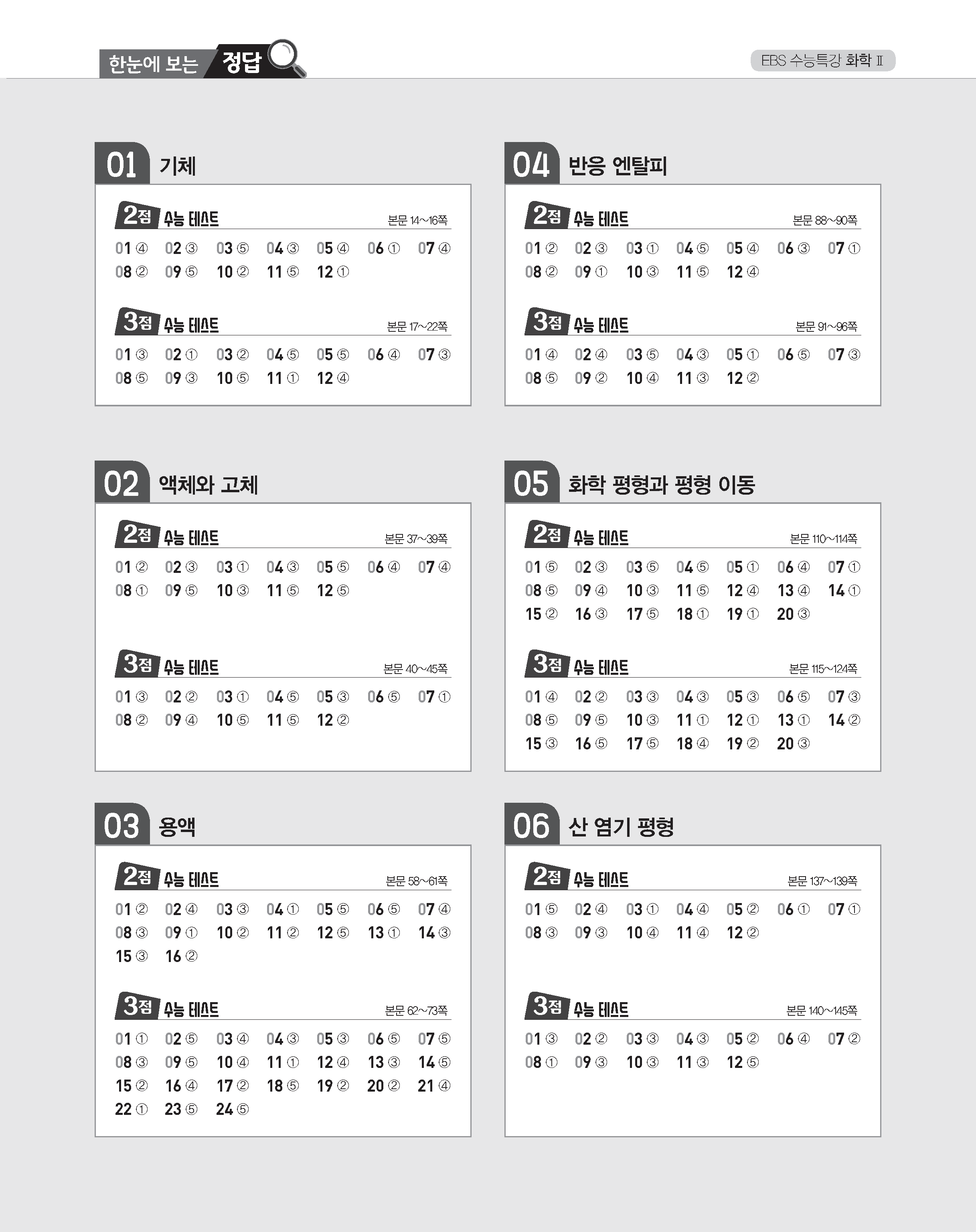 2022수능특강 화학2 답지 해설지 사진답지 빠른답지 모바일최적화
