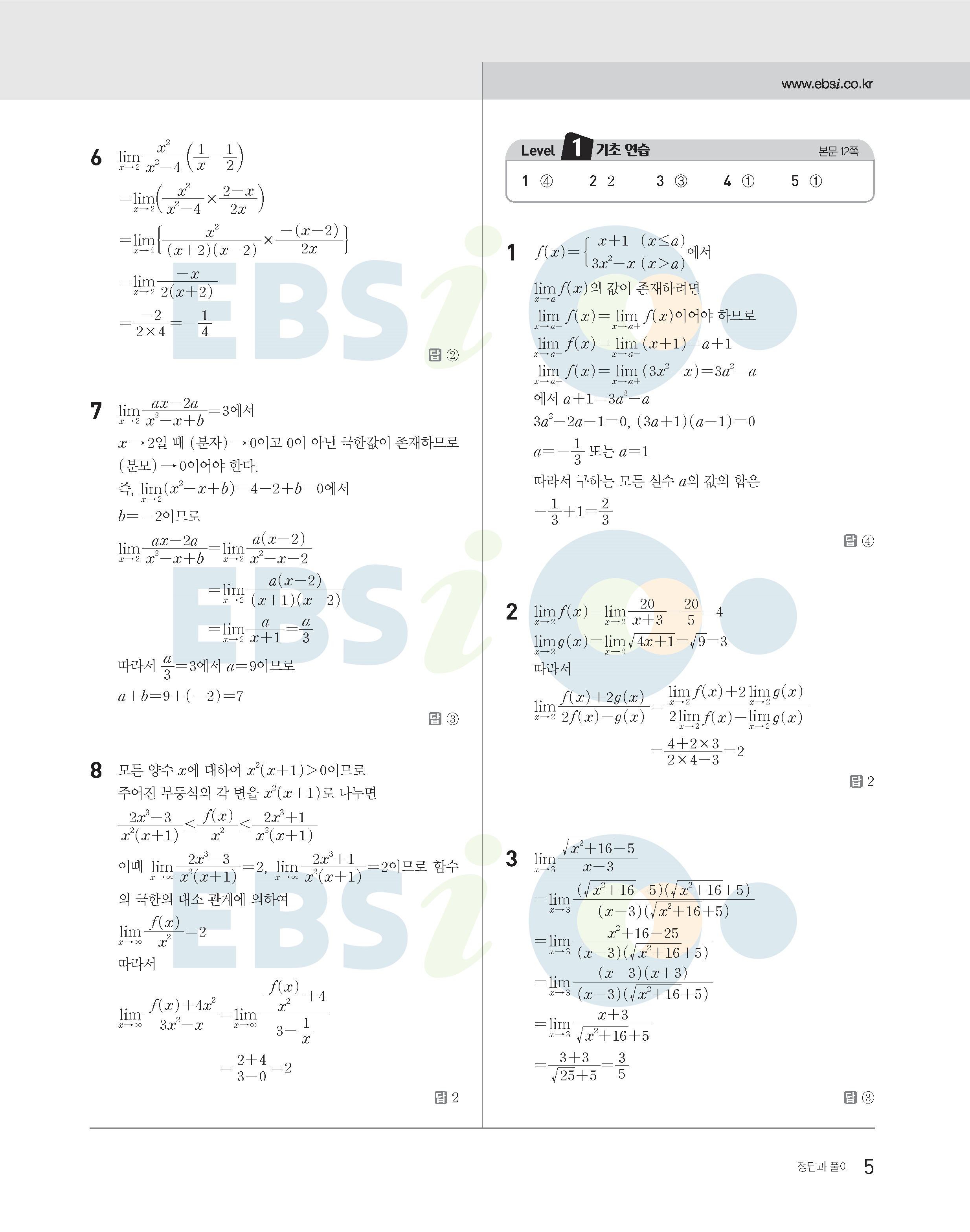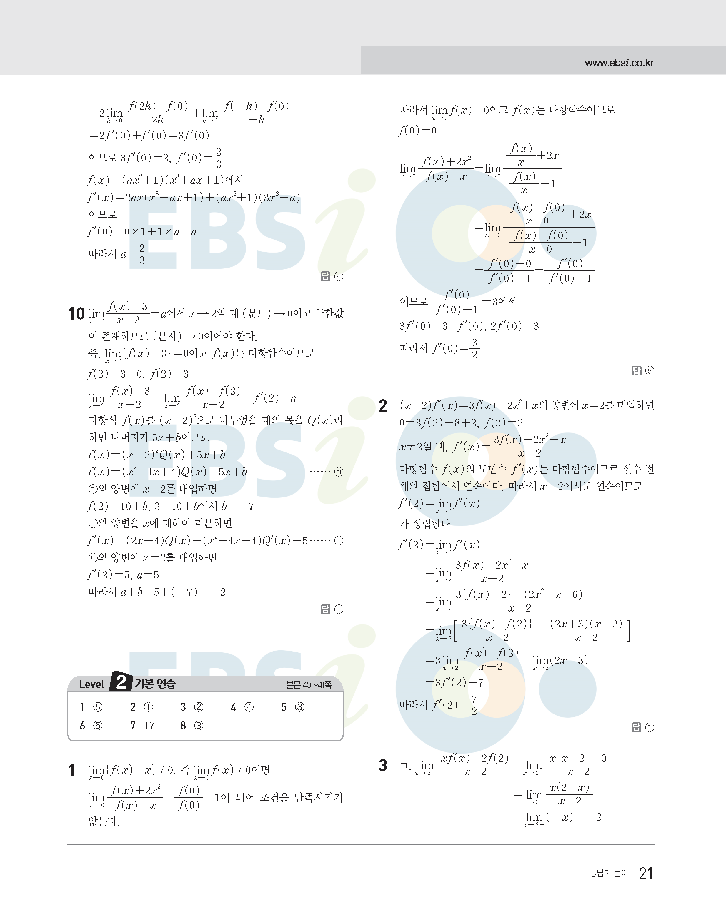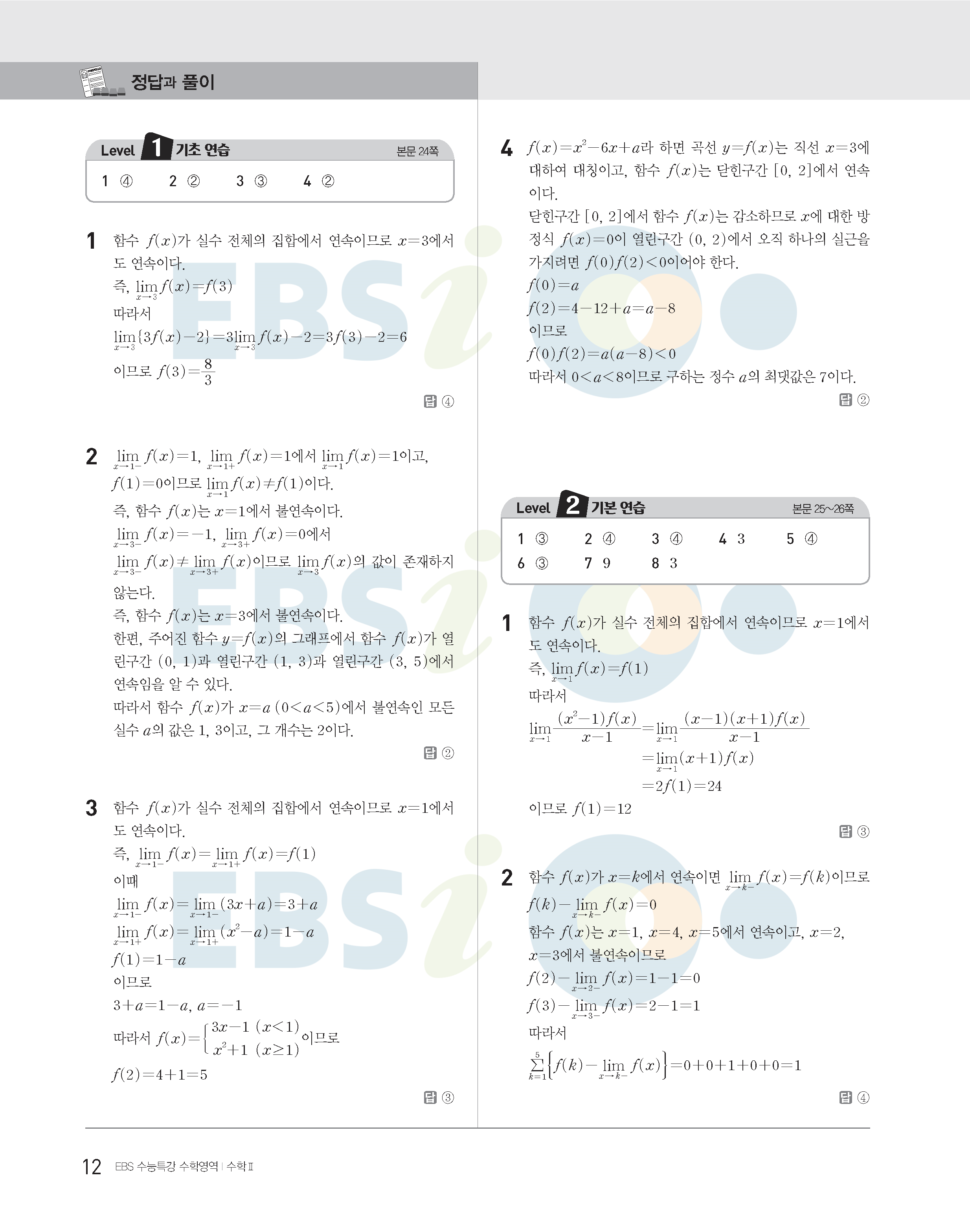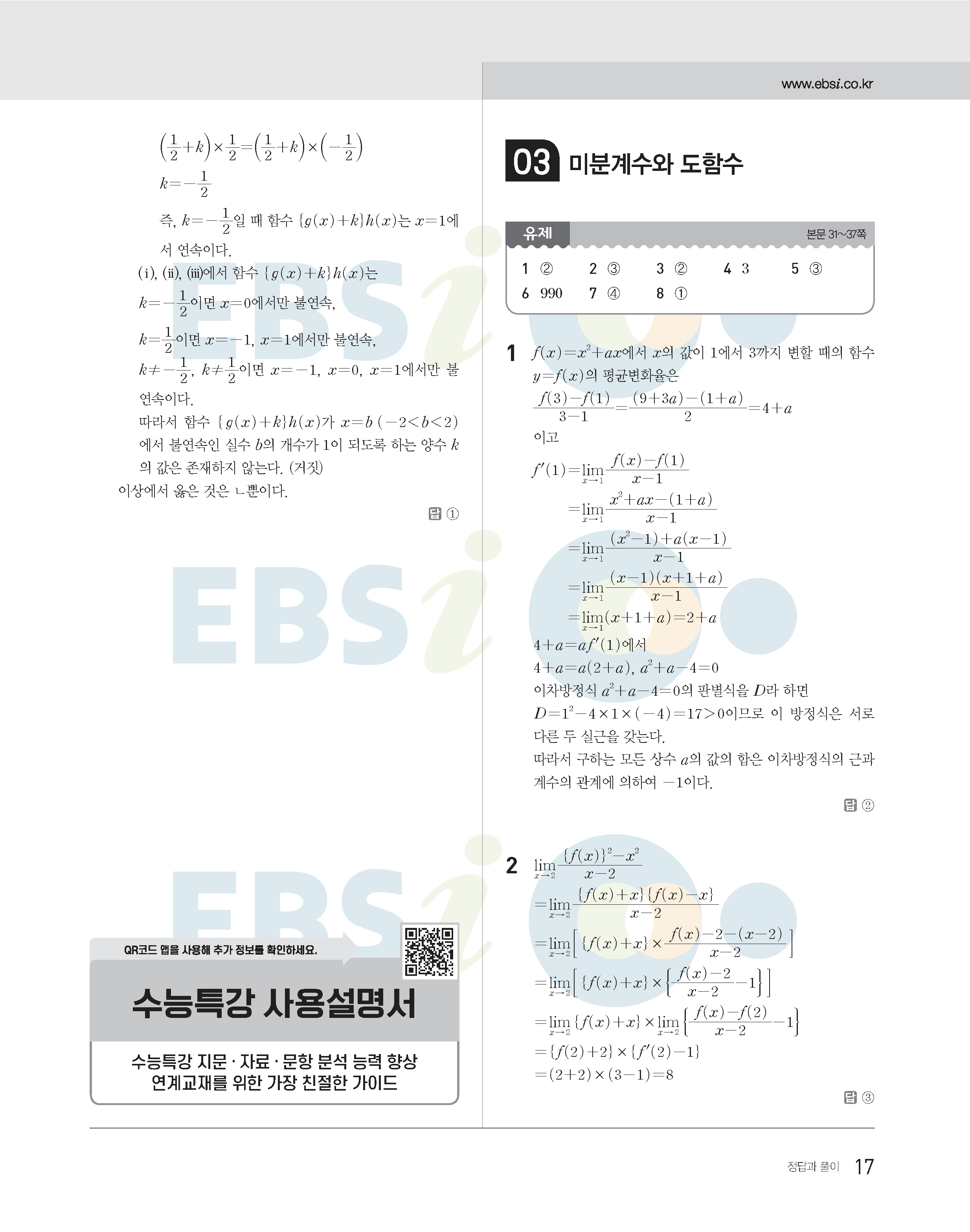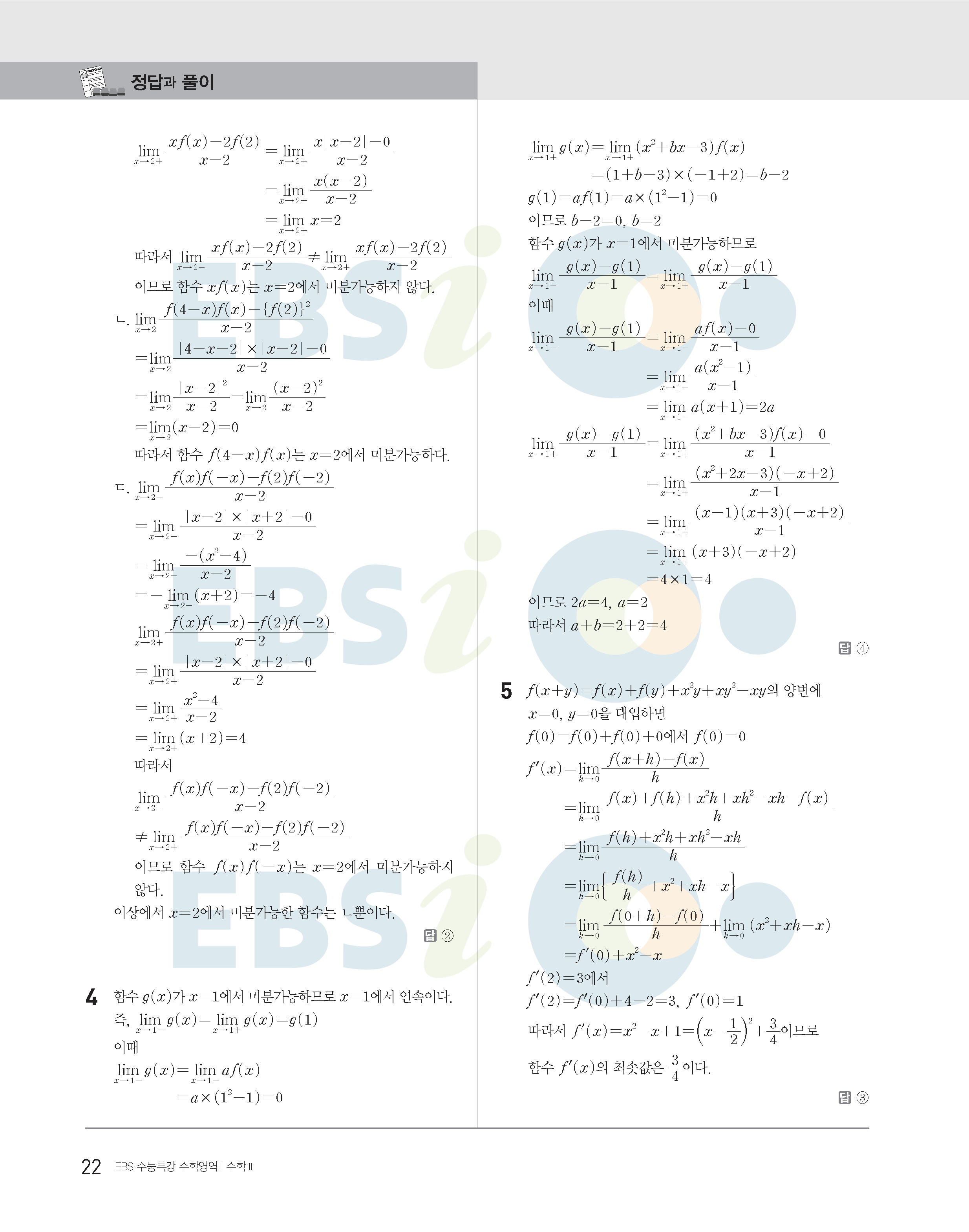 2022수능특강 수학2 사진답지 빠른답지 모바일최적화
