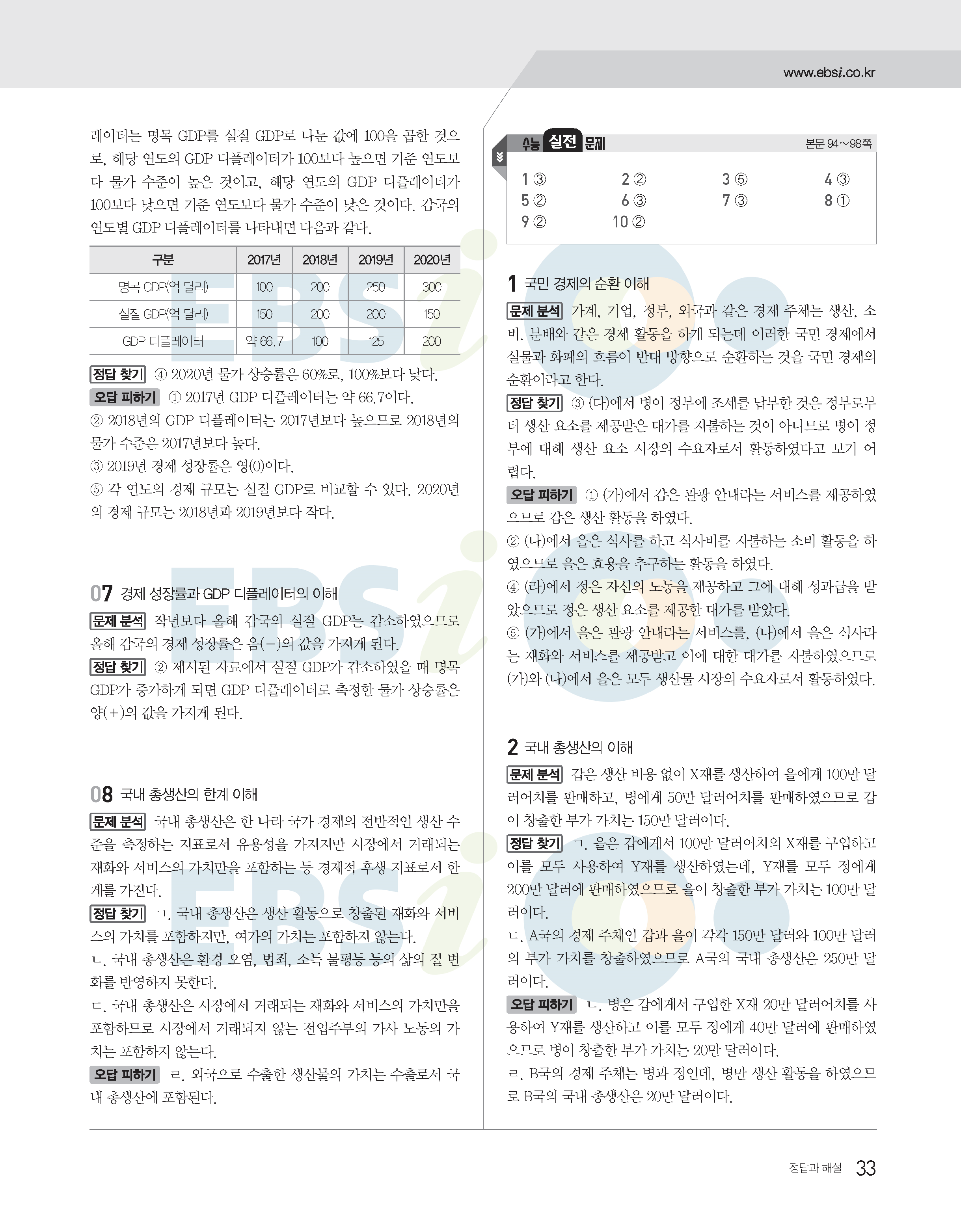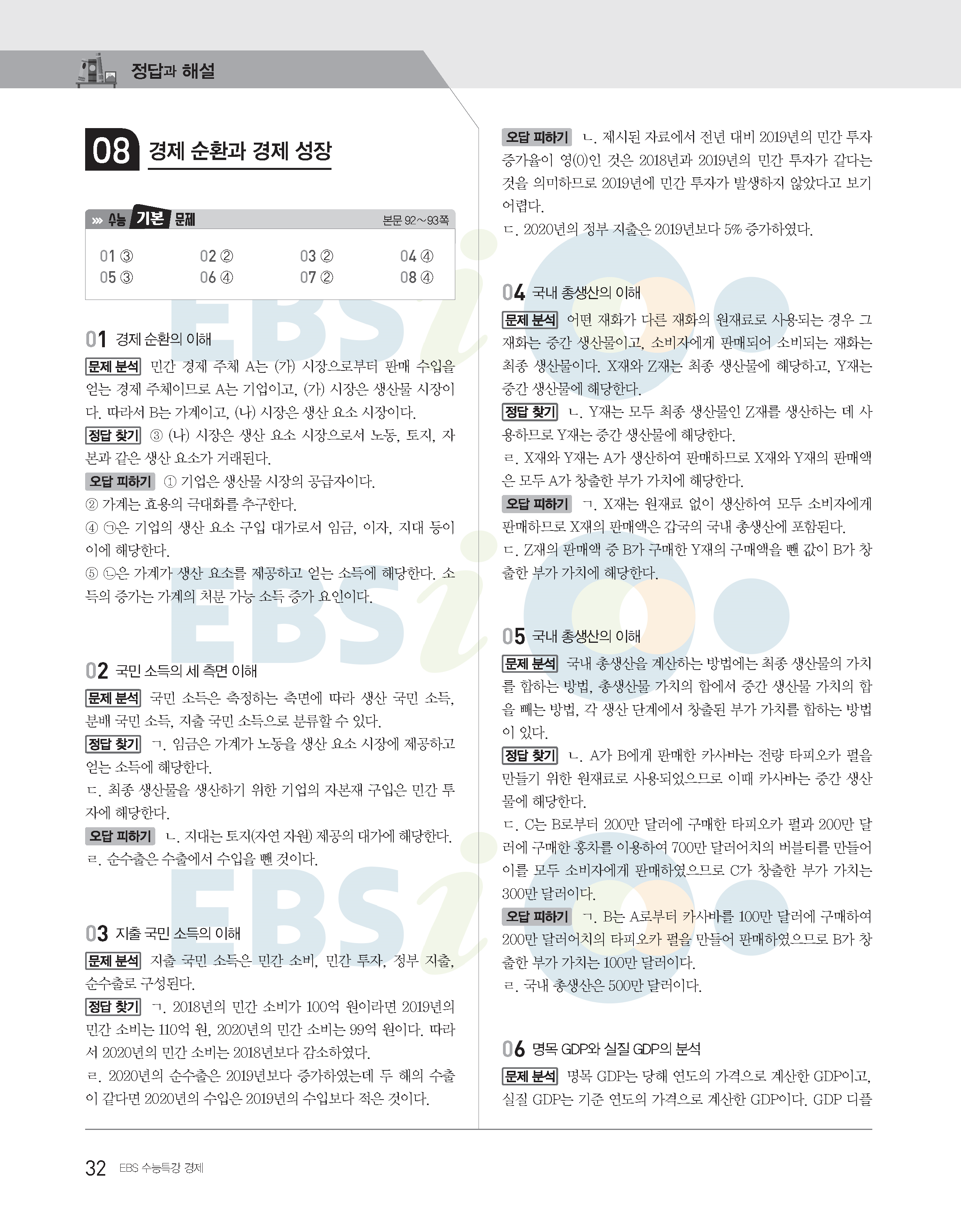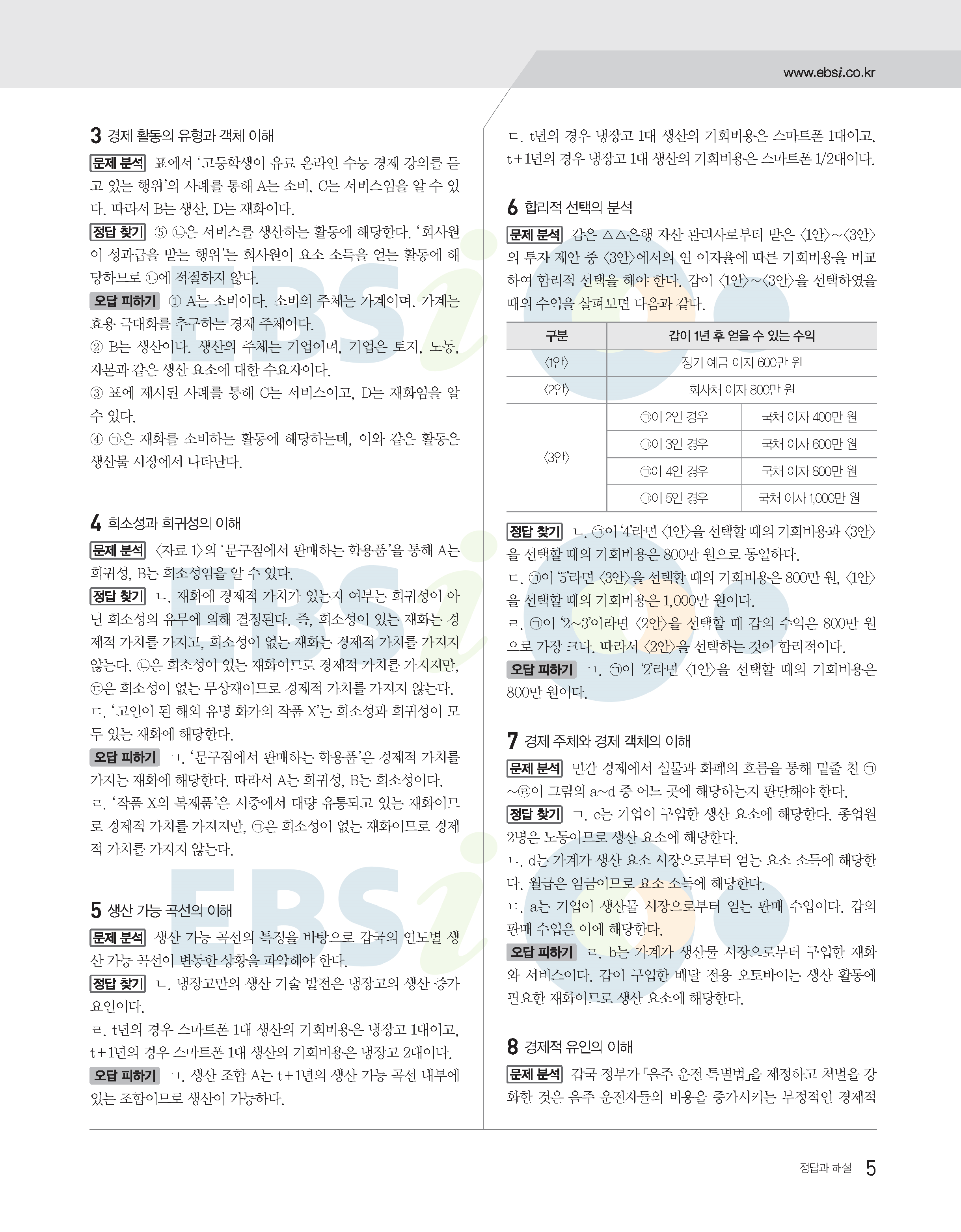 2022수능특강 경제 사진답지 빠른답지 모바일최적화