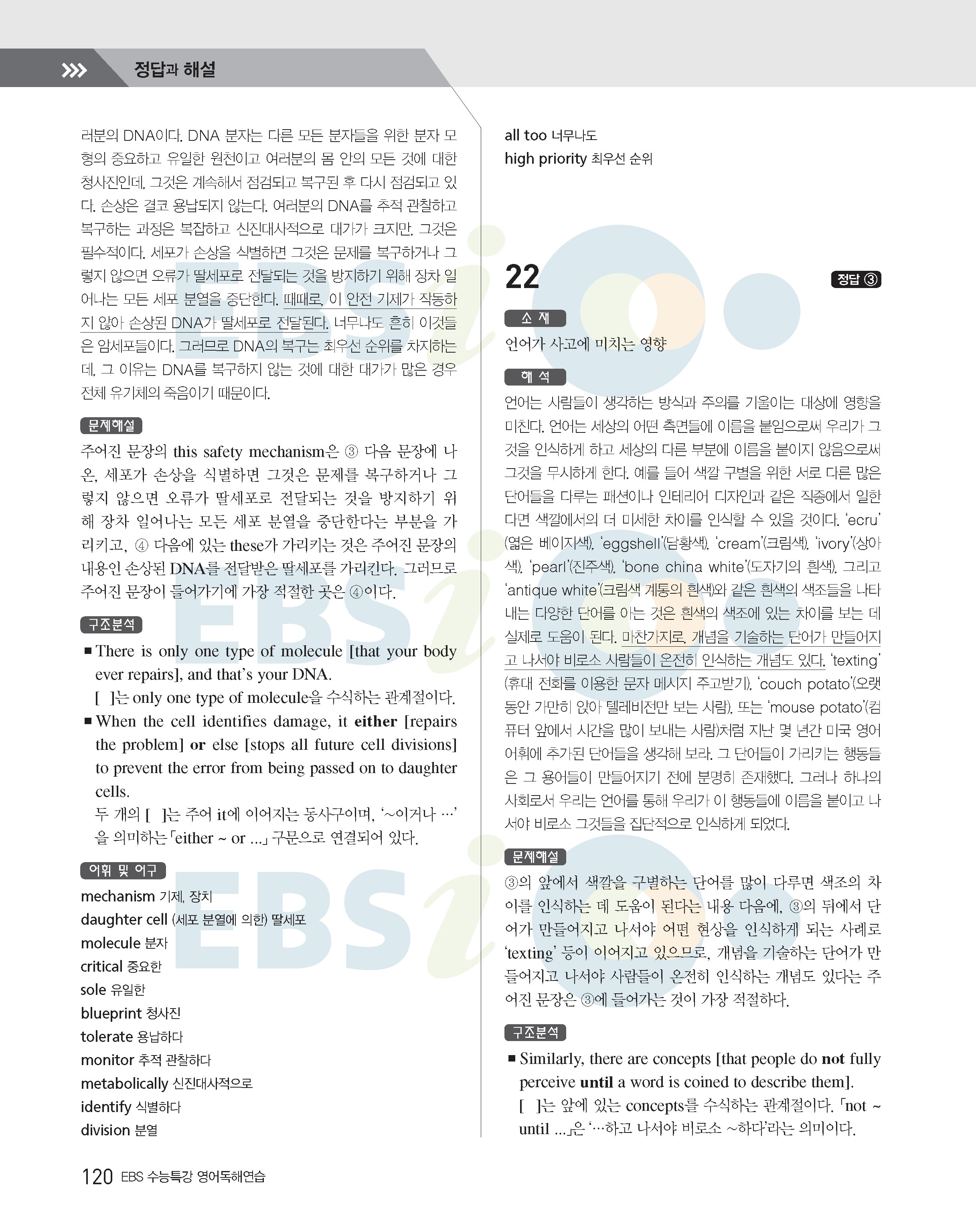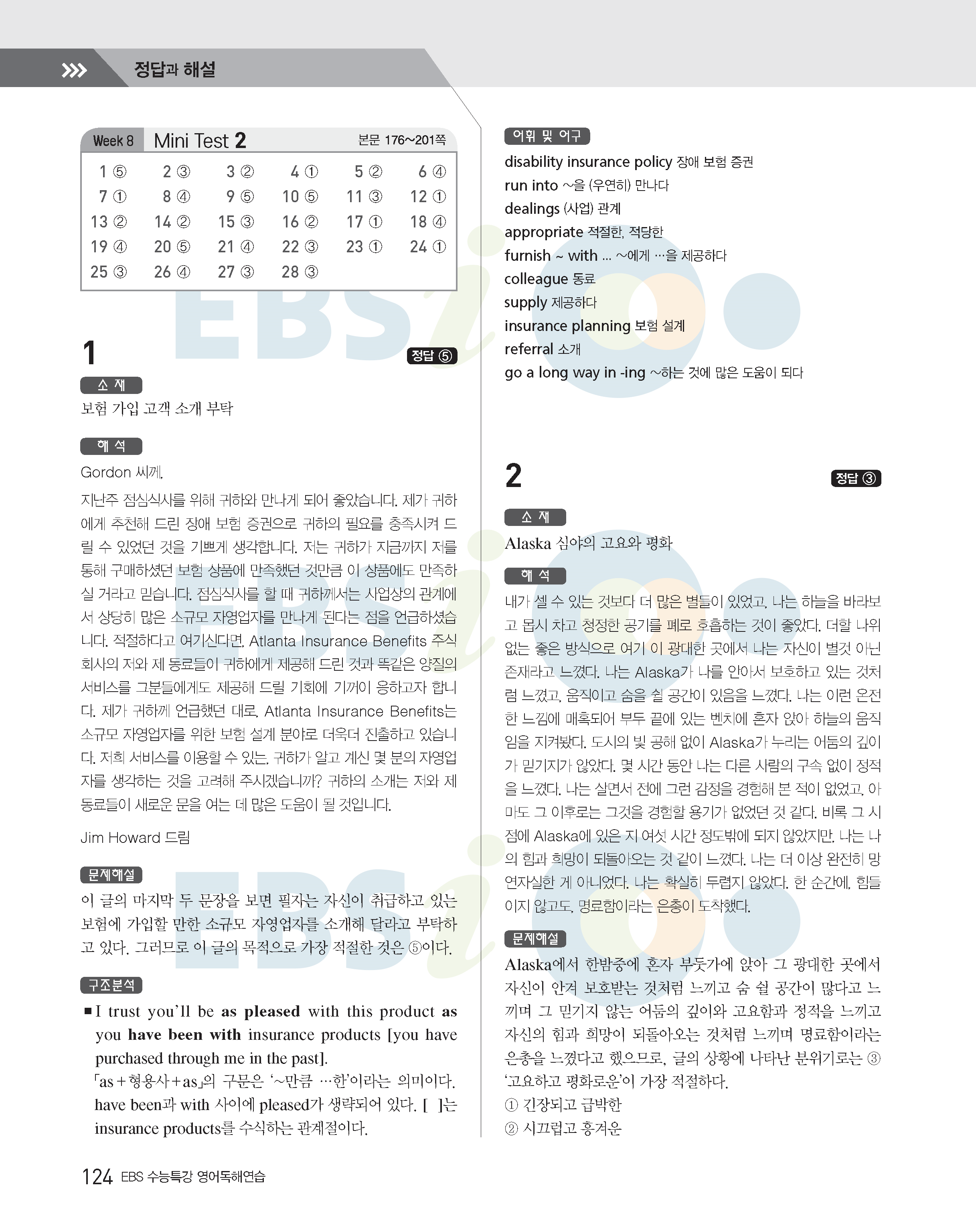 2022수능특강 영어독해연습 사진답지 빠른답지 모바일최적화