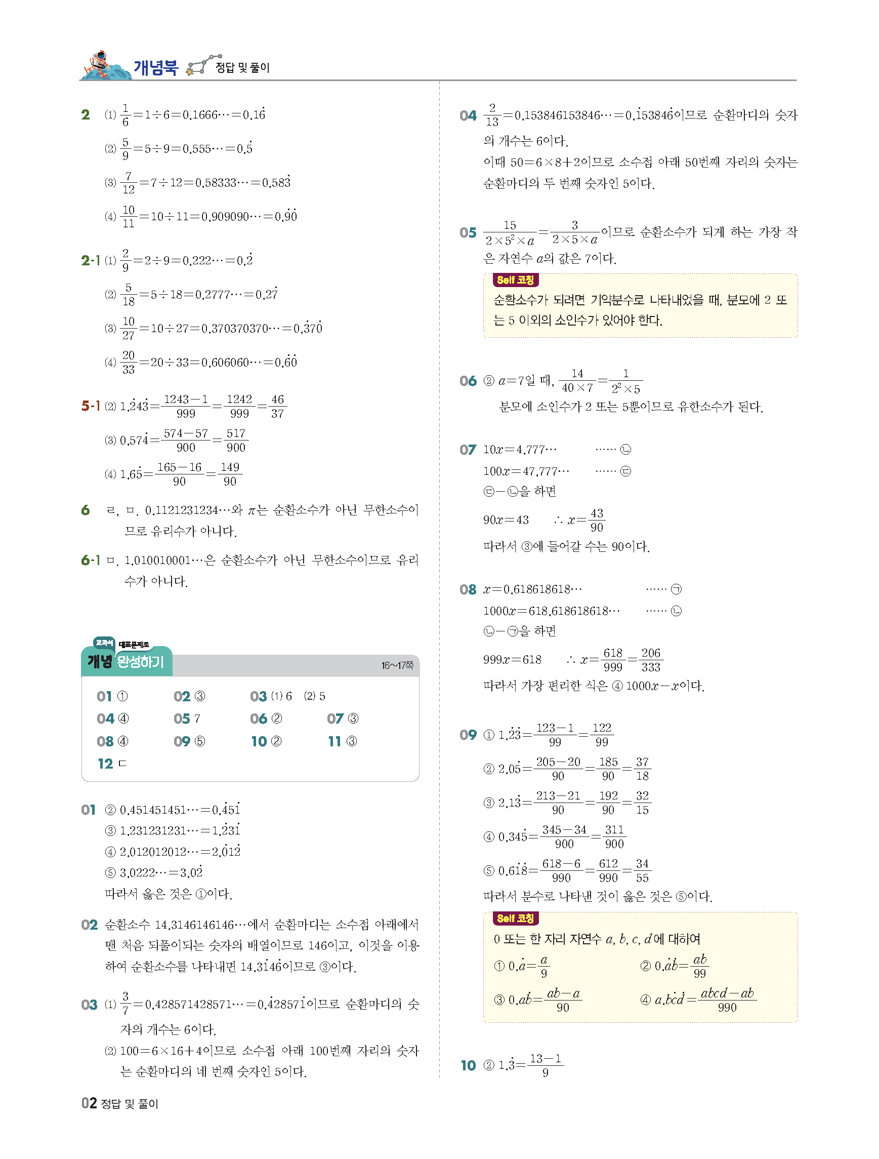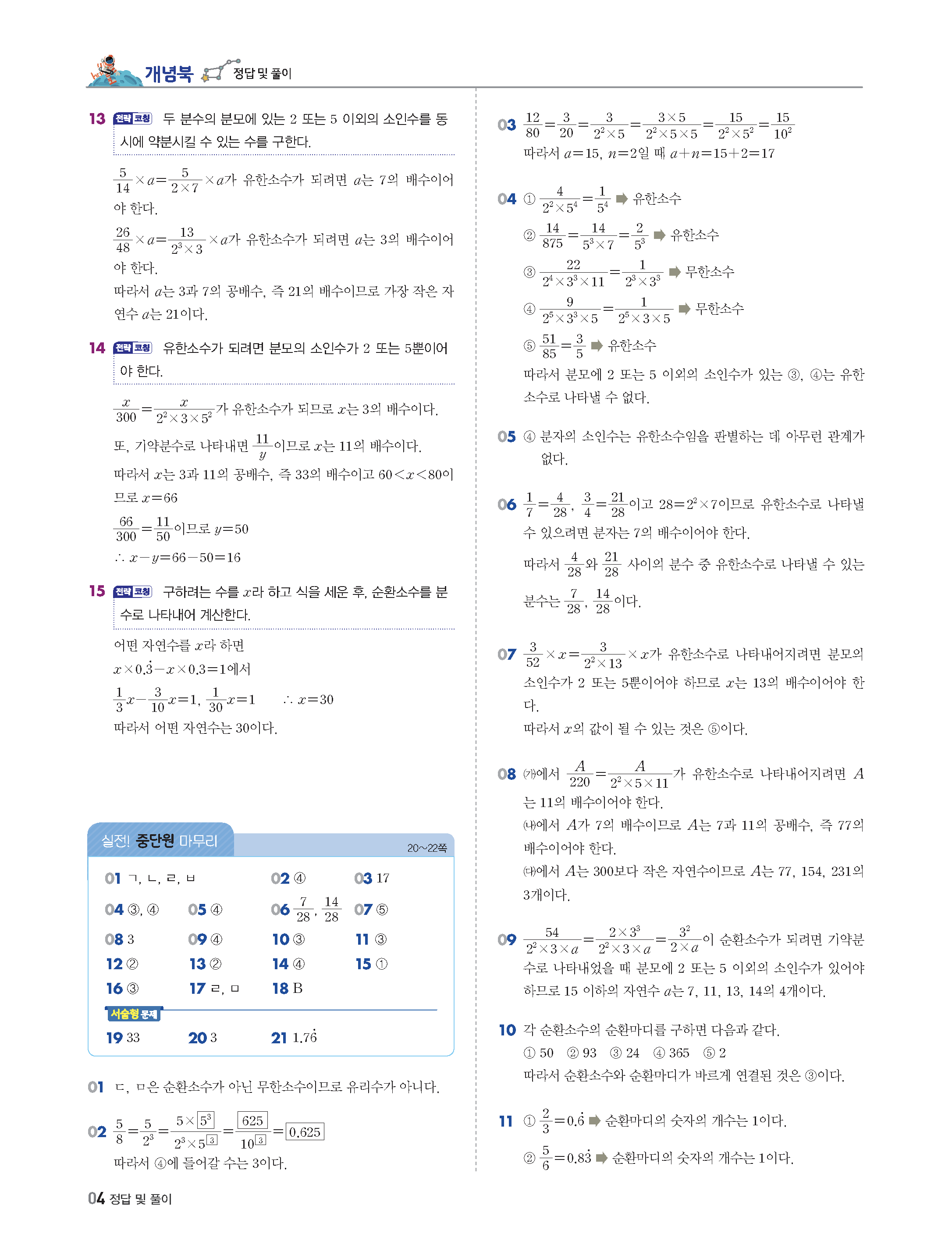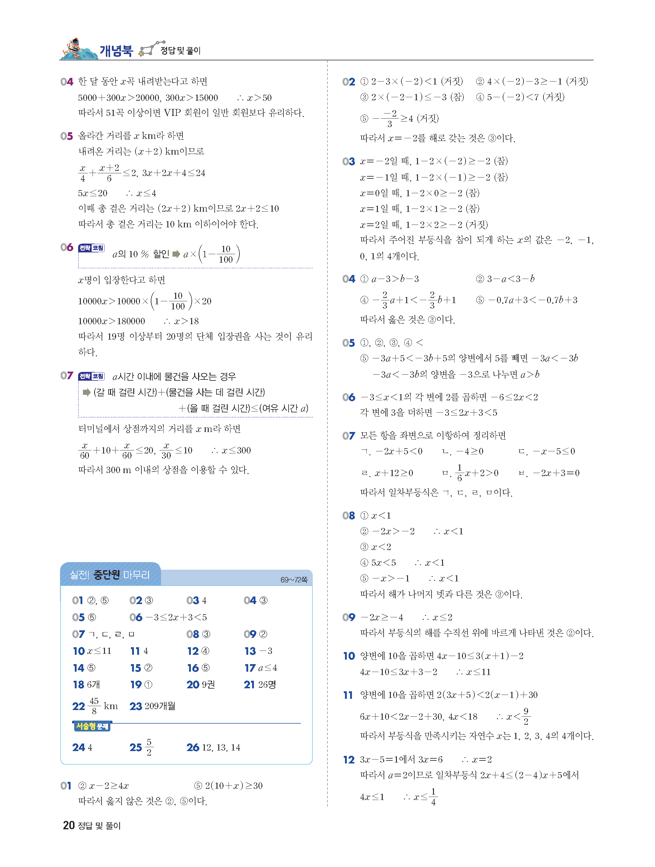 빨리이해하는수학 2-1 답지 빠른답지 사진답지 모바일최적화