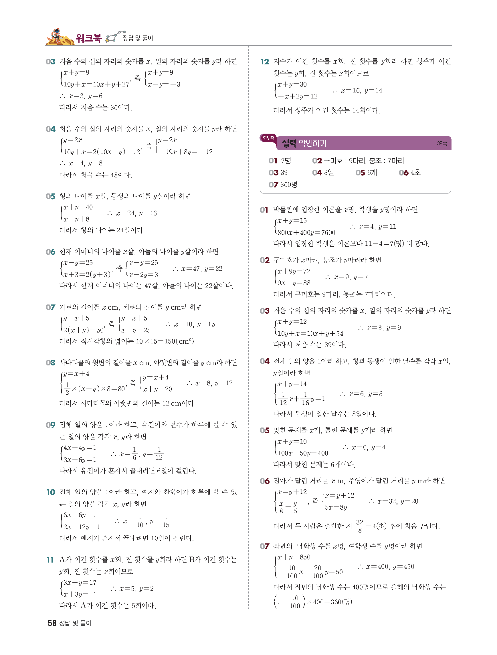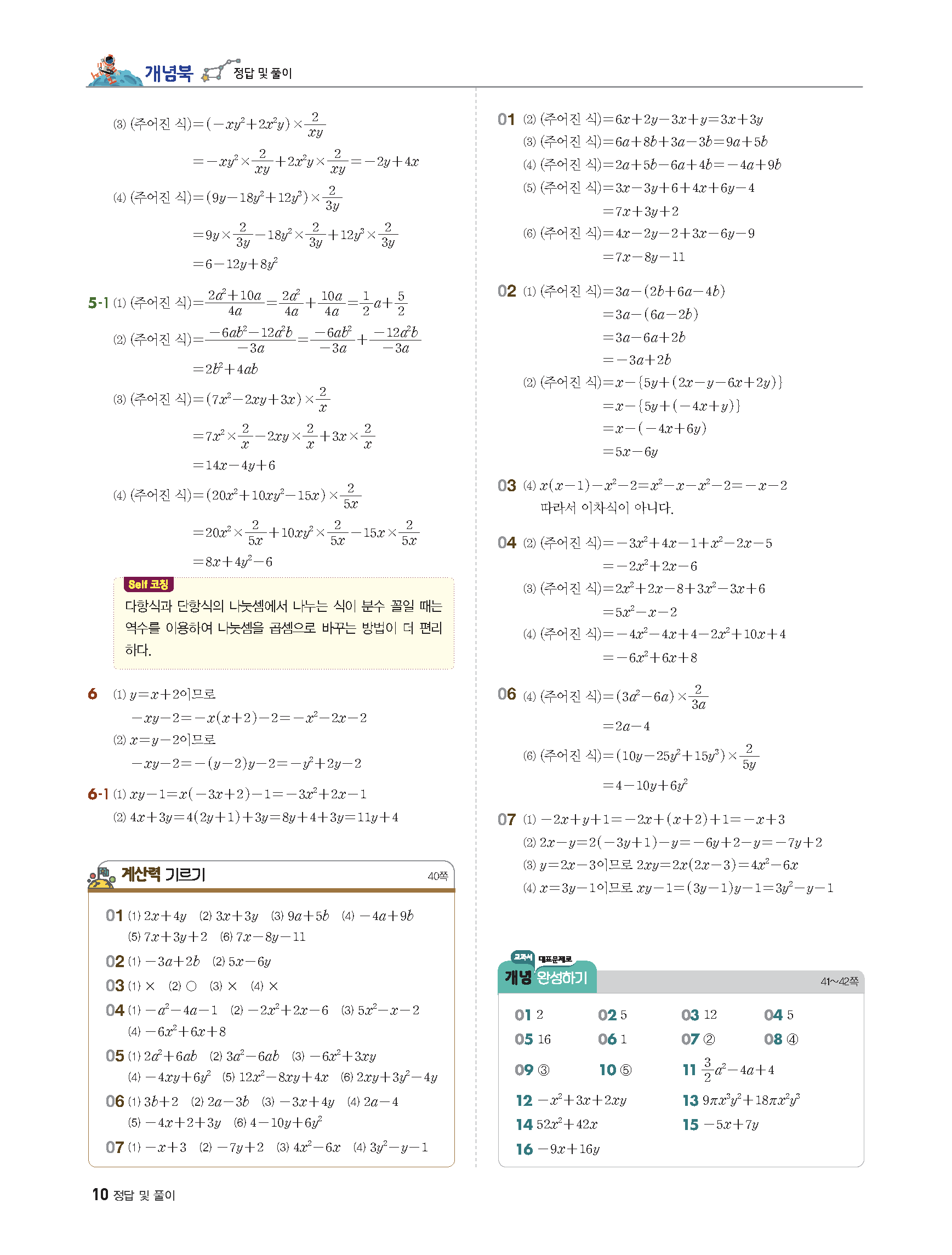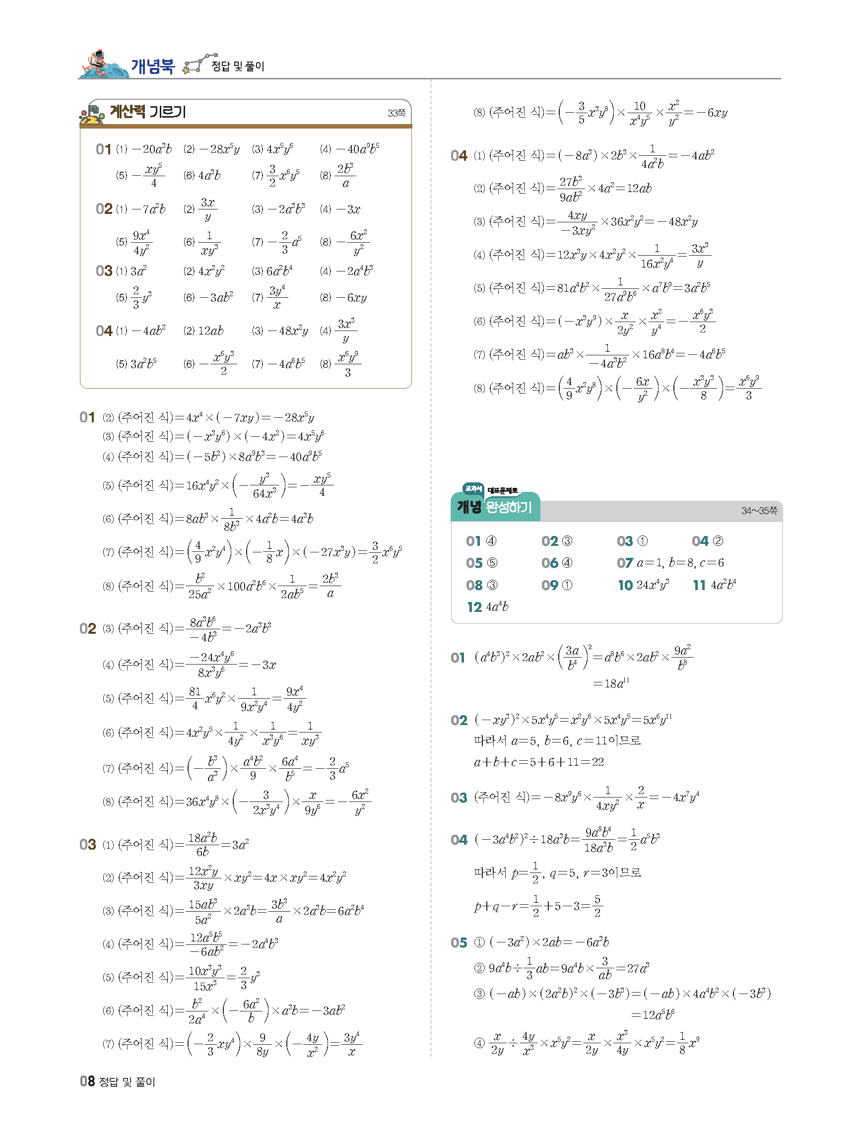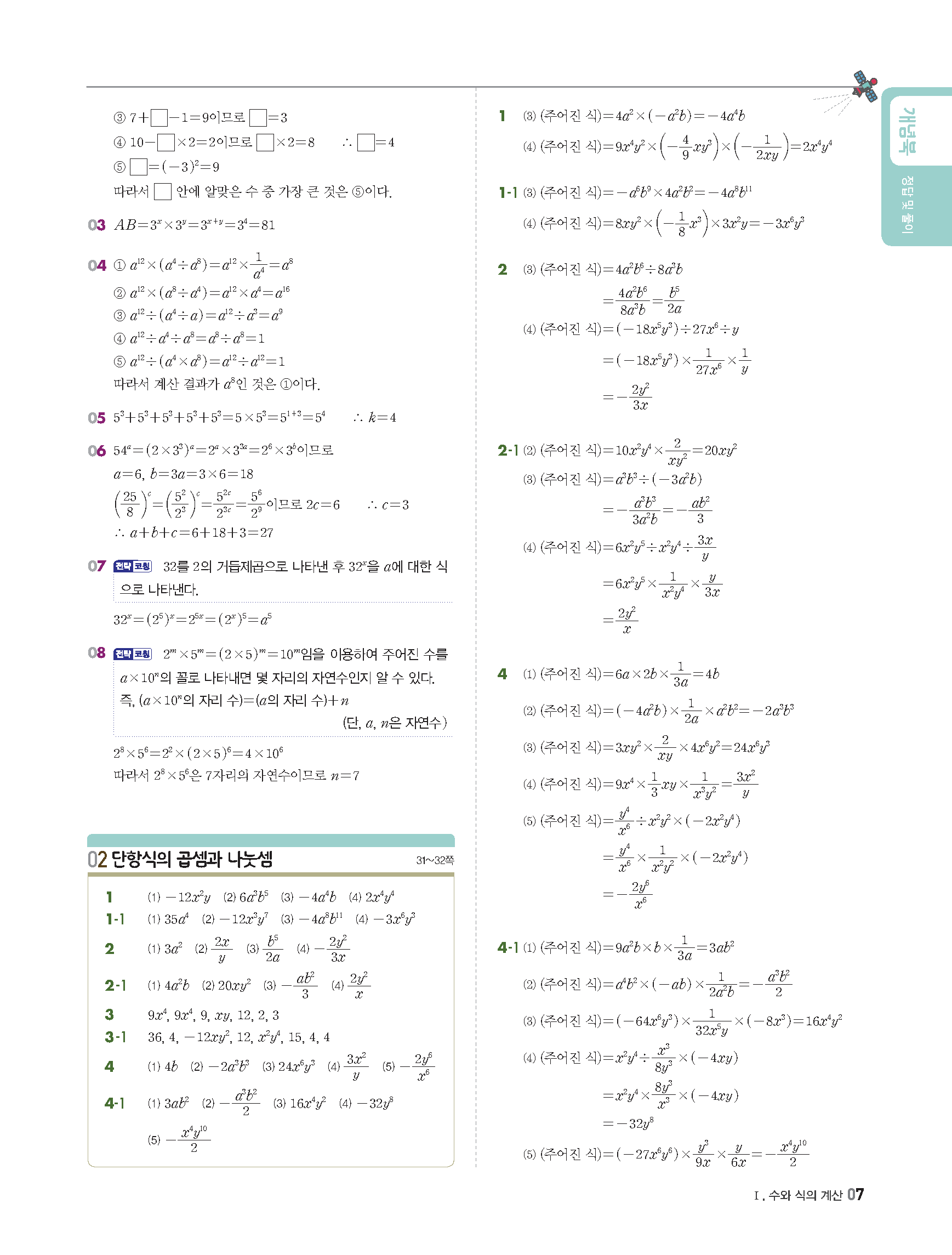 빨리이해하는수학 2-1 답지 빠른답지 사진답지 모바일최적화