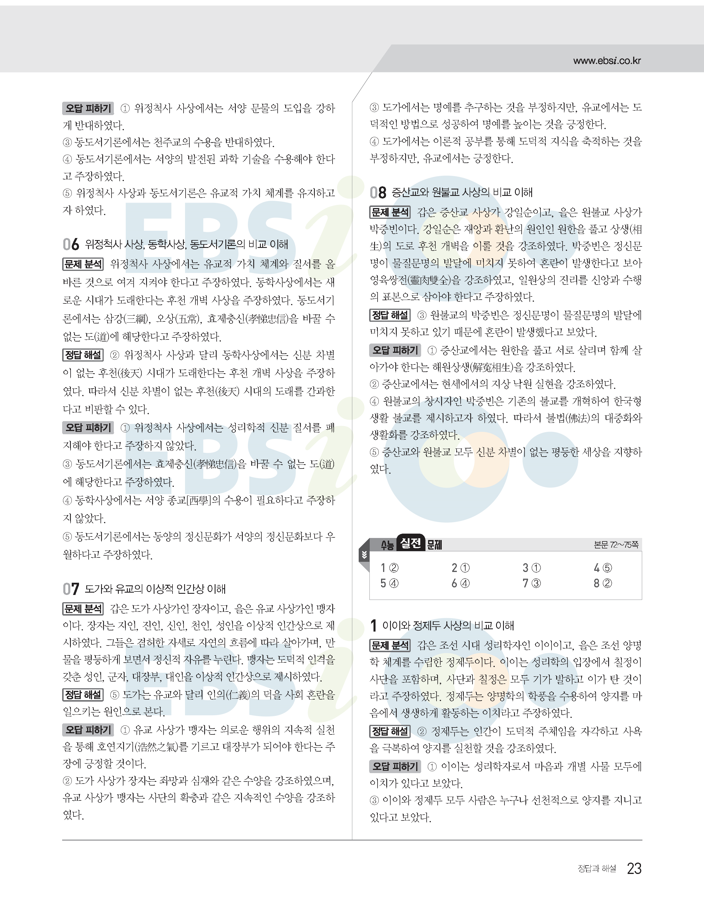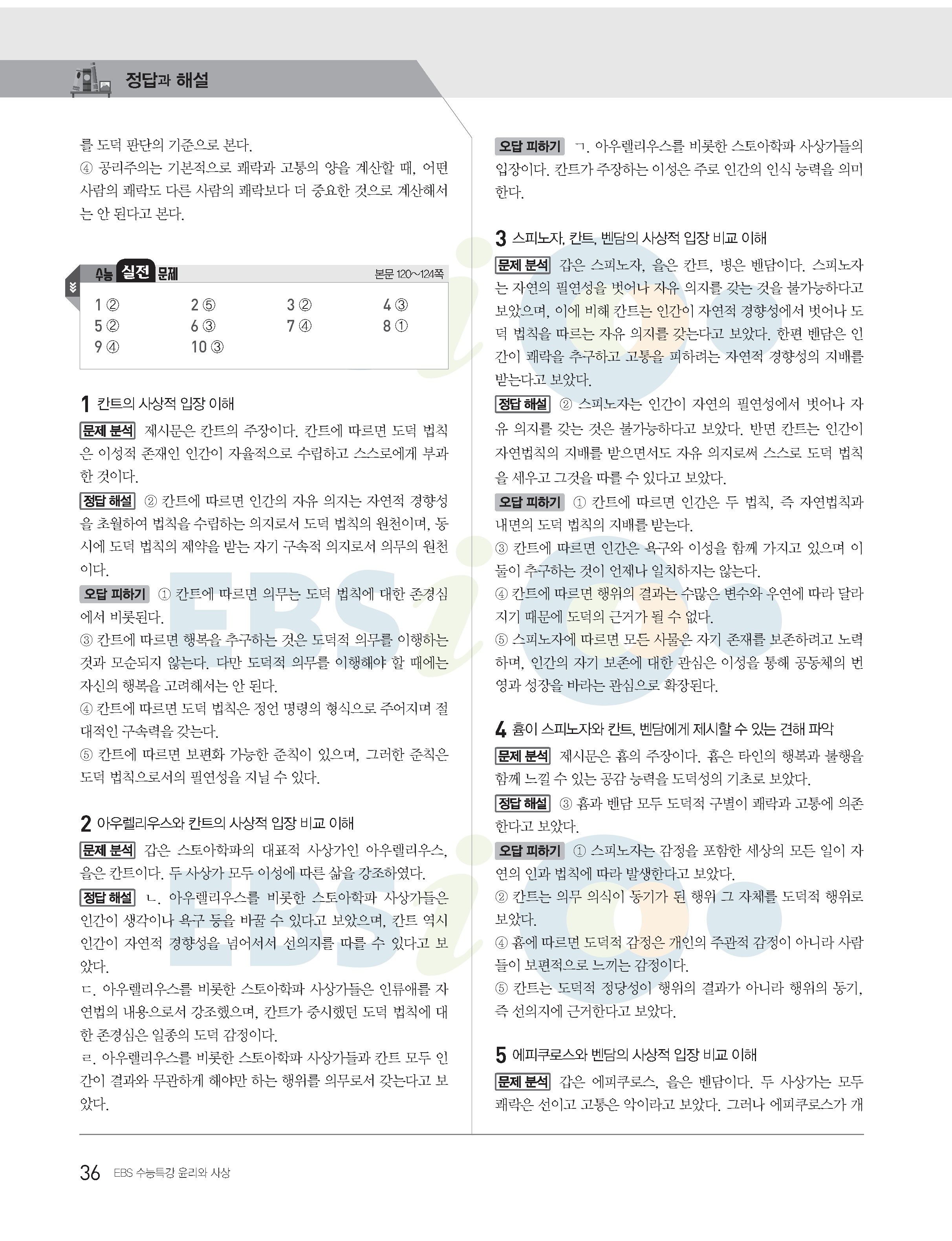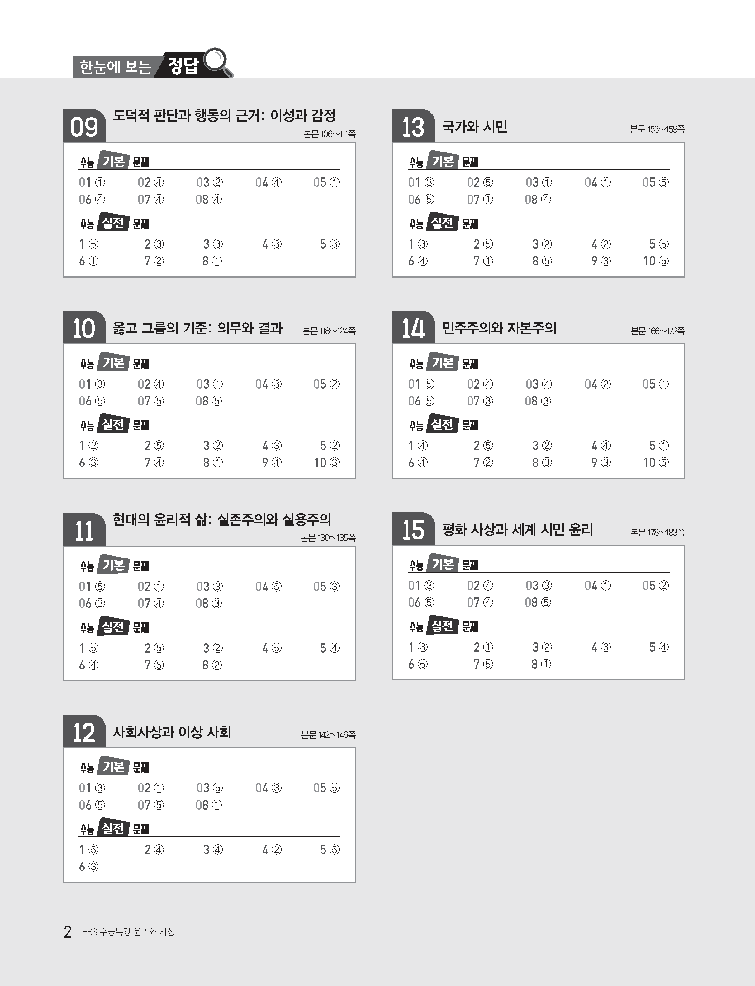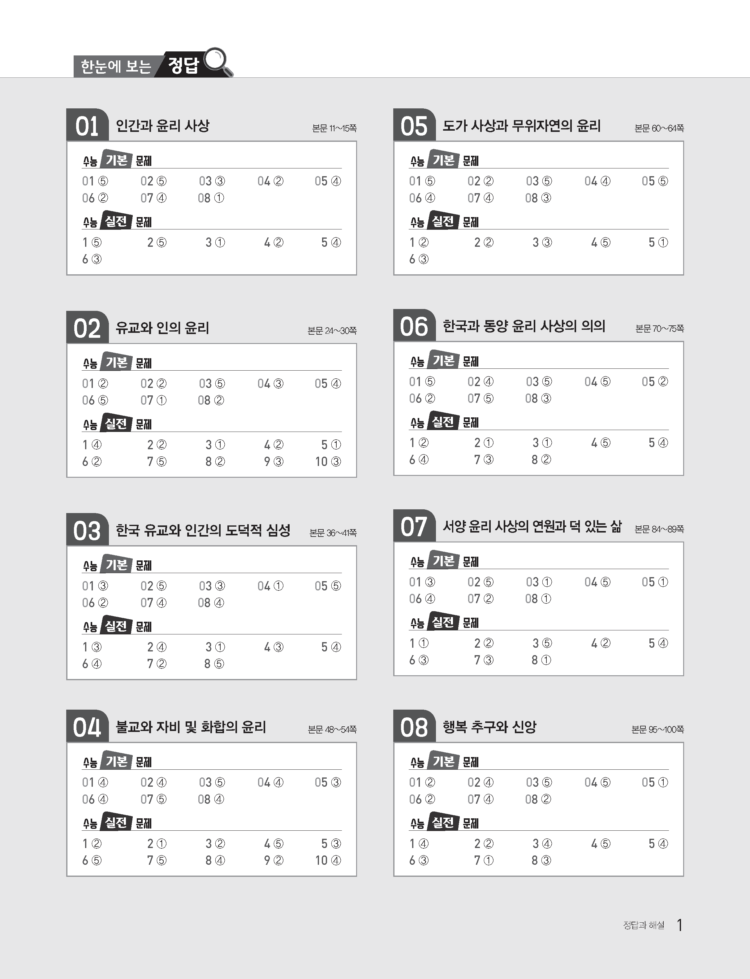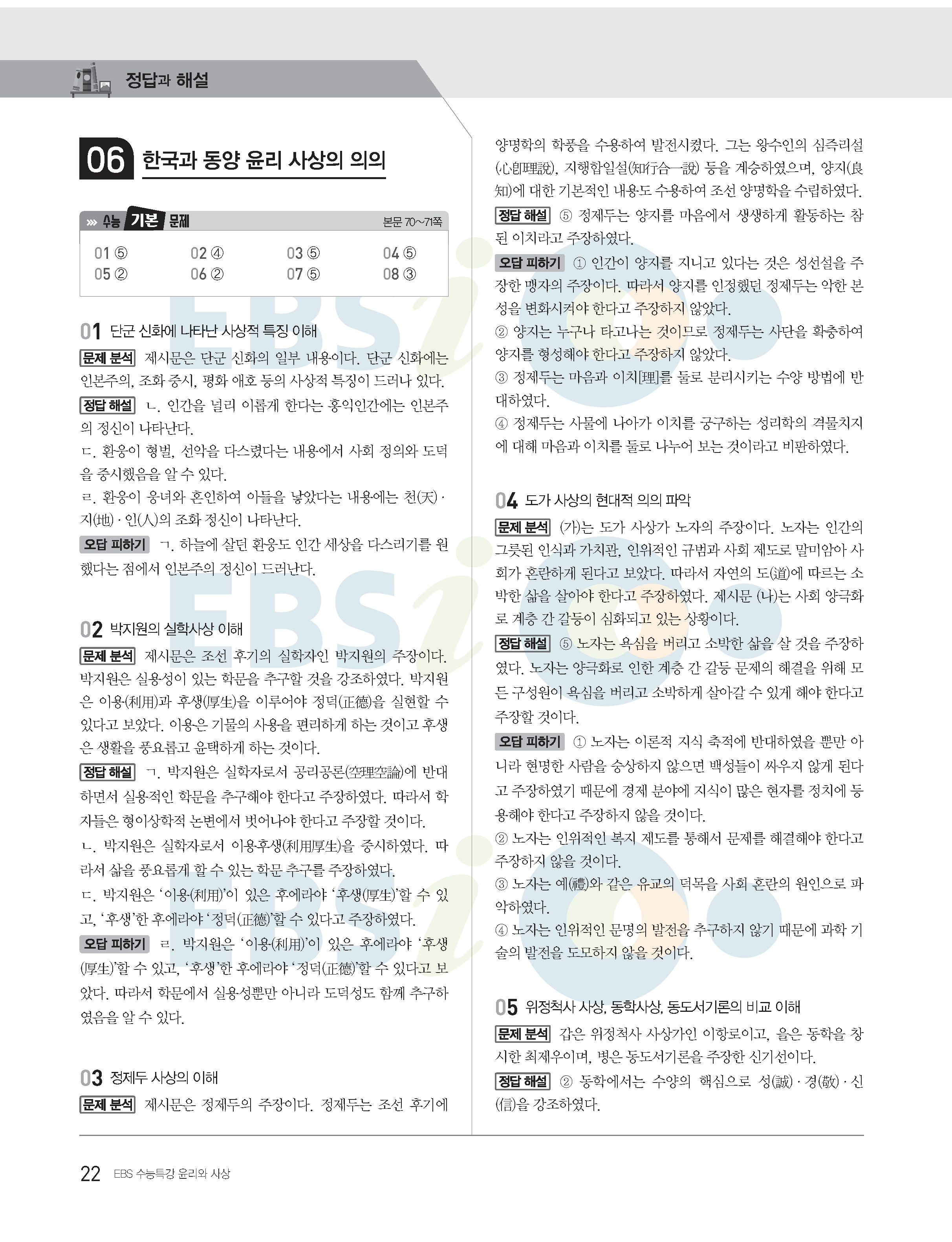 2022수능특강 윤리와사상 사진답지 빠른답지 모바일최적화