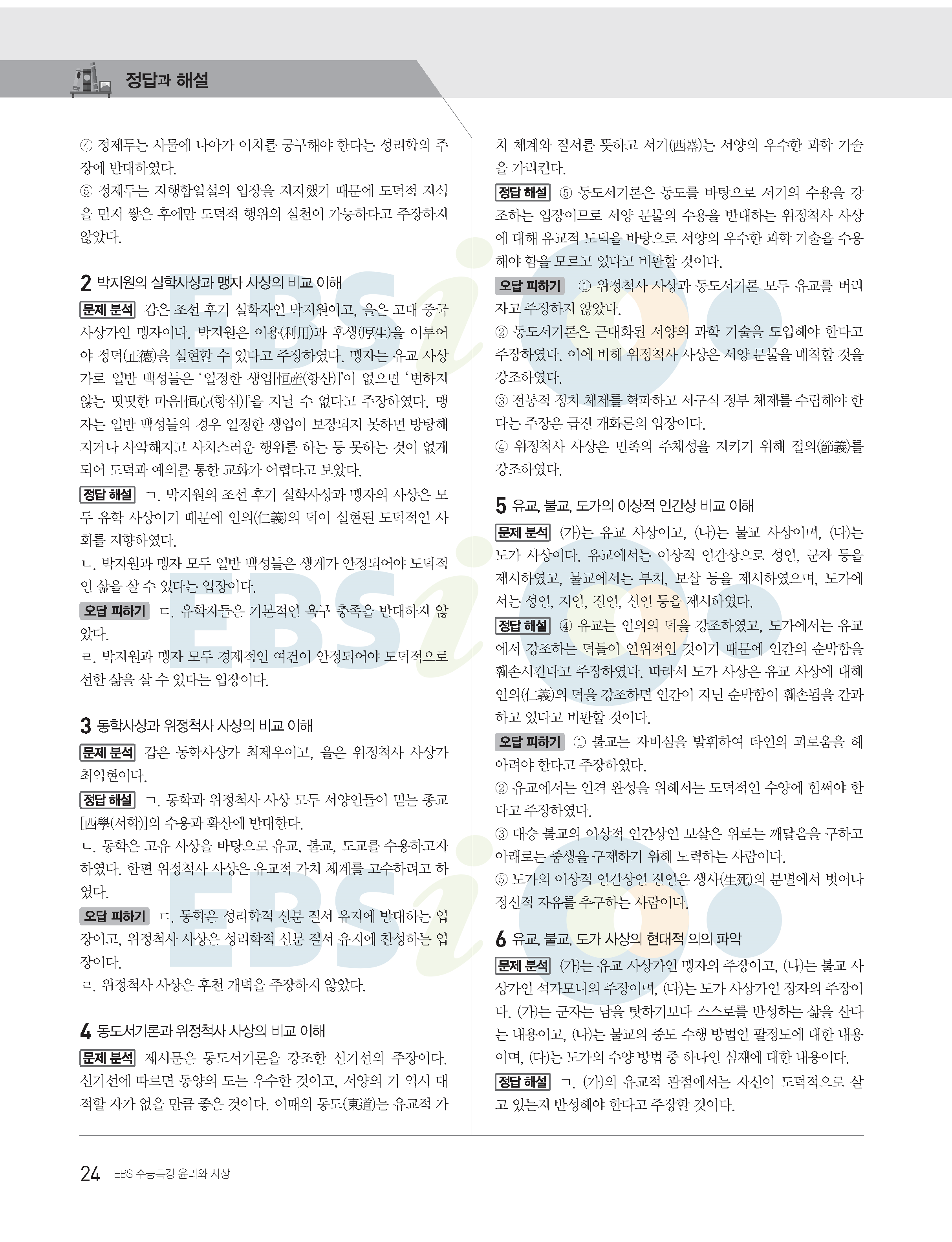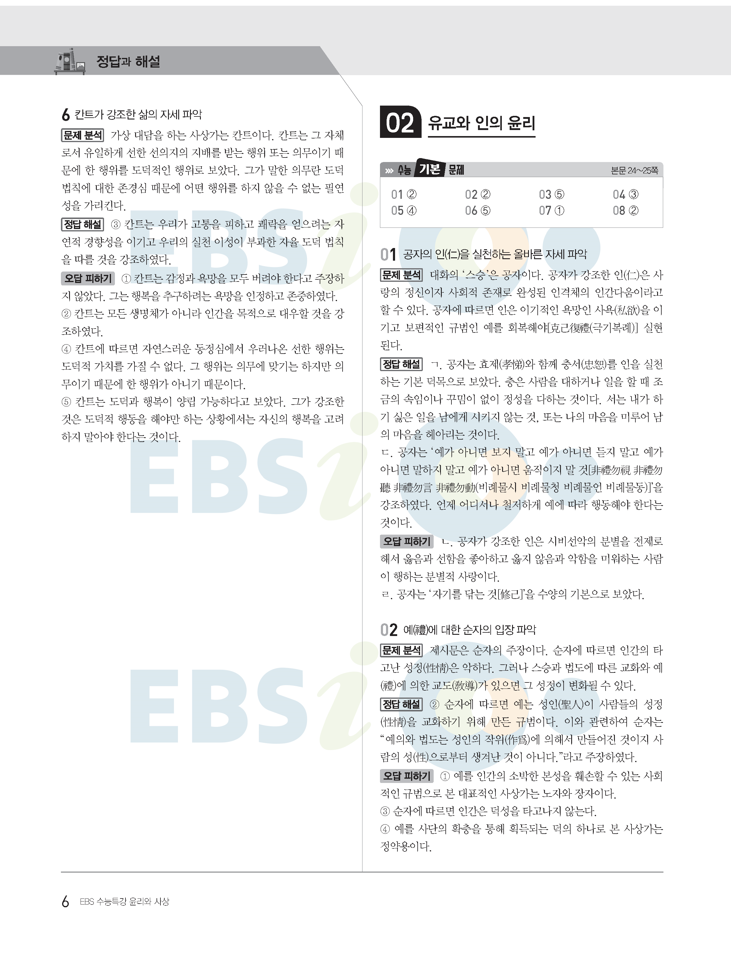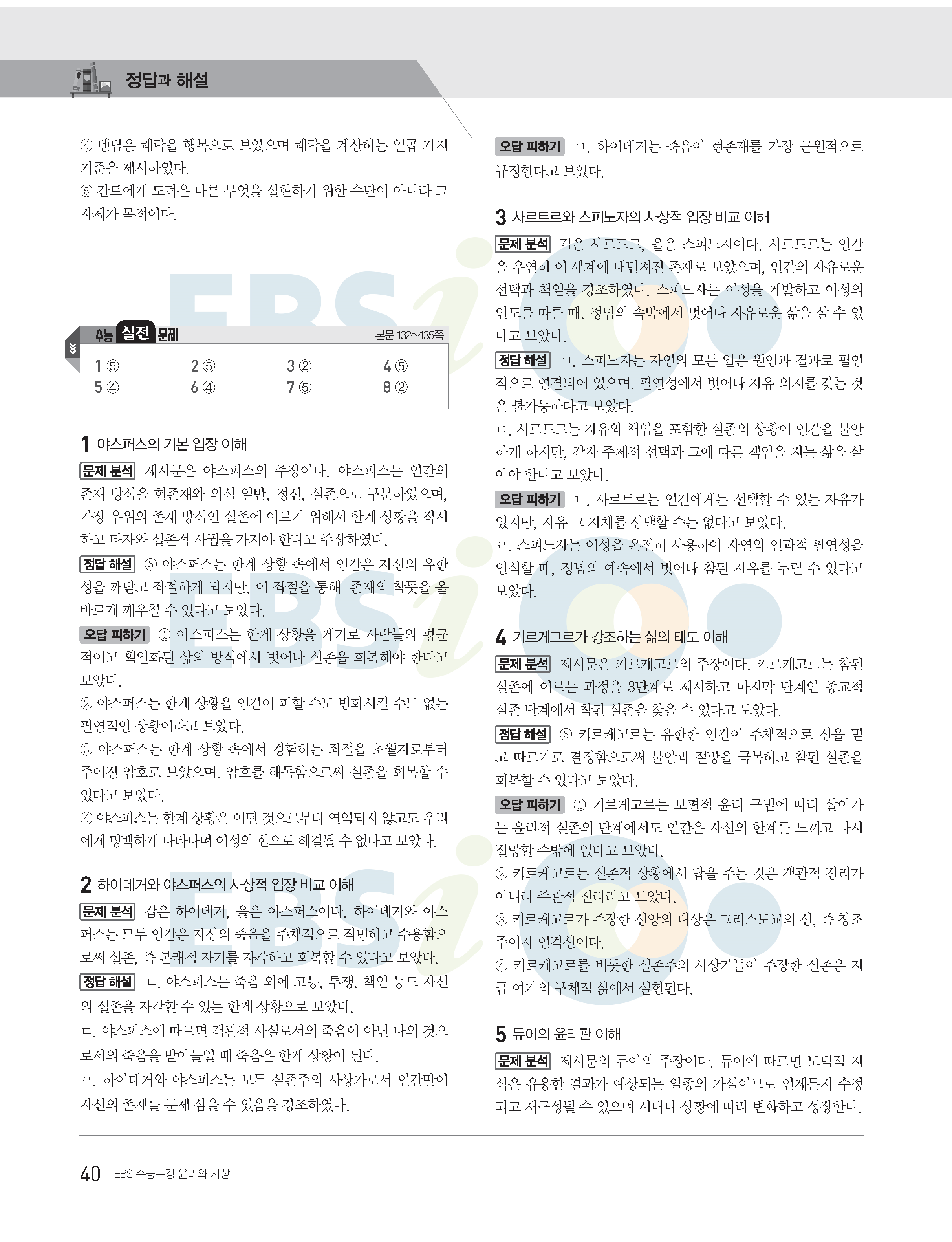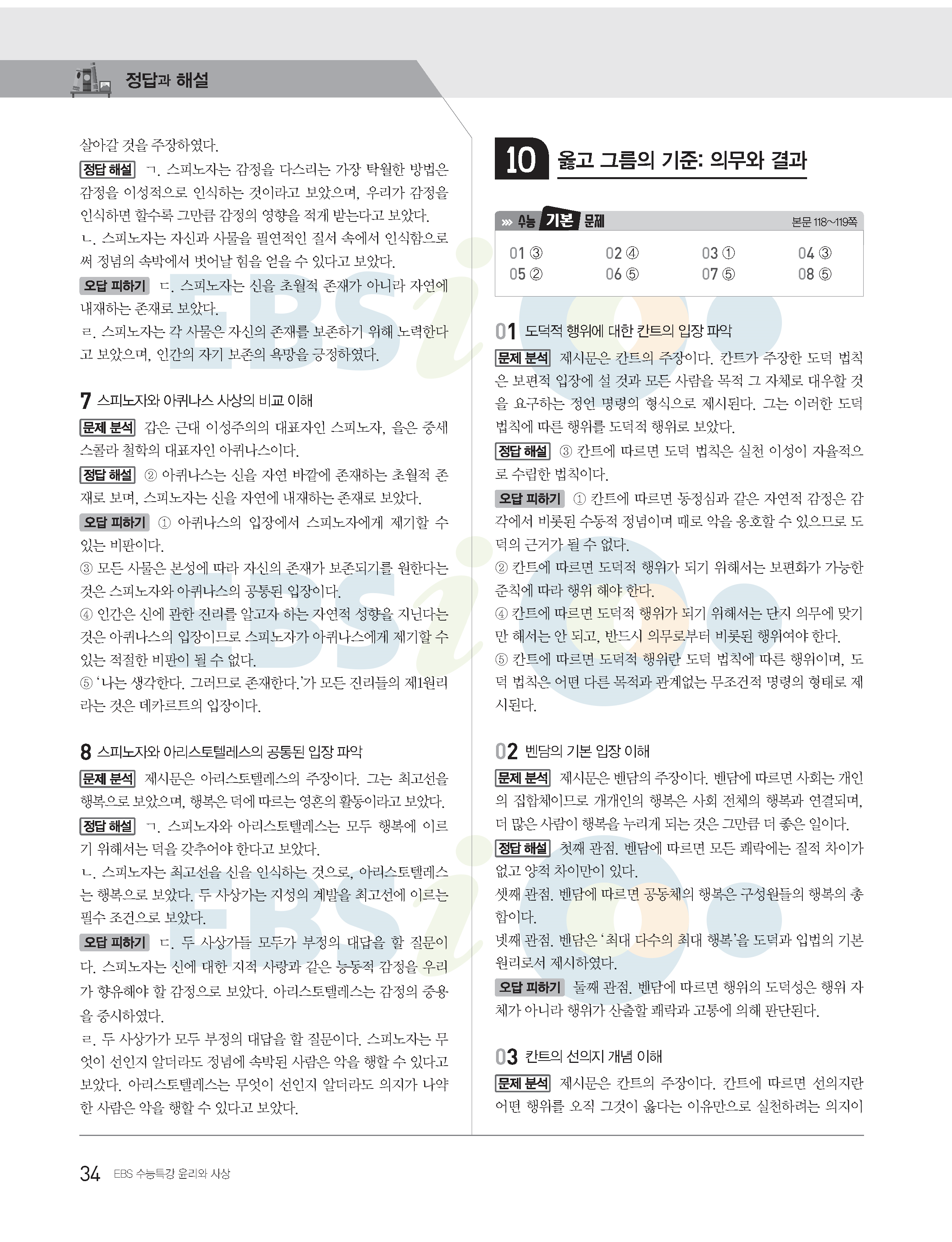 2022수능특강 윤리와사상 사진답지 빠른답지 모바일최적화