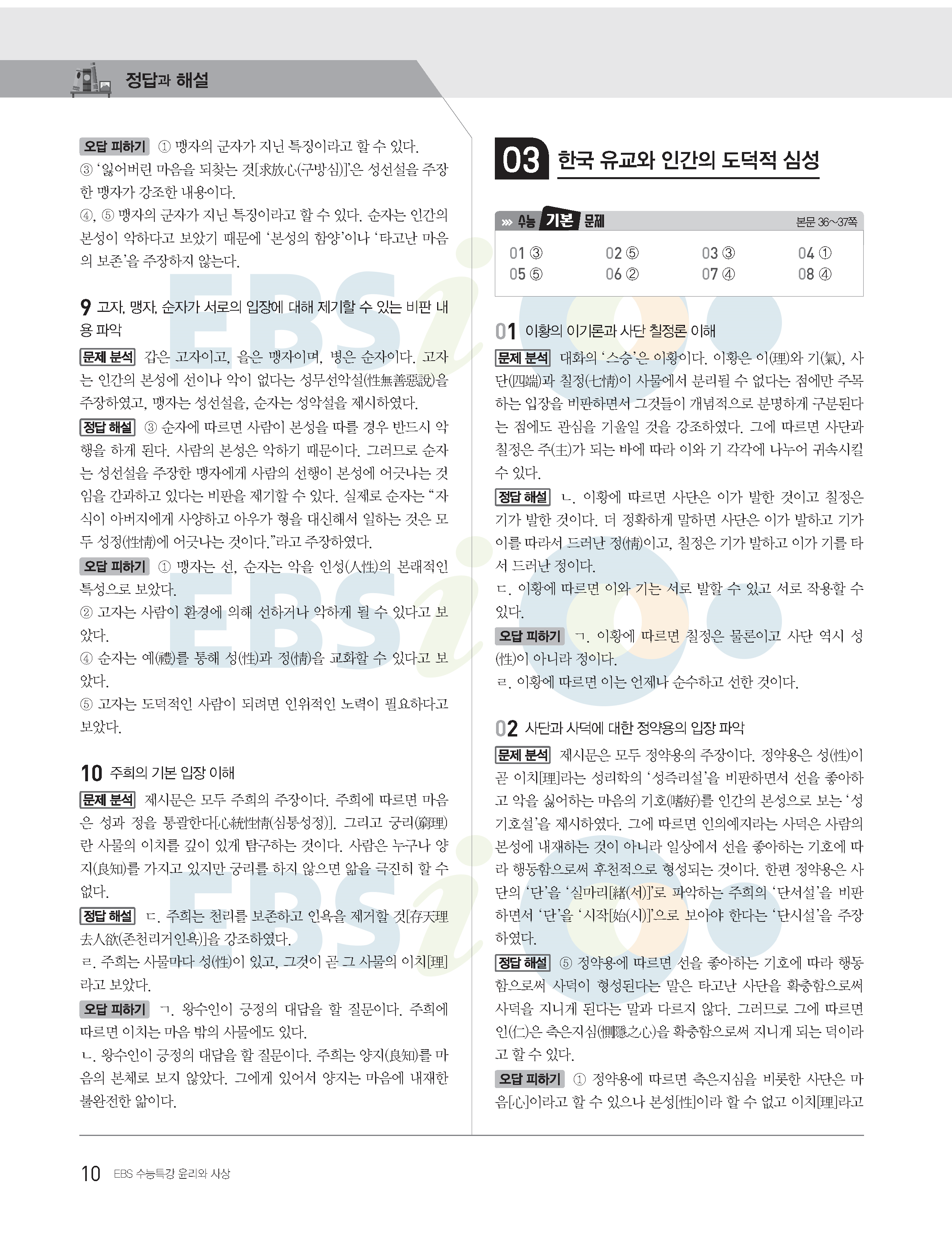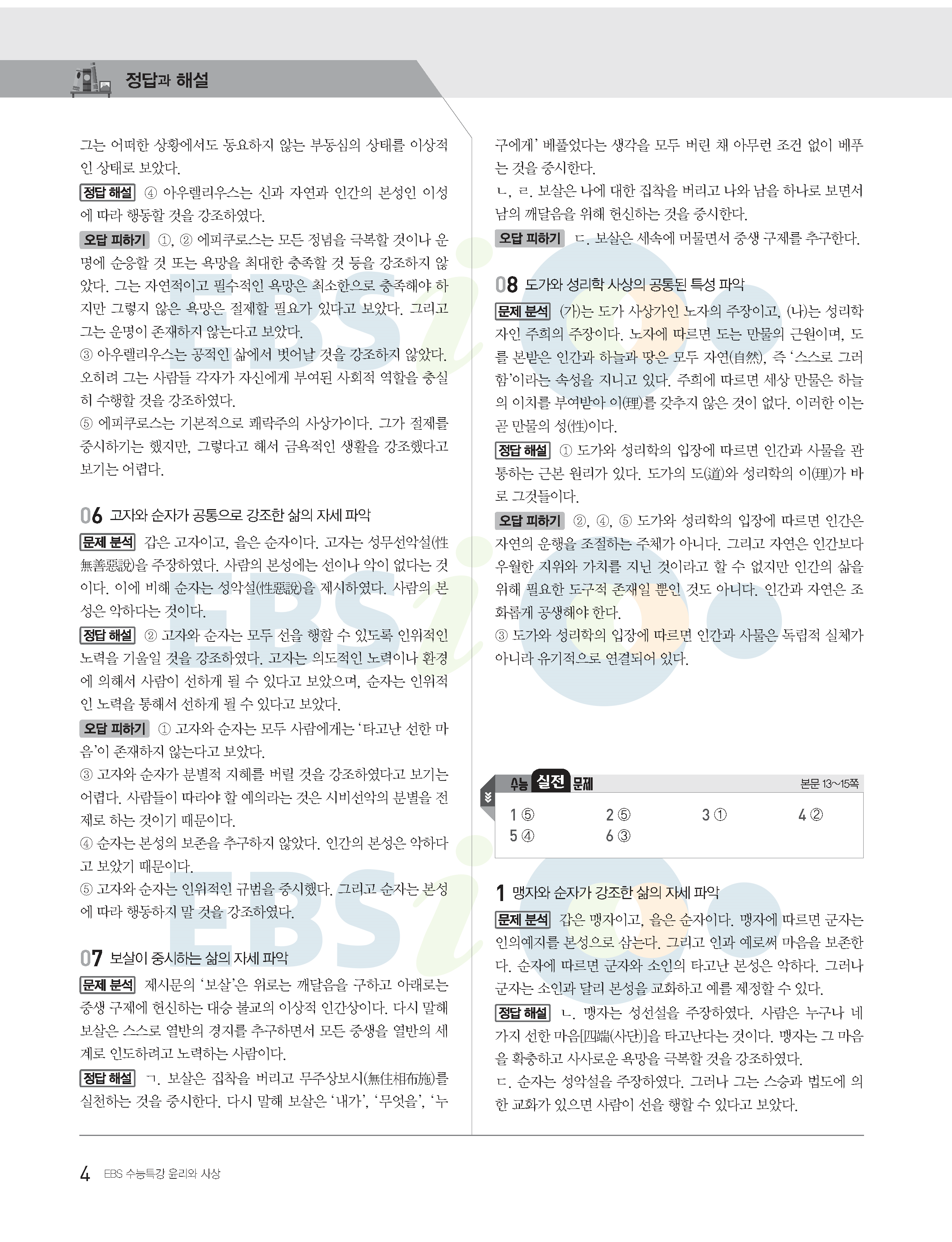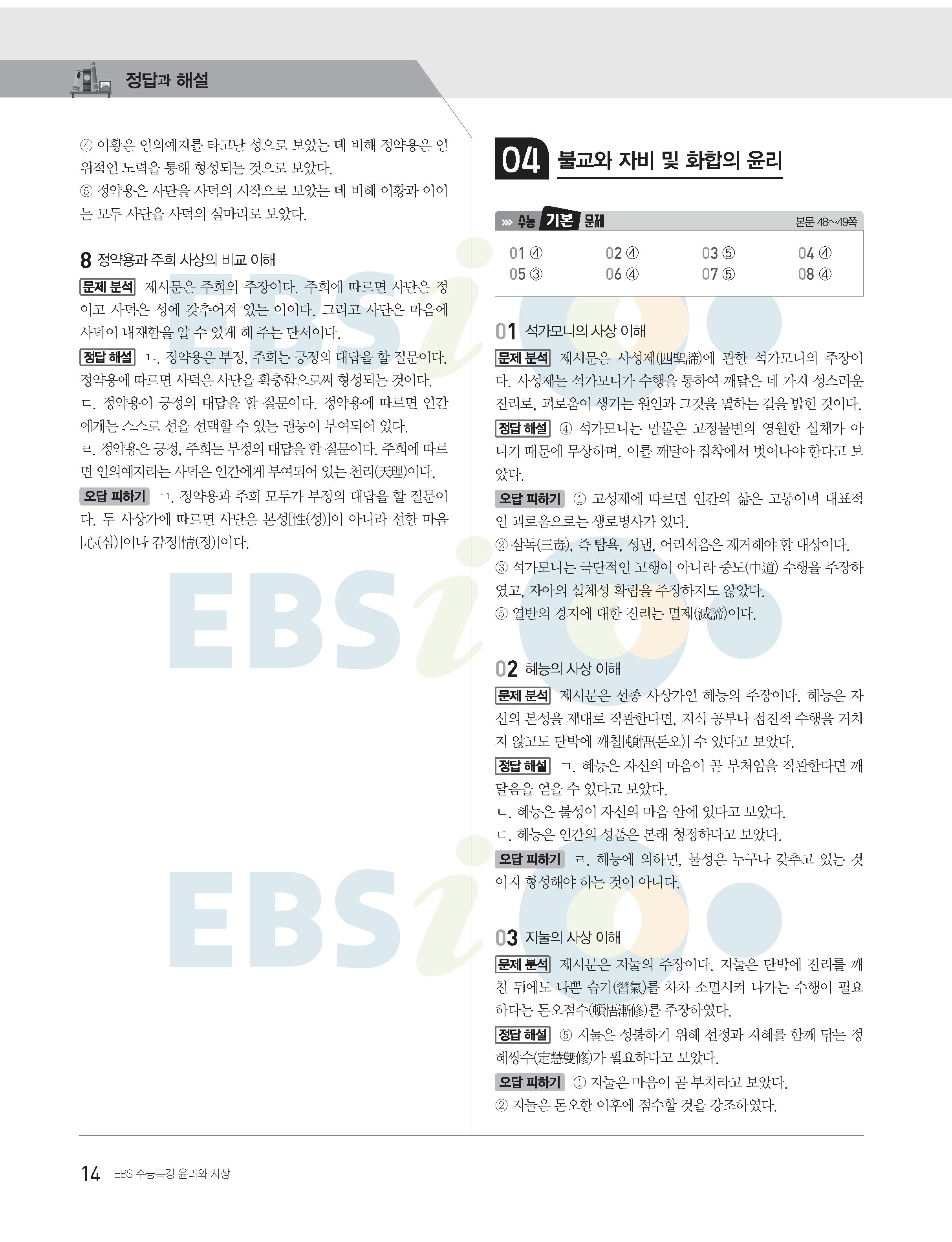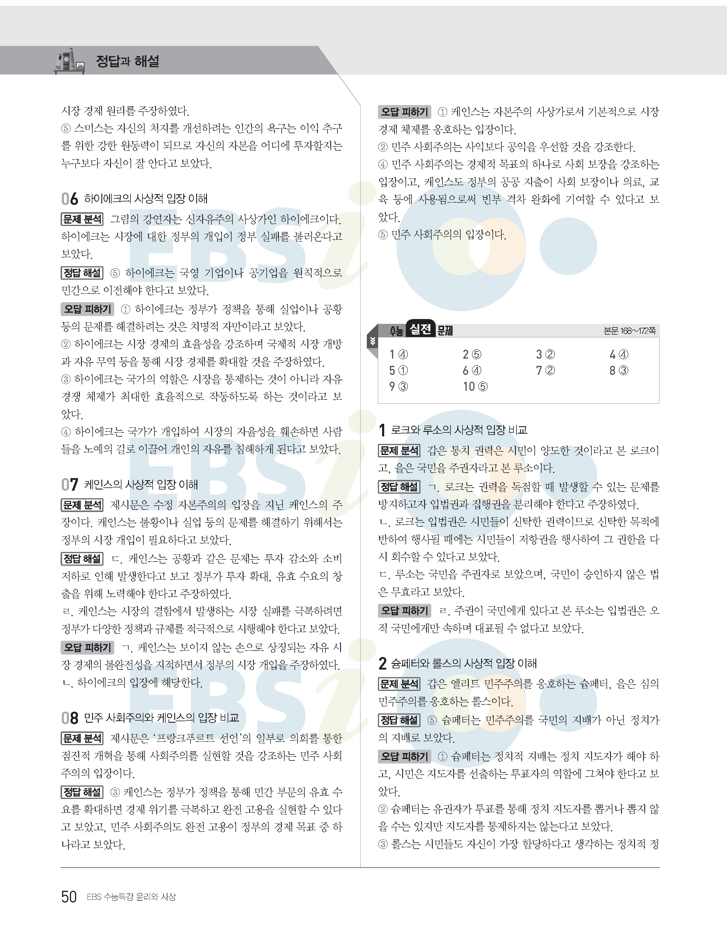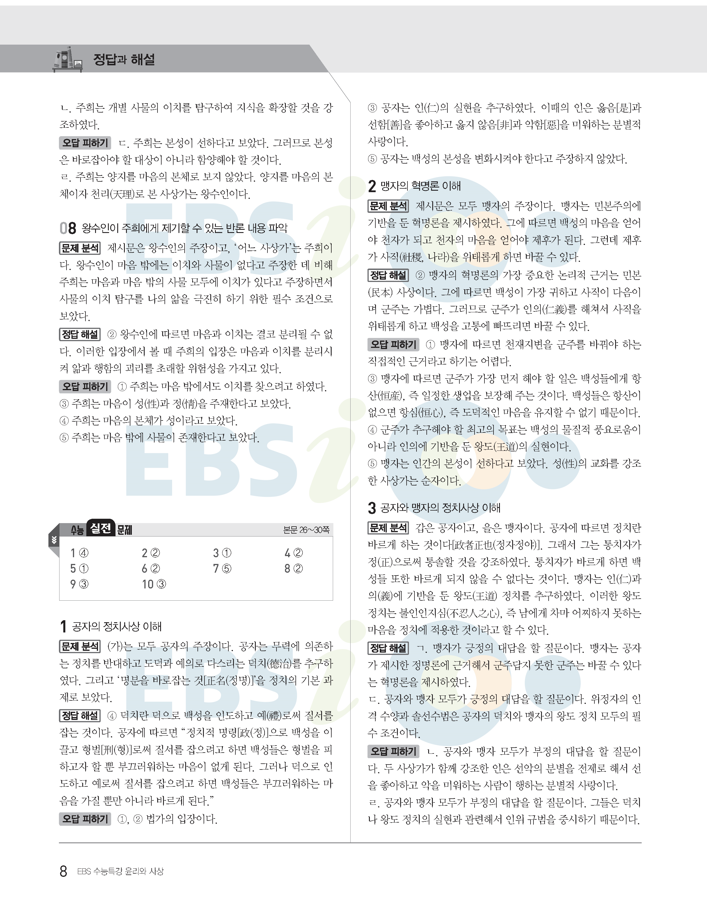 2022수능특강 윤리와사상 사진답지 빠른답지 모바일최적화