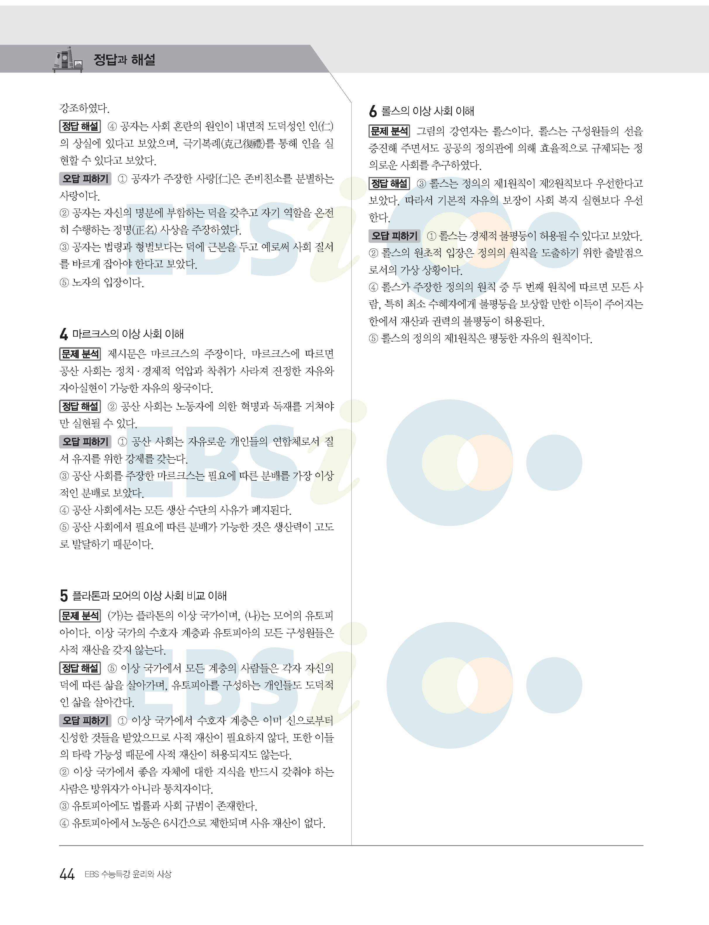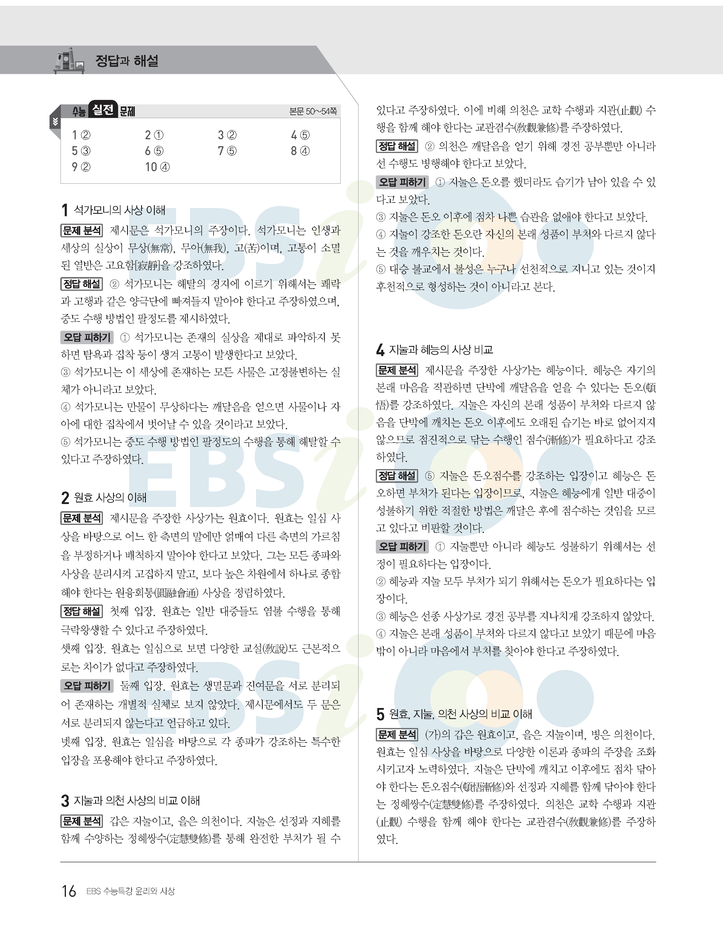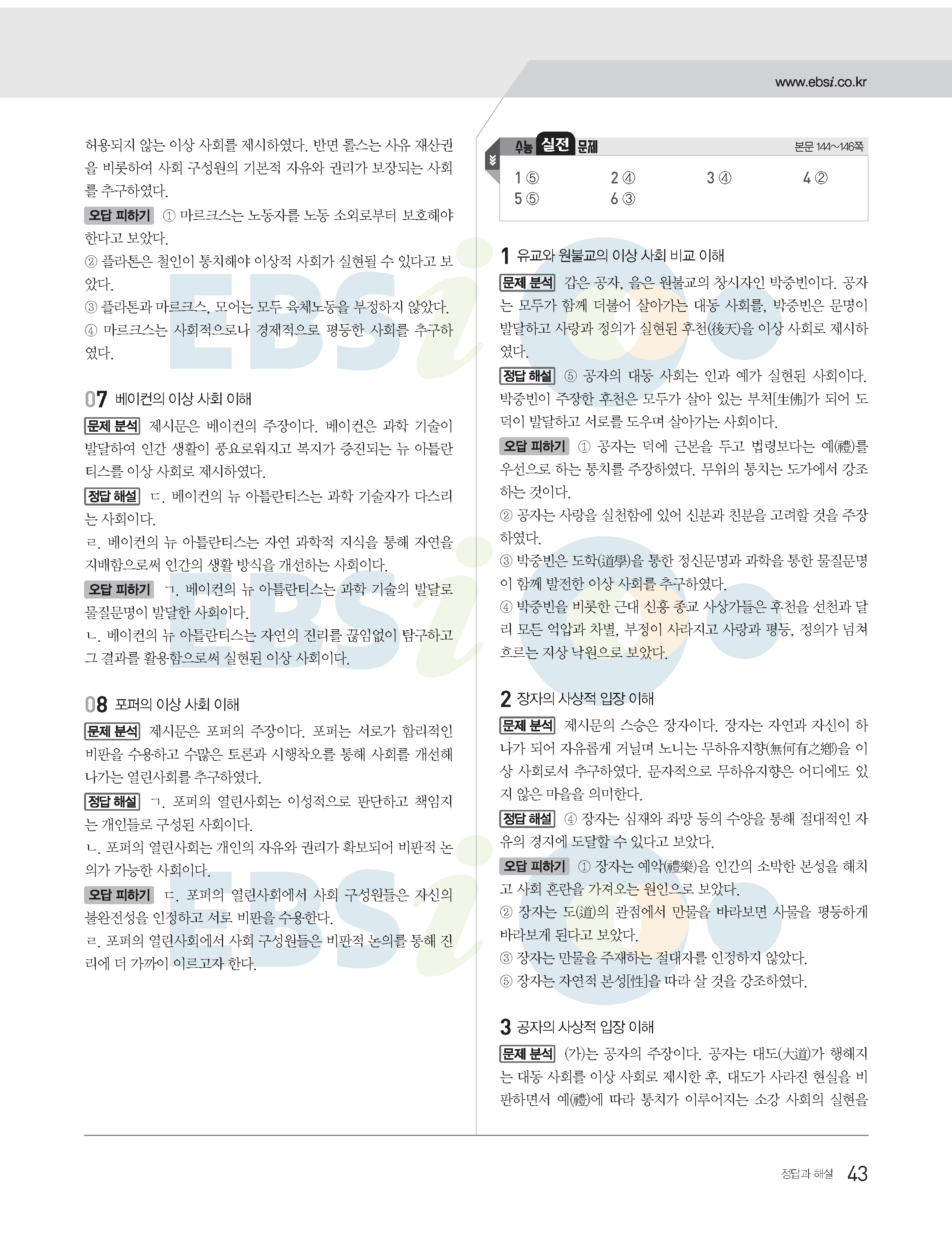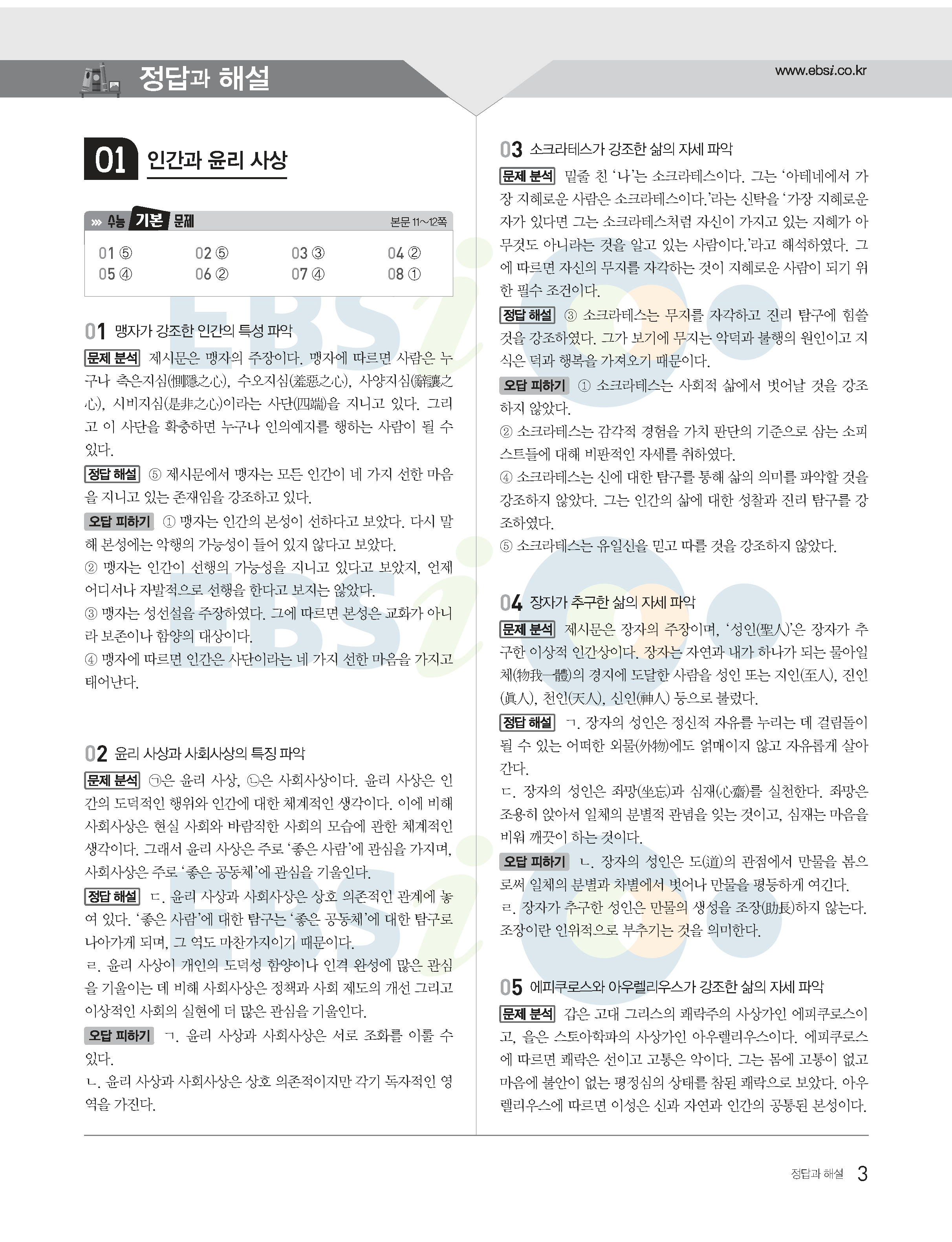 2022수능특강 윤리와사상 사진답지 빠른답지 모바일최적화