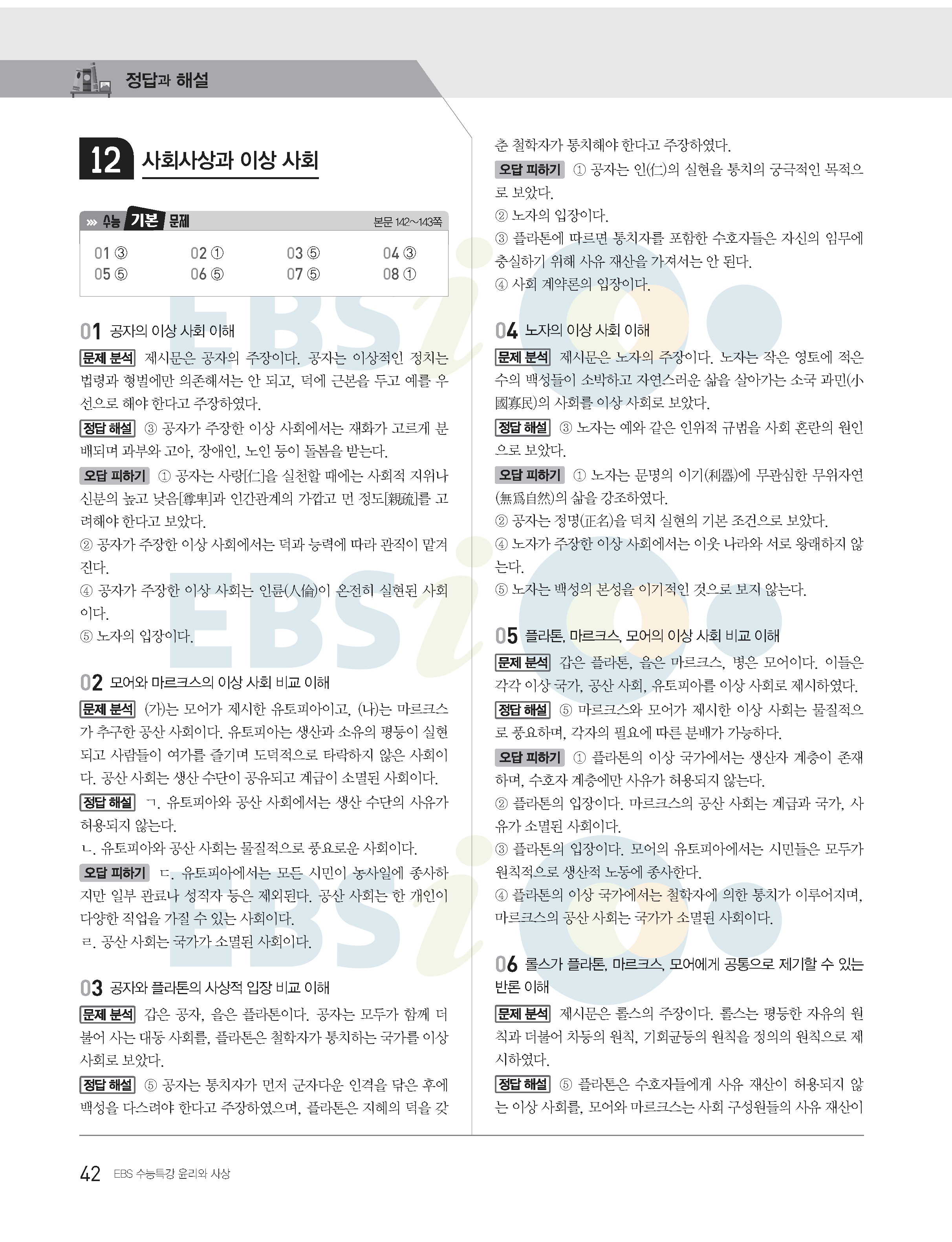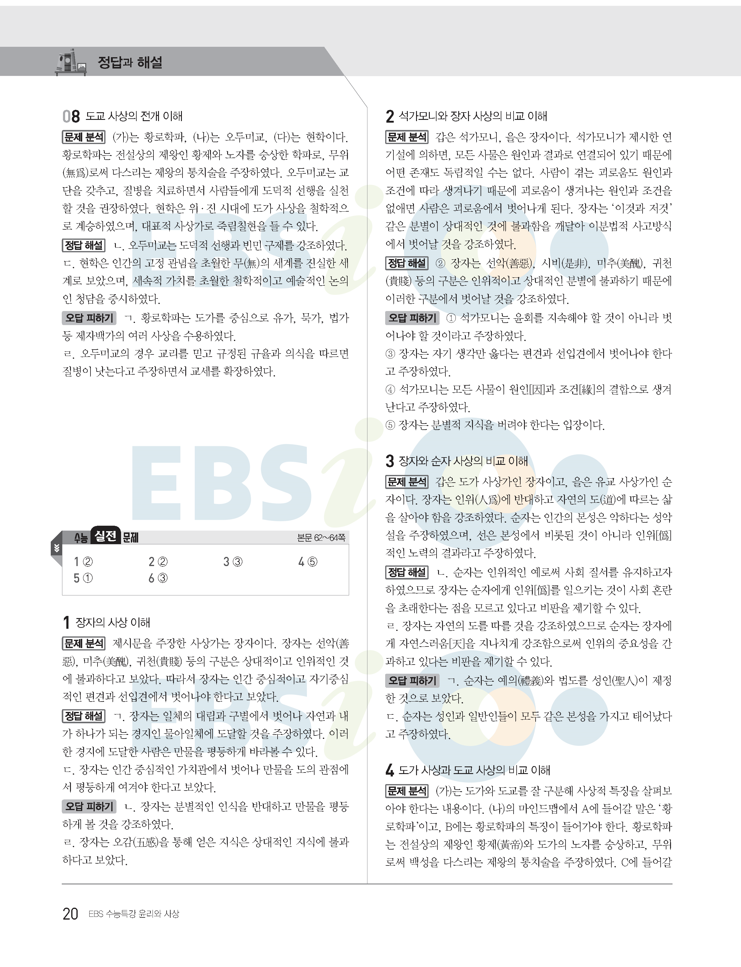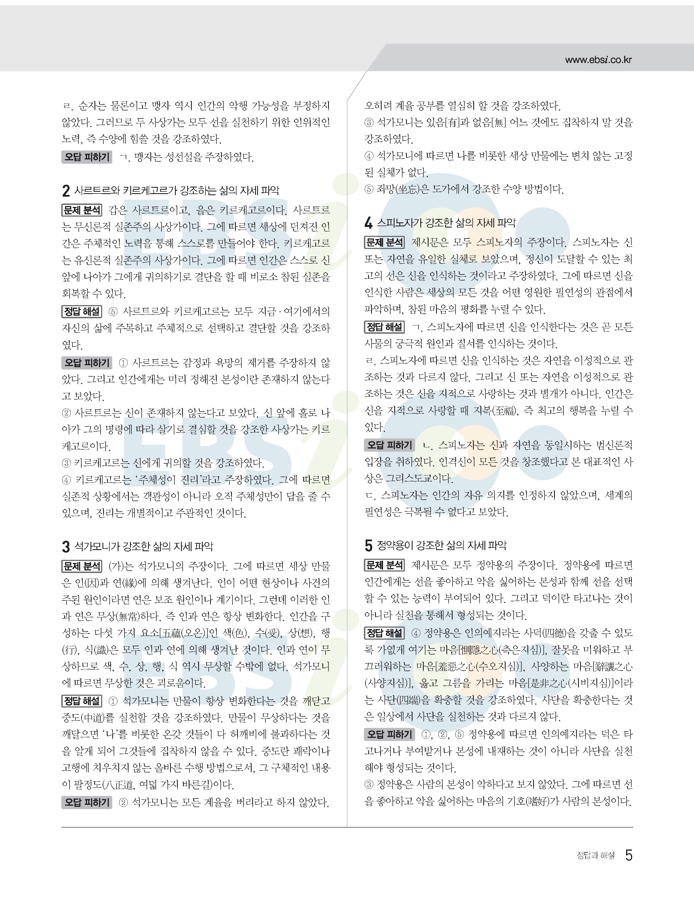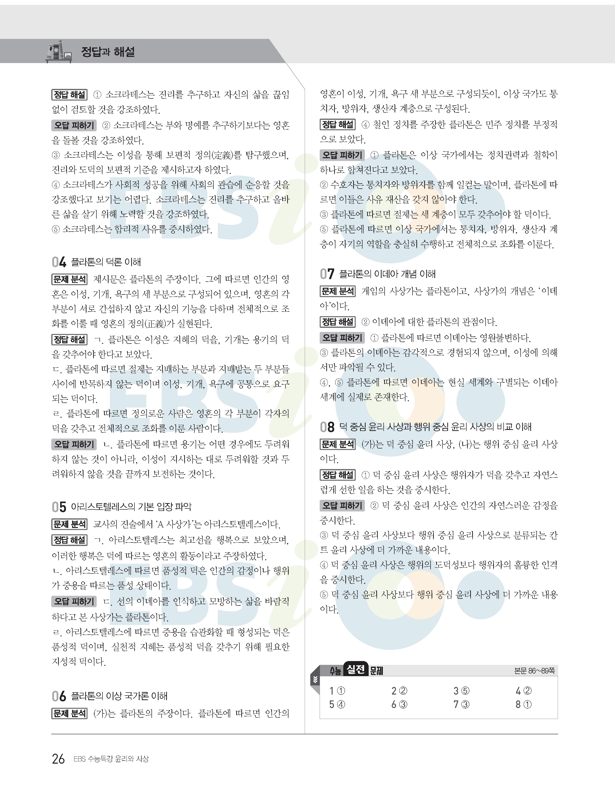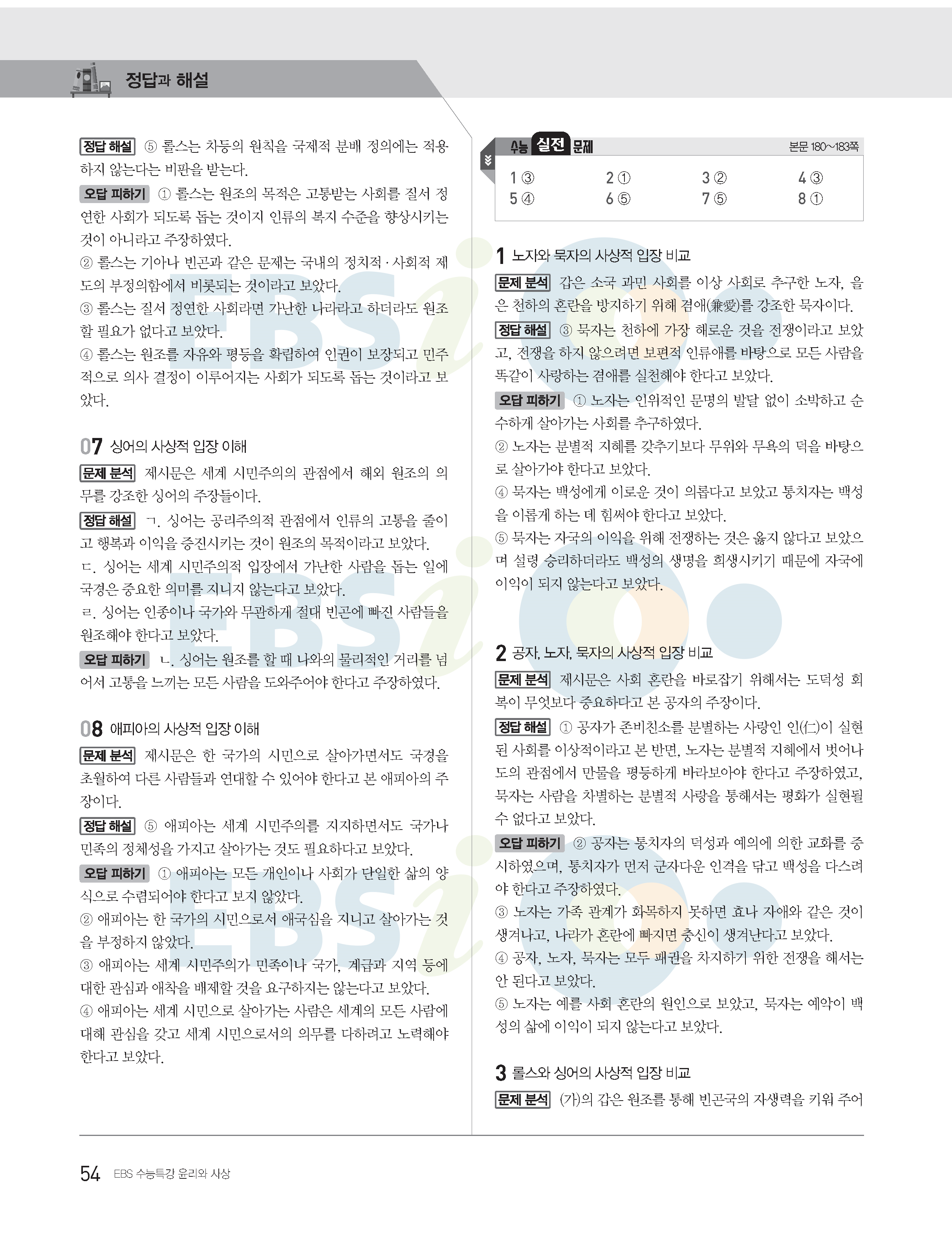 2022수능특강 윤리와사상 사진답지 빠른답지 모바일최적화