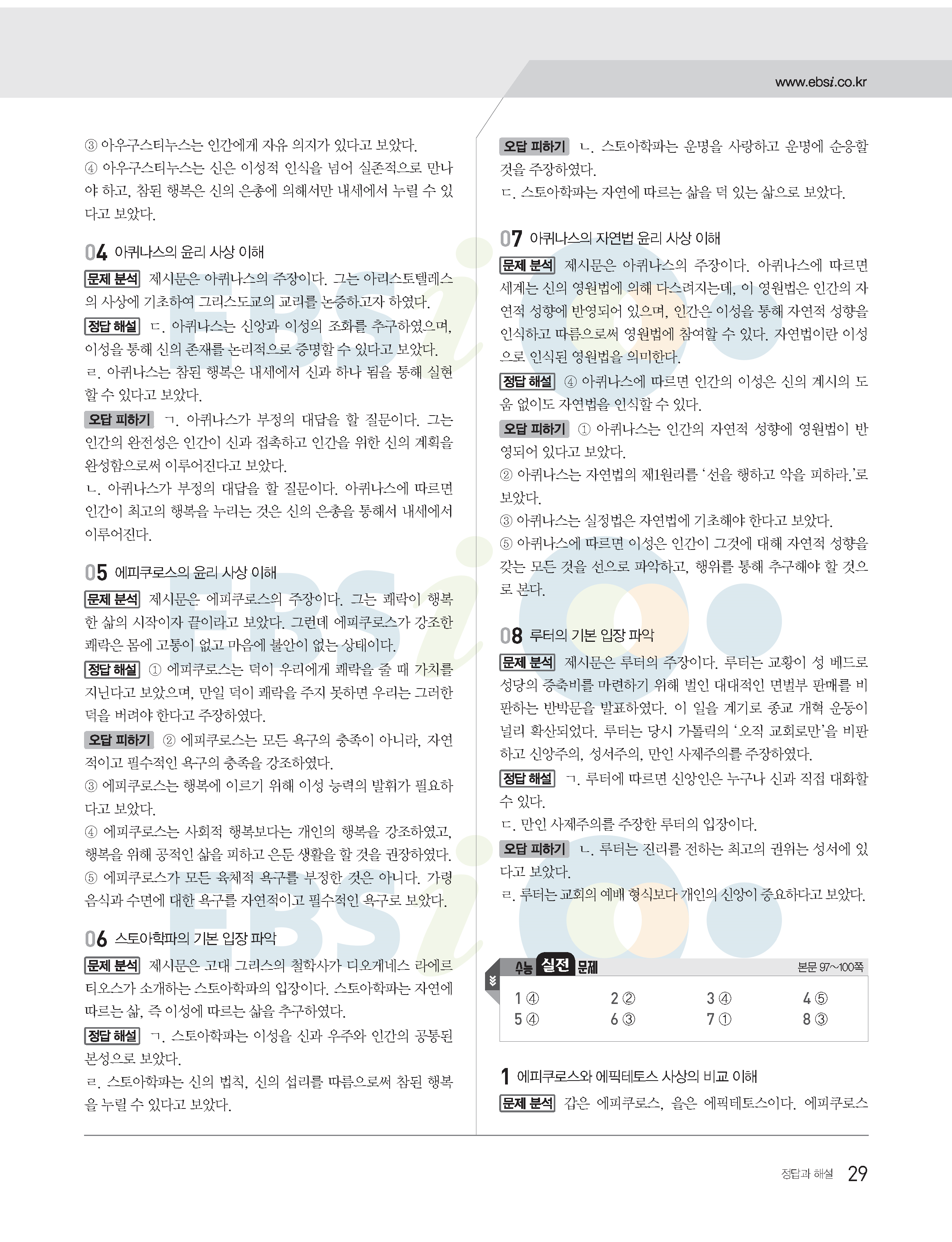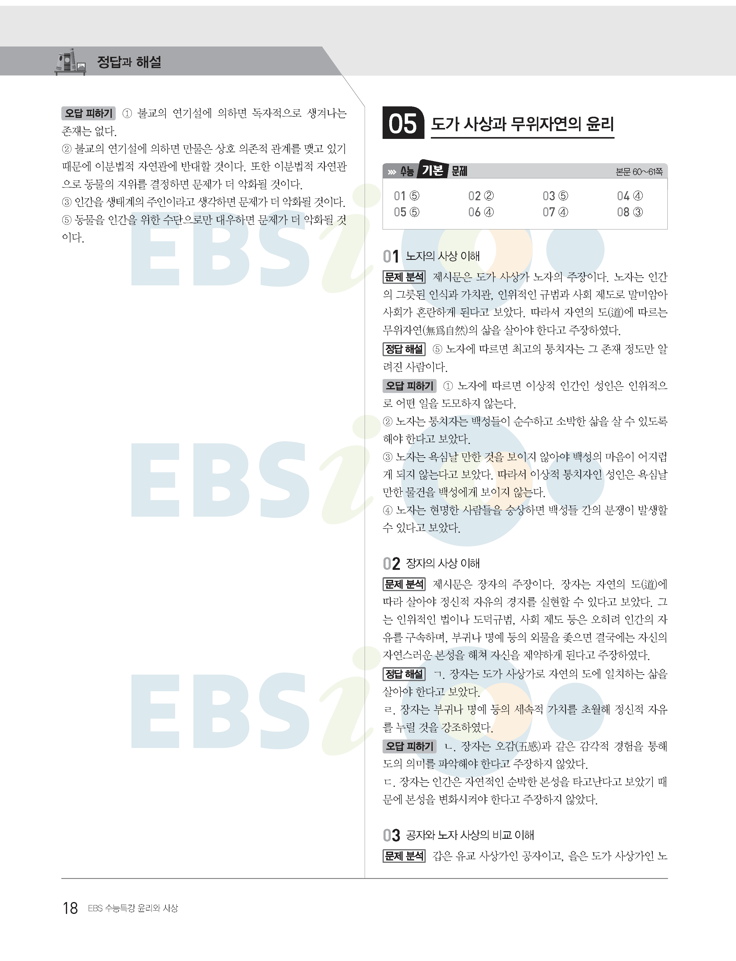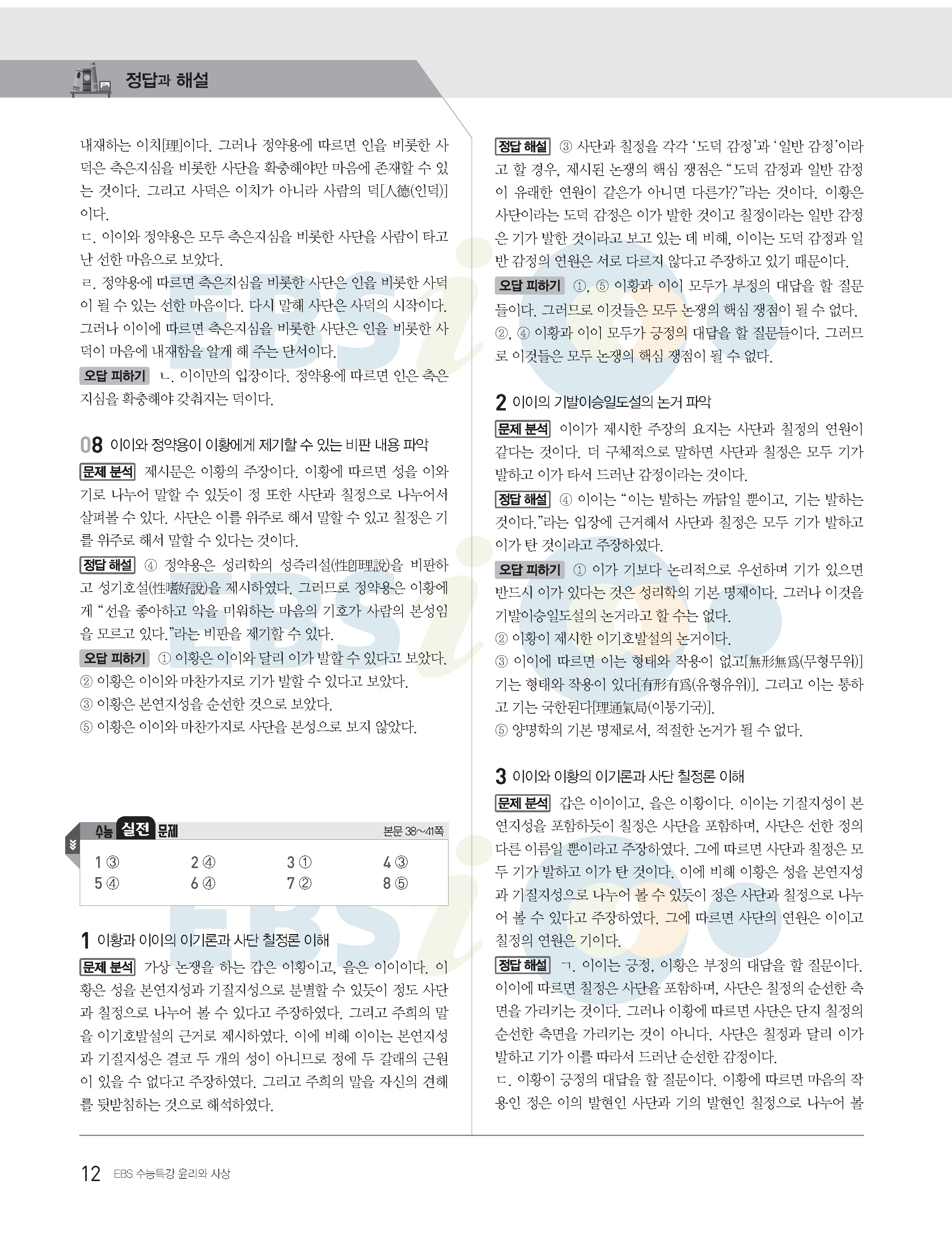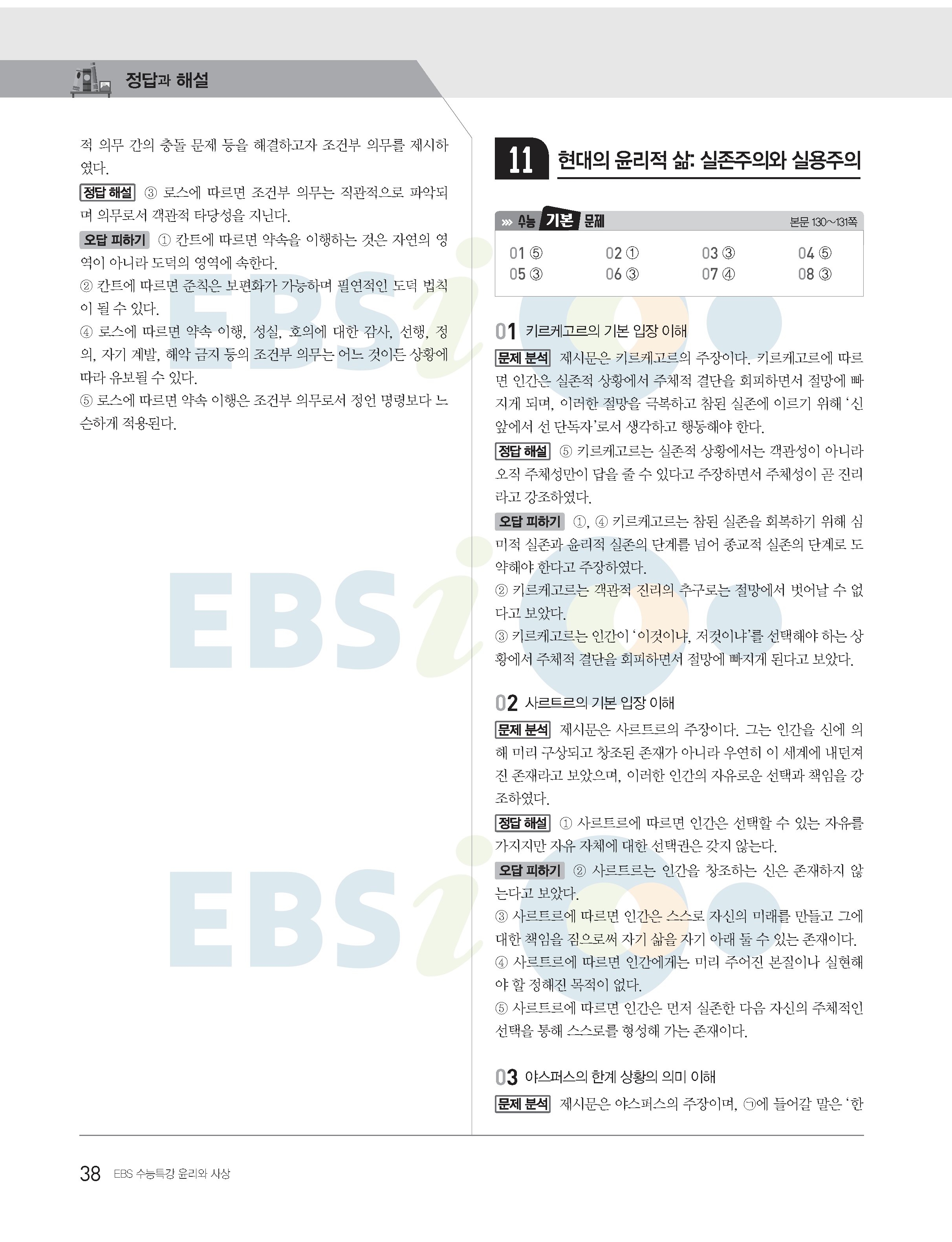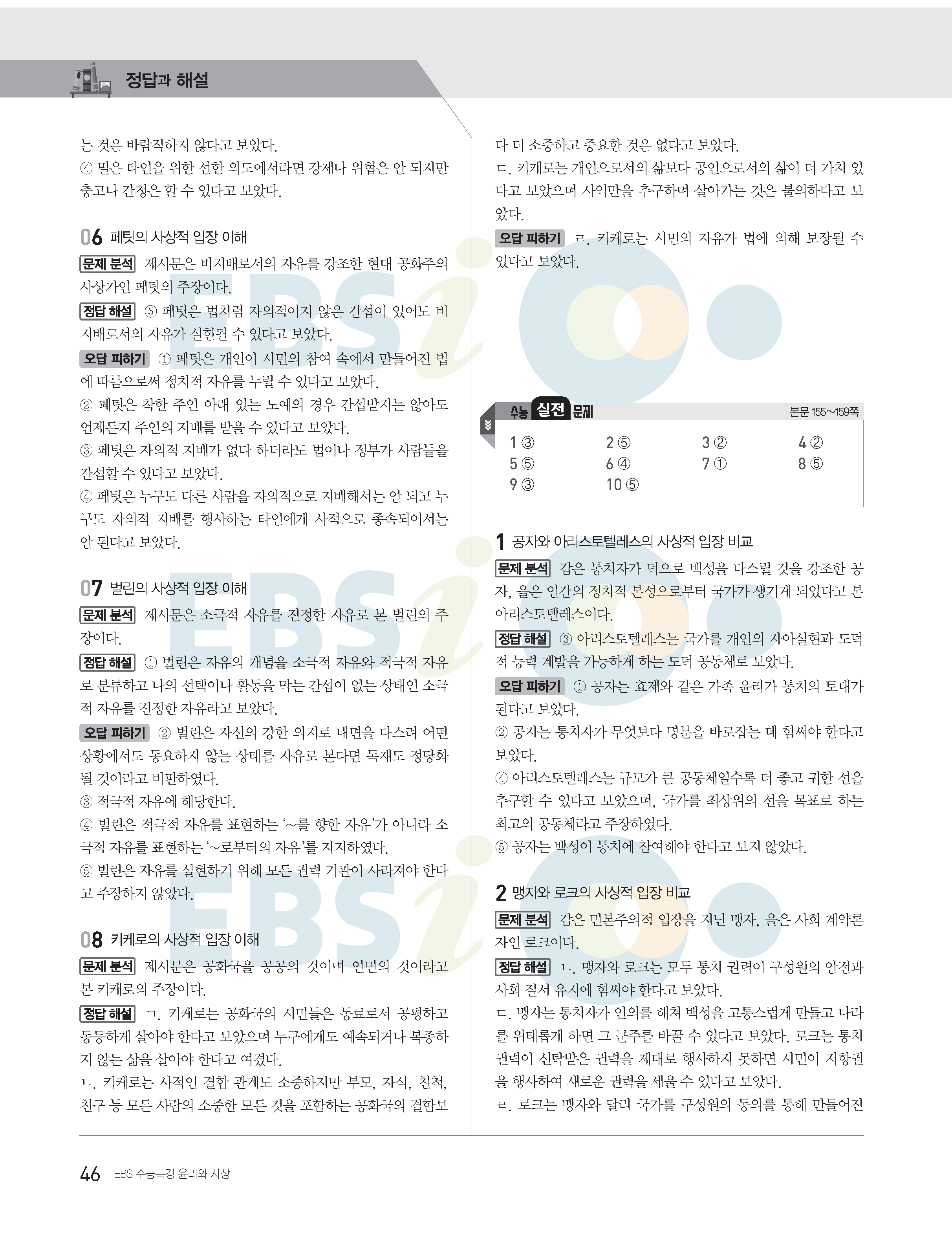 2022수능특강 윤리와사상 사진답지 빠른답지 모바일최적화