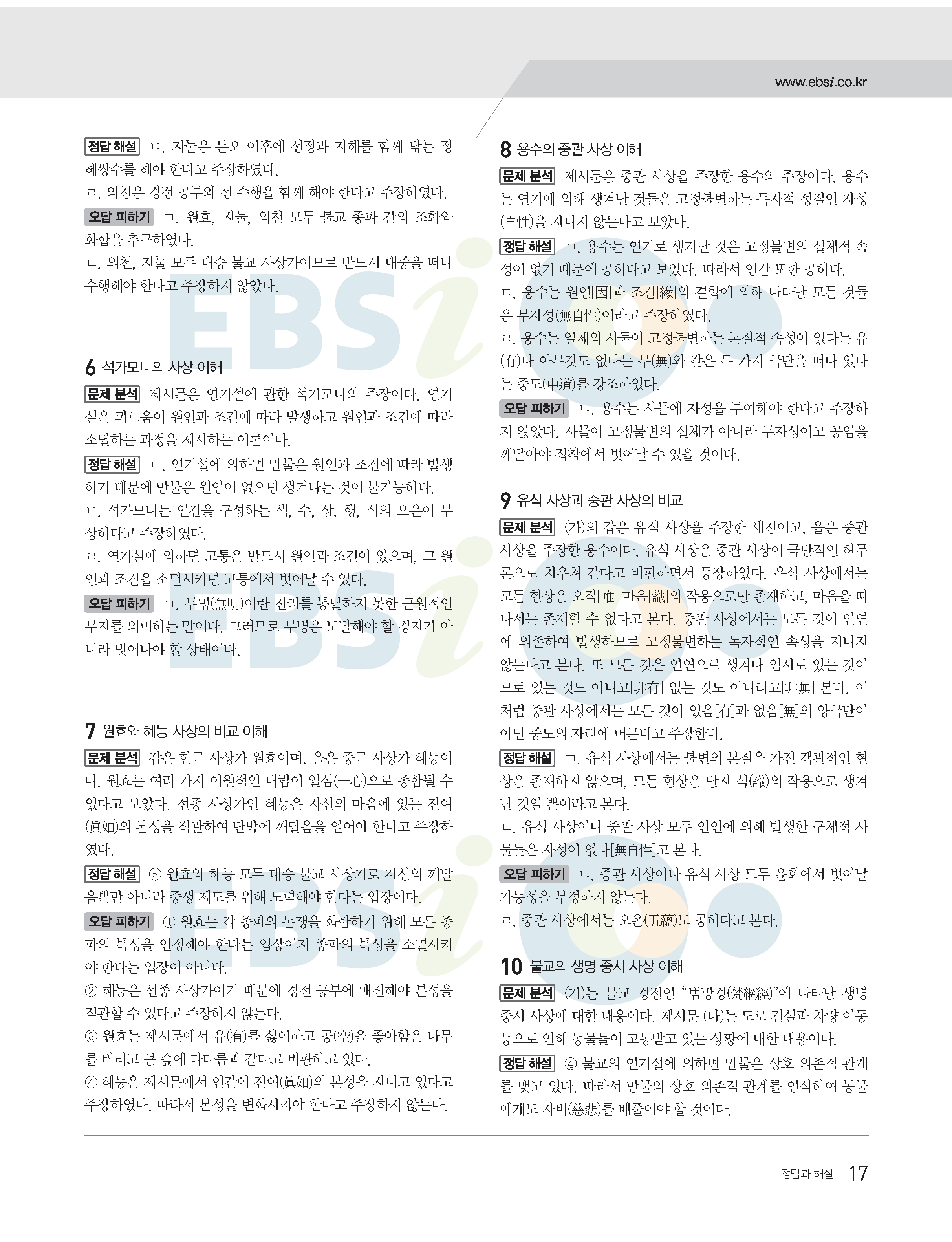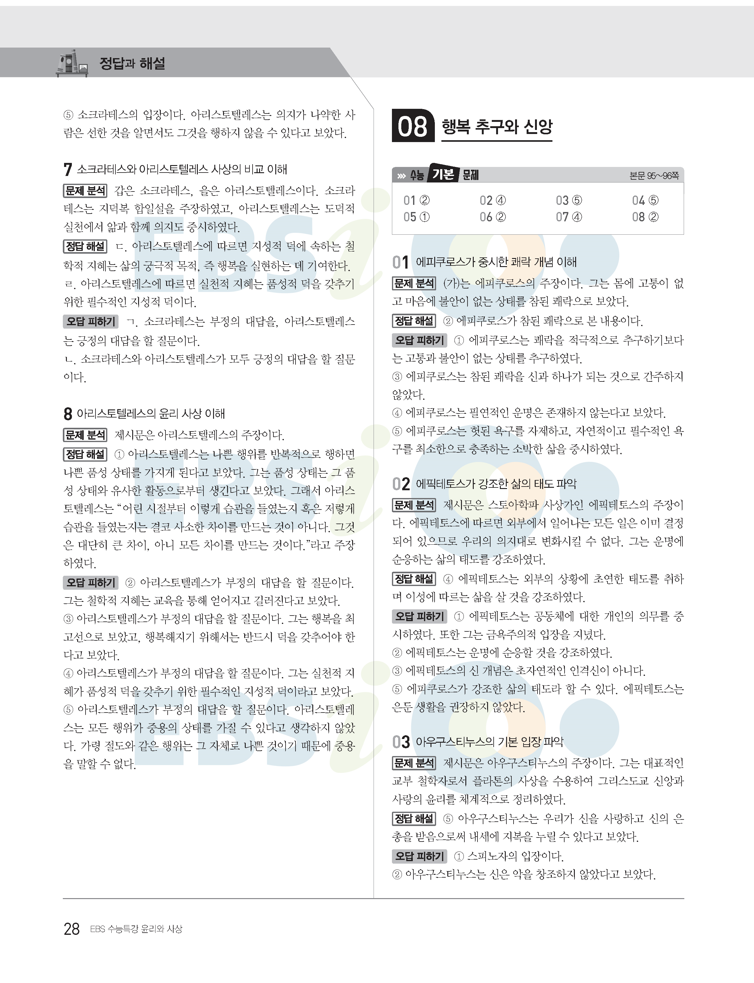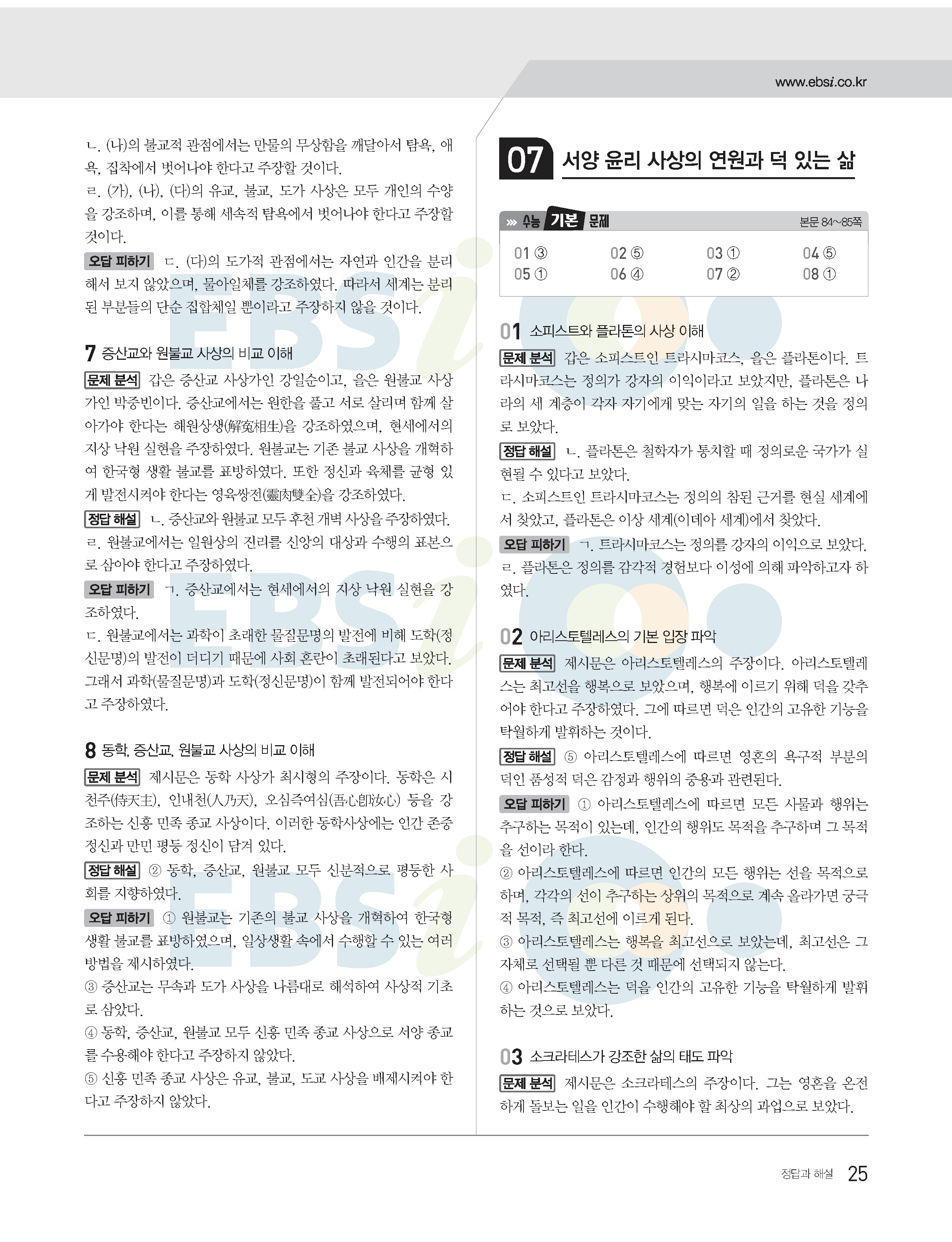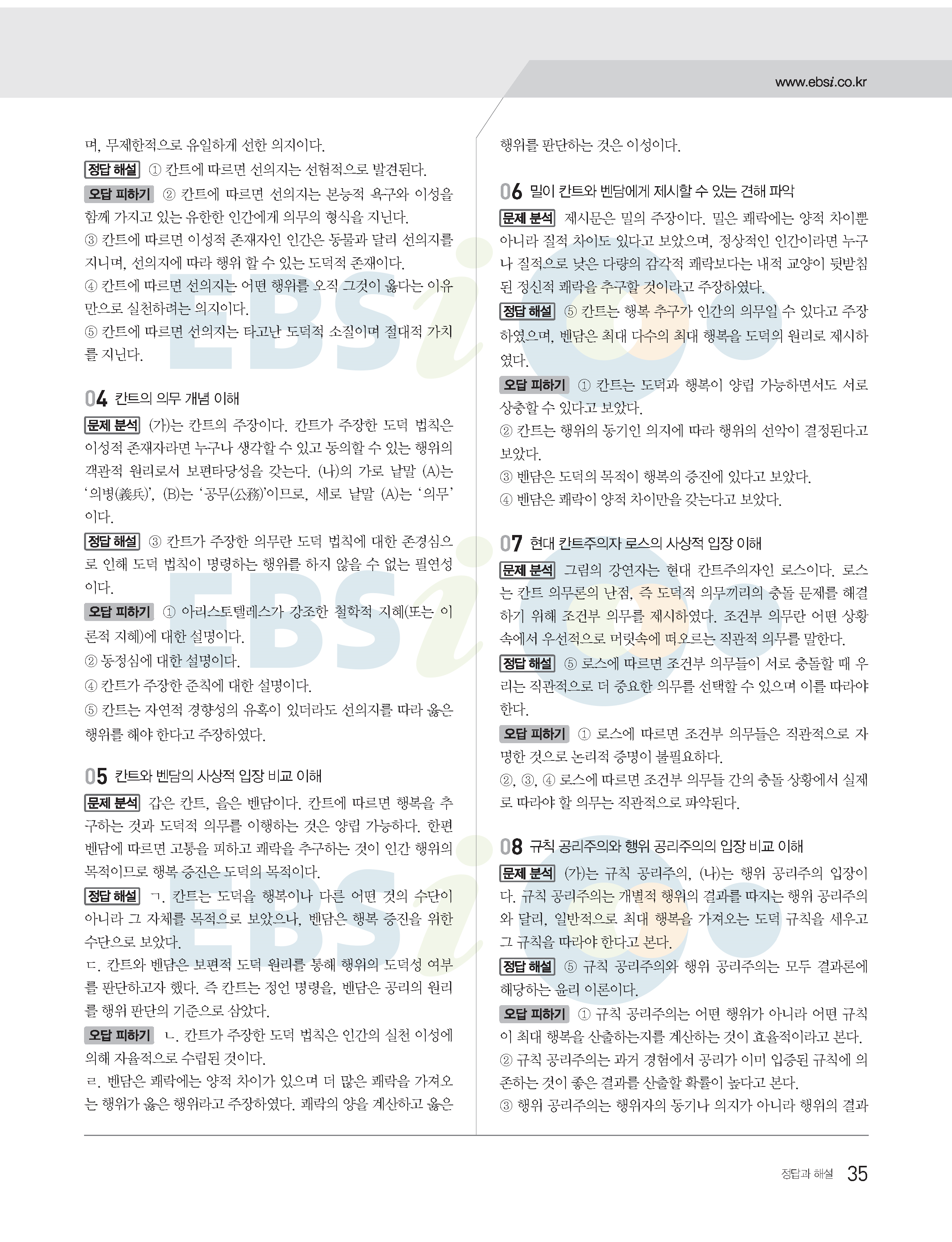 2022수능특강 윤리와사상 사진답지 빠른답지 모바일최적화