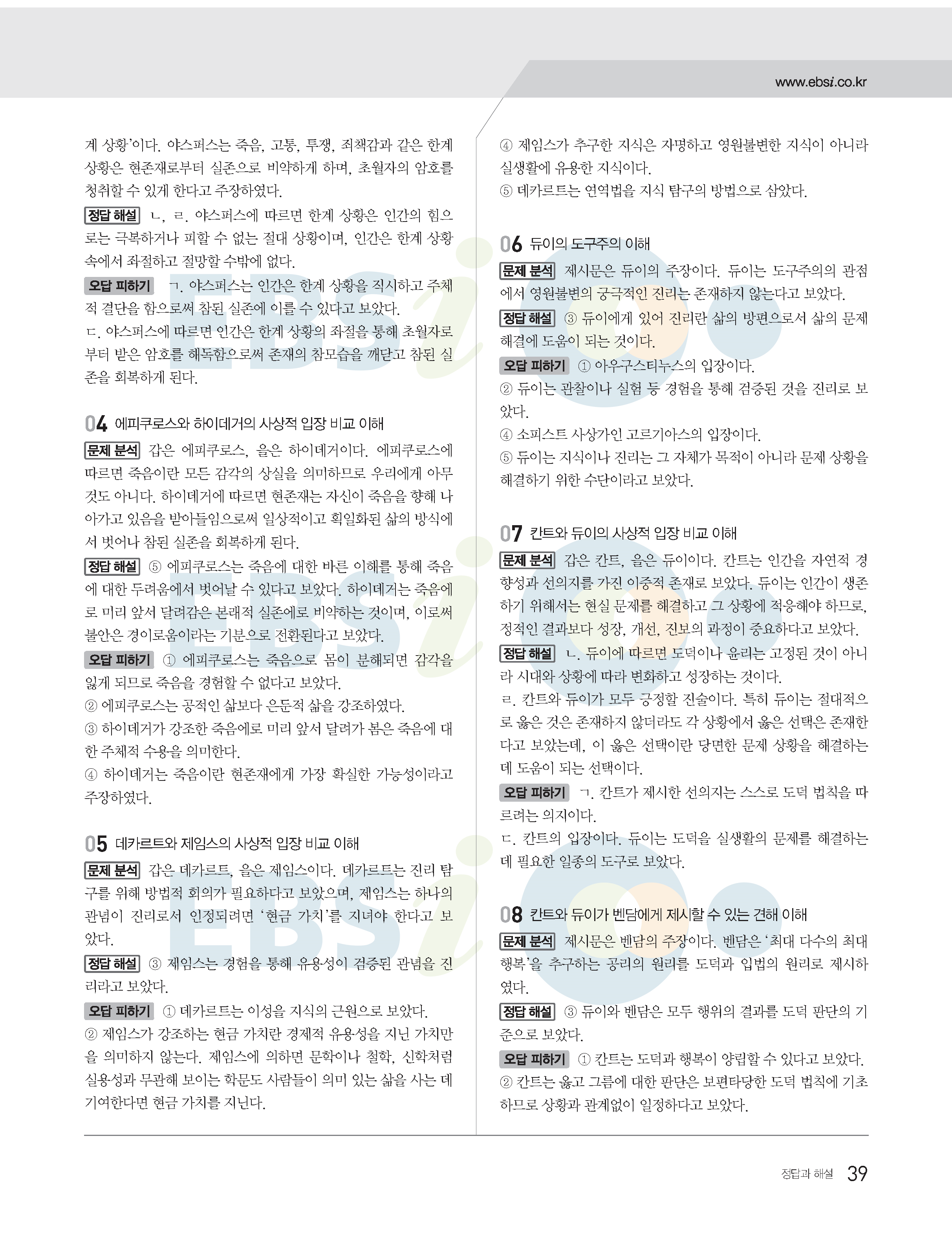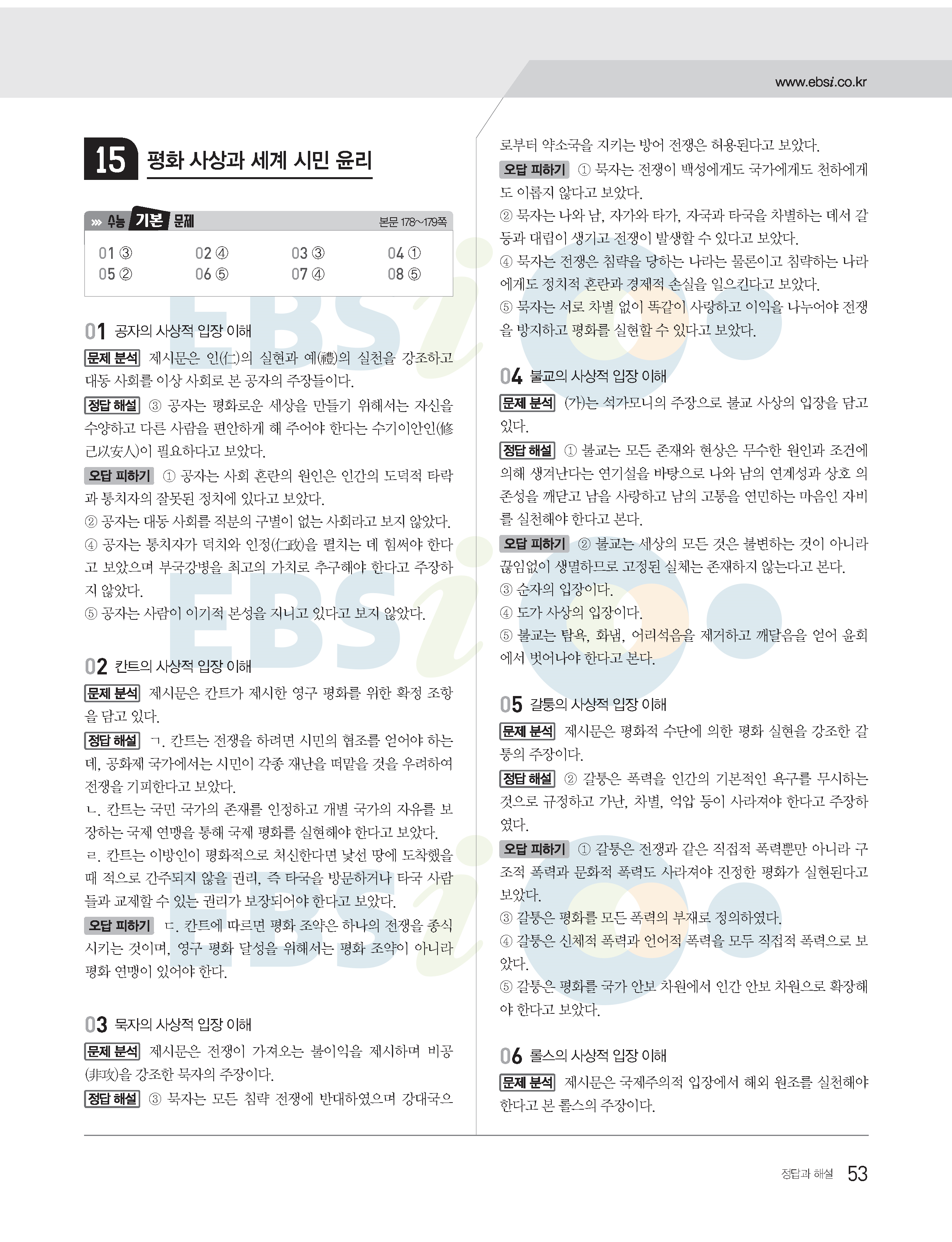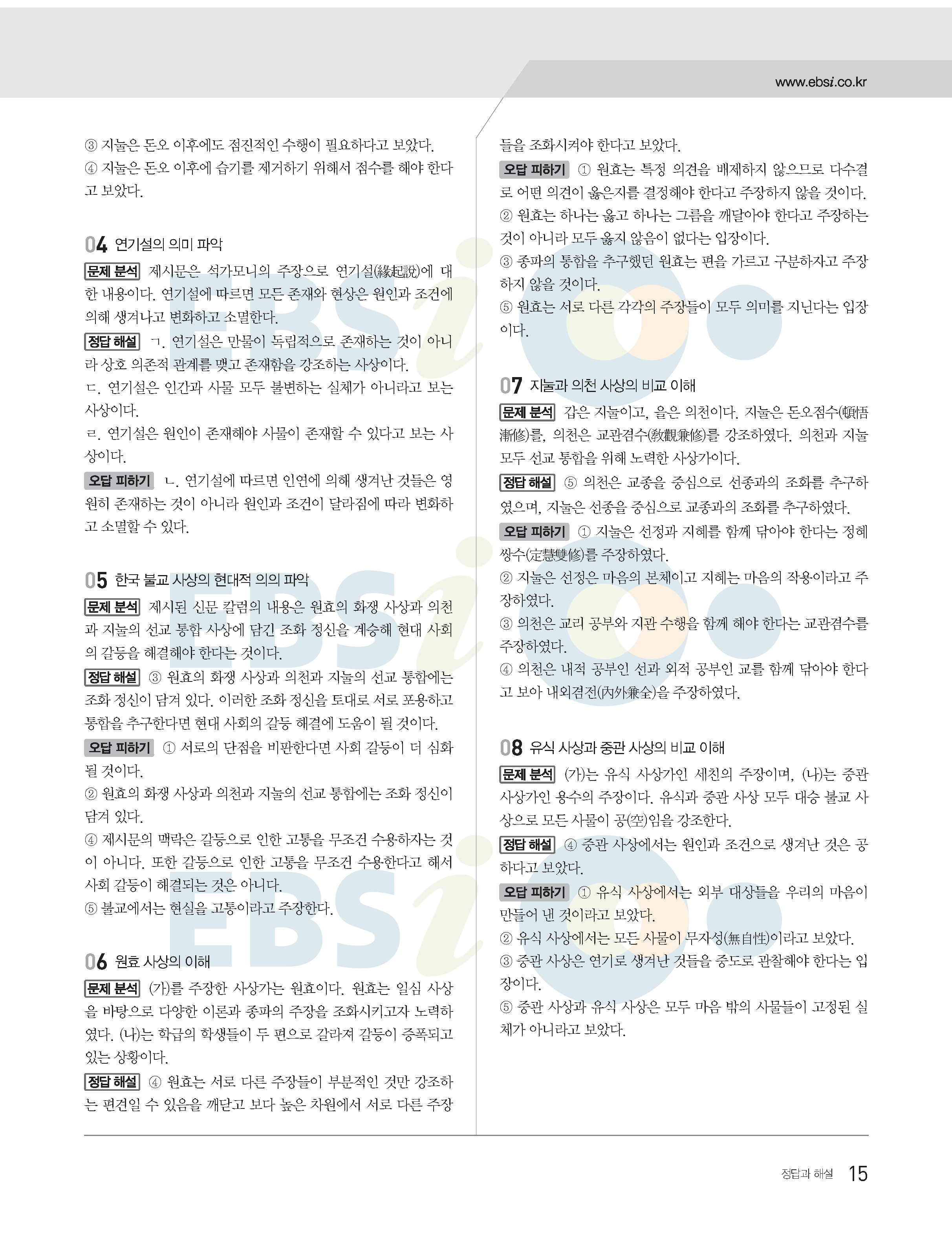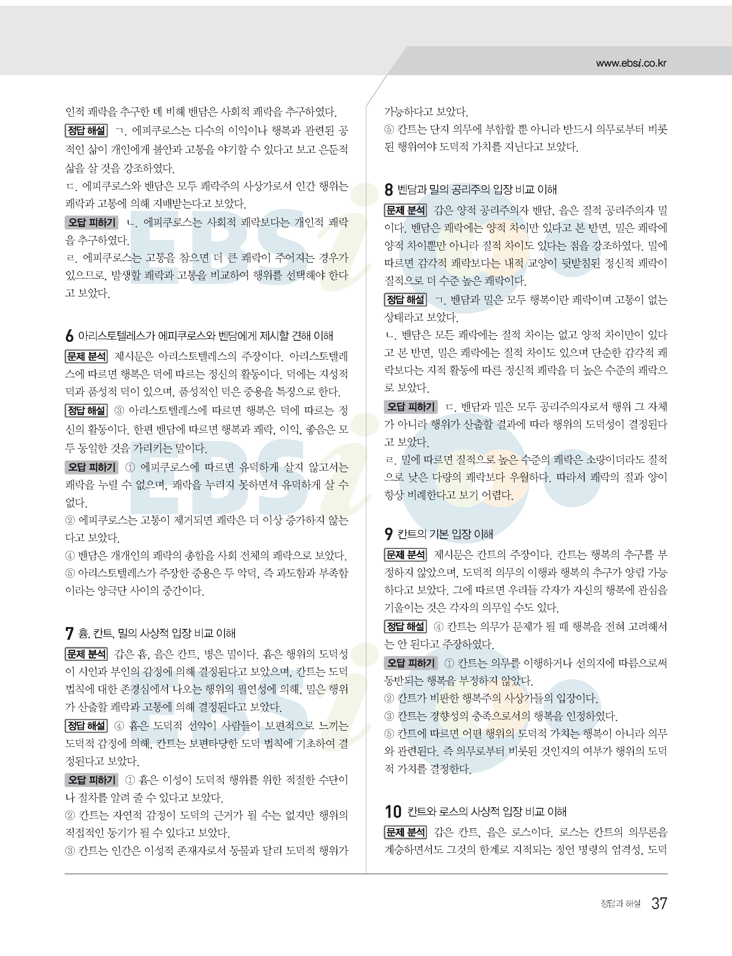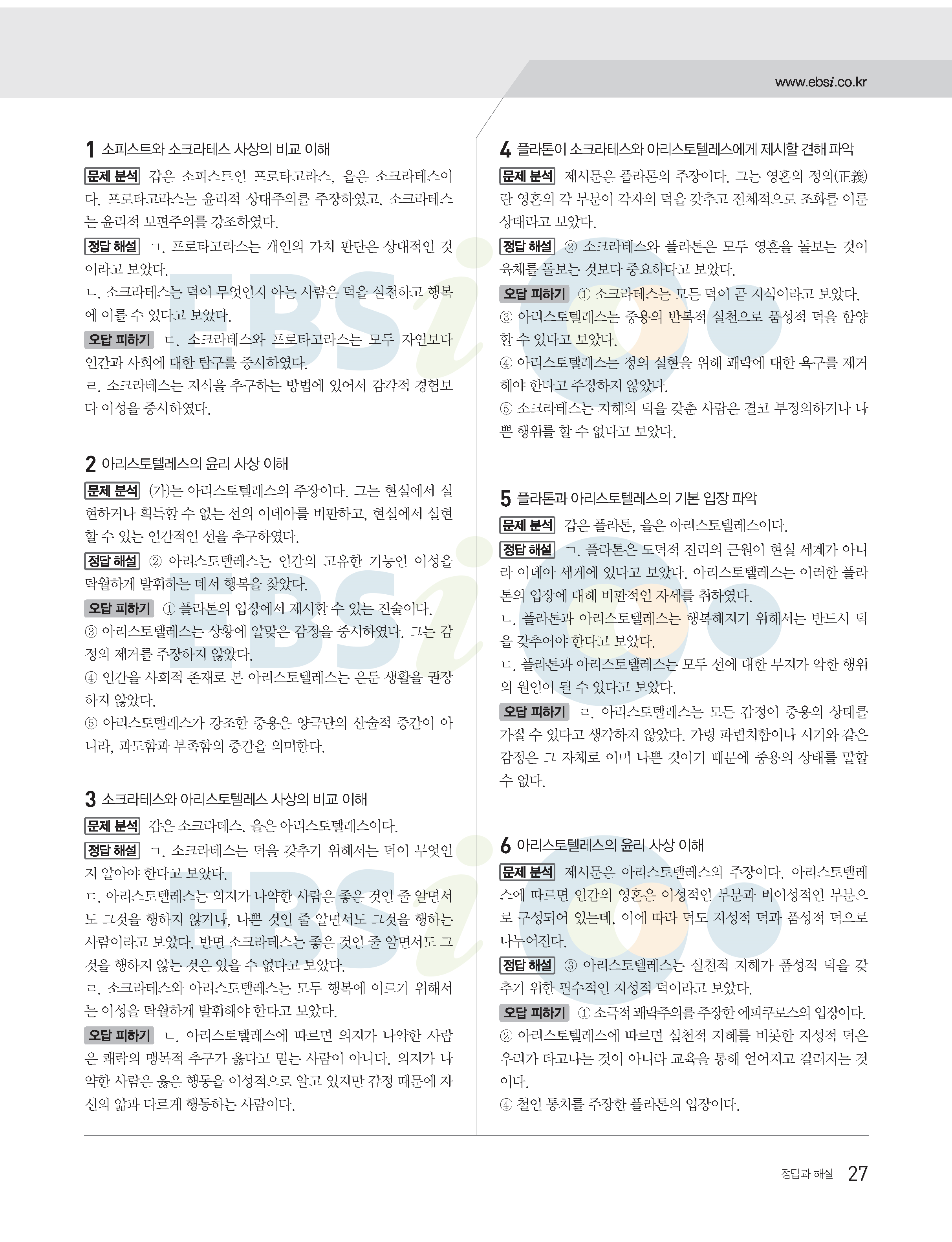2022수능특강 윤리와사상 사진답지 빠른답지 모바일최적화