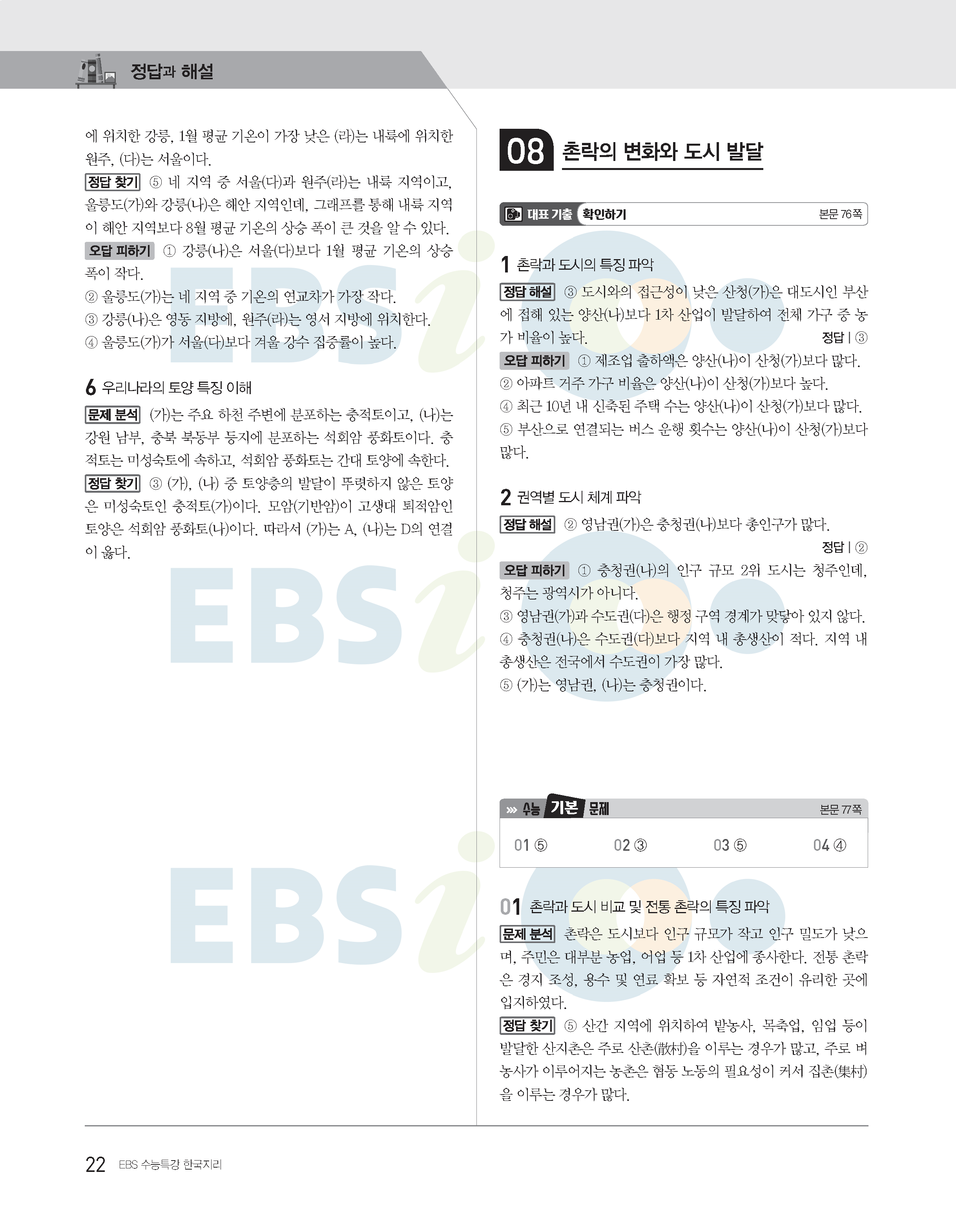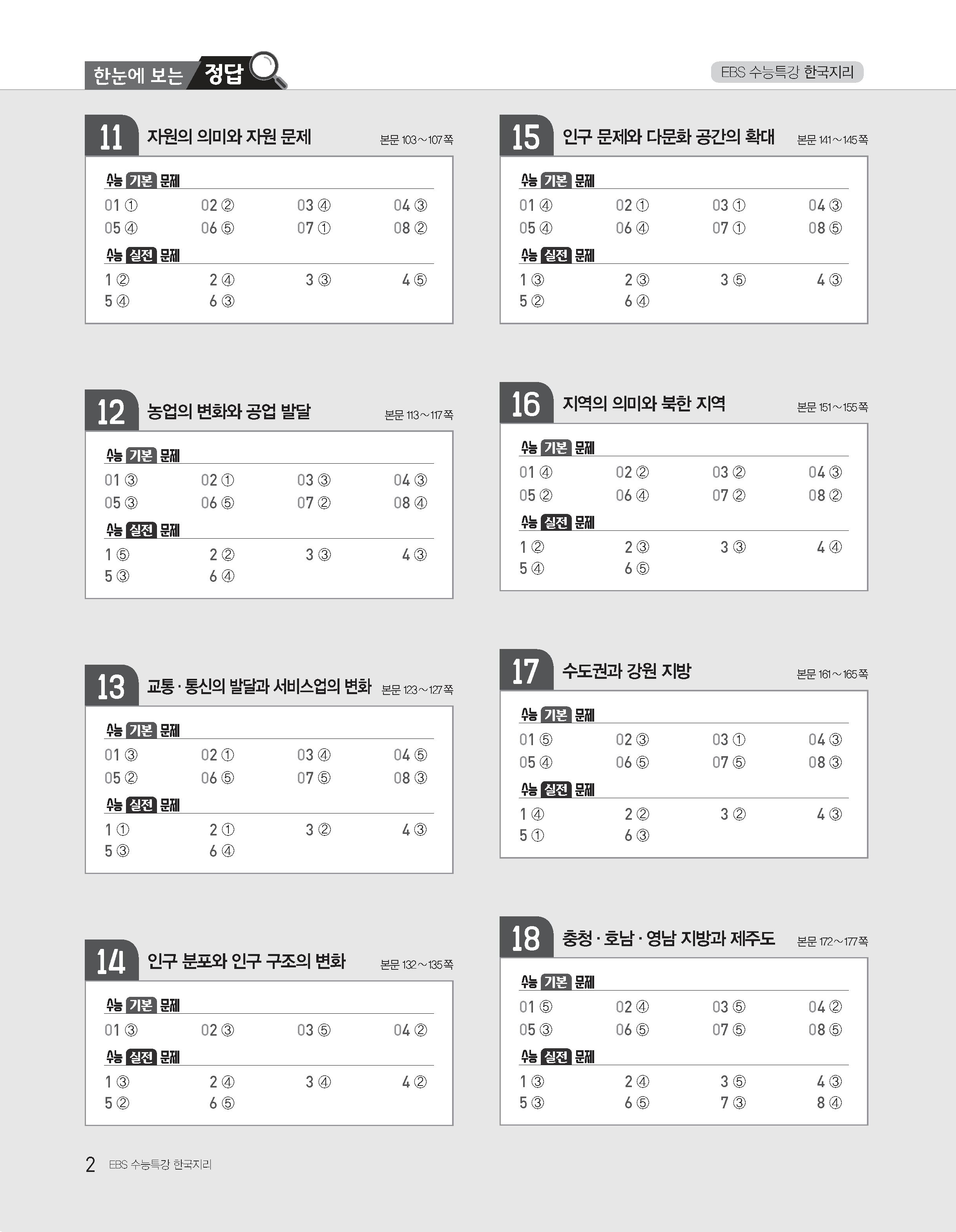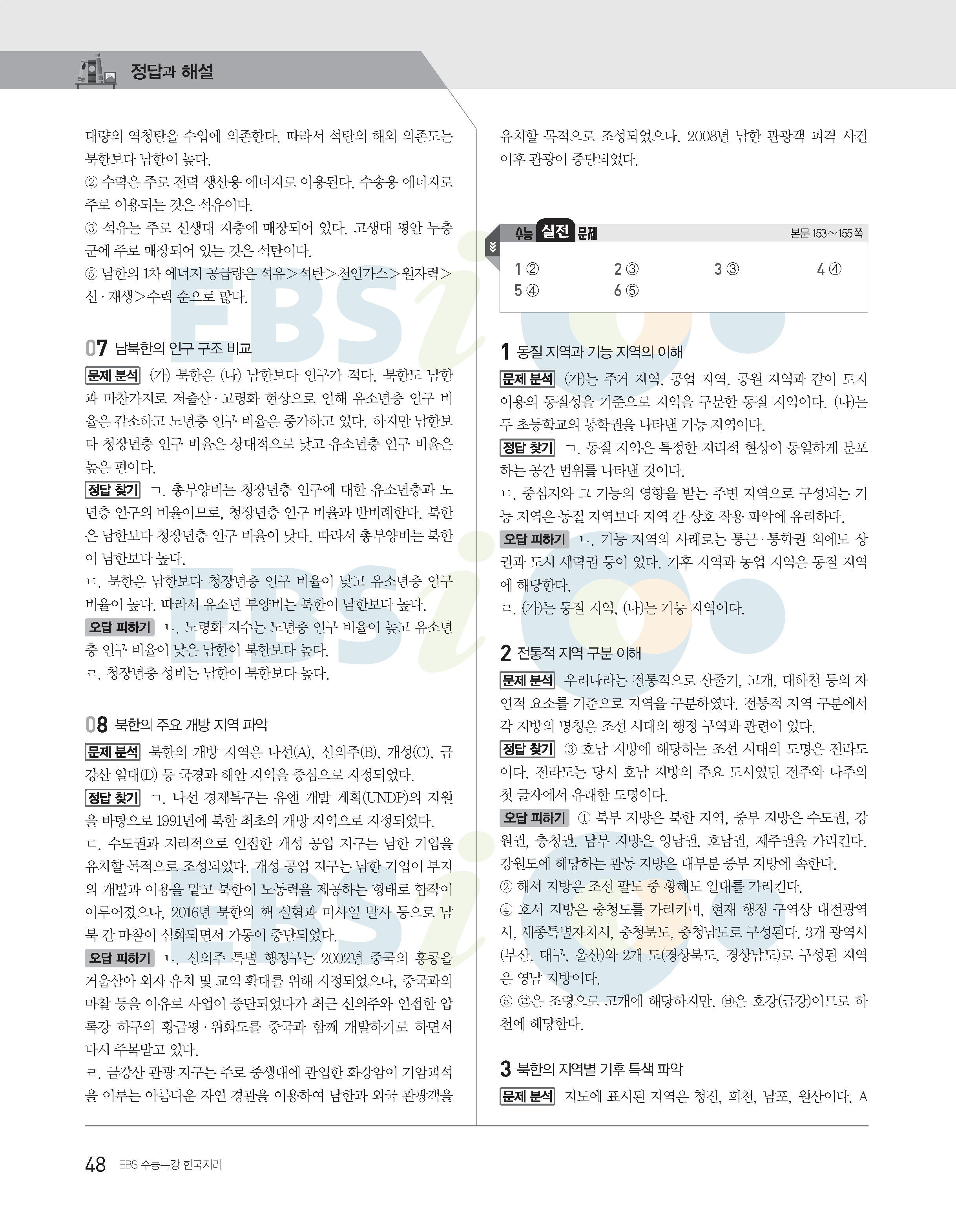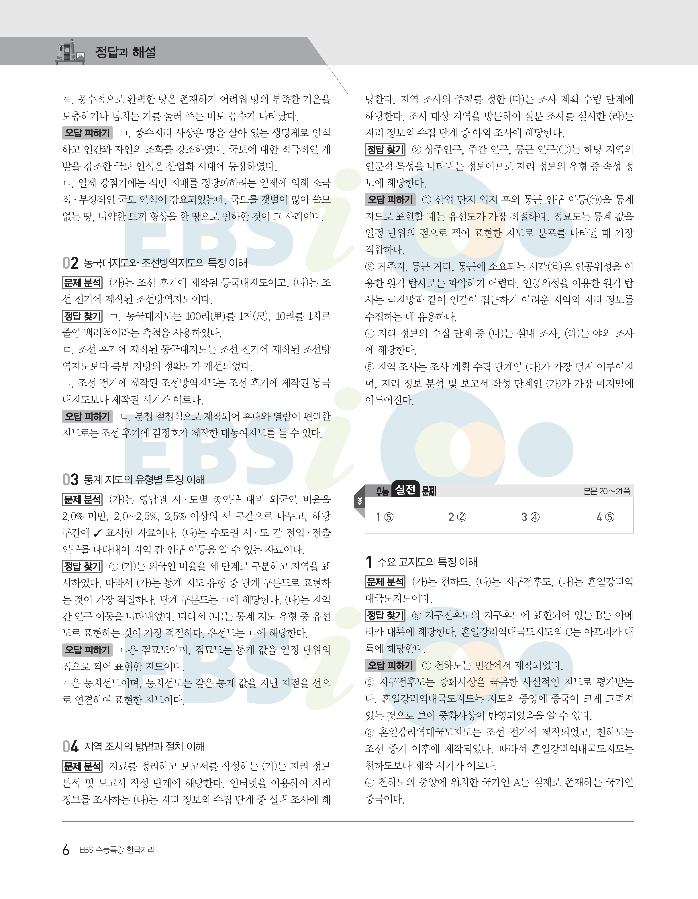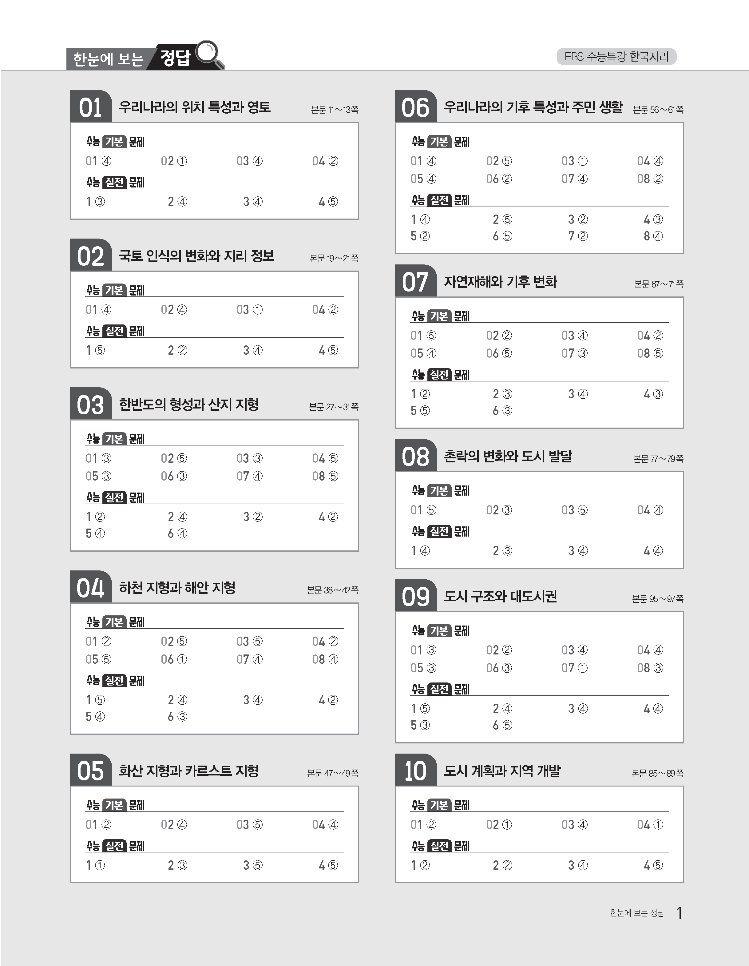 2022수능특강 한국지리 사진답지 빠른답지 모바일최적화