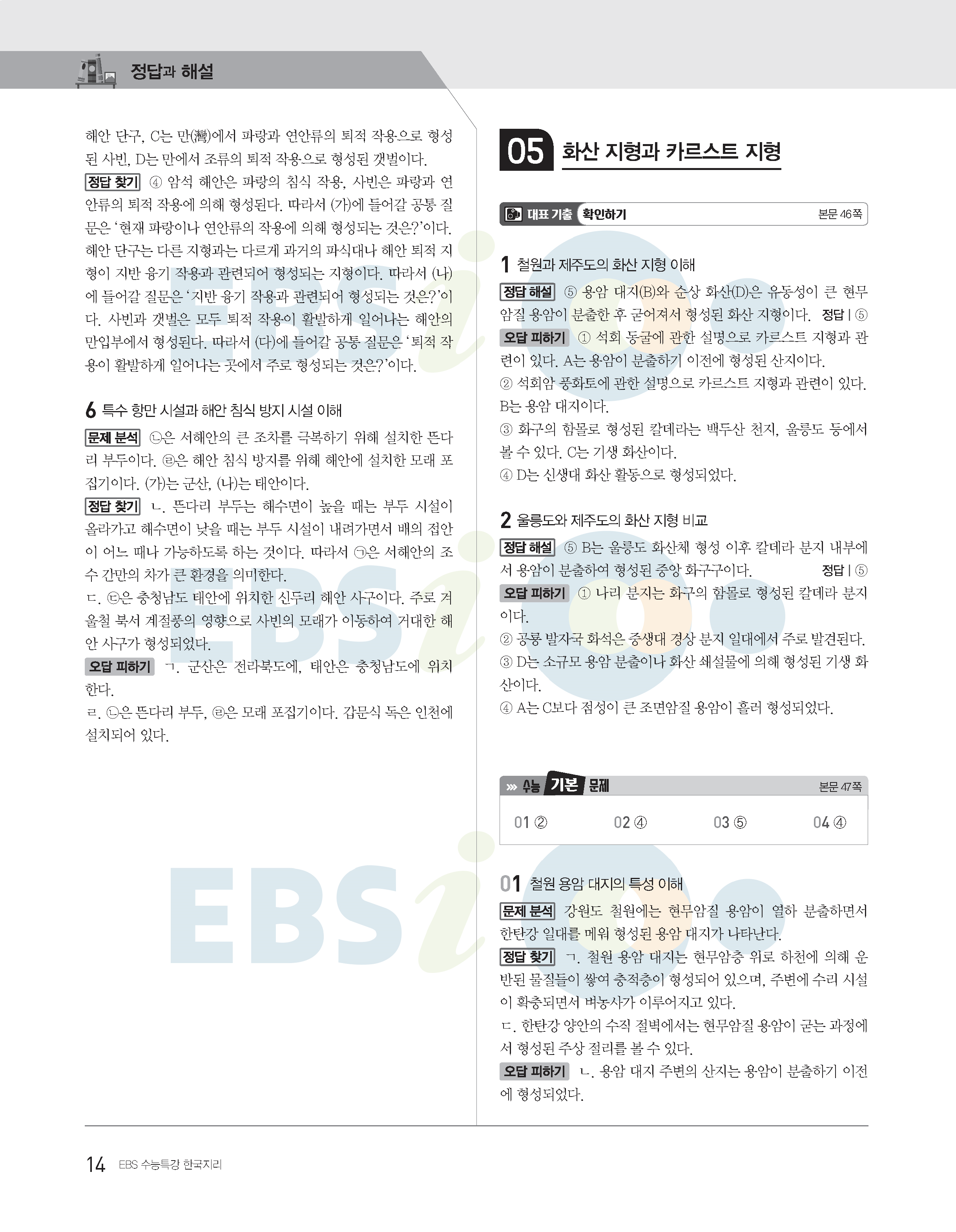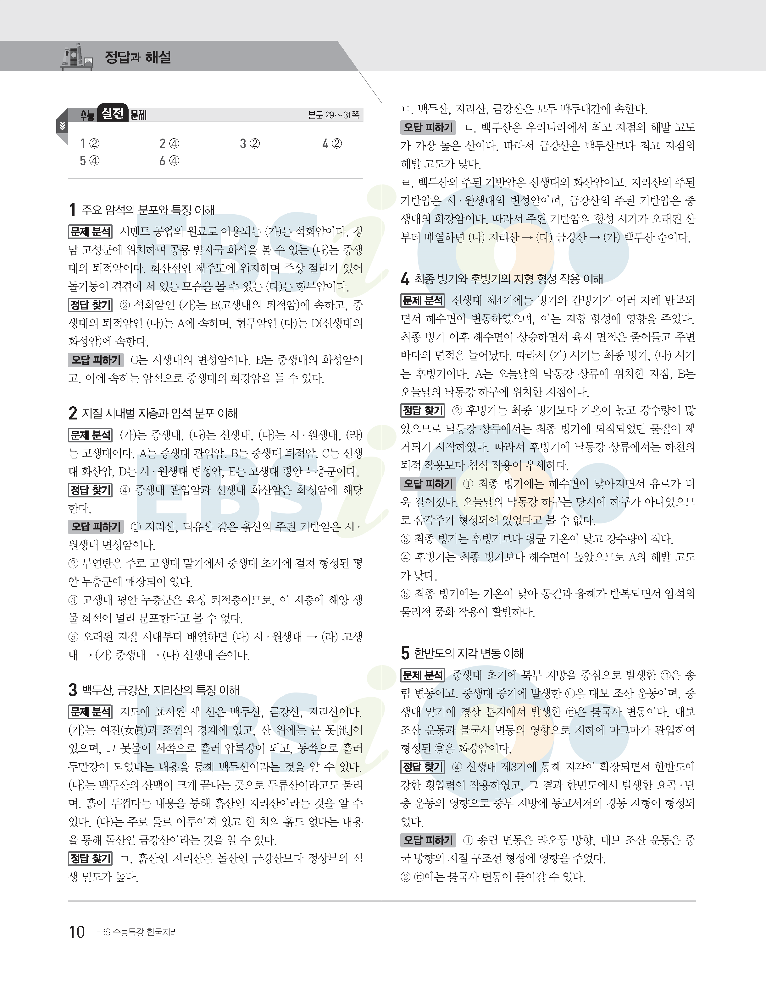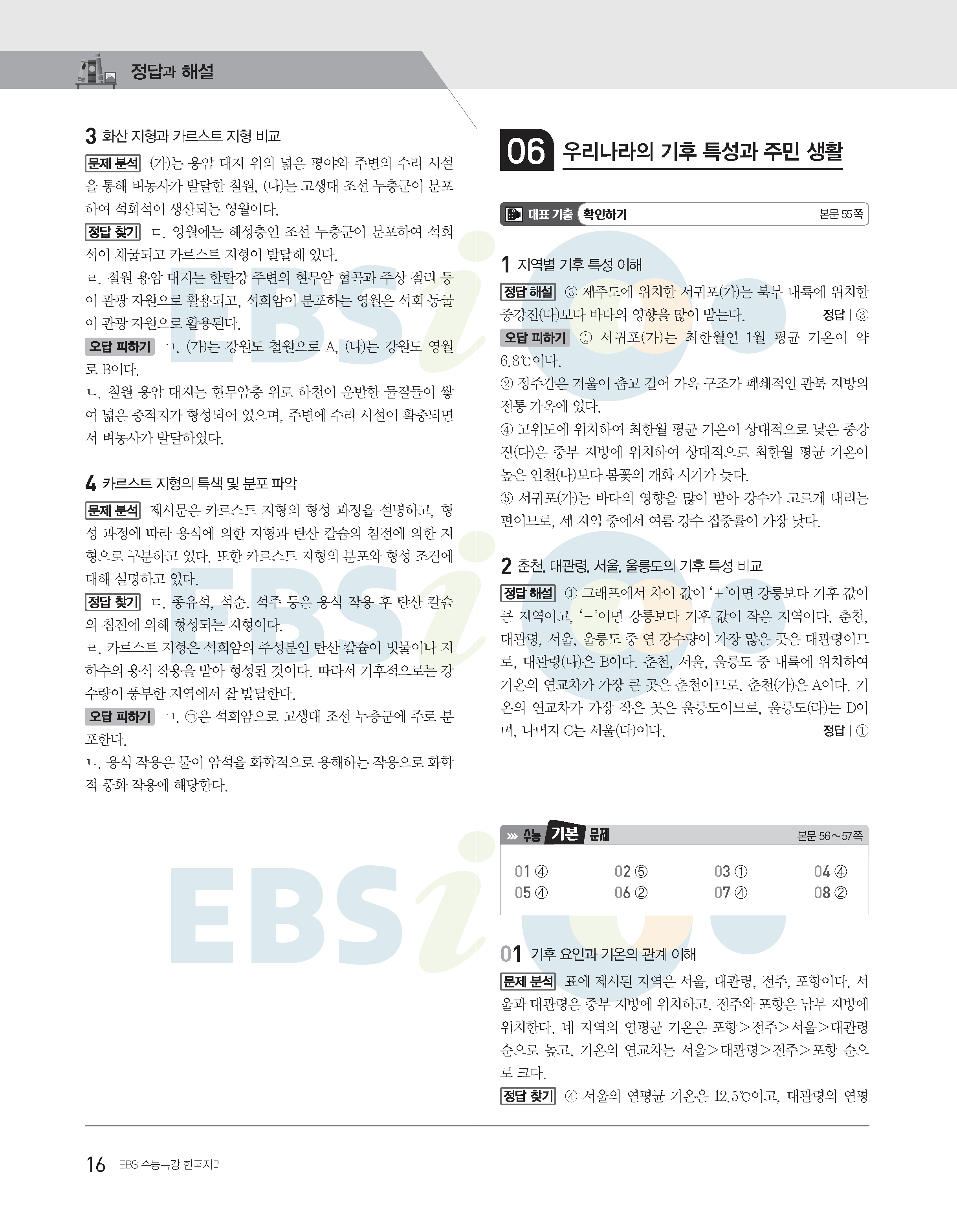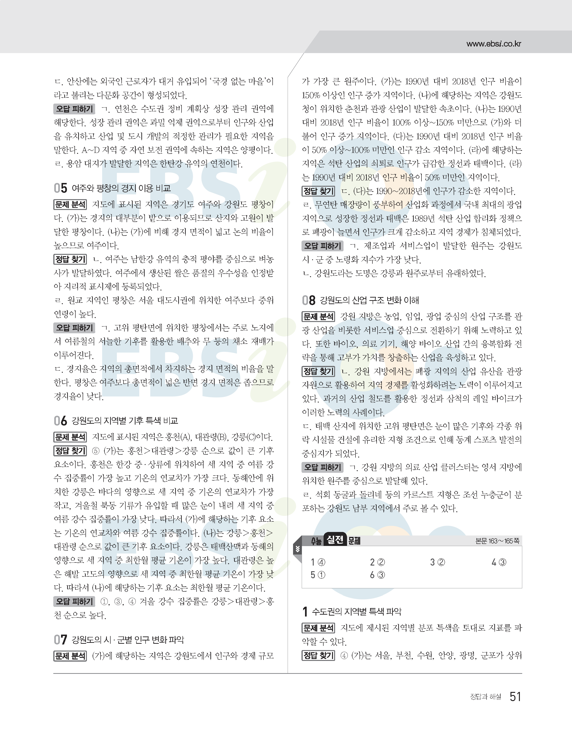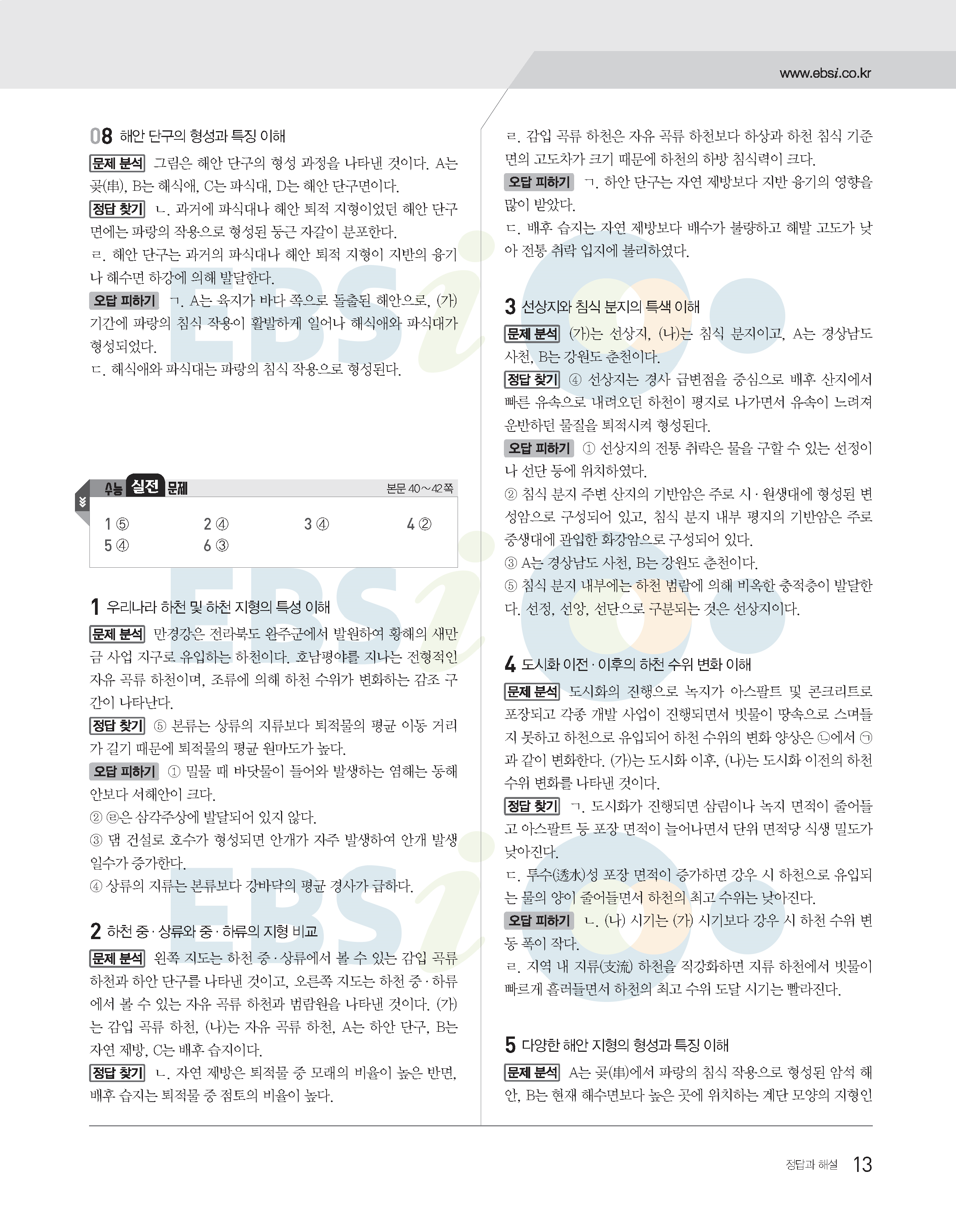 2022수능특강 한국지리 사진답지 빠른답지 모바일최적화
