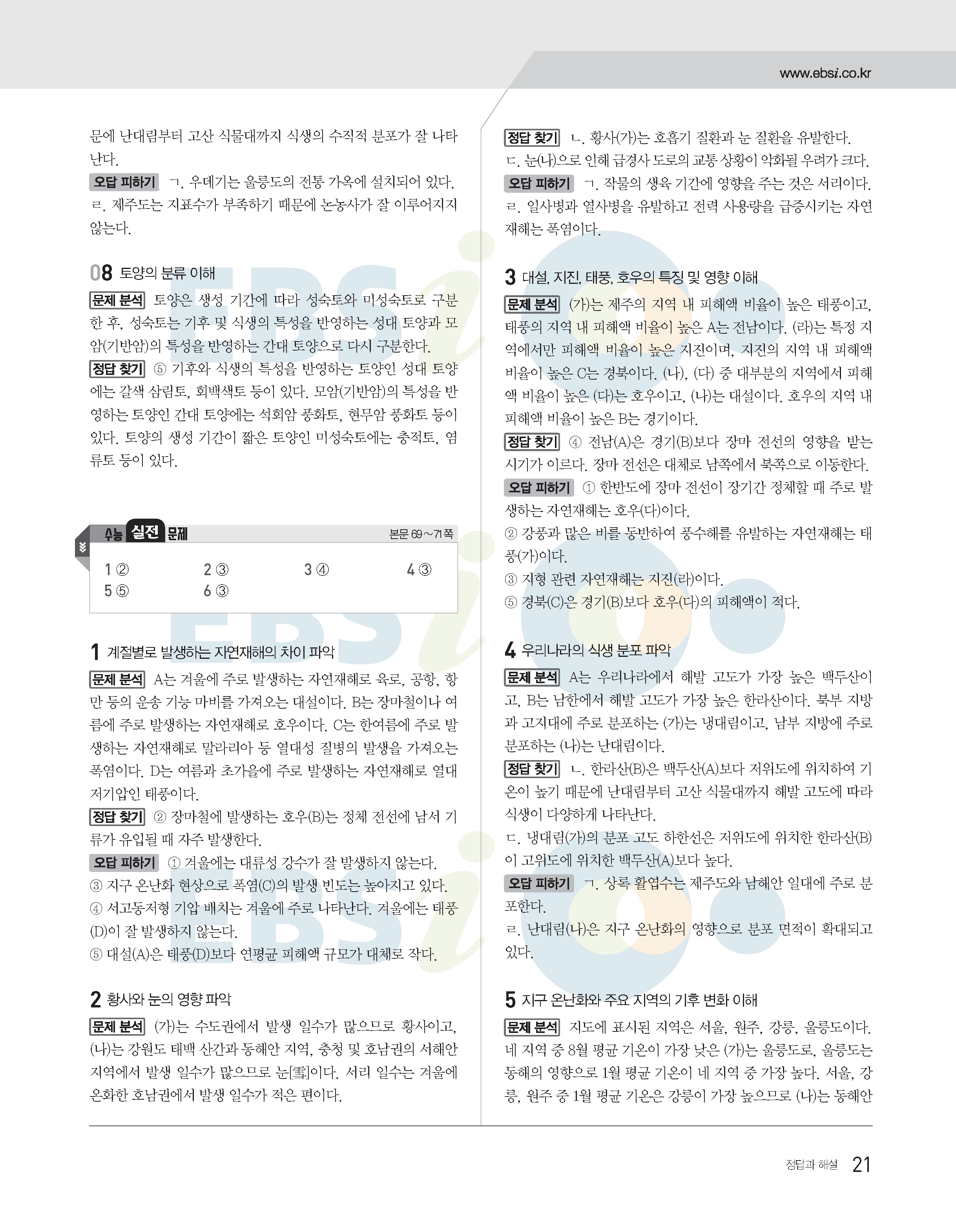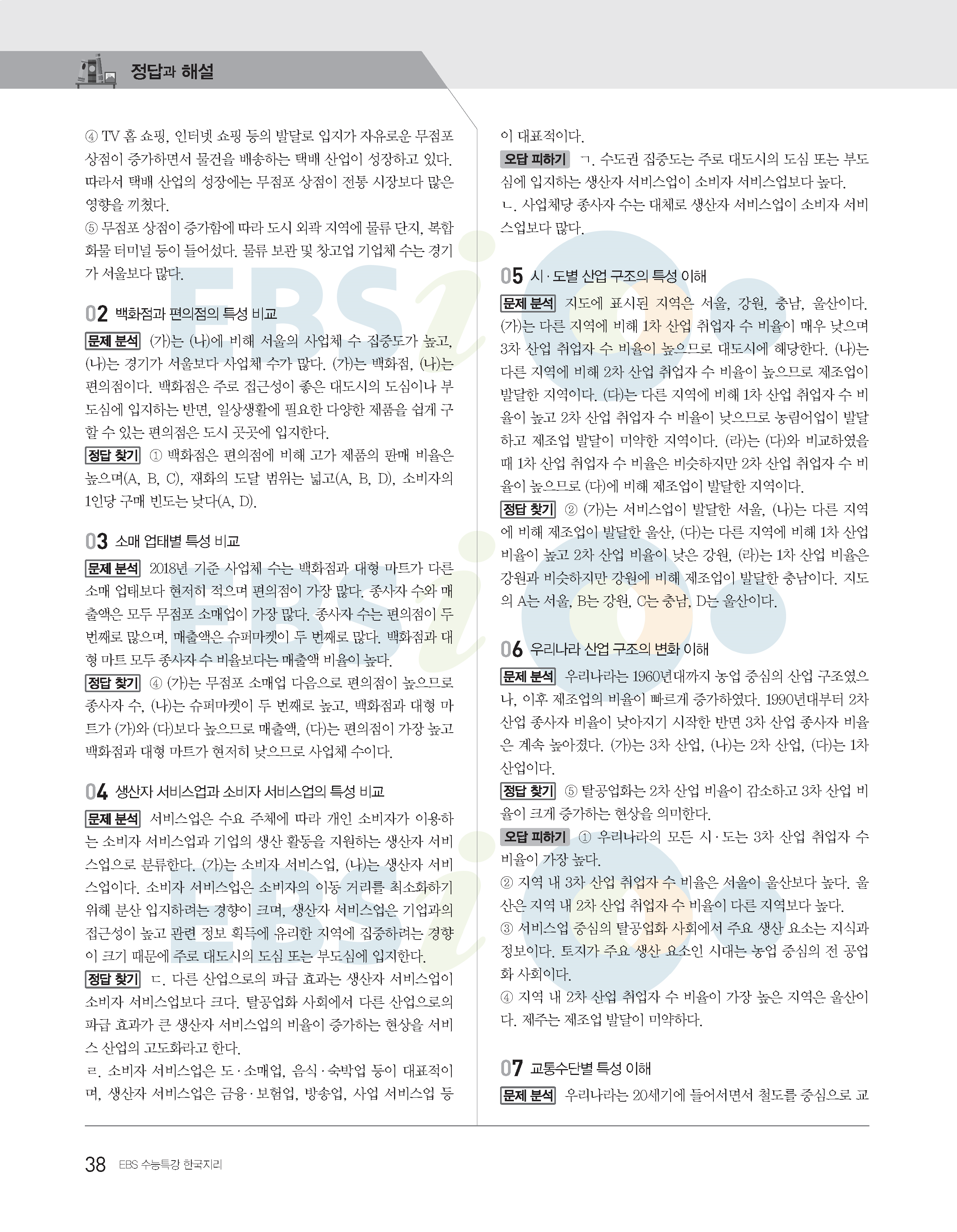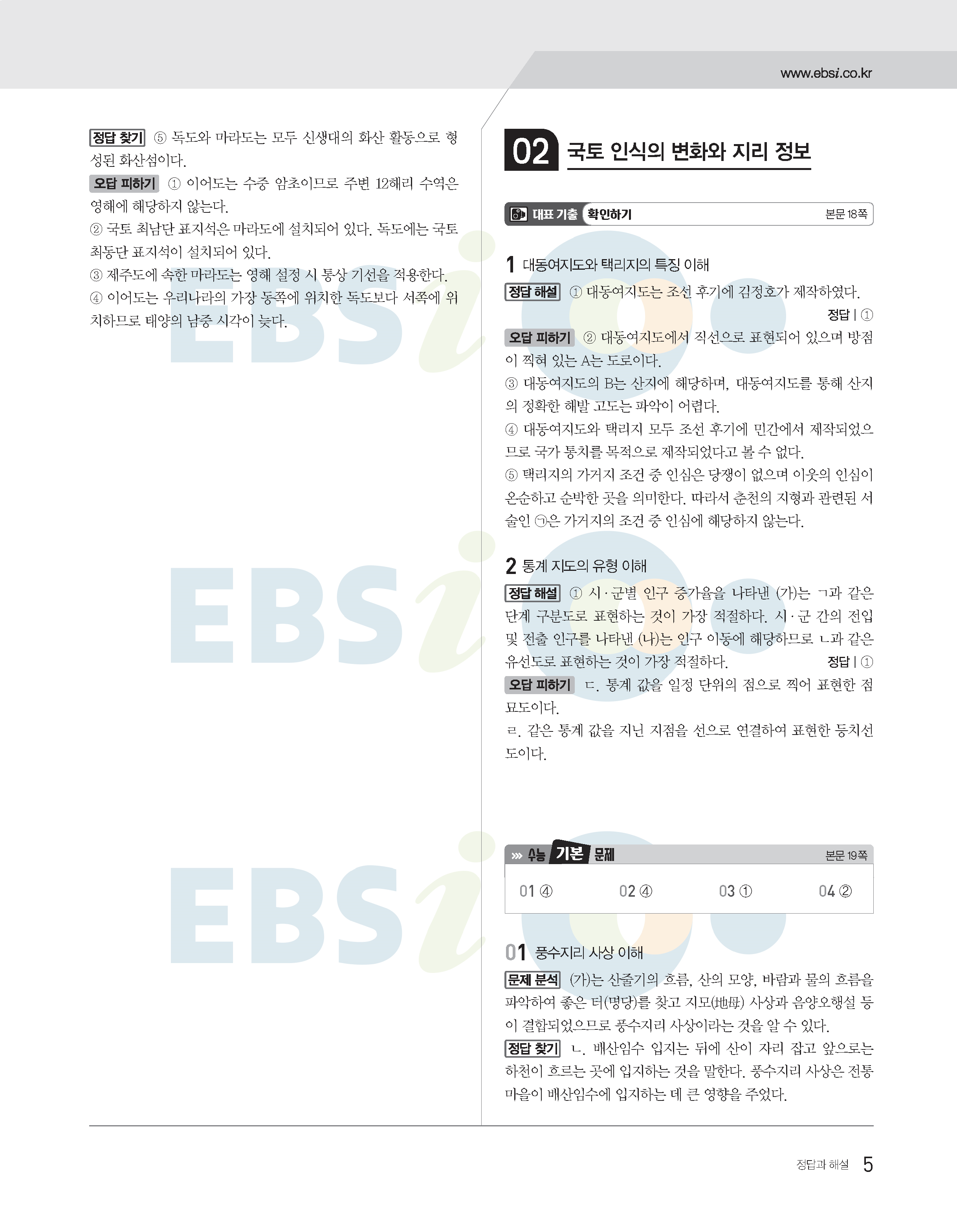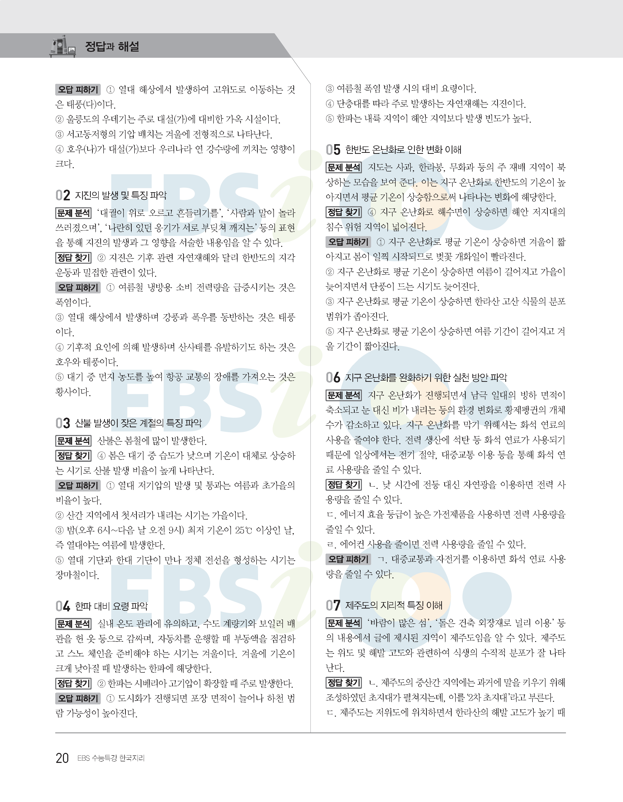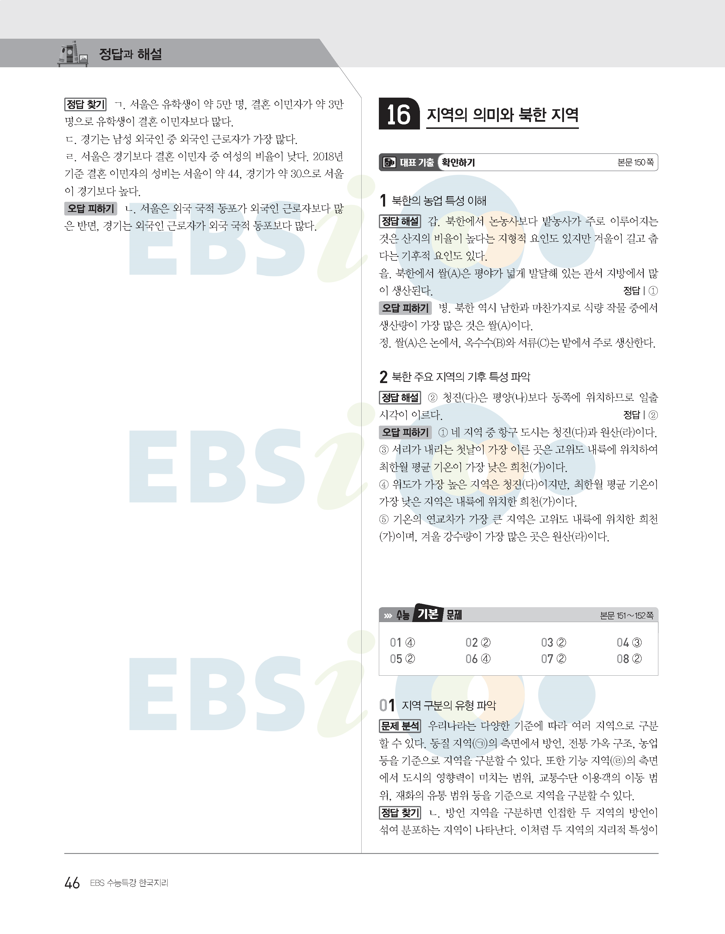 2022수능특강 한국지리 사진답지 빠른답지 모바일최적화